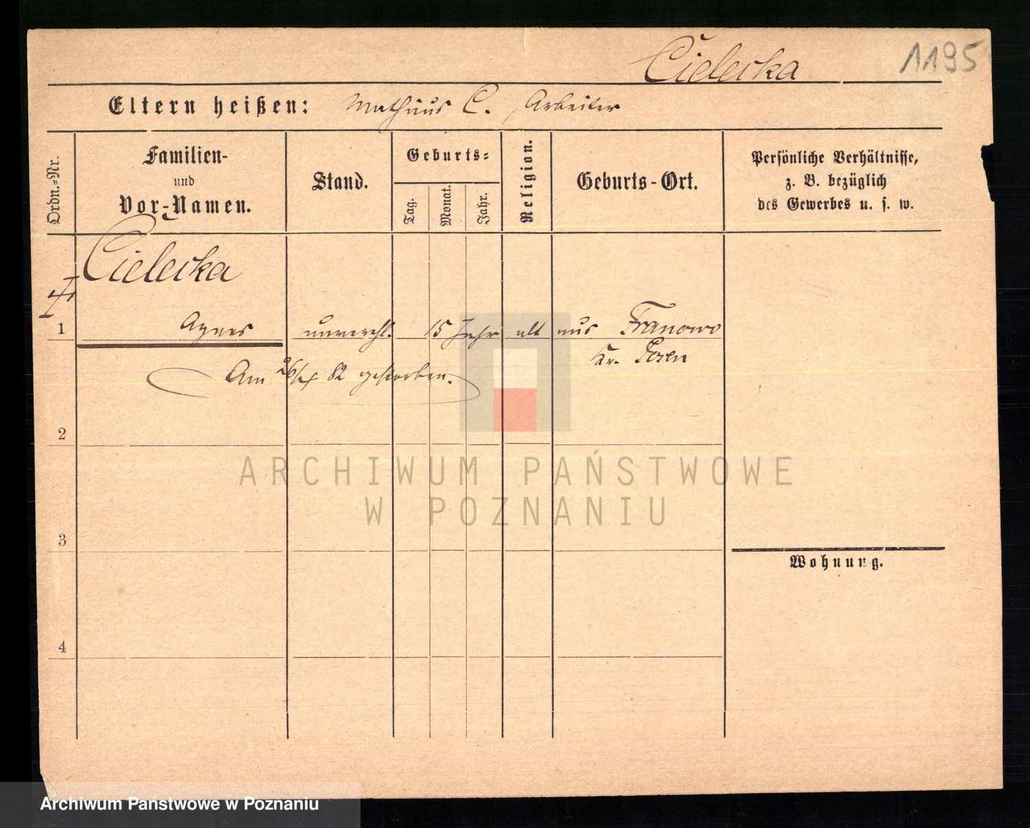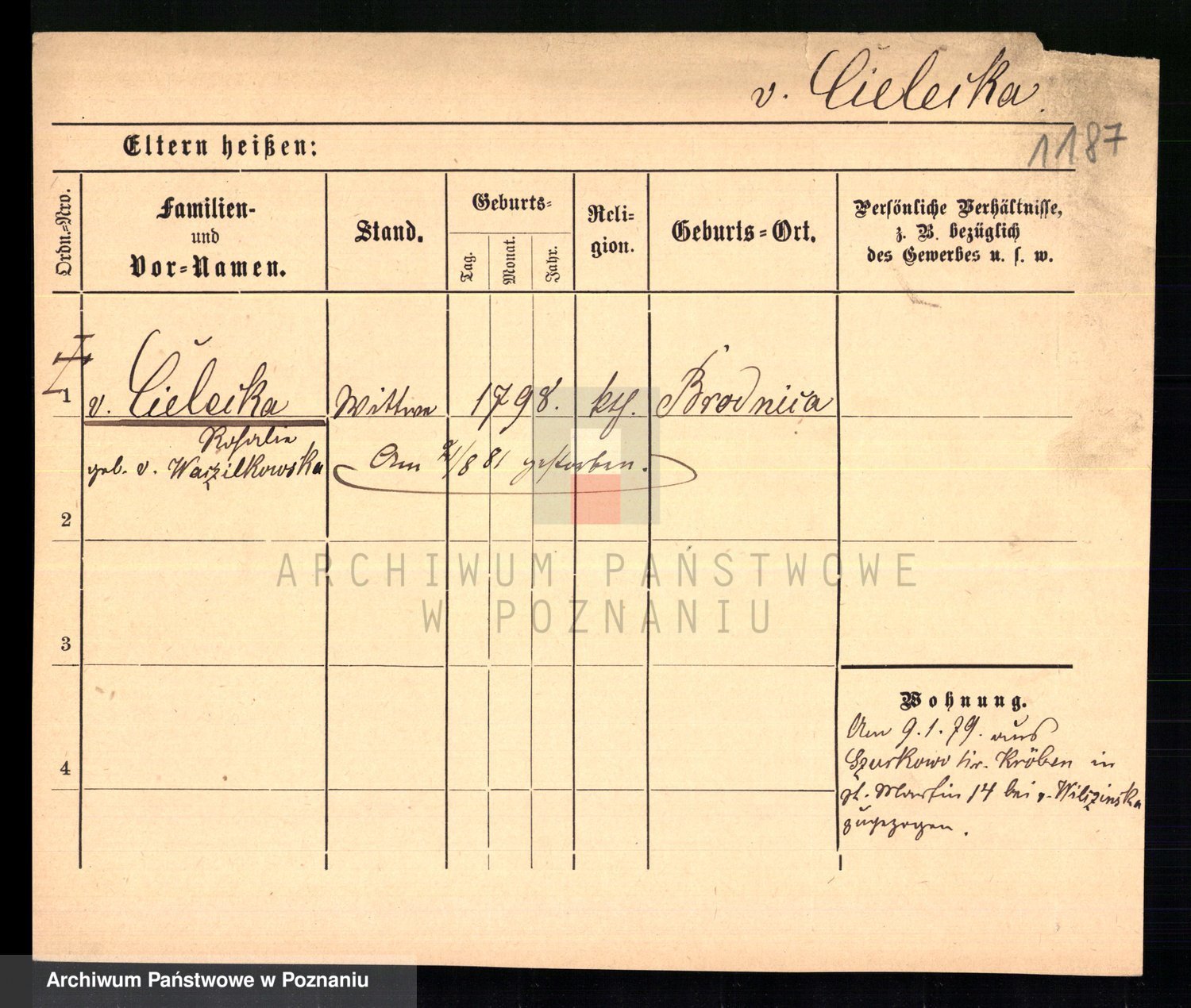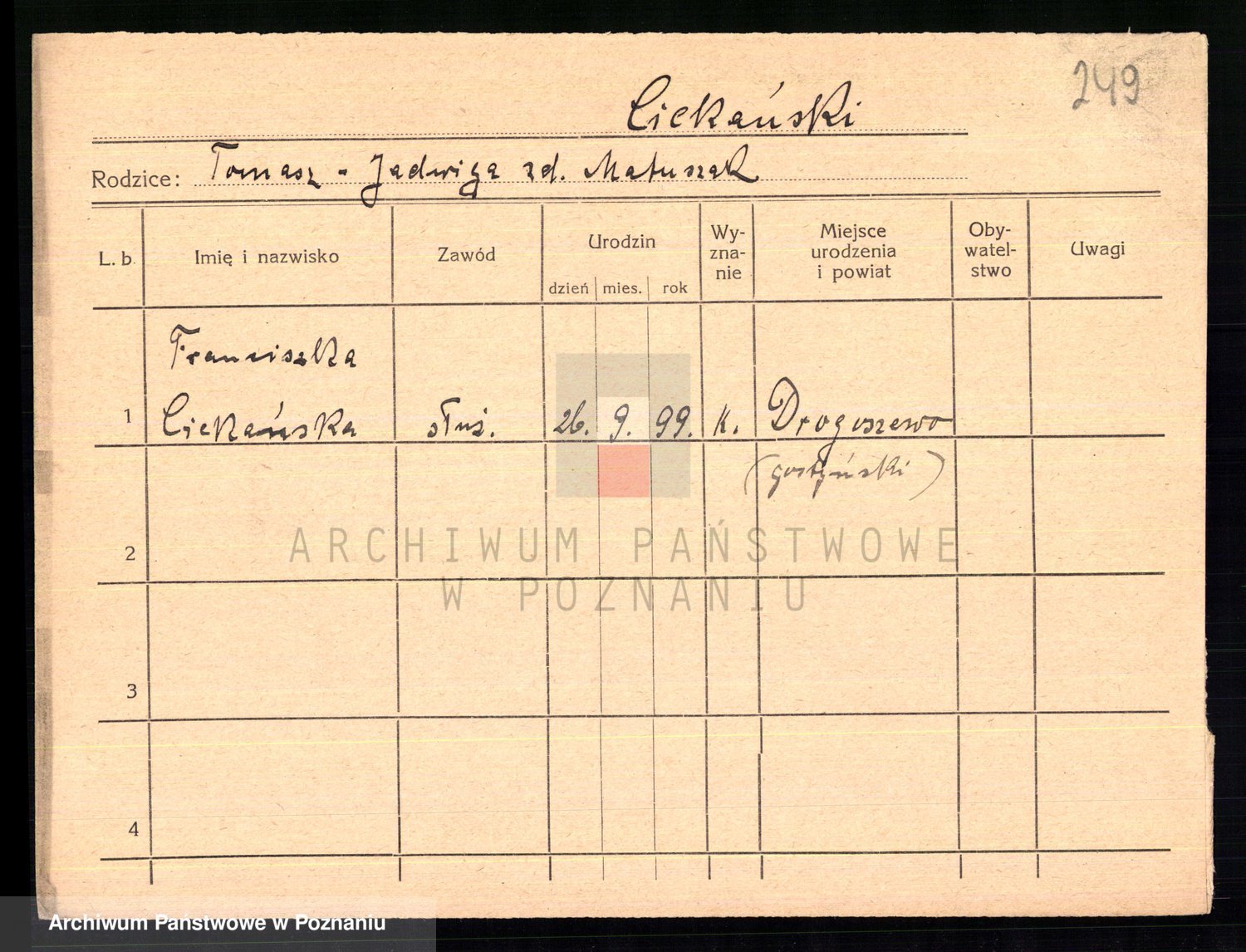 Cieloszyk z d. Wroniecka, Francisca