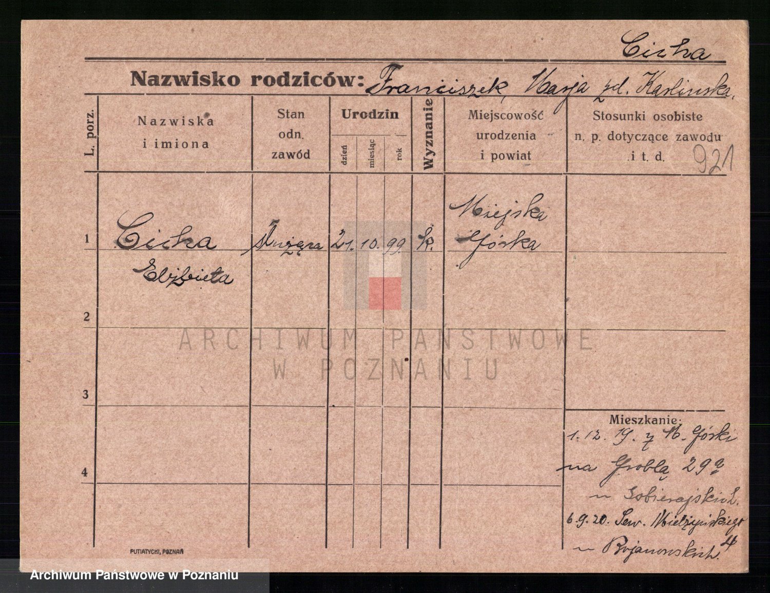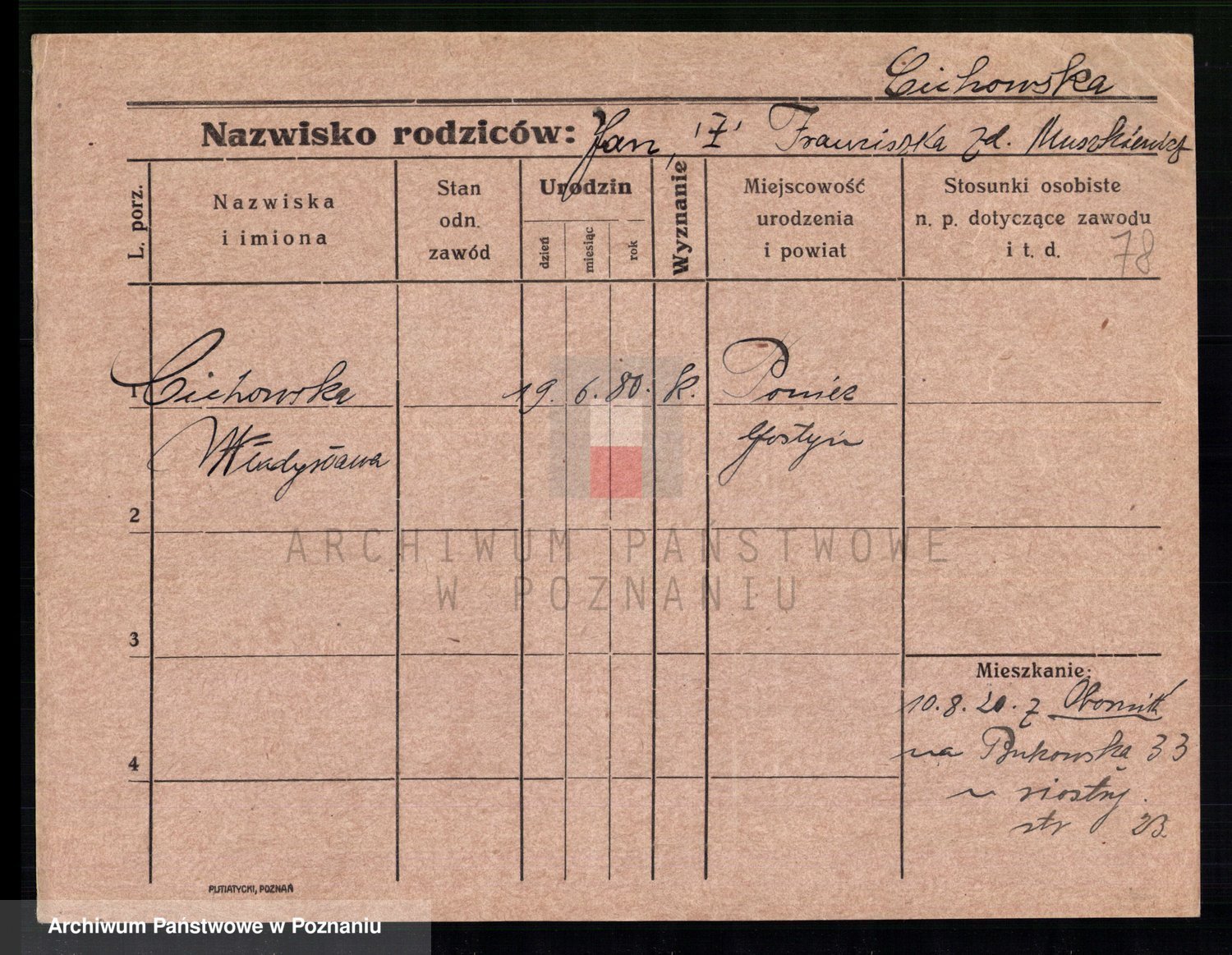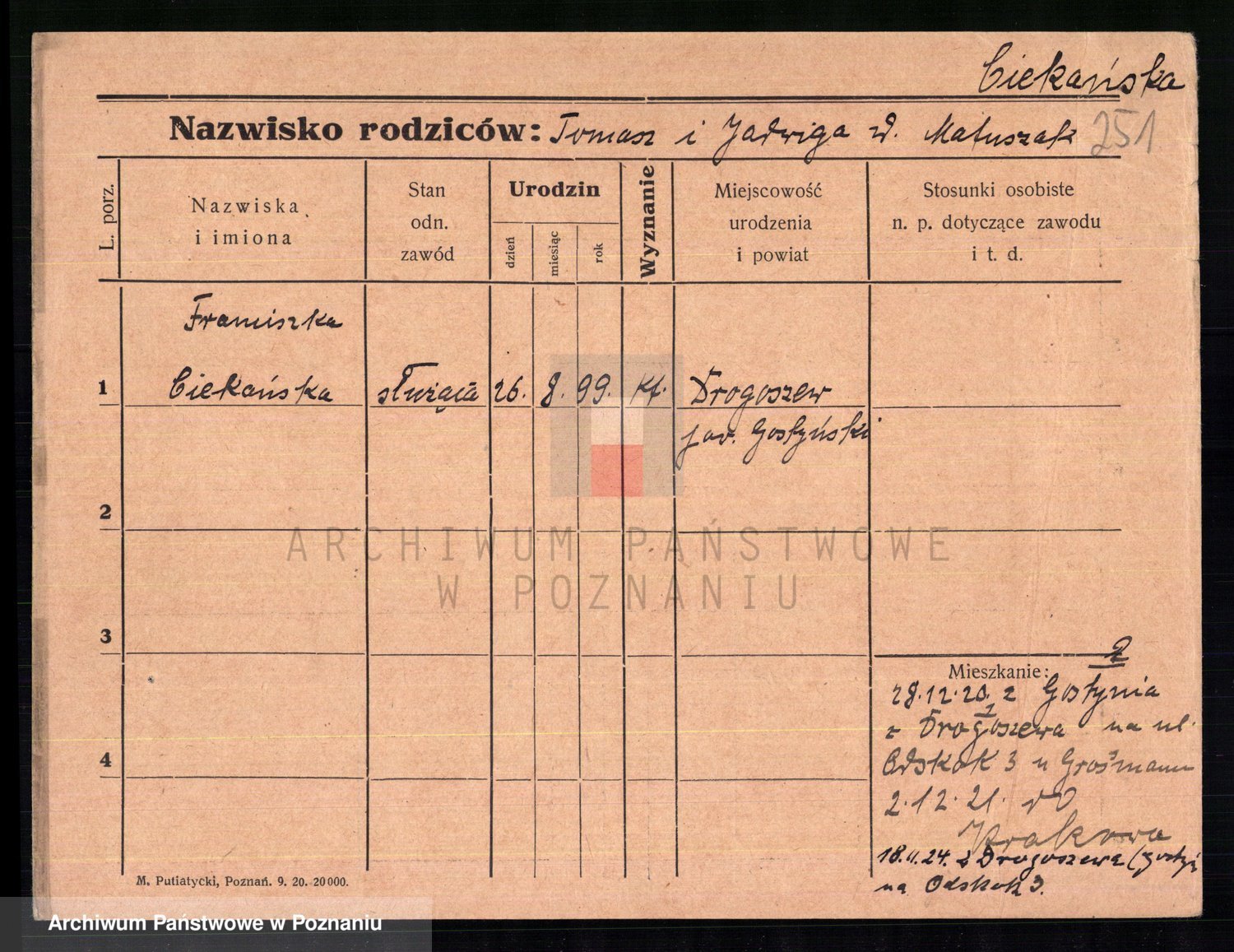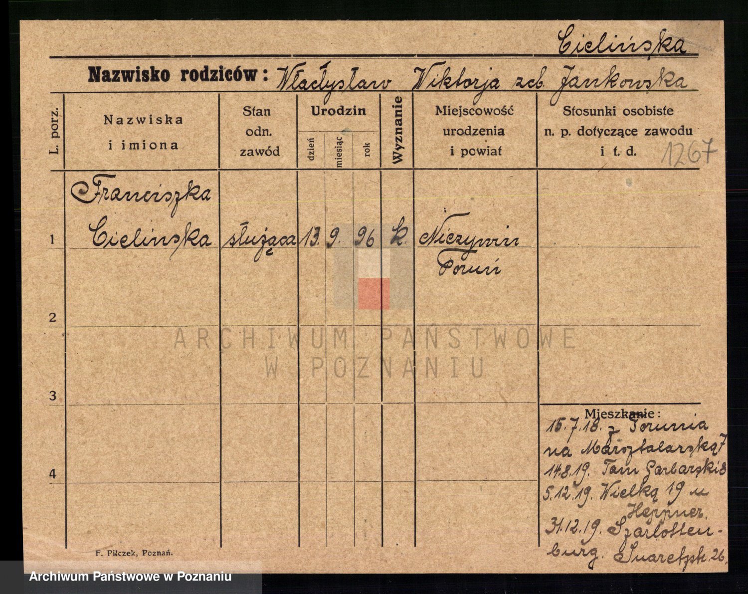 Cieloszyk z d. Wroniecka, Francisca