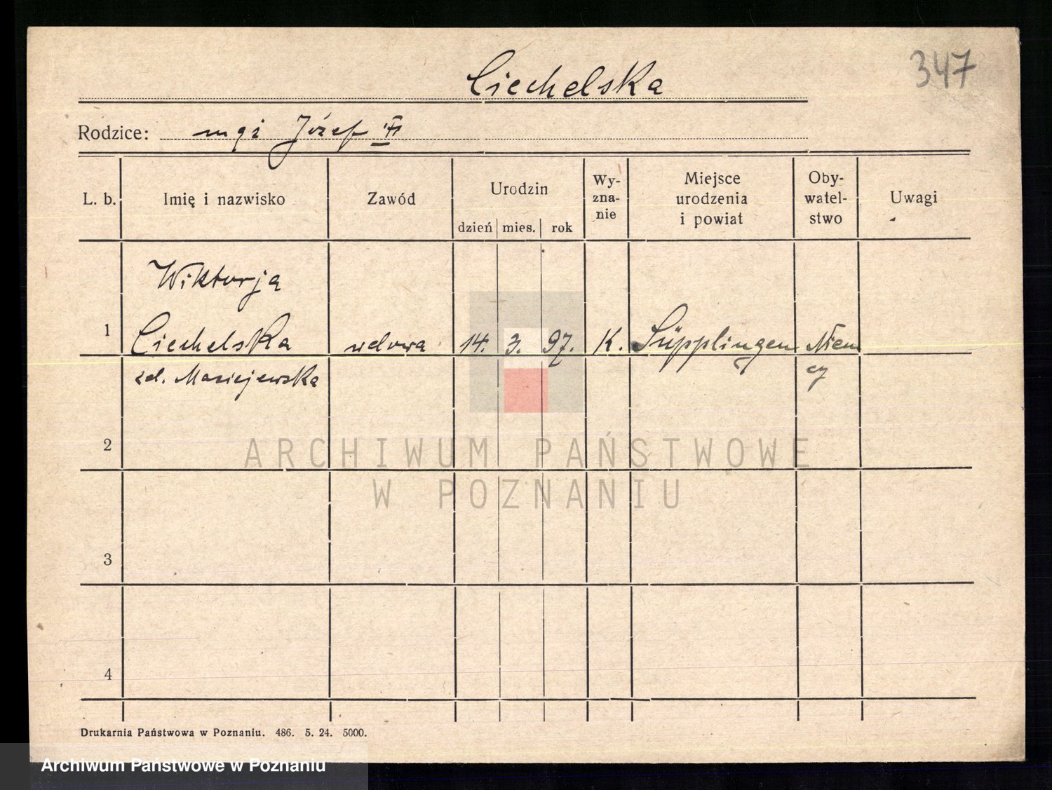 Cichowski z d. Stępniak, Wiktorja