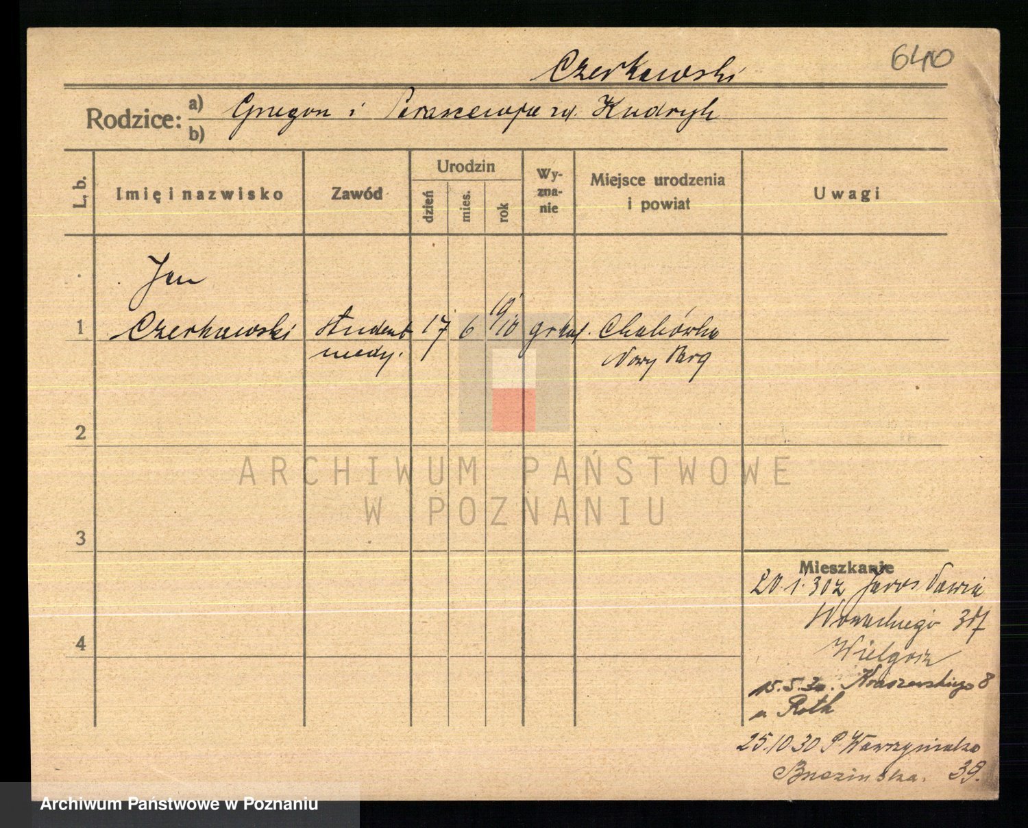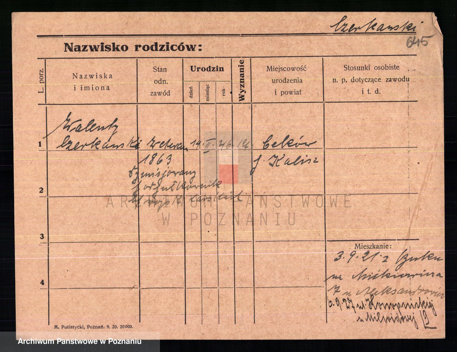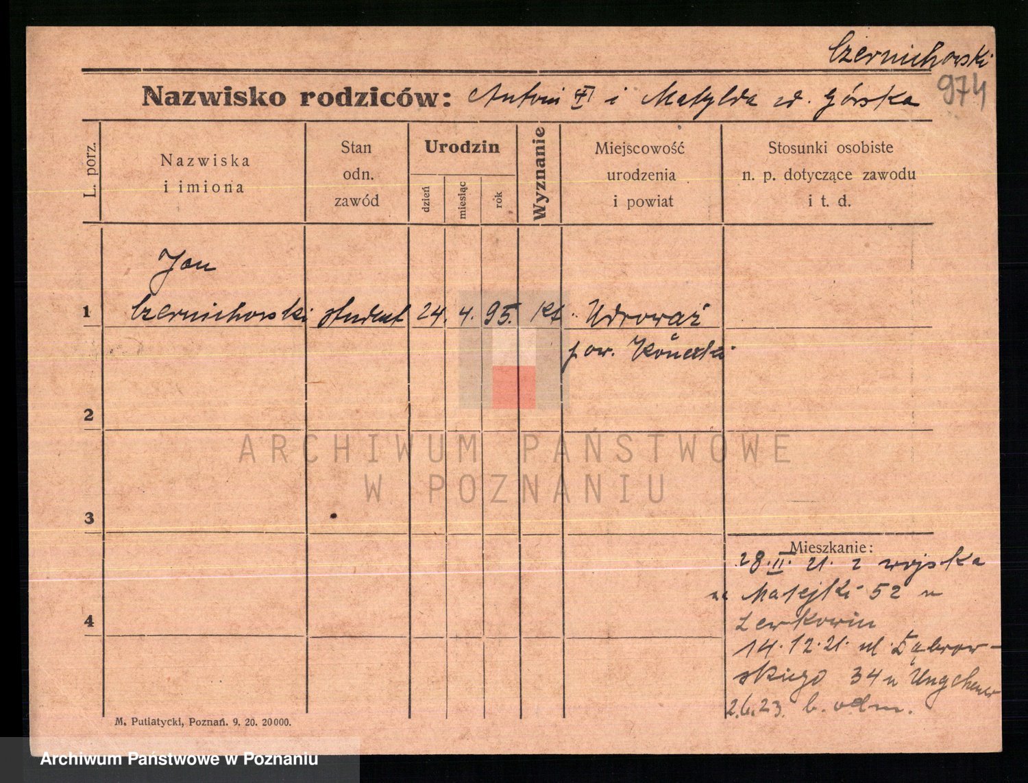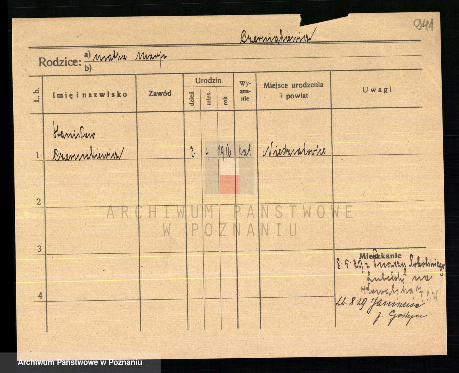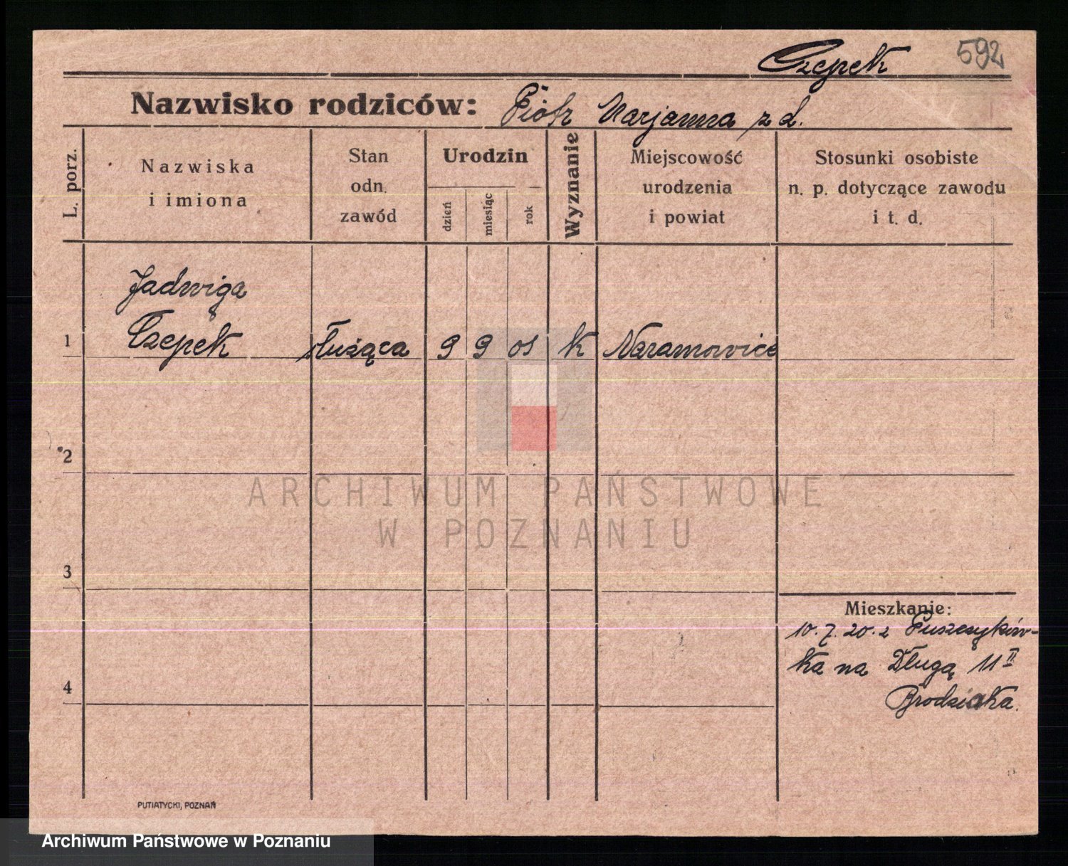 Podgląd karty osobowej dostępny jest po kliknięciu na nazwisko lub ikonkę karty. Można dokonywać powiększenia (ikony na górze) lub przechodzić między kolejnymi skanami (strzałki po bokach).