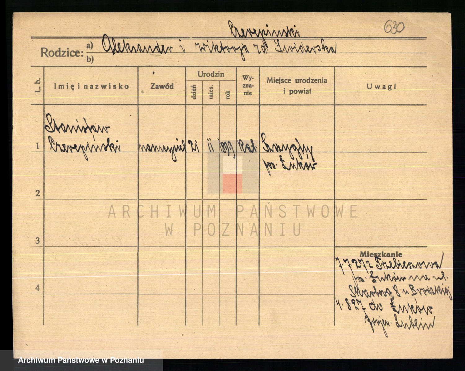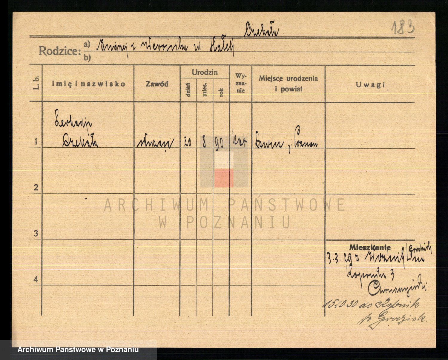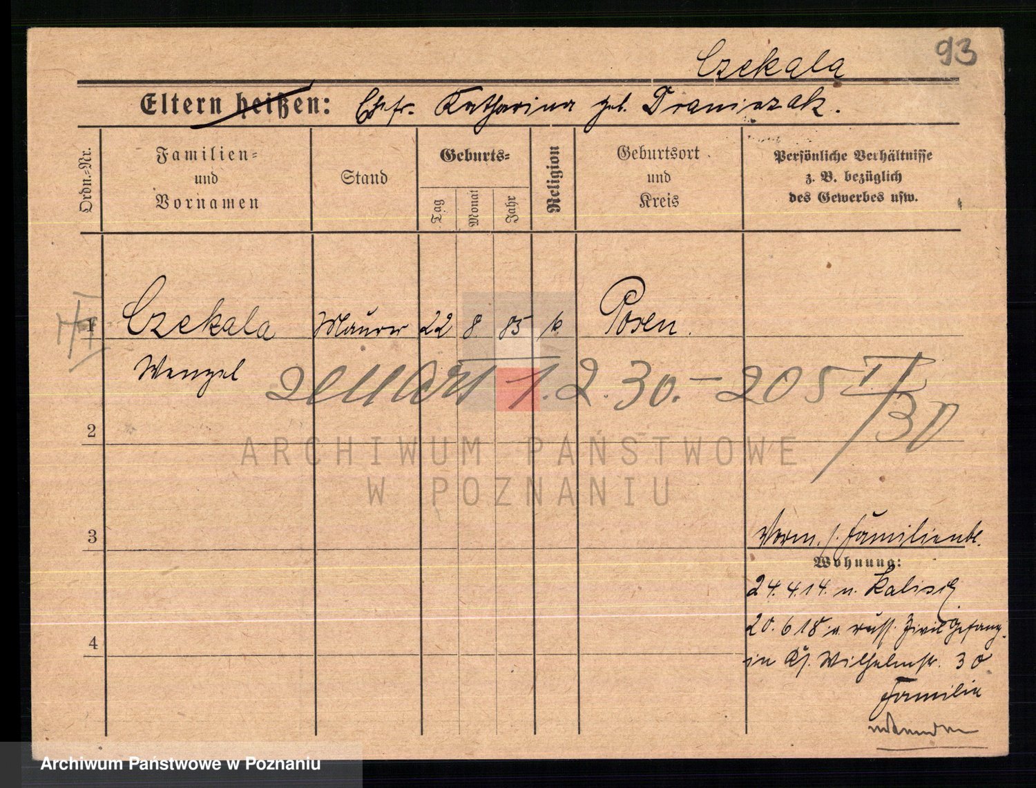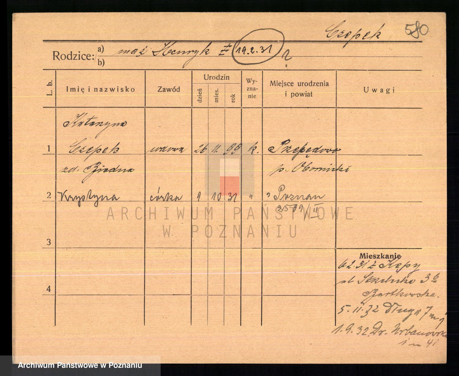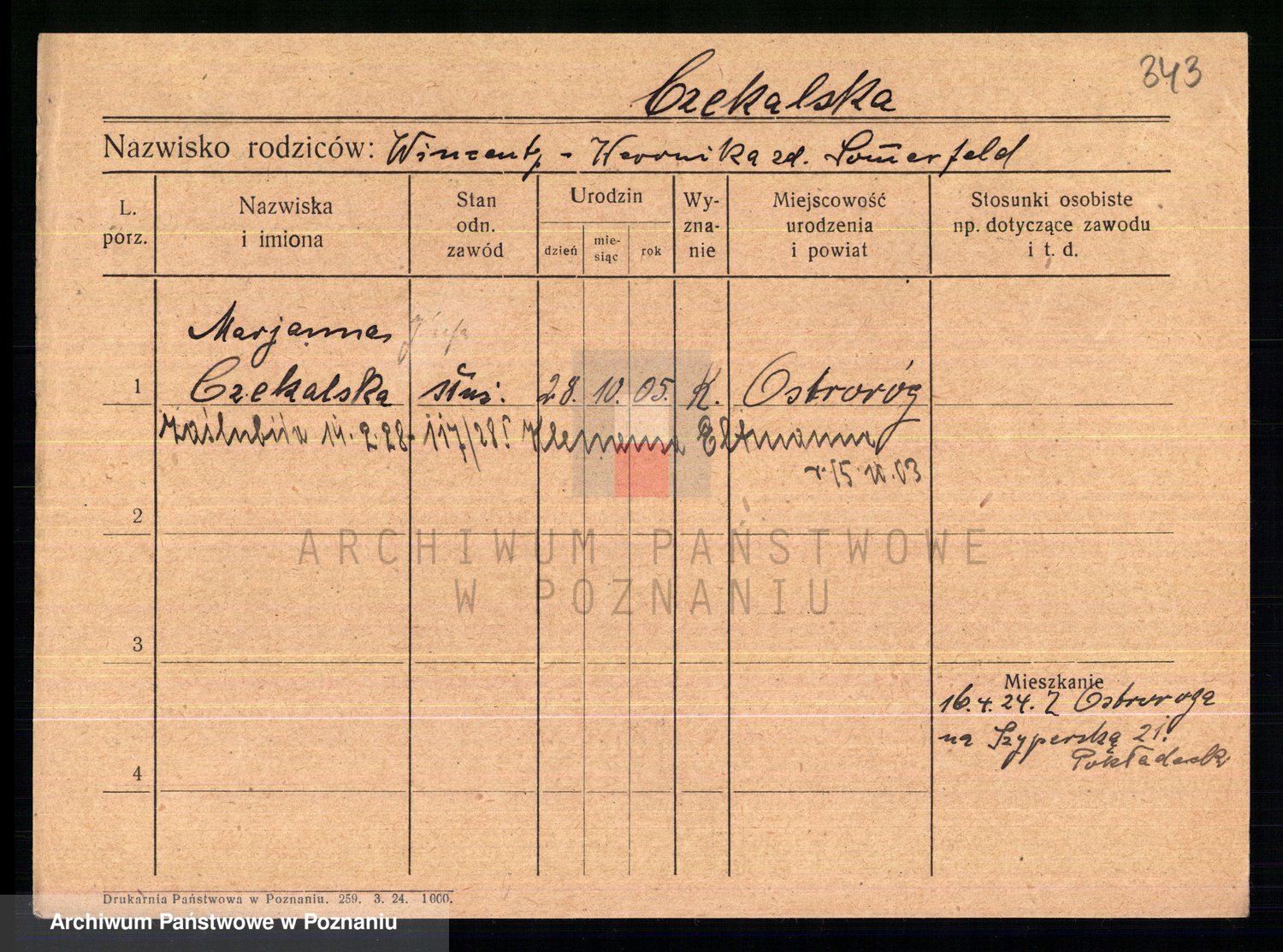Podgląd karty osobowej dostępny jest po kliknięciu na nazwisko lub ikonkę karty. Można dokonywać powiększenia (ikony na górze) lub przechodzić między kolejnymi skanami (strzałki po bokach).