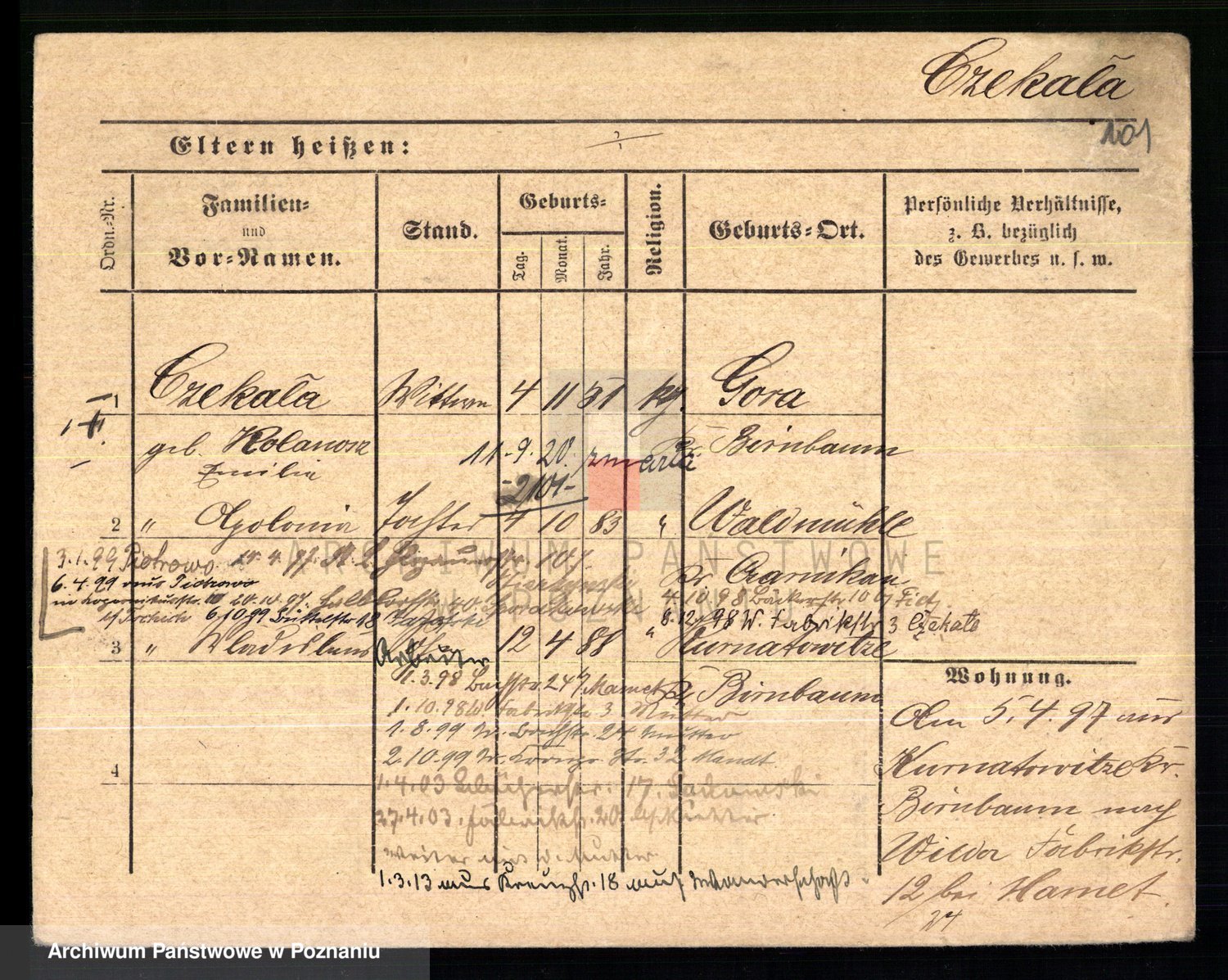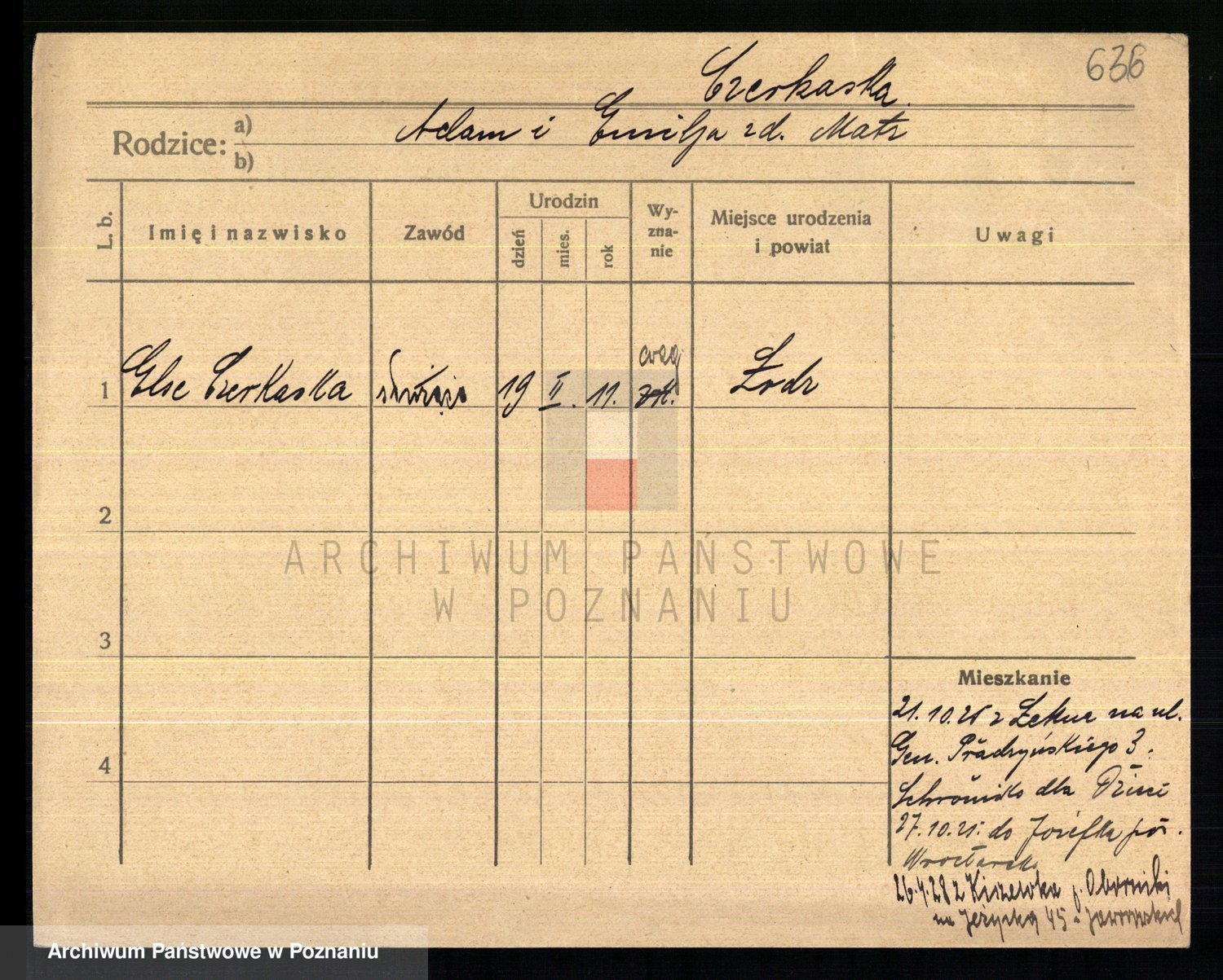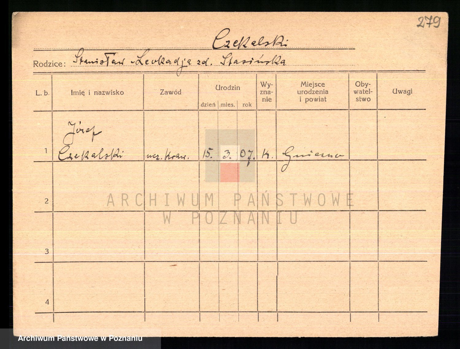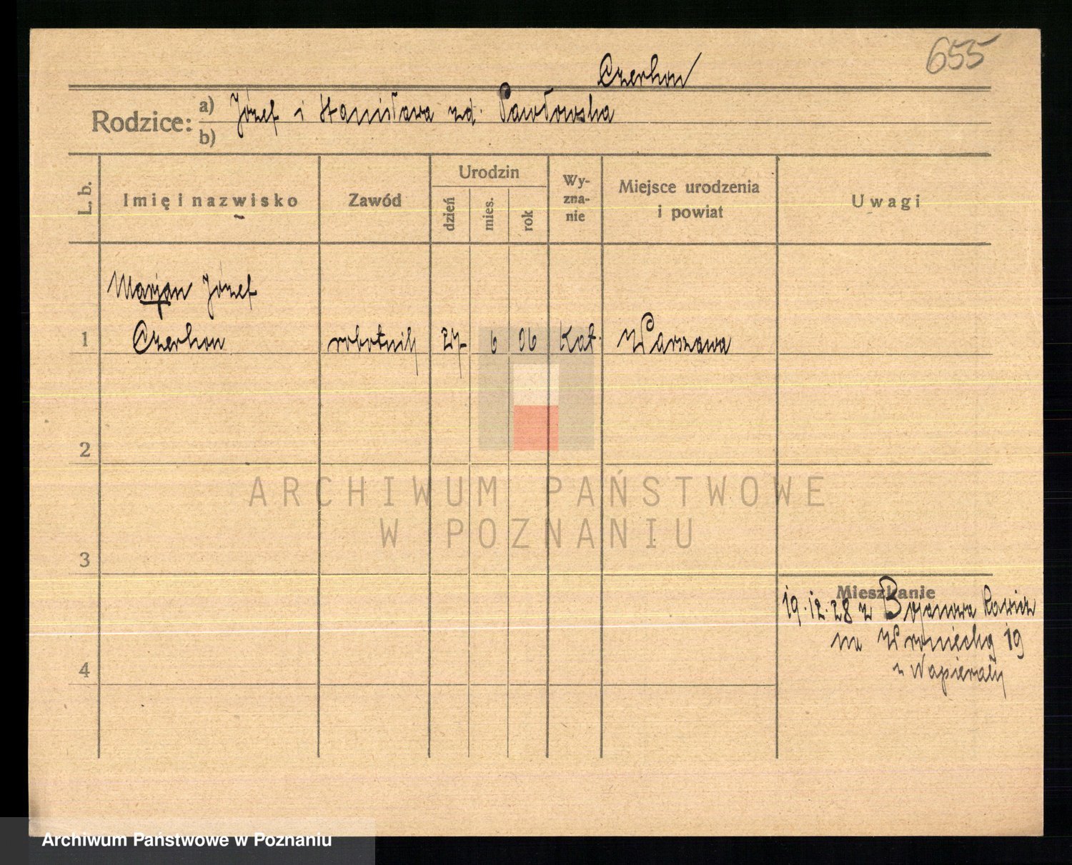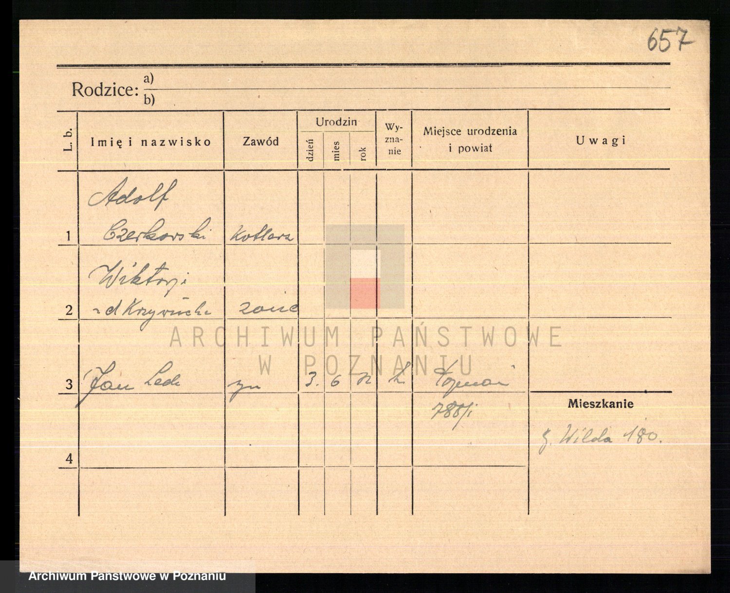 Podgląd karty osobowej dostępny jest po kliknięciu na nazwisko lub ikonkę karty. Można dokonywać powiększenia (ikony na górze) lub przechodzić między kolejnymi skanami (strzałki po bokach).