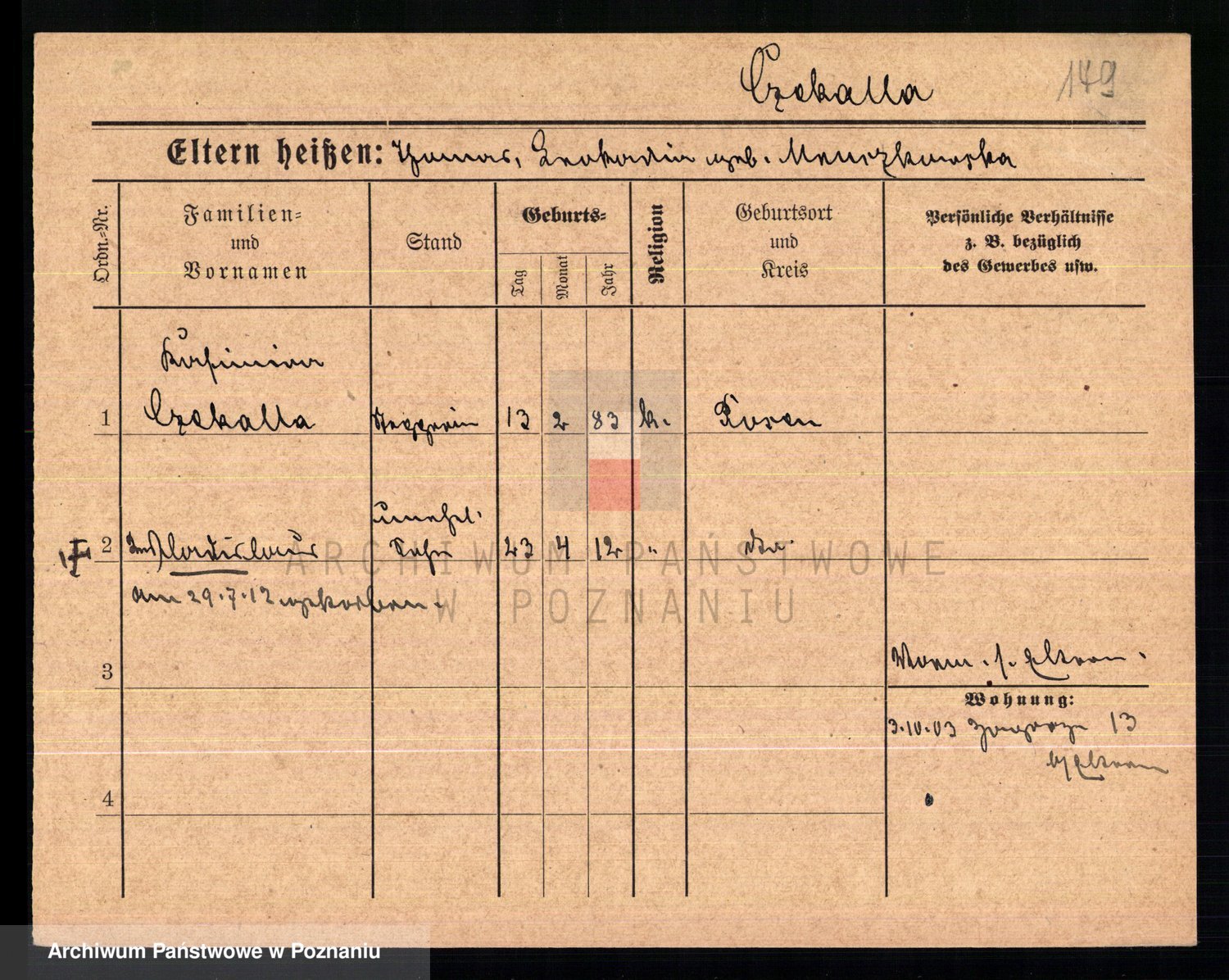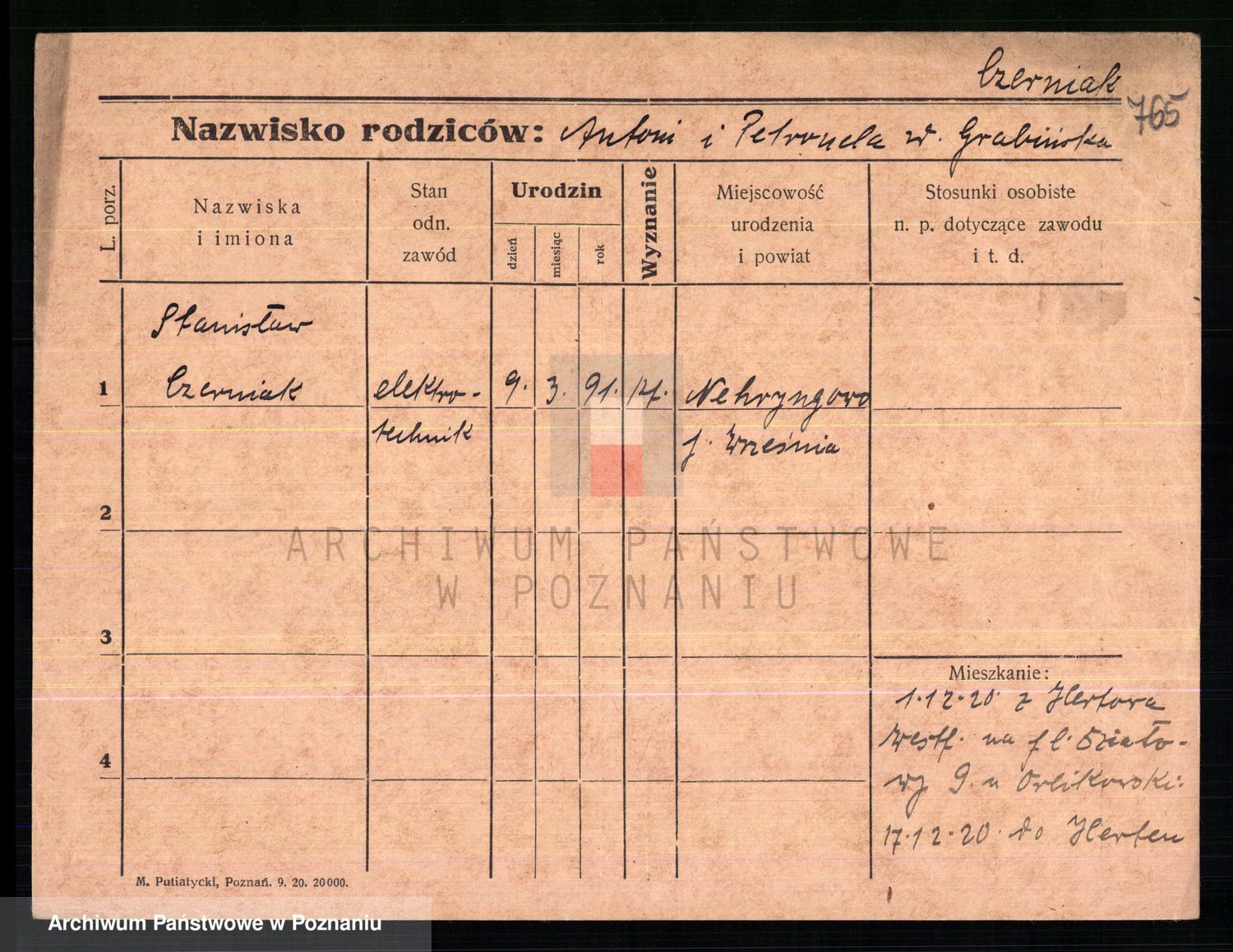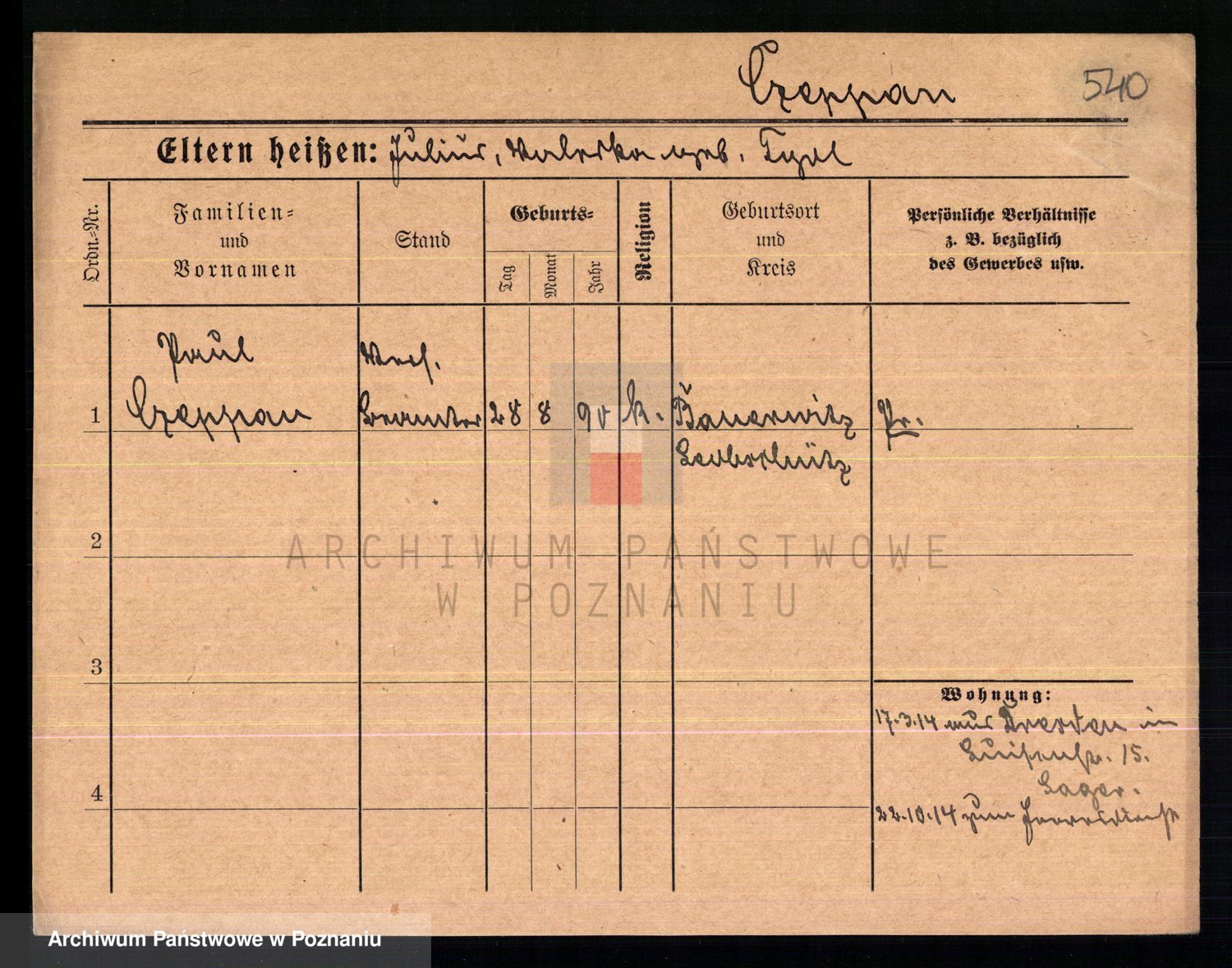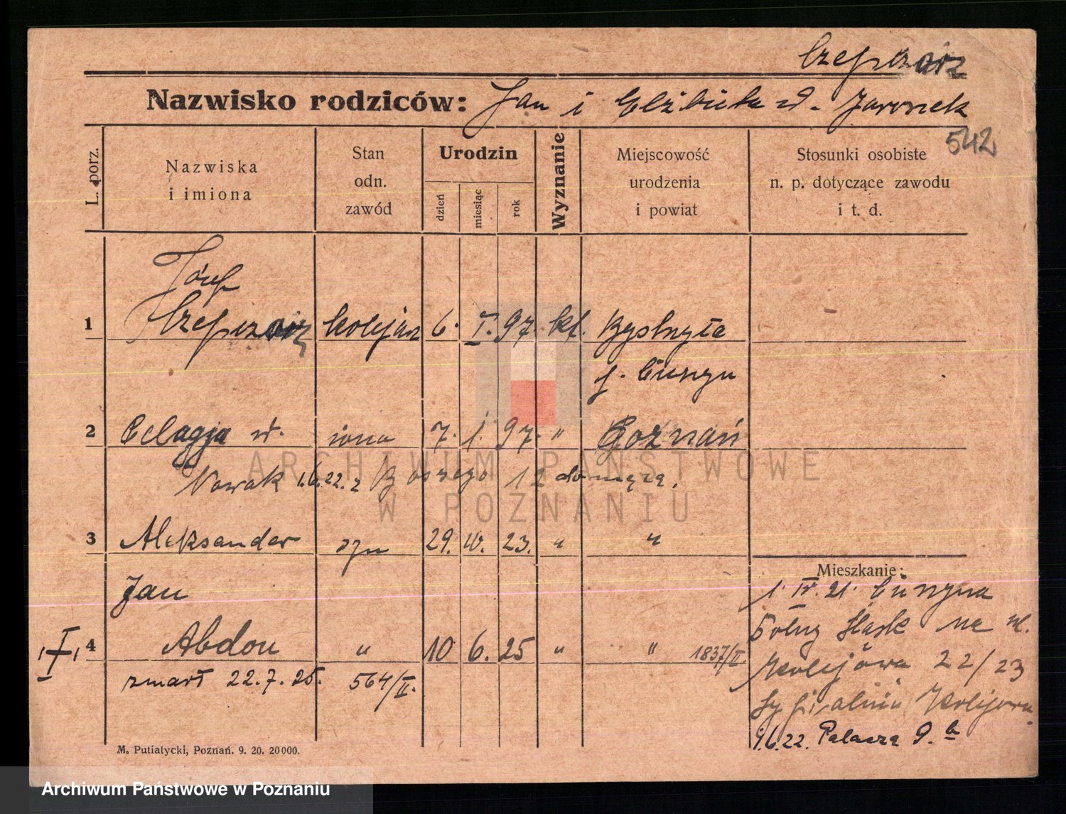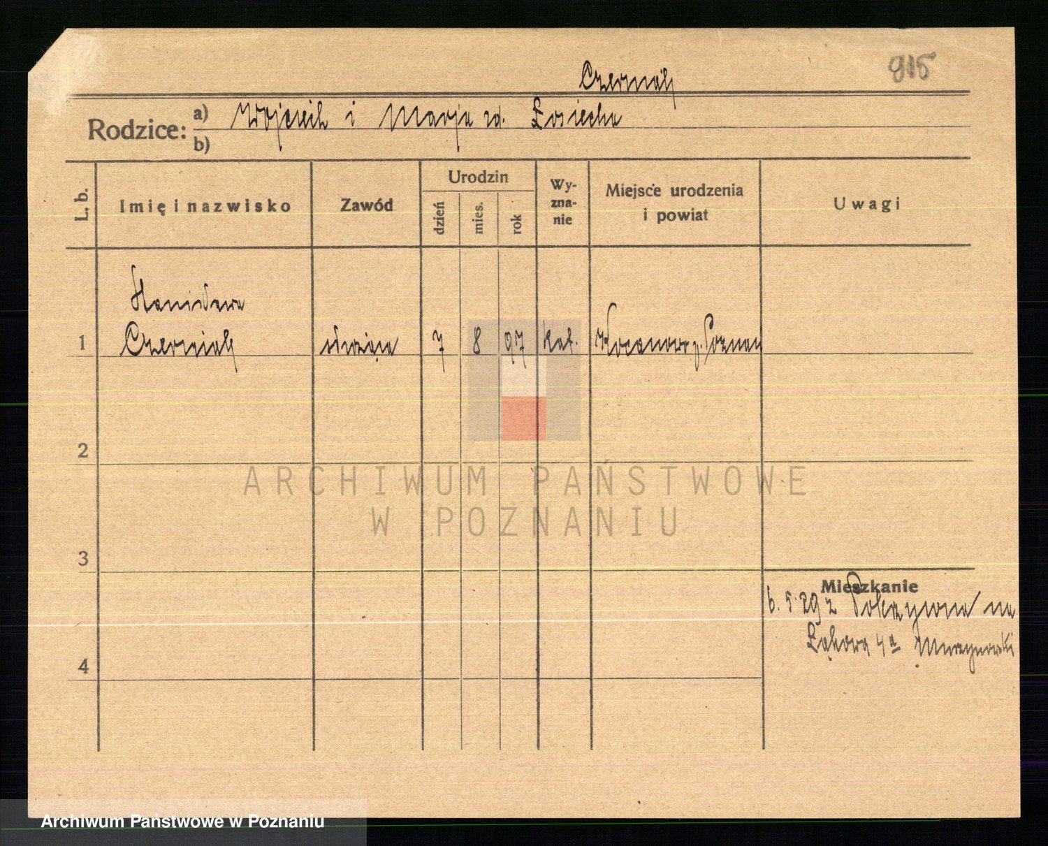 Podgląd karty osobowej dostępny jest po kliknięciu na nazwisko lub ikonkę karty. Można dokonywać powiększenia (ikony na górze) lub przechodzić między kolejnymi skanami (strzałki po bokach).