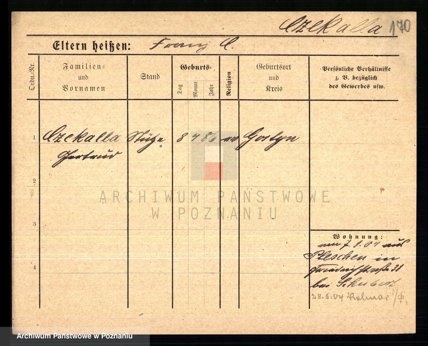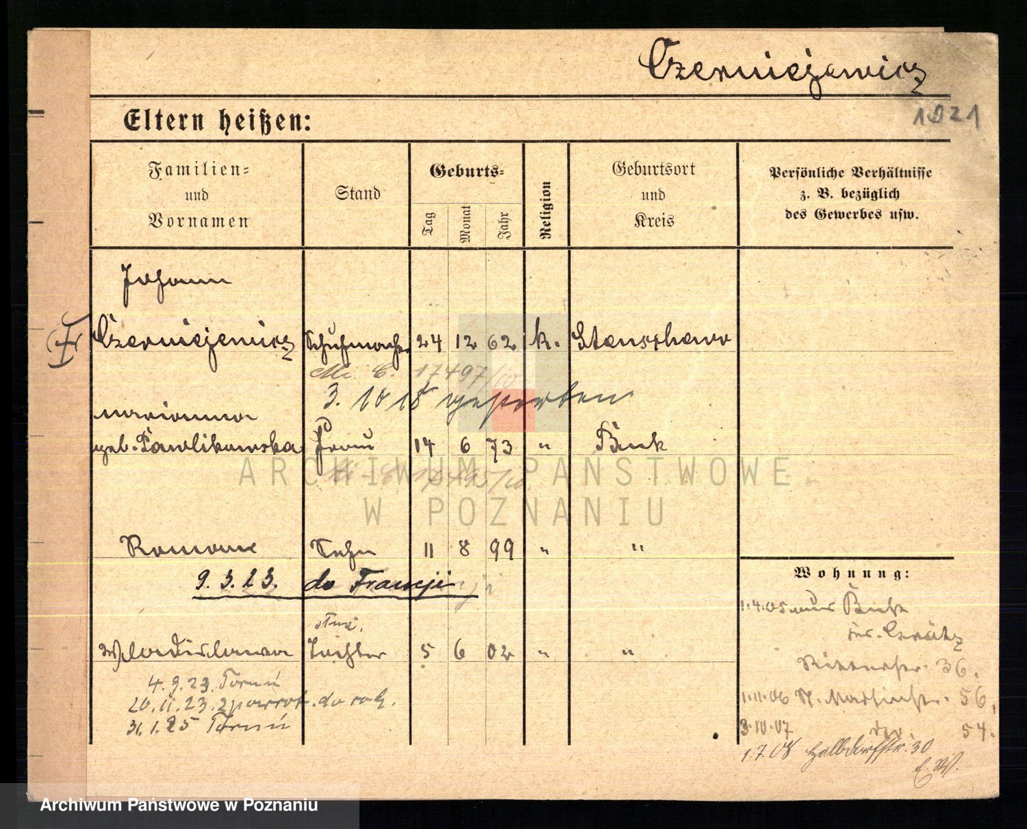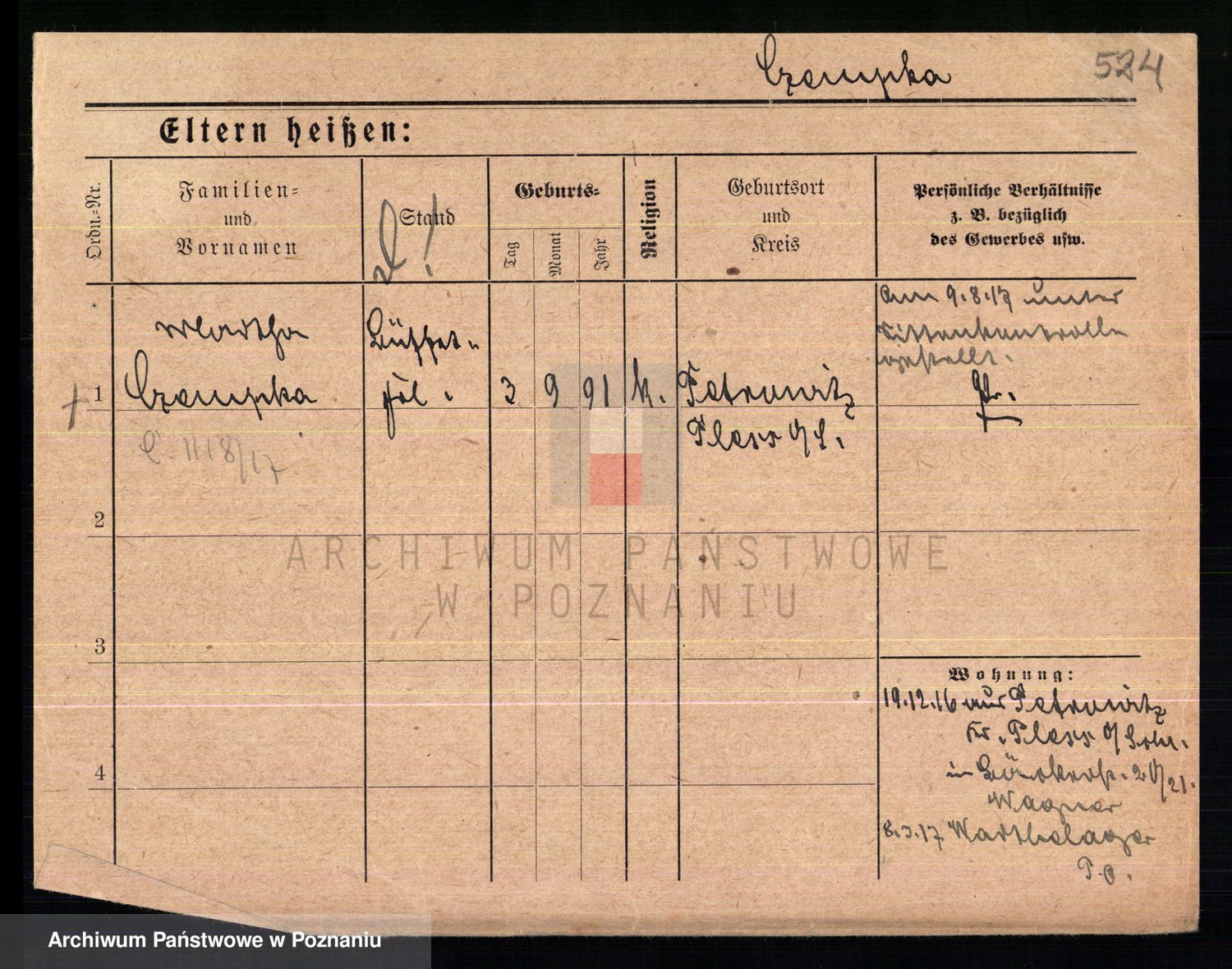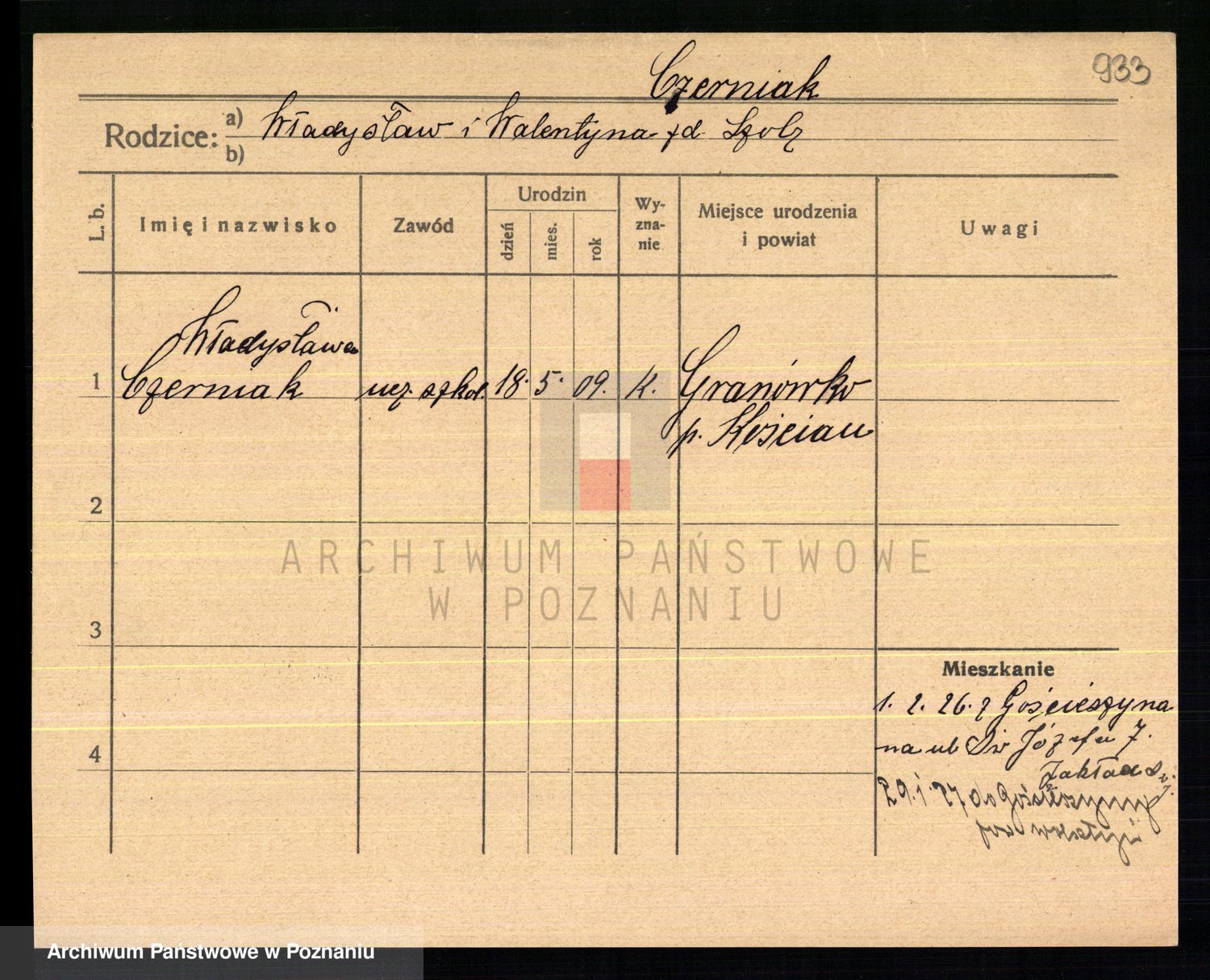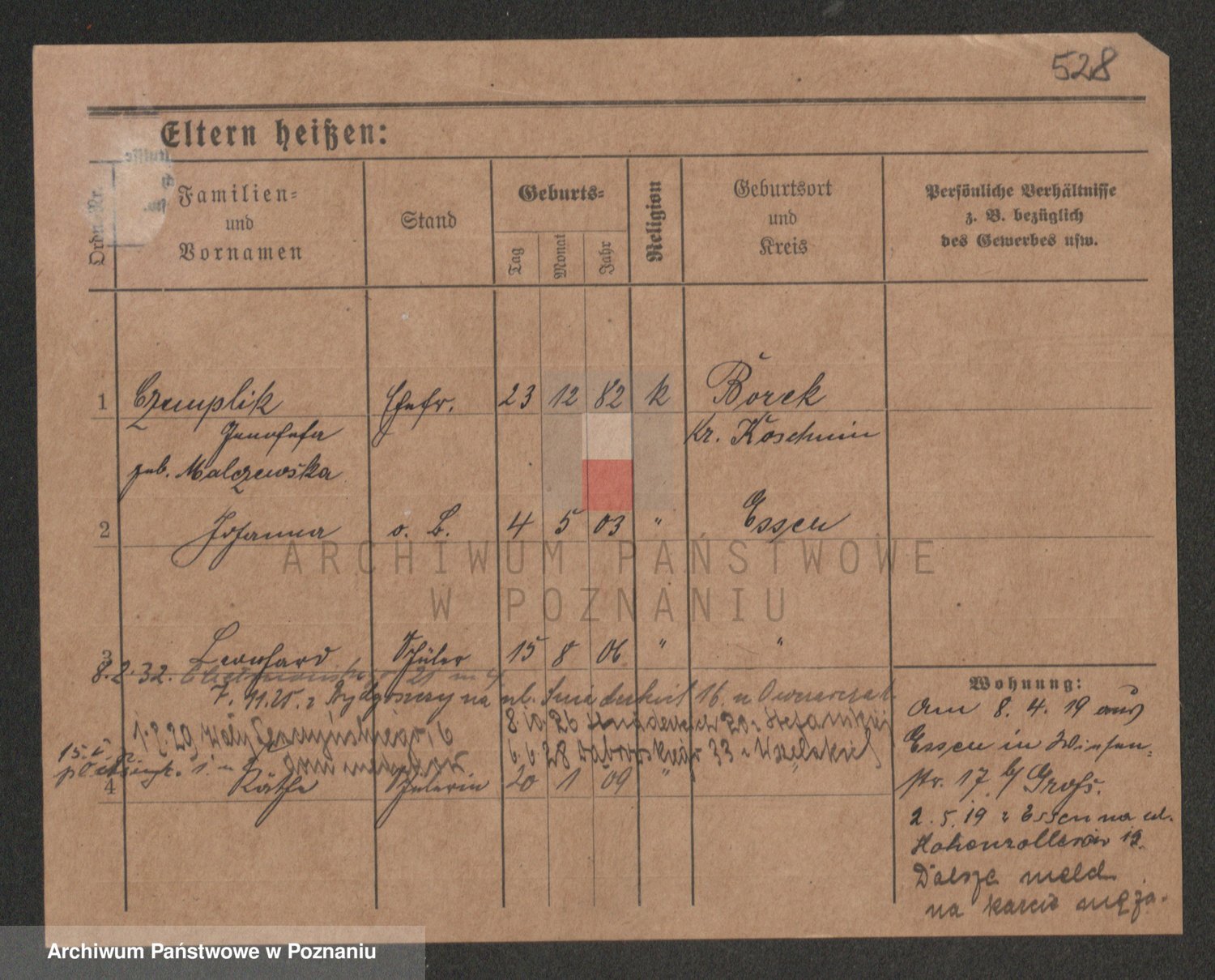 Podgląd karty osobowej dostępny jest po kliknięciu na nazwisko lub ikonkę karty. Można dokonywać powiększenia (ikony na górze) lub przechodzić między kolejnymi skanami (strzałki po bokach).