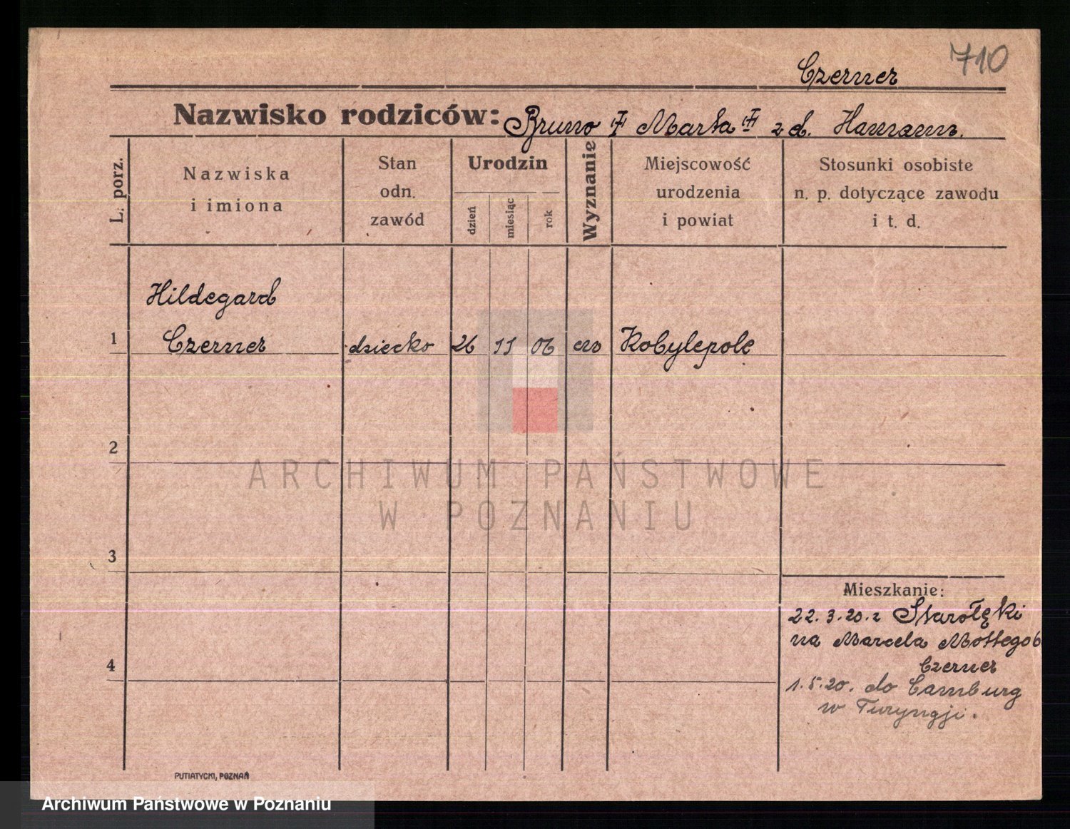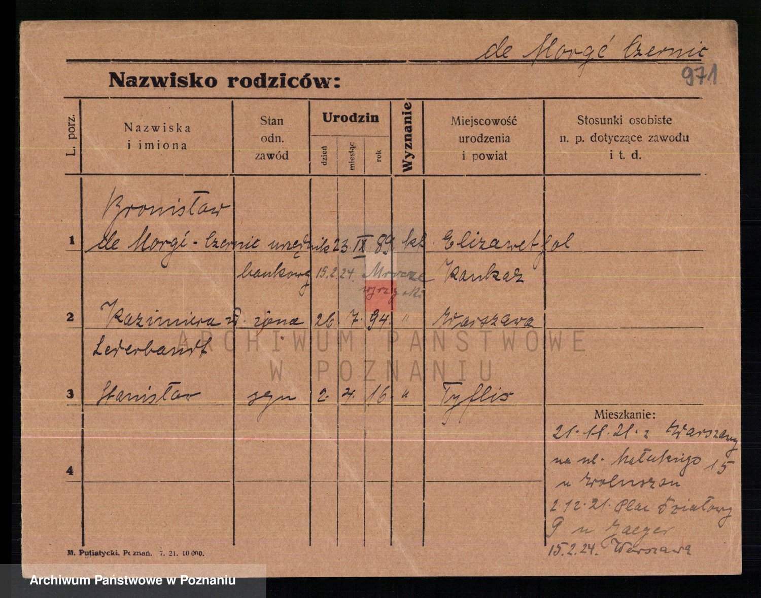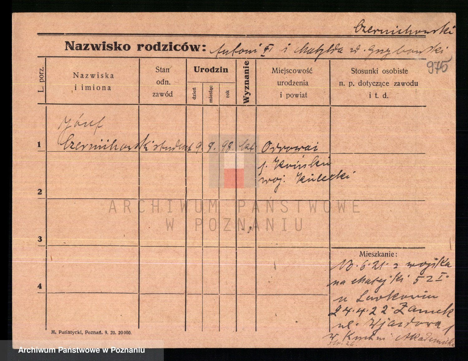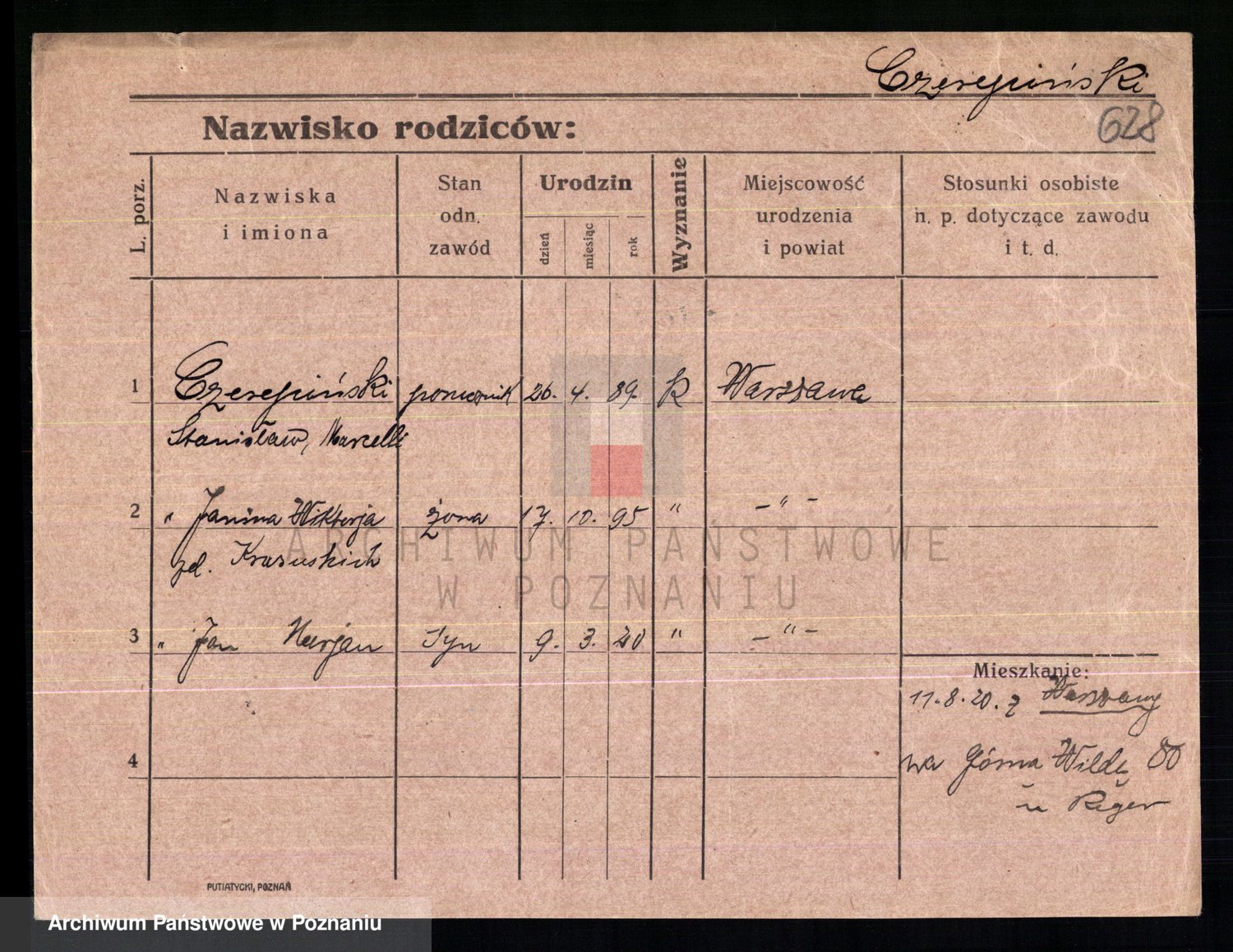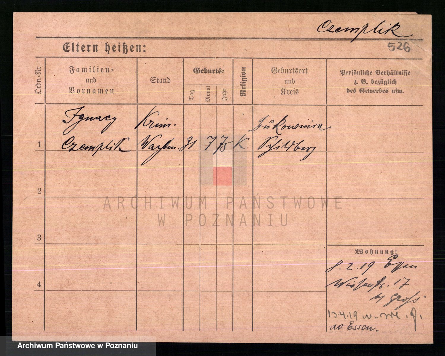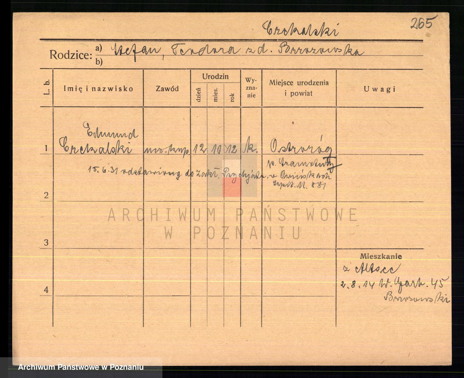 Podgląd karty osobowej dostępny jest po kliknięciu na nazwisko lub ikonkę karty. Można dokonywać powiększenia (ikony na górze) lub przechodzić między kolejnymi skanami (strzałki po bokach).