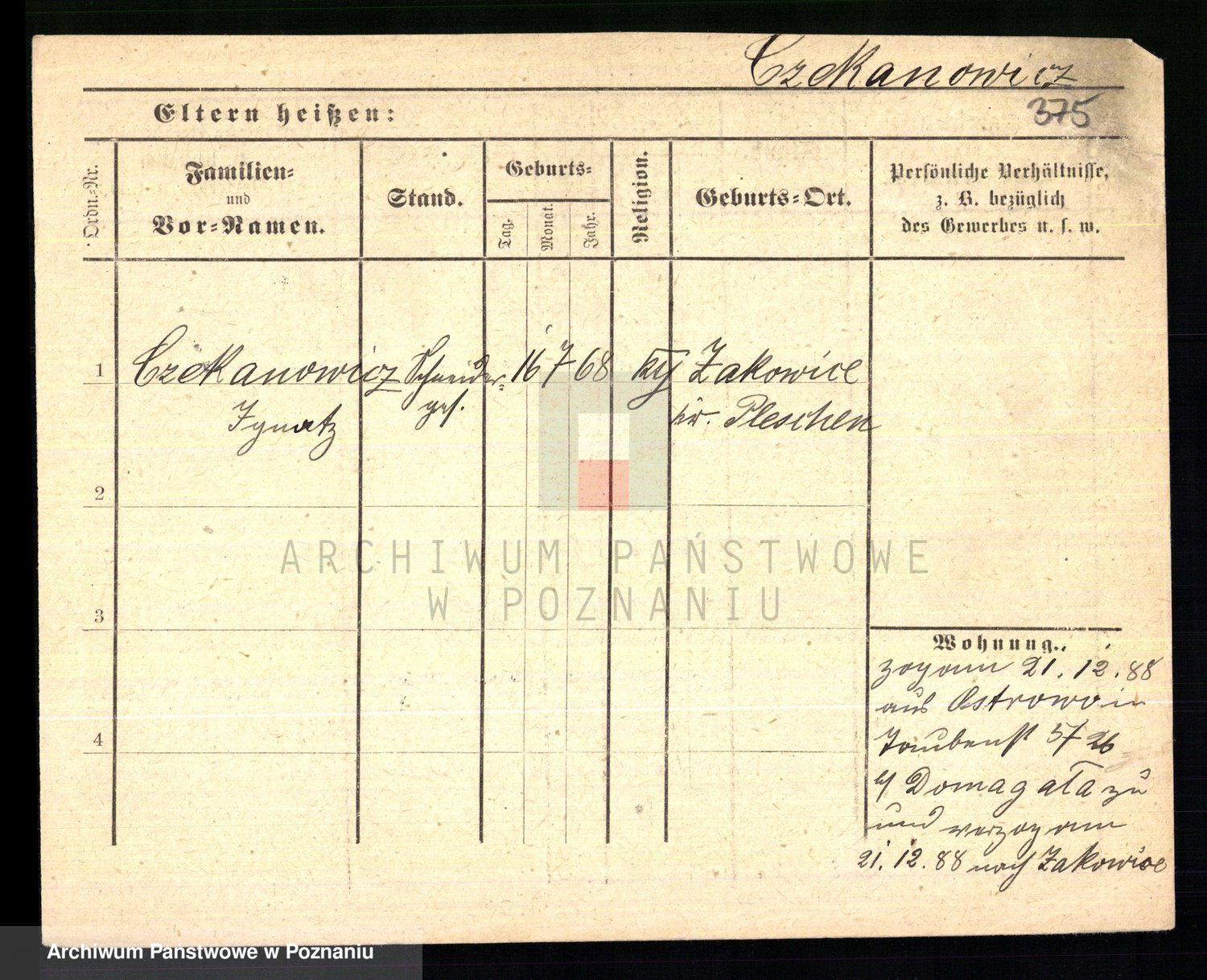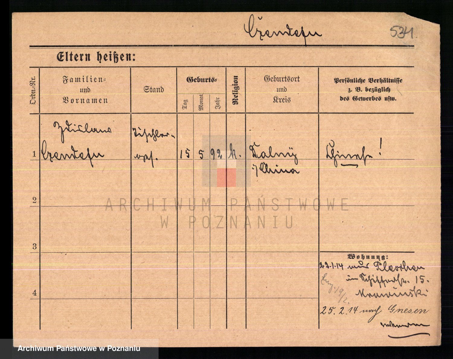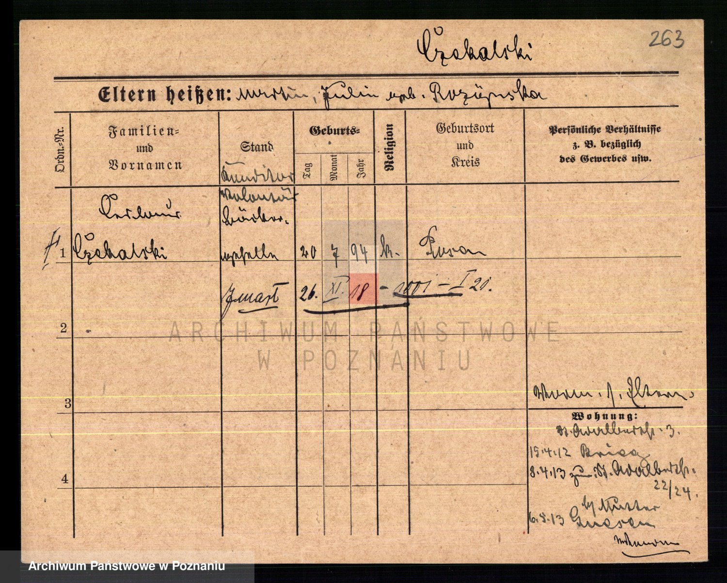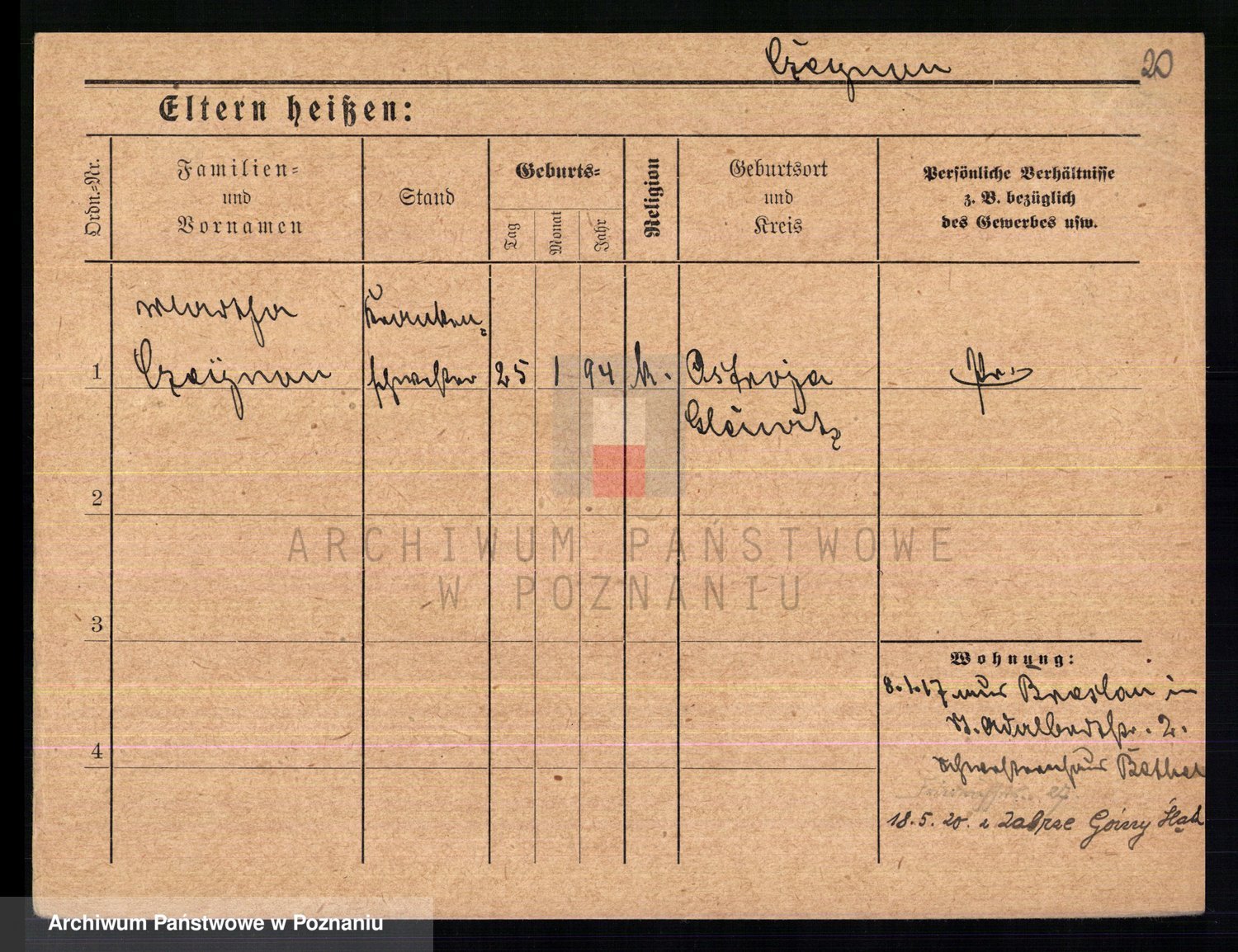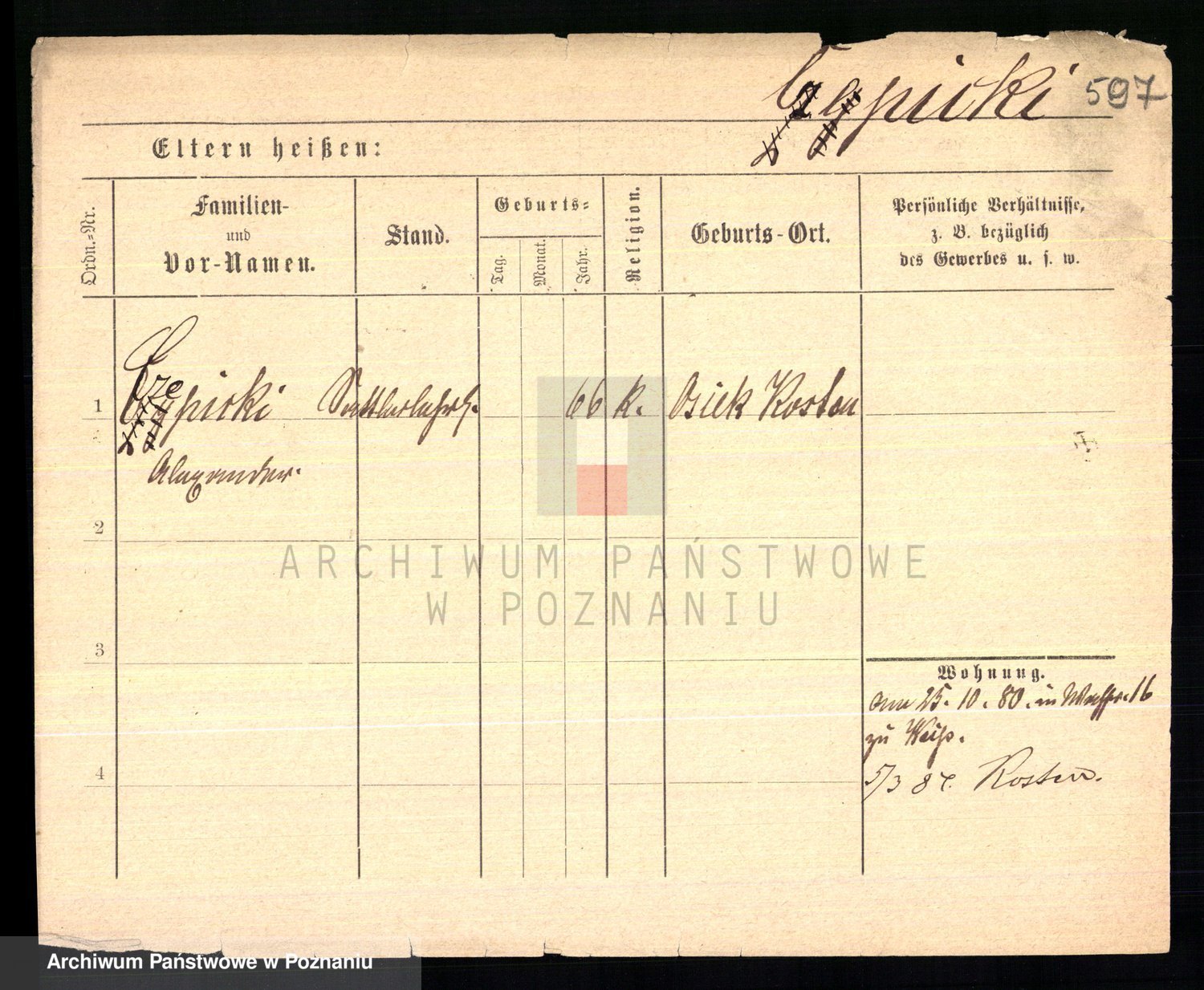 Podgląd karty osobowej dostępny jest po kliknięciu na nazwisko lub ikonkę karty. Można dokonywać powiększenia (ikony na górze) lub przechodzić między kolejnymi skanami (strzałki po bokach).