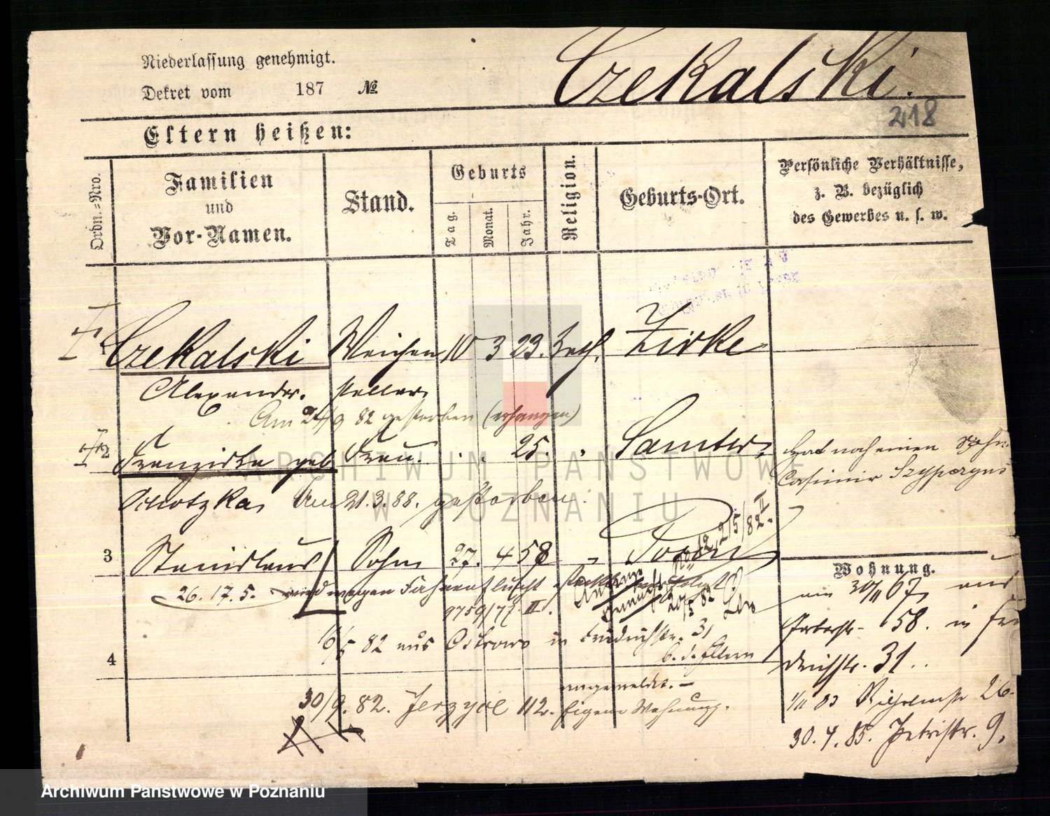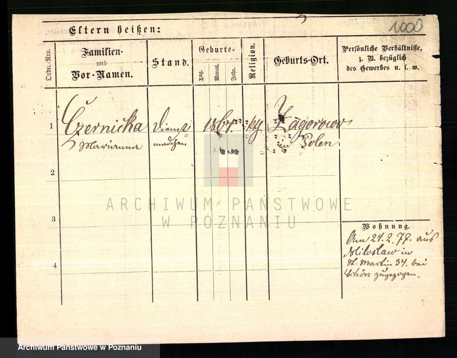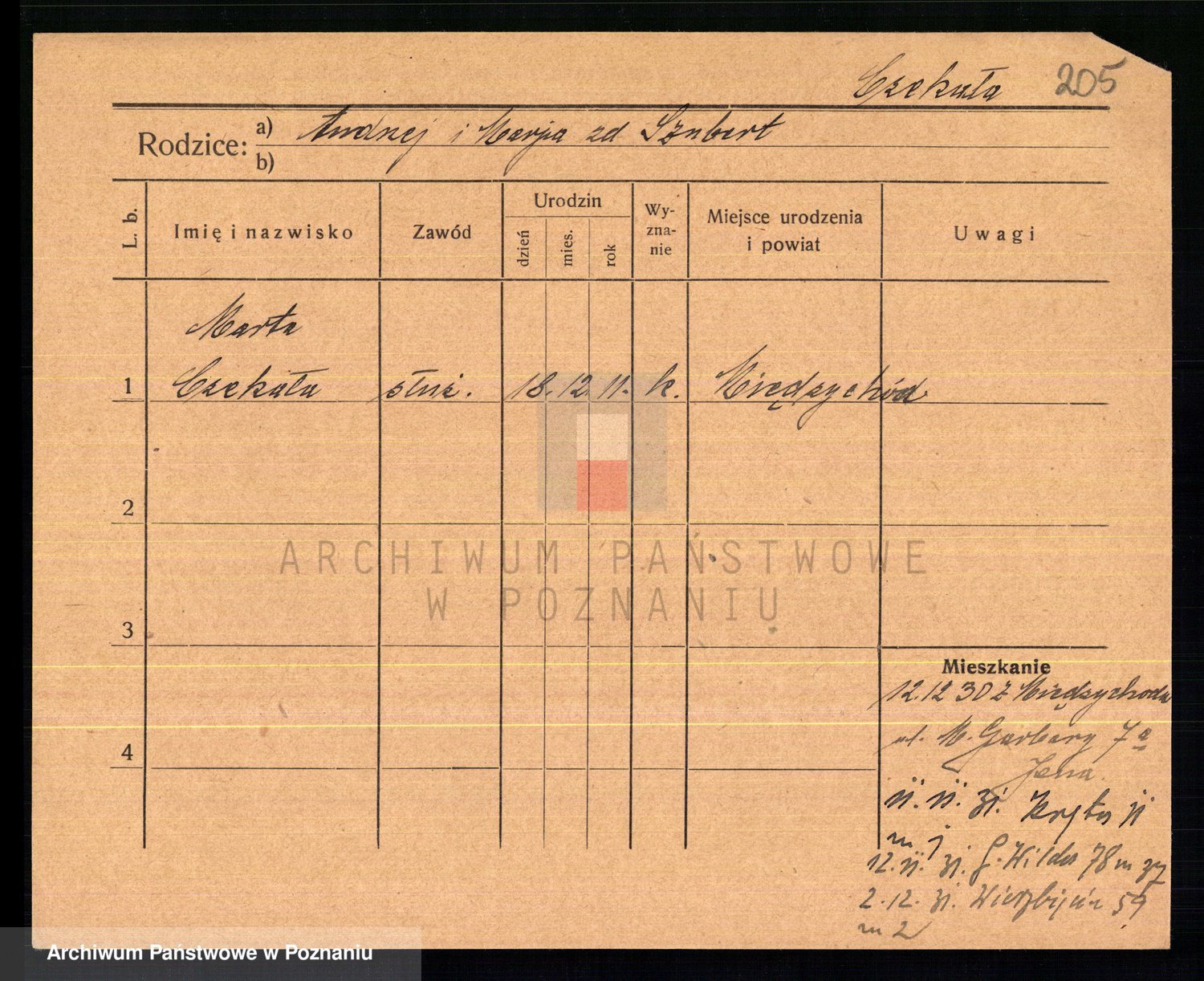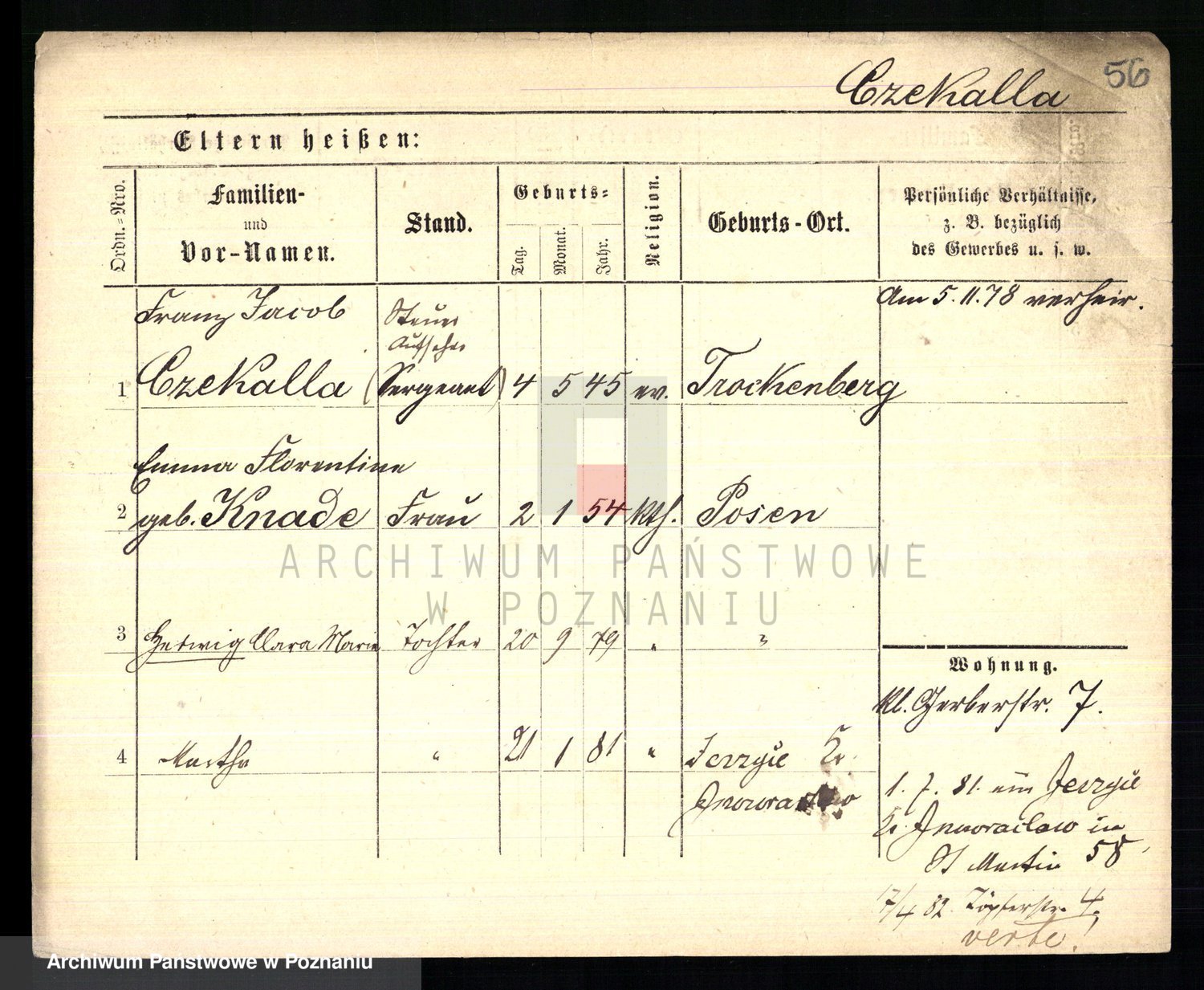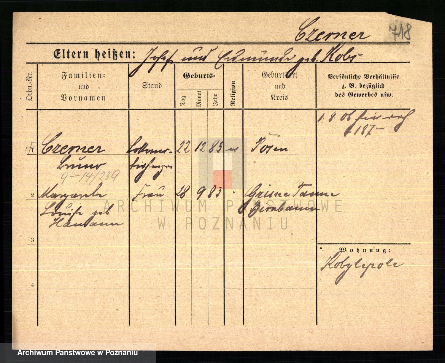 Podgląd karty osobowej dostępny jest po kliknięciu na nazwisko lub ikonkę karty. Można dokonywać powiększenia (ikony na górze) lub przechodzić między kolejnymi skanami (strzałki po bokach).