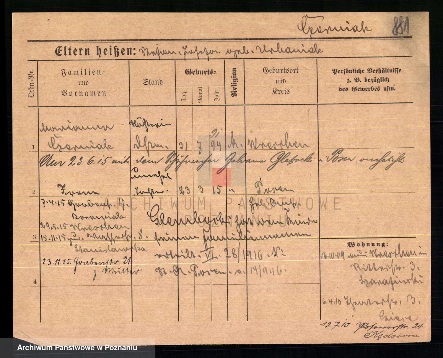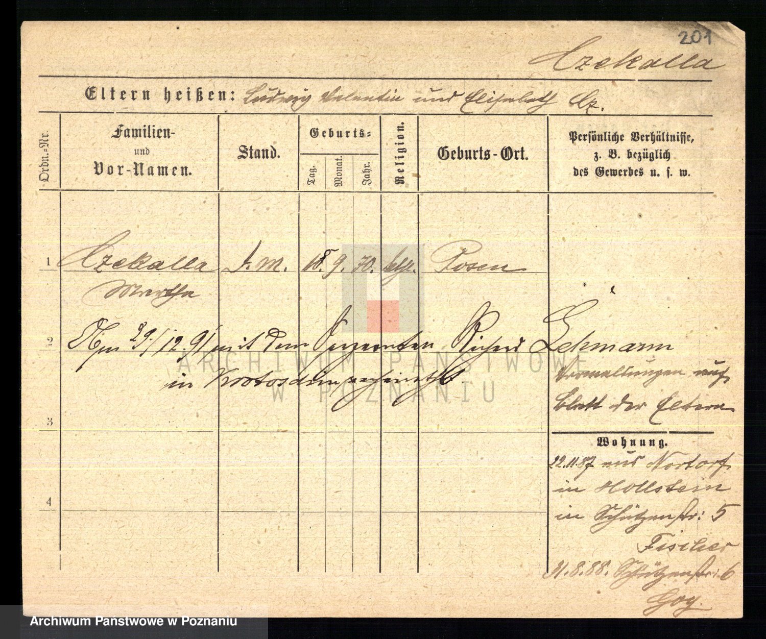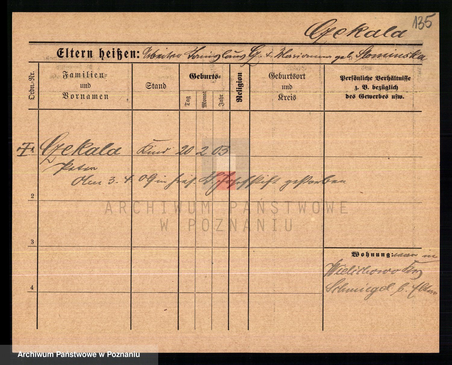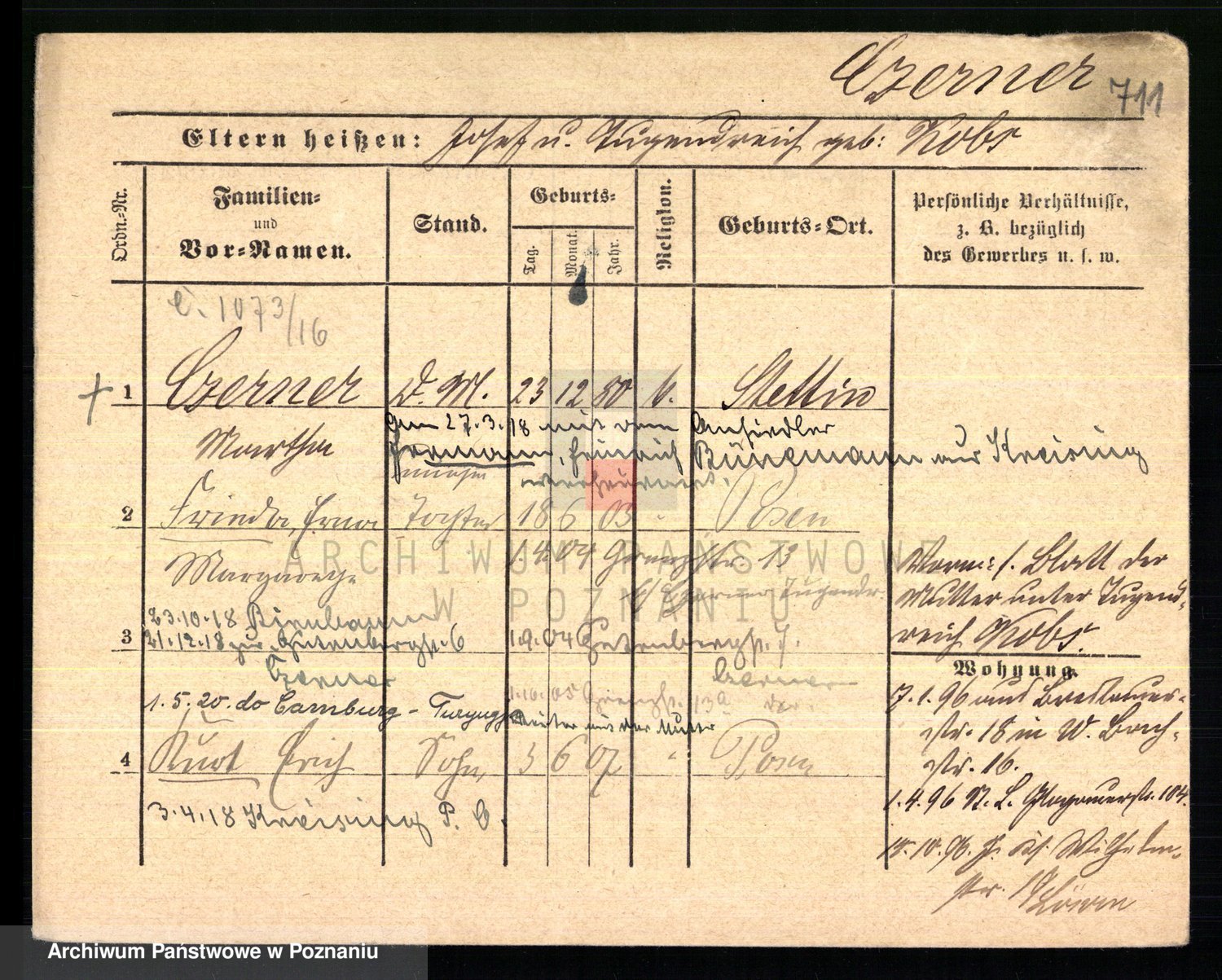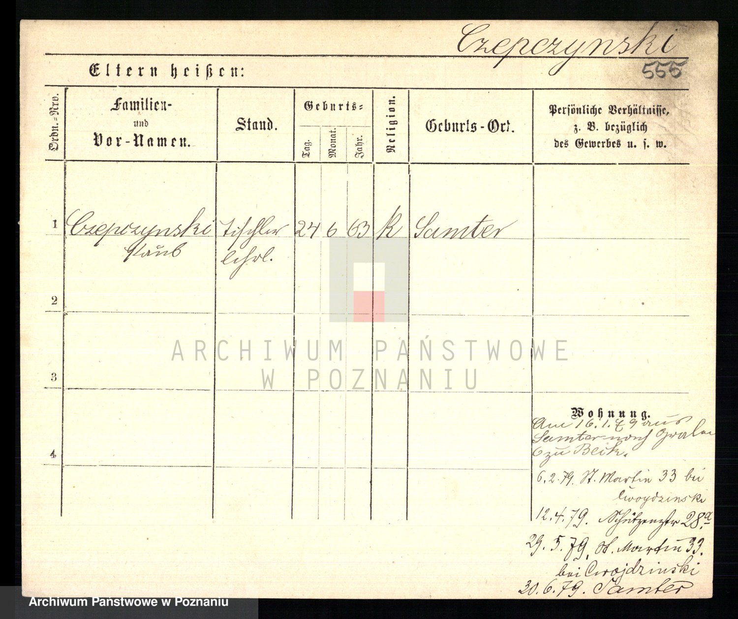 Podgląd karty osobowej dostępny jest po kliknięciu na nazwisko lub ikonkę karty. Można dokonywać powiększenia (ikony na górze) lub przechodzić między kolejnymi skanami (strzałki po bokach).