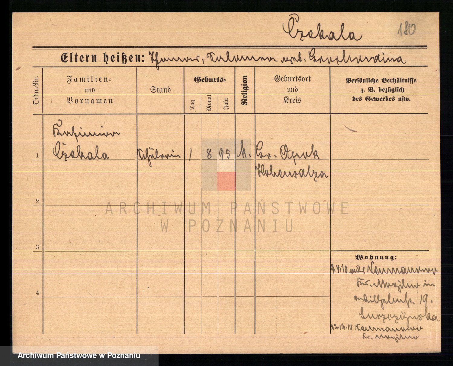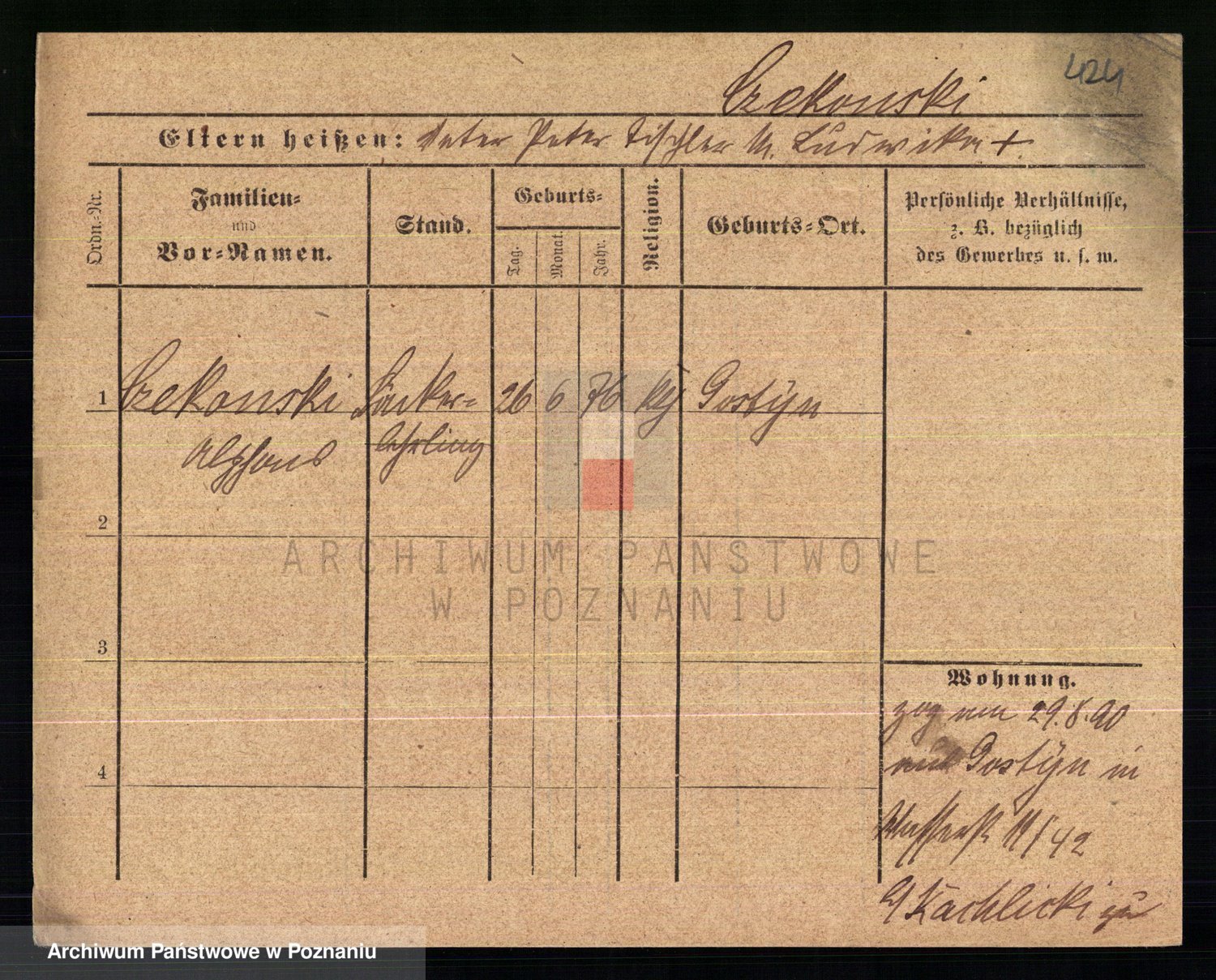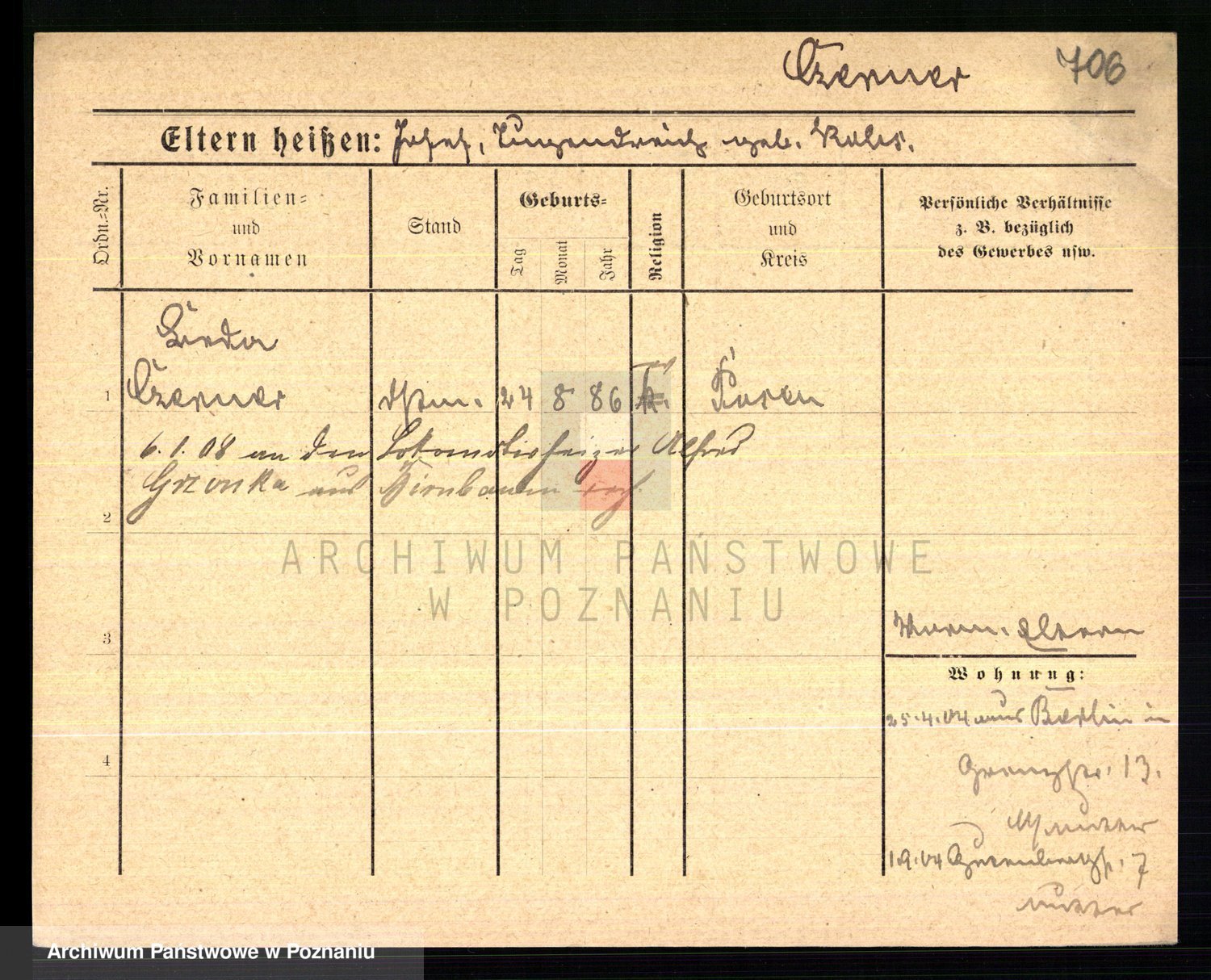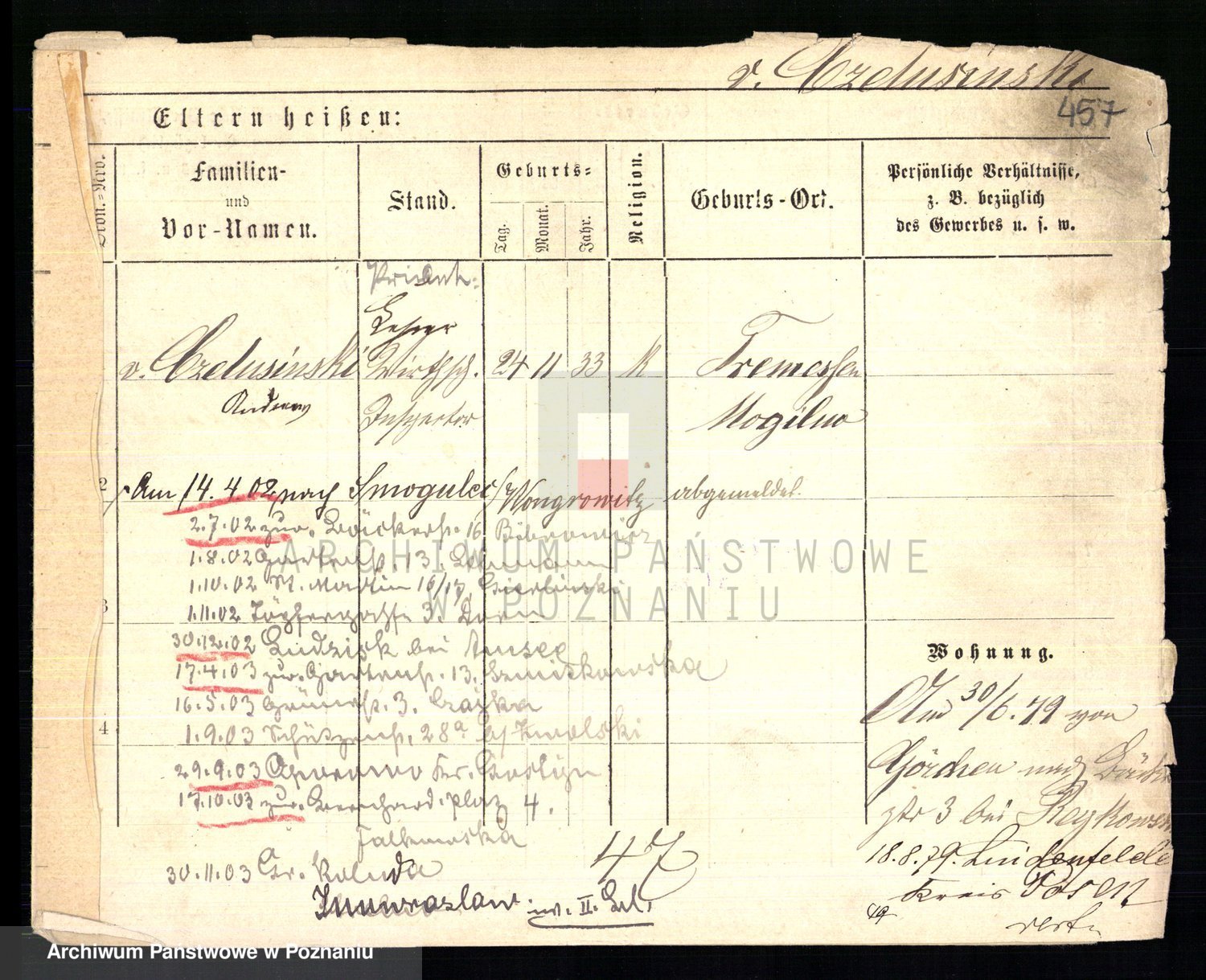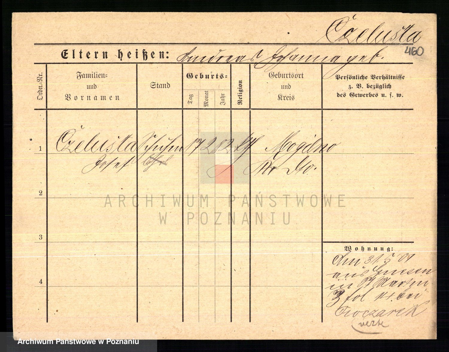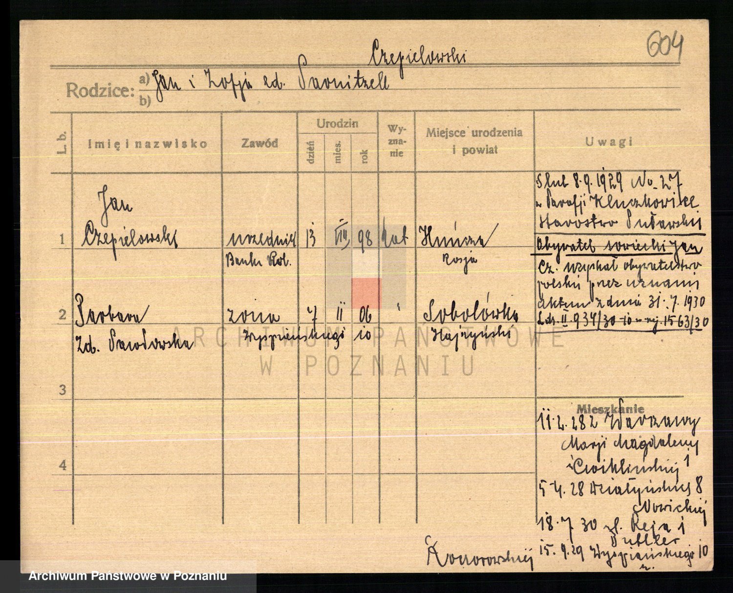 Podgląd karty osobowej dostępny jest po kliknięciu na nazwisko lub ikonkę karty. Można dokonywać powiększenia (ikony na górze) lub przechodzić między kolejnymi skanami (strzałki po bokach).