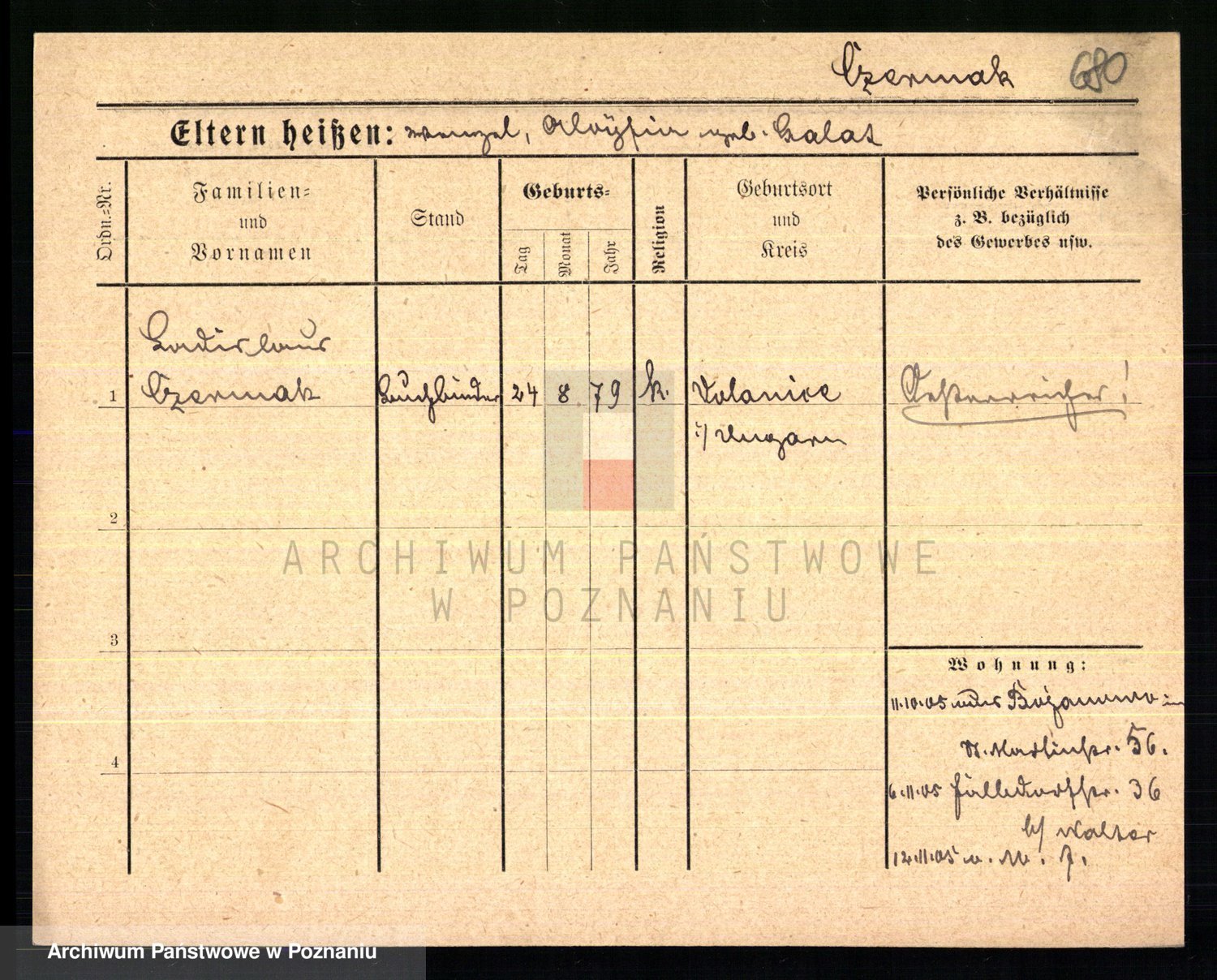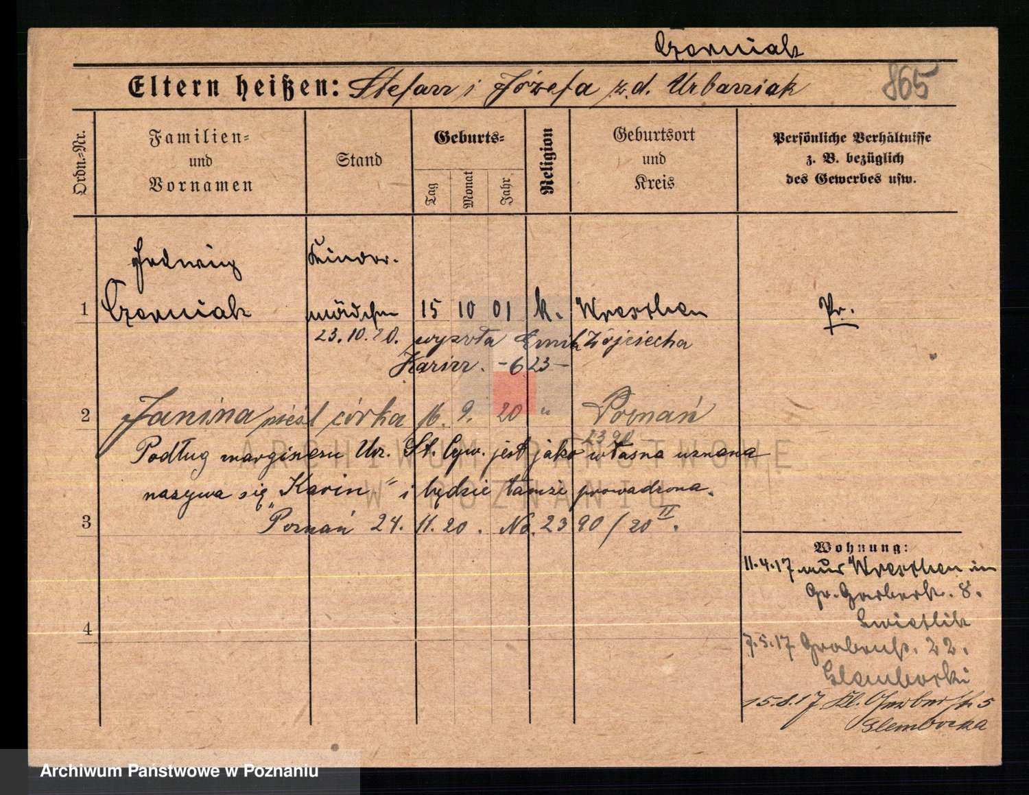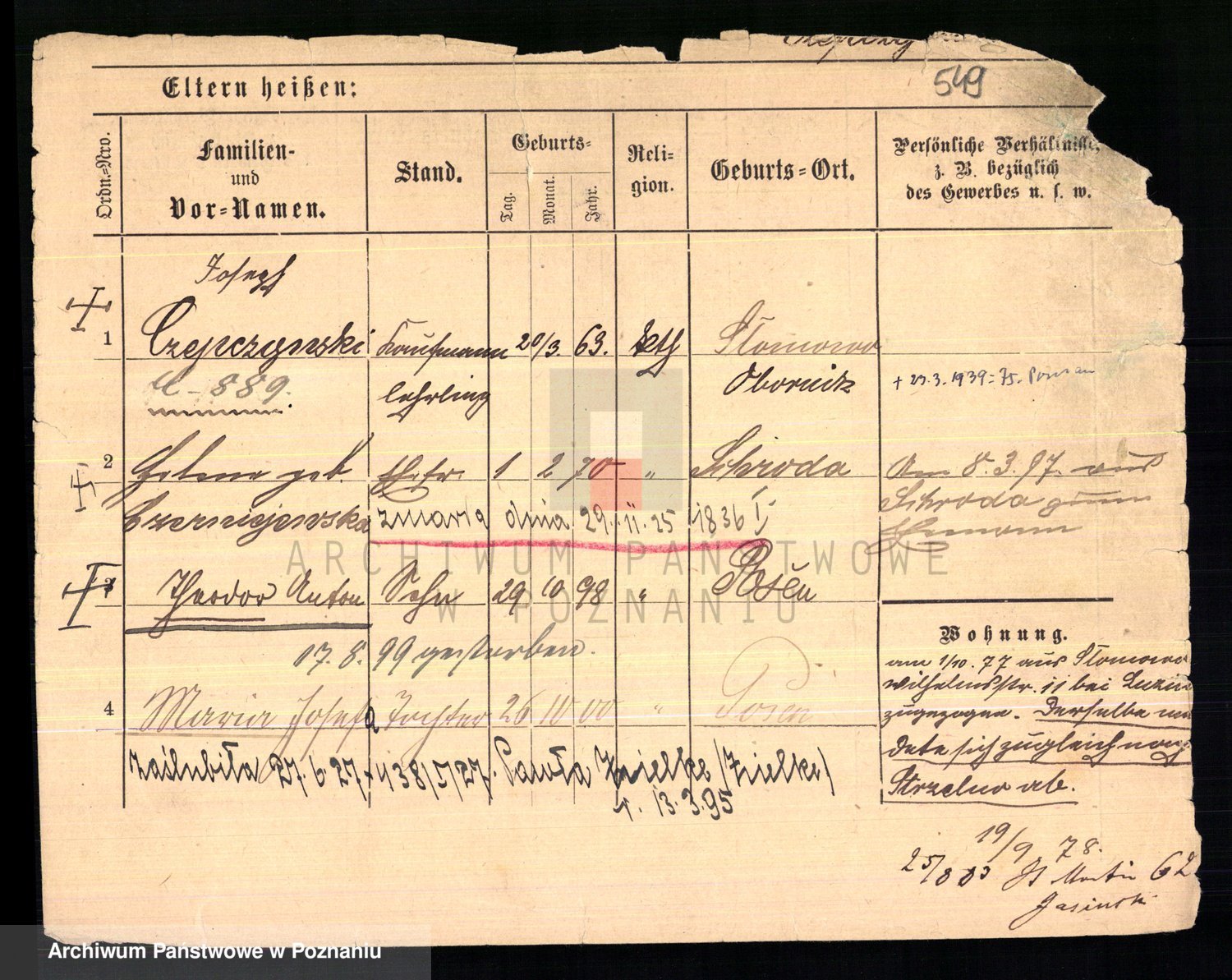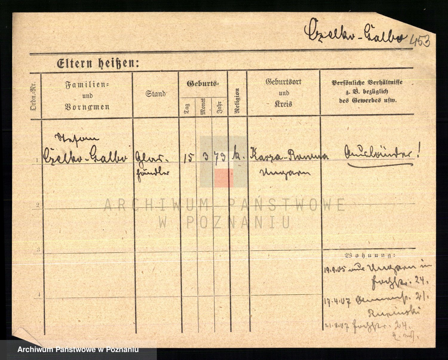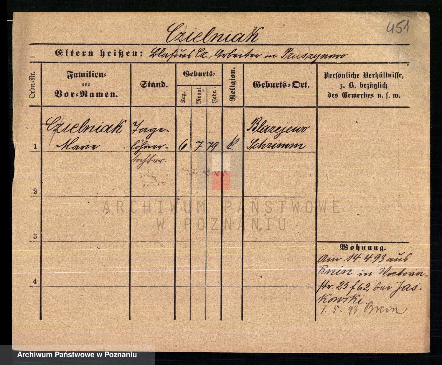 Podgląd karty osobowej dostępny jest po kliknięciu na nazwisko lub ikonkę karty. Można dokonywać powiększenia (ikony na górze) lub przechodzić między kolejnymi skanami (strzałki po bokach).