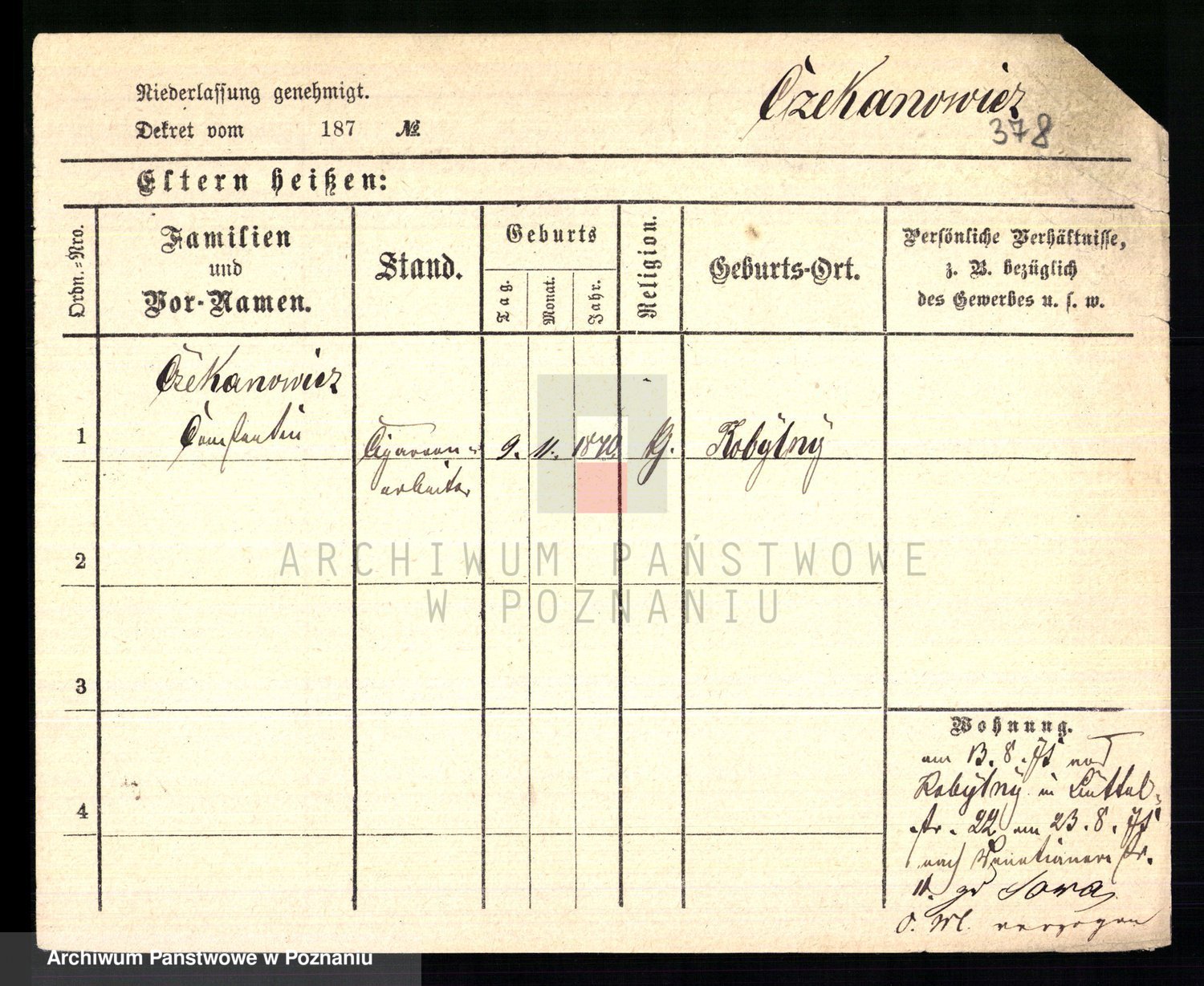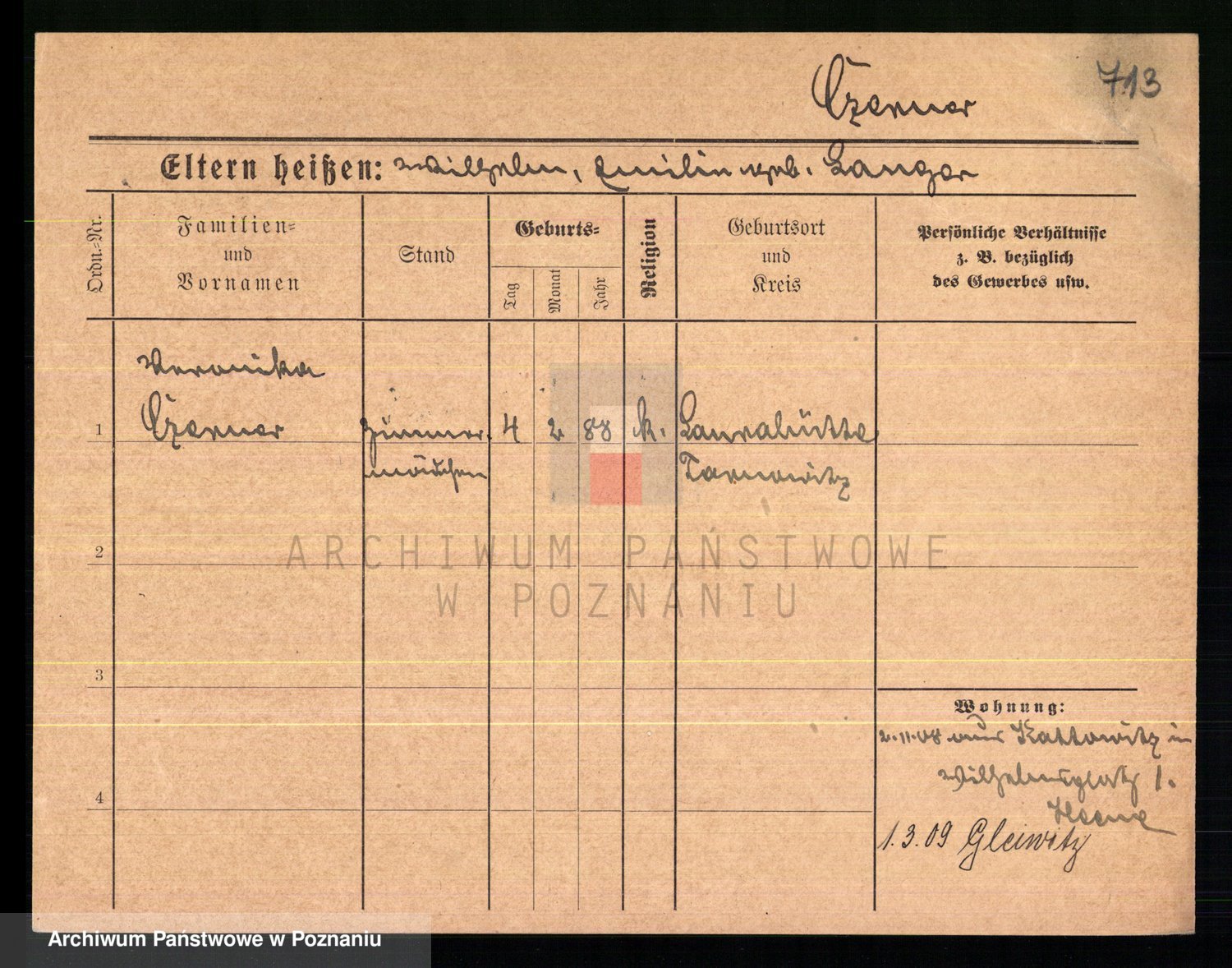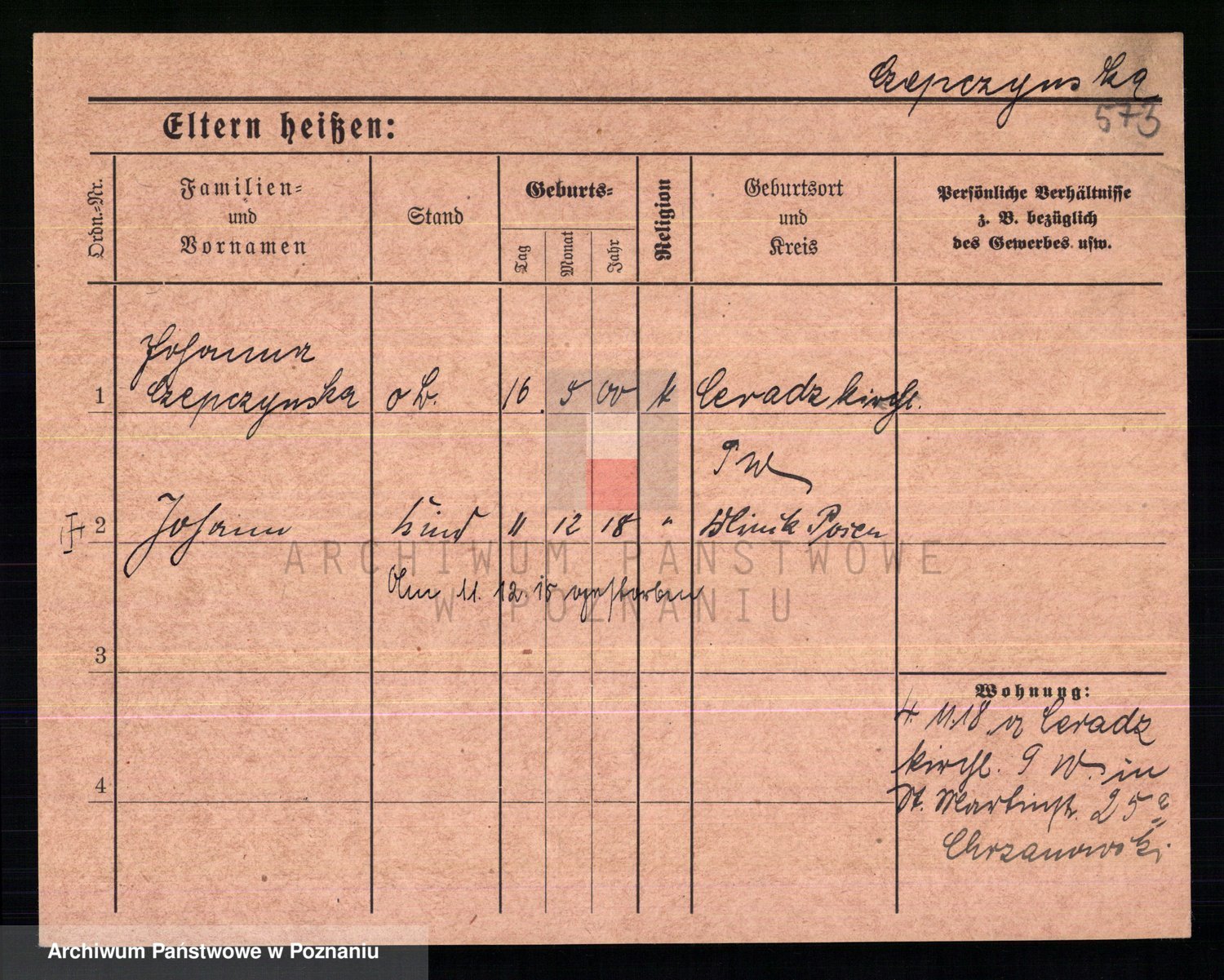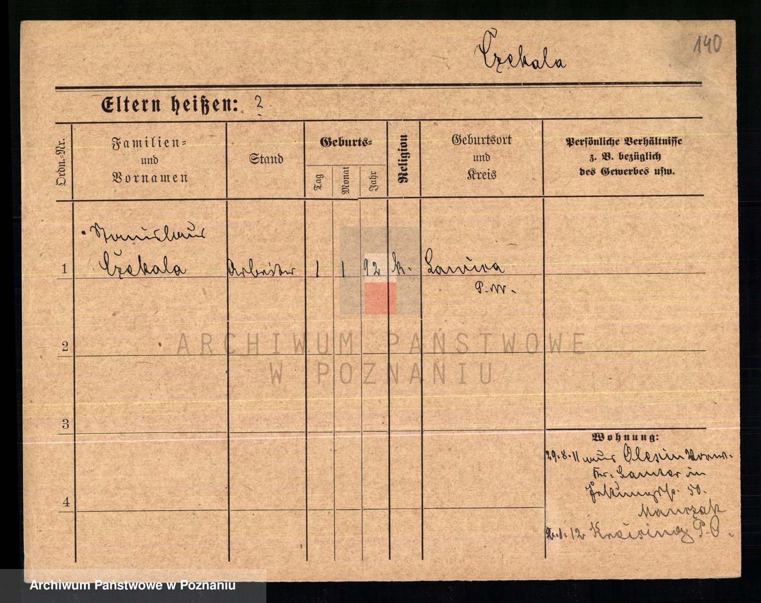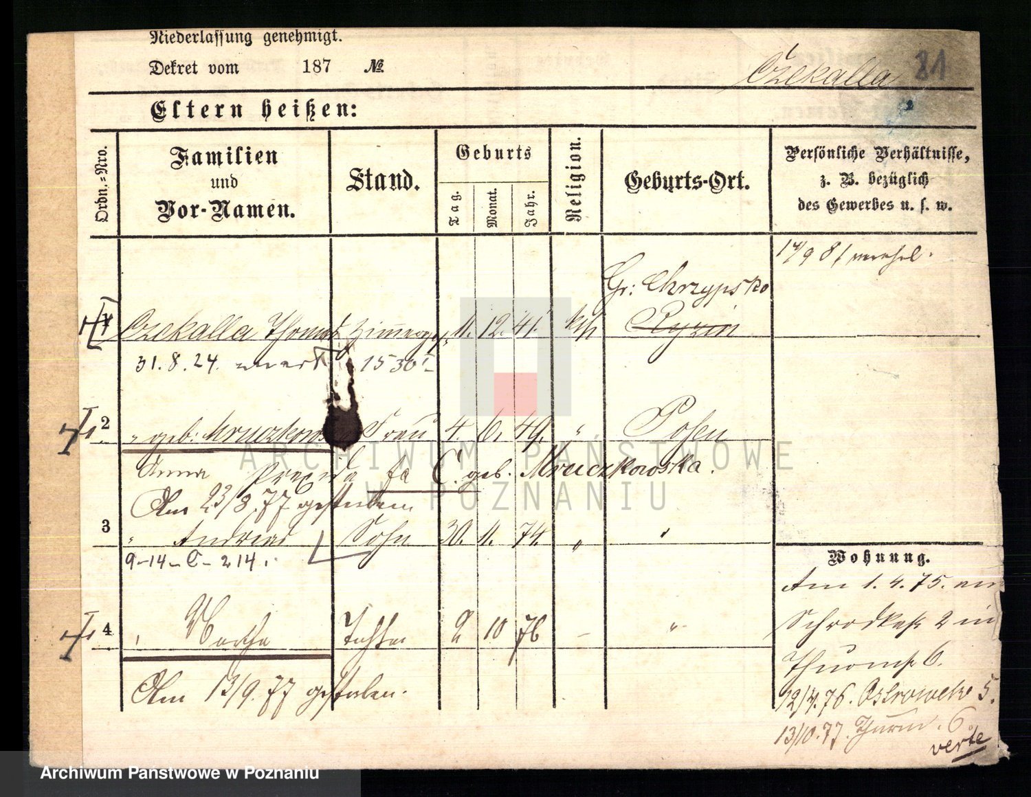 Podgląd karty osobowej dostępny jest po kliknięciu na nazwisko lub ikonkę karty. Można dokonywać powiększenia (ikony na górze) lub przechodzić między kolejnymi skanami (strzałki po bokach).