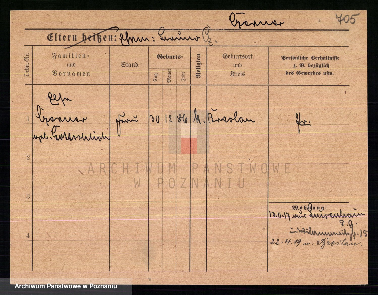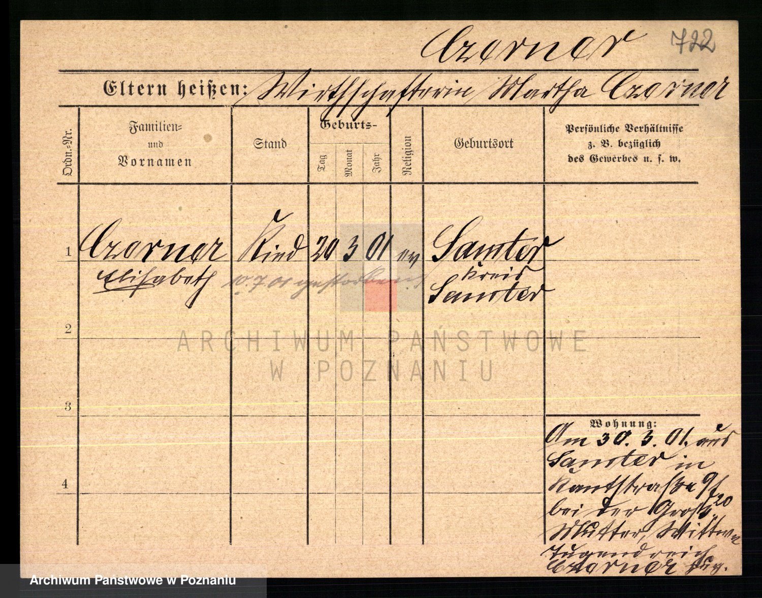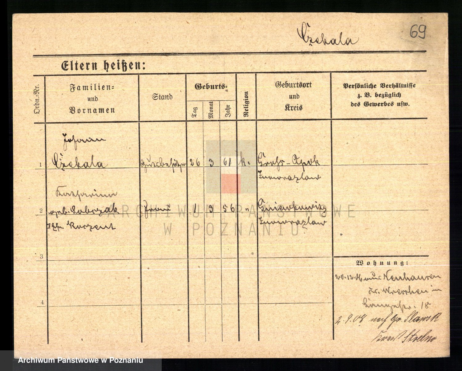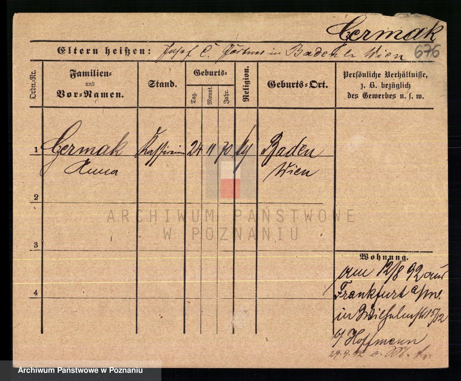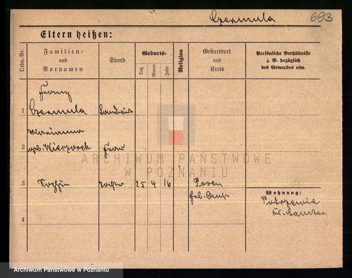 Podgląd karty osobowej dostępny jest po kliknięciu na nazwisko lub ikonkę karty. Można dokonywać powiększenia (ikony na górze) lub przechodzić między kolejnymi skanami (strzałki po bokach).