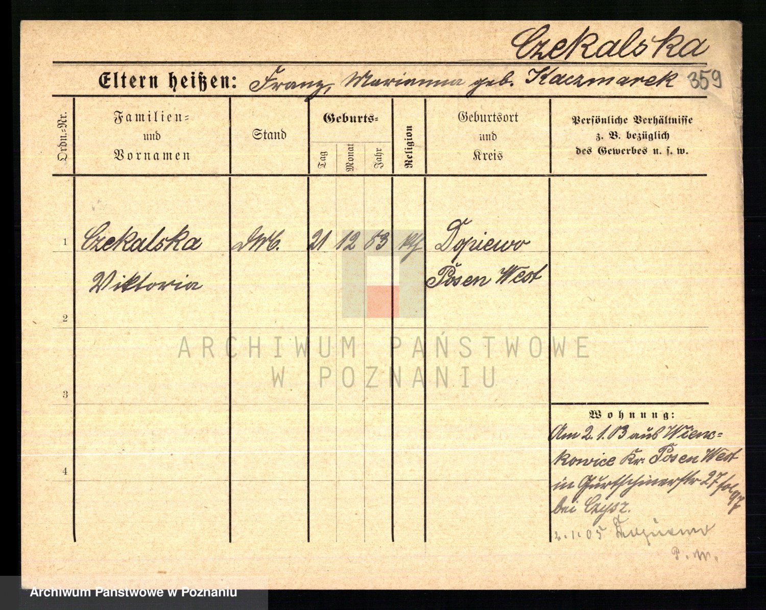 Czerniejewska, Victoria