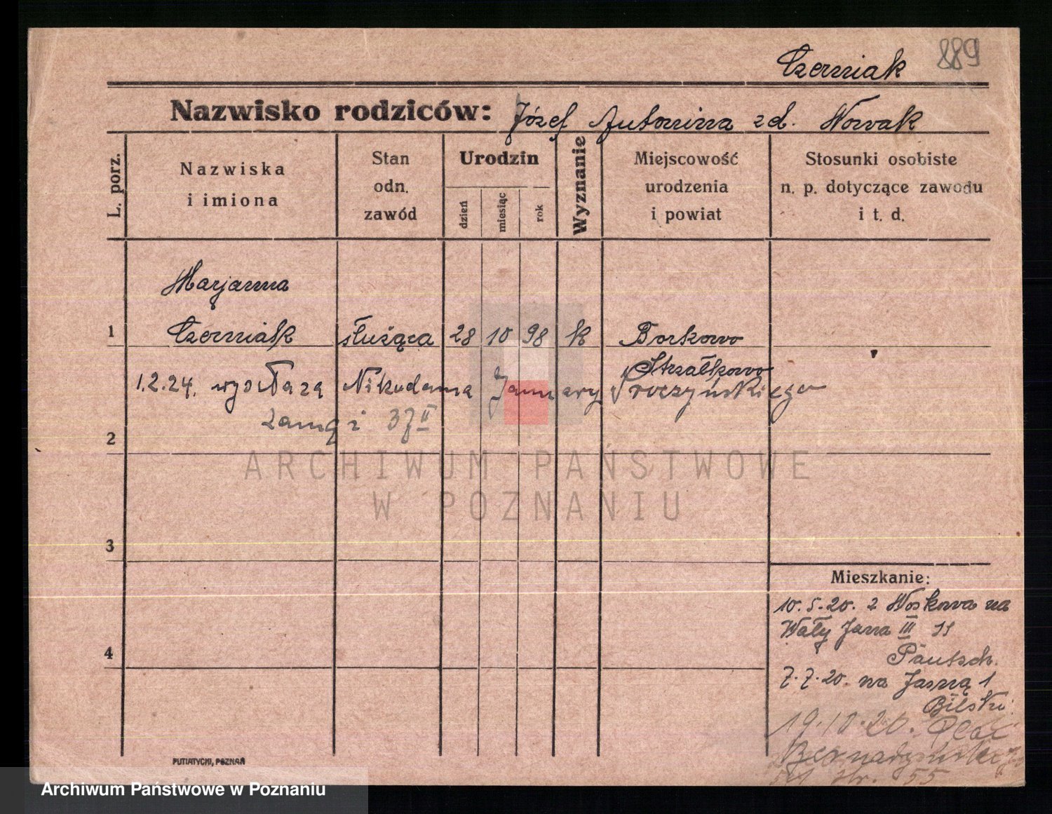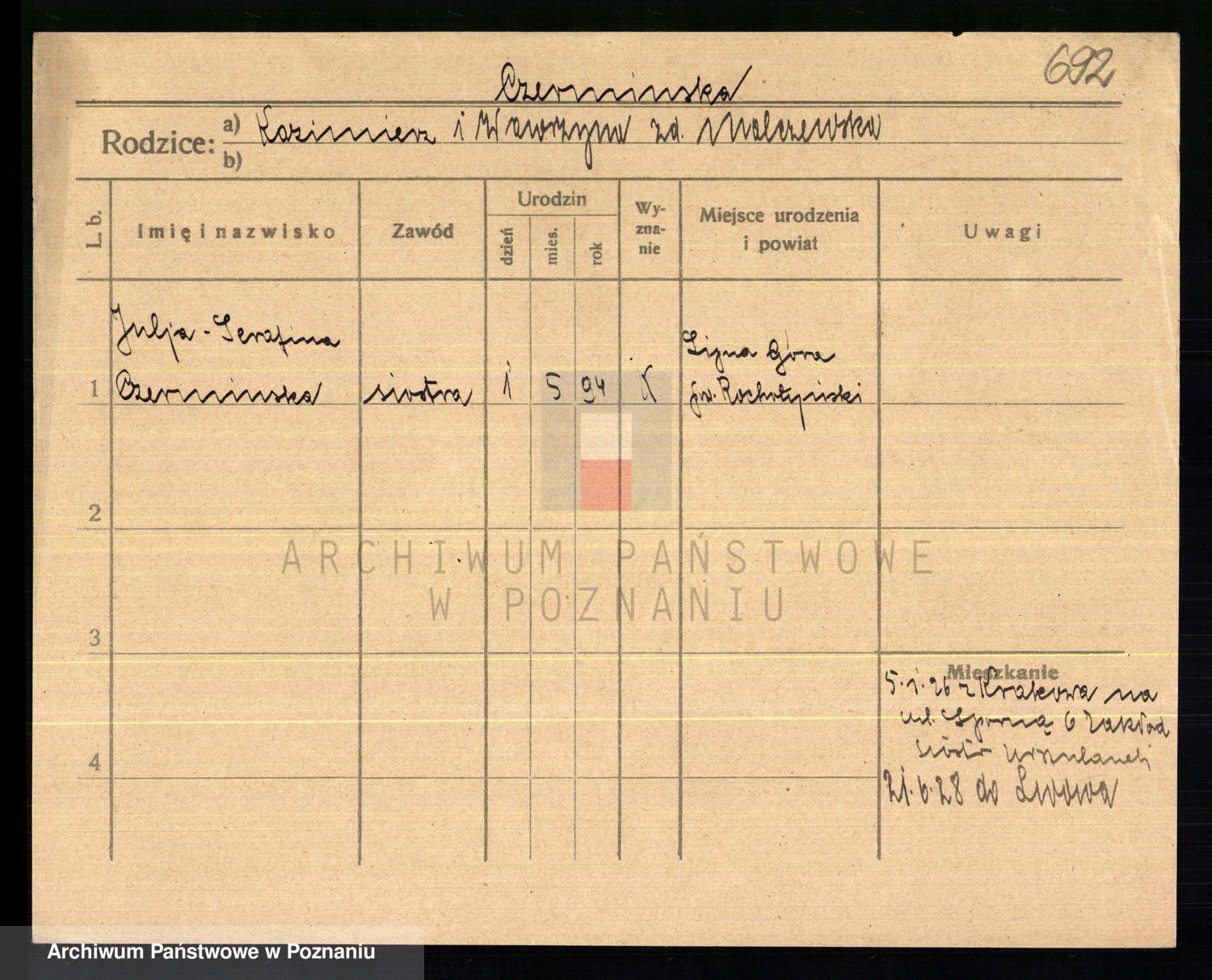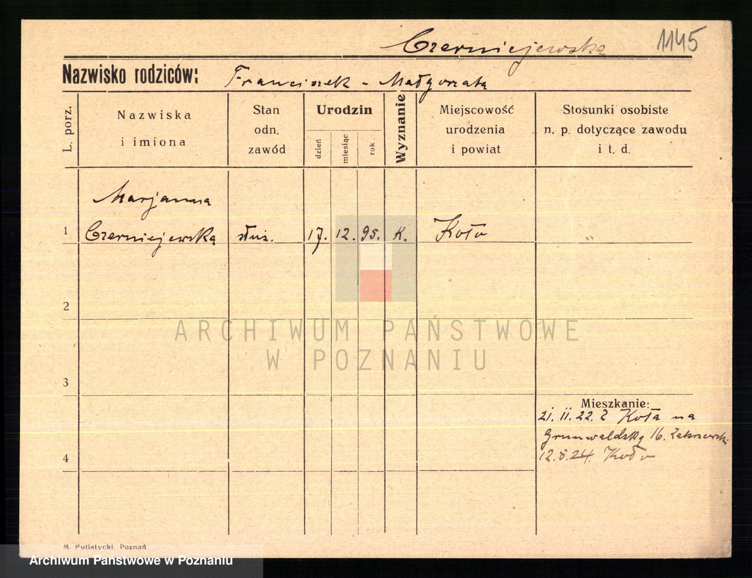 Czerniejewska z d. Palicka, Marianna