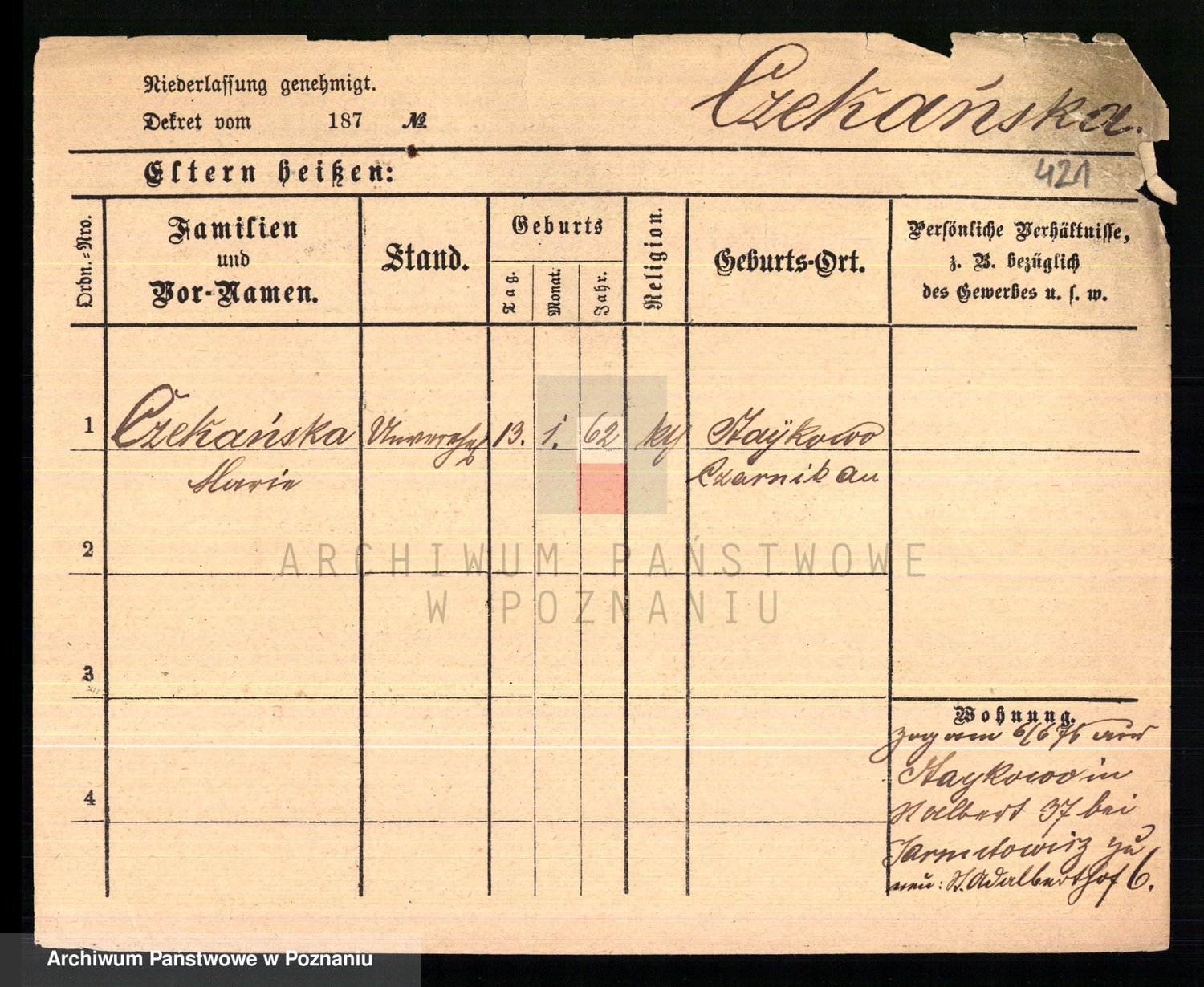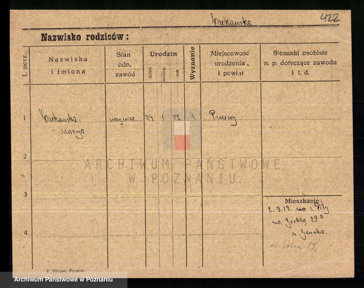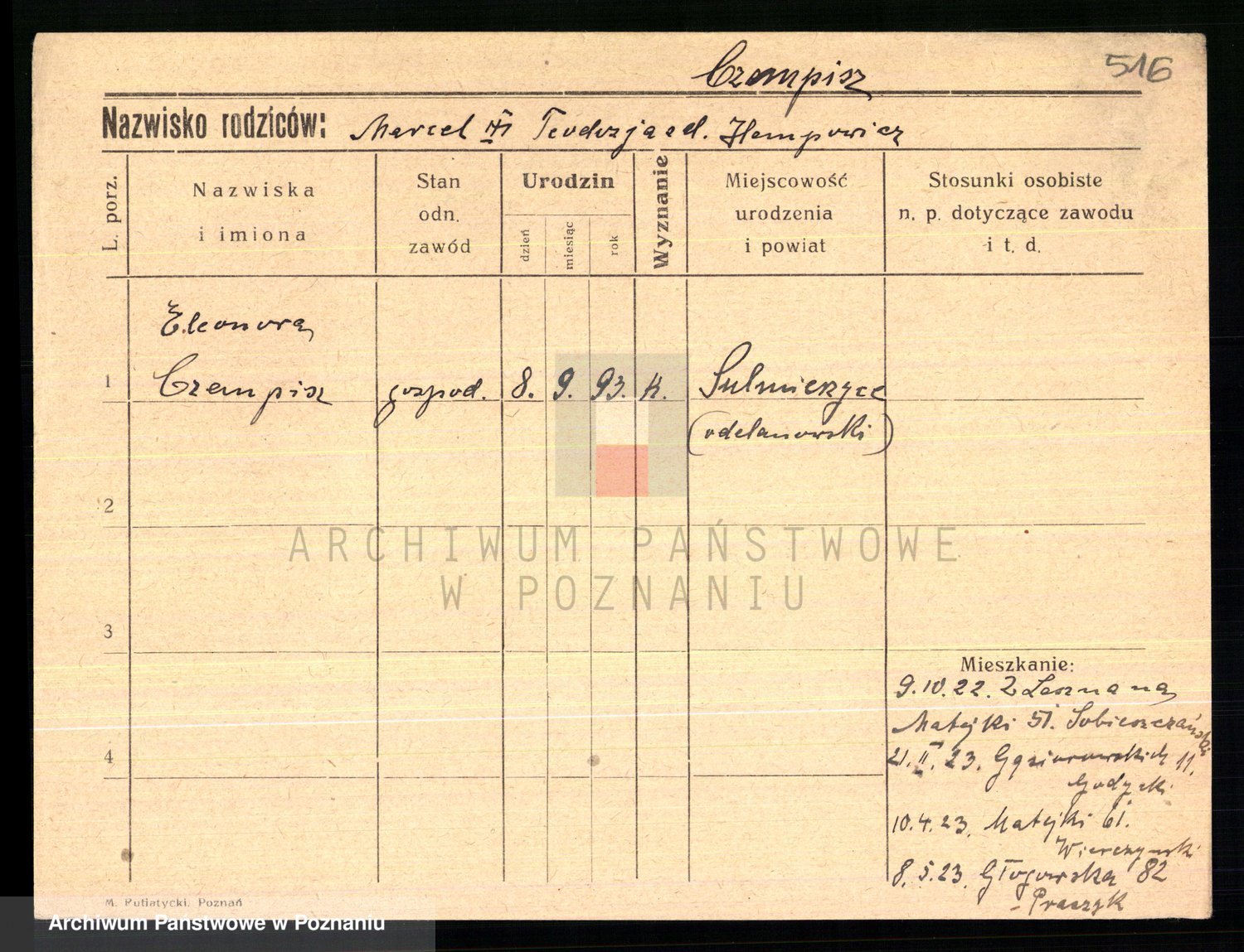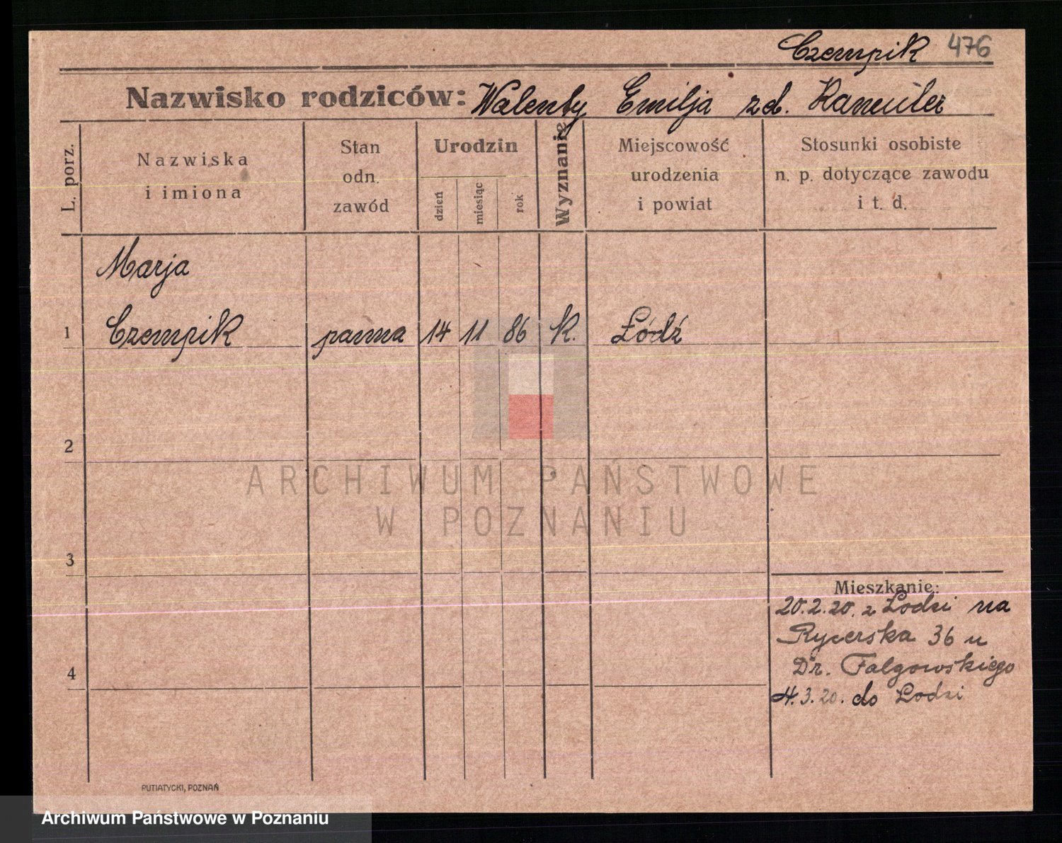 Czerniejewska z d. Palicka, Marianna