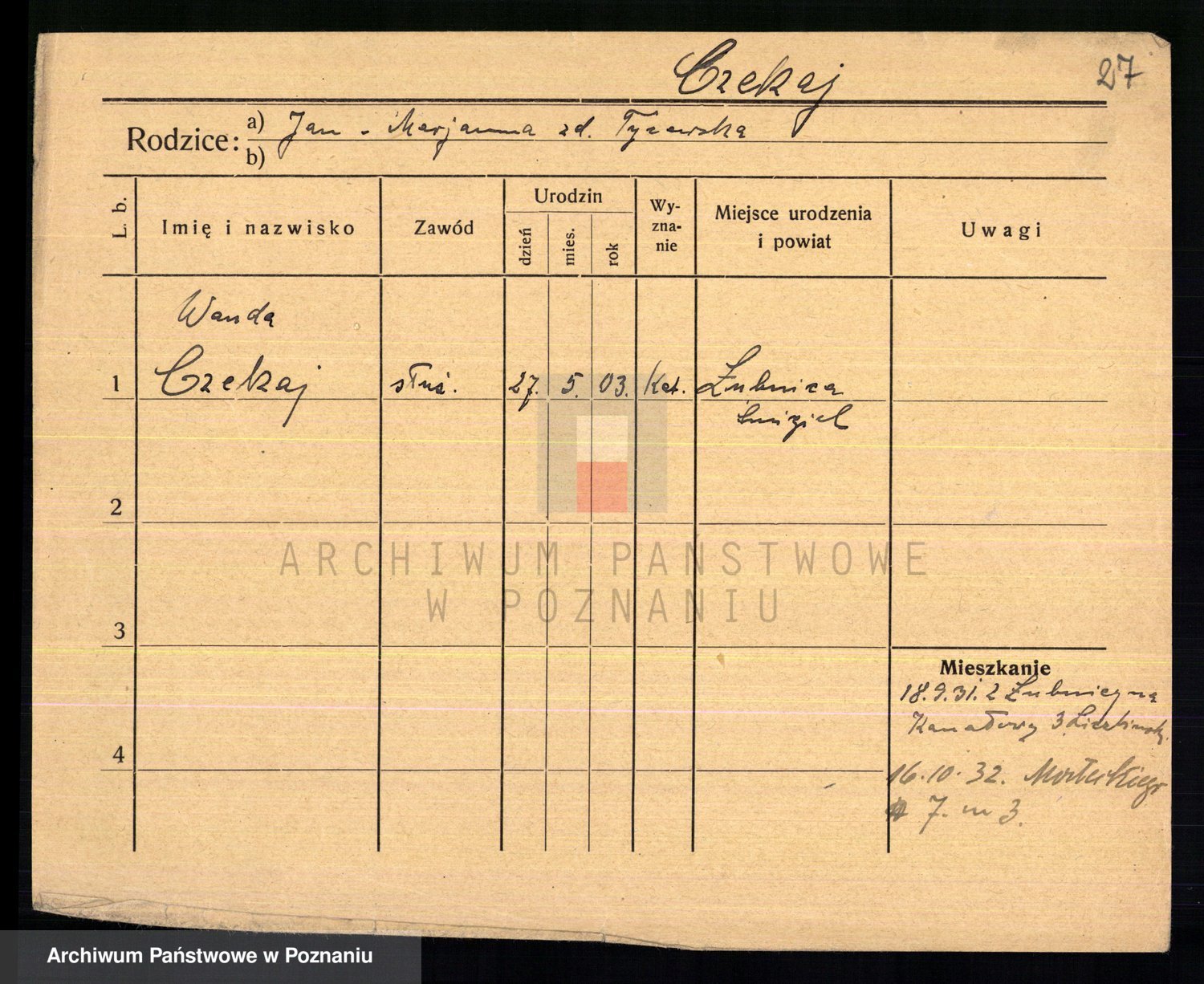 Czekaj z d. Lis, Maria