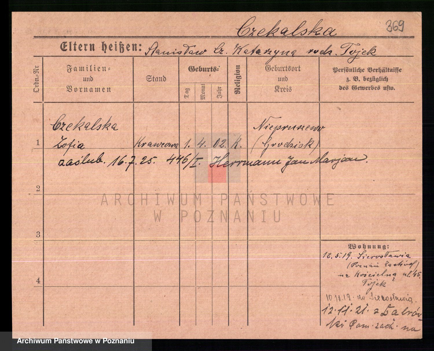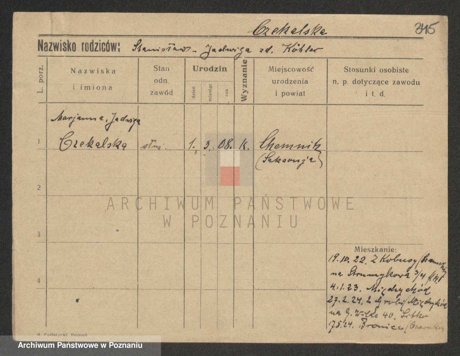 Czekaj z d. Stasinska 1 voto Leszczynska, Franziska