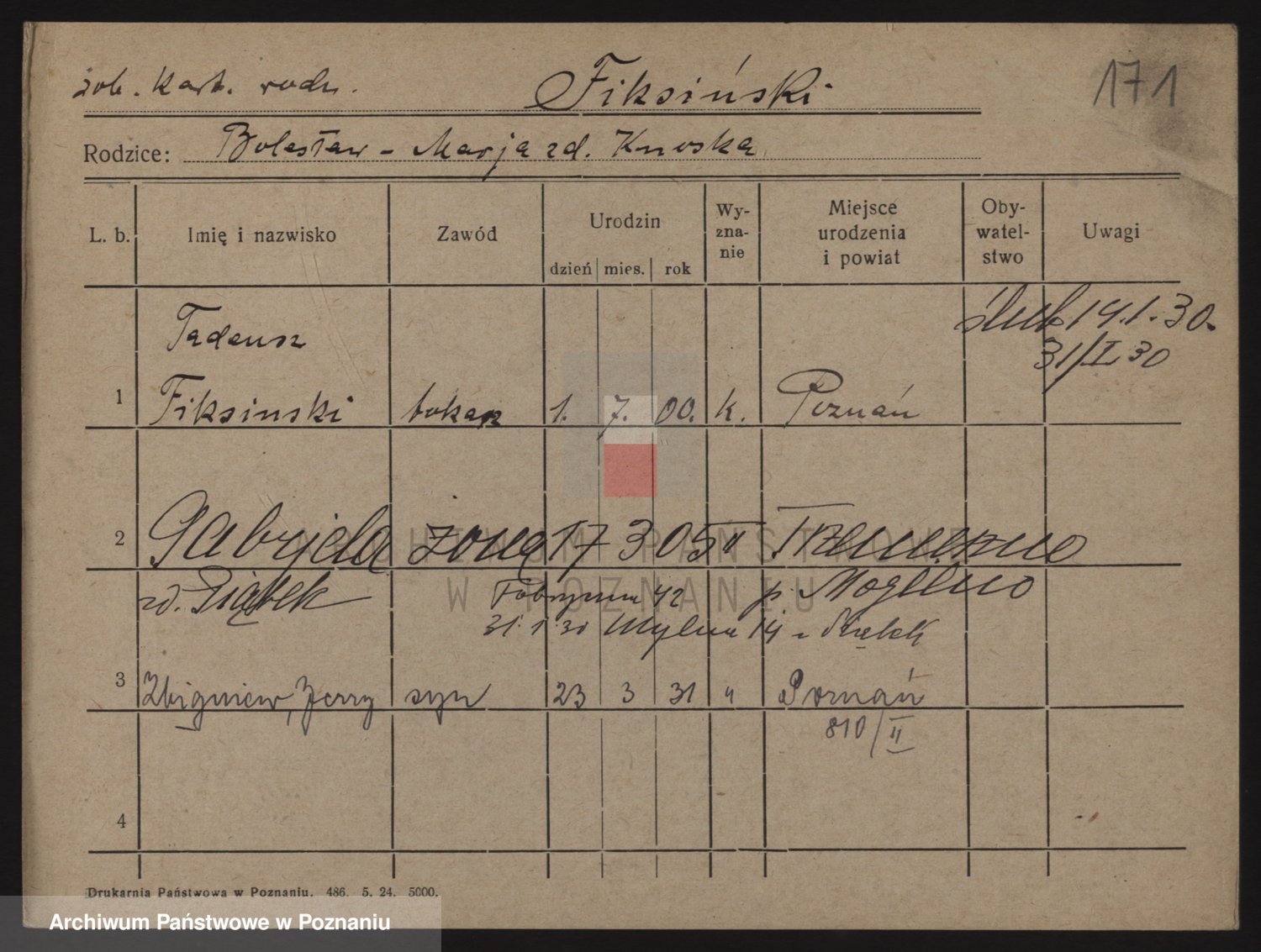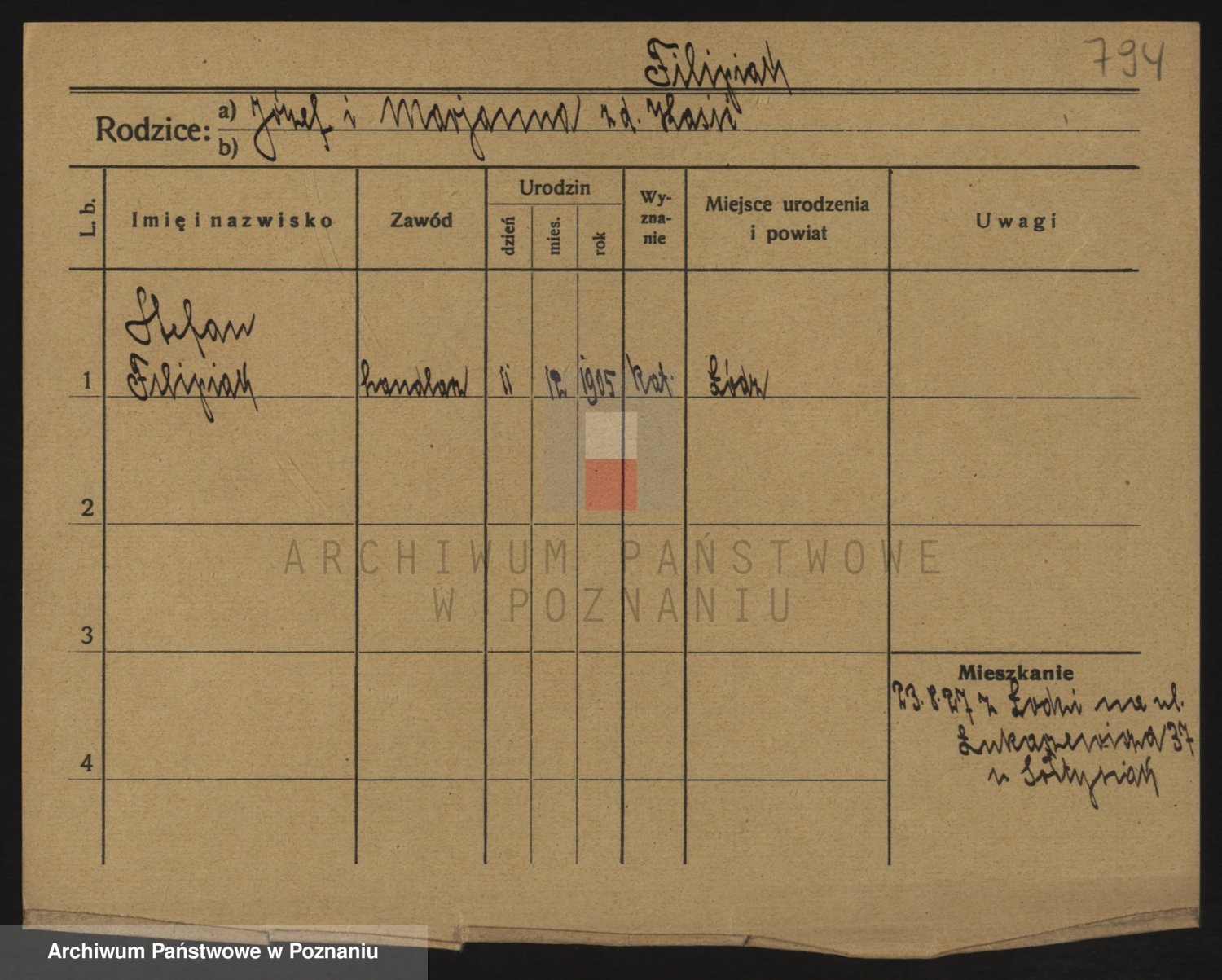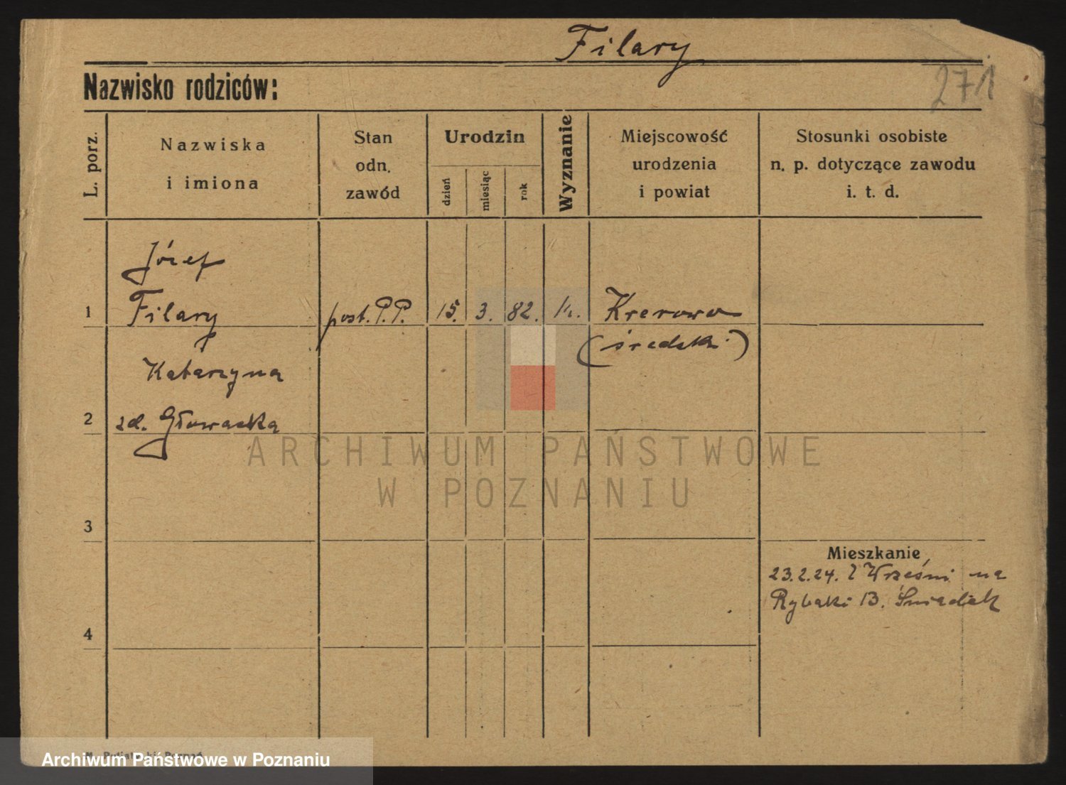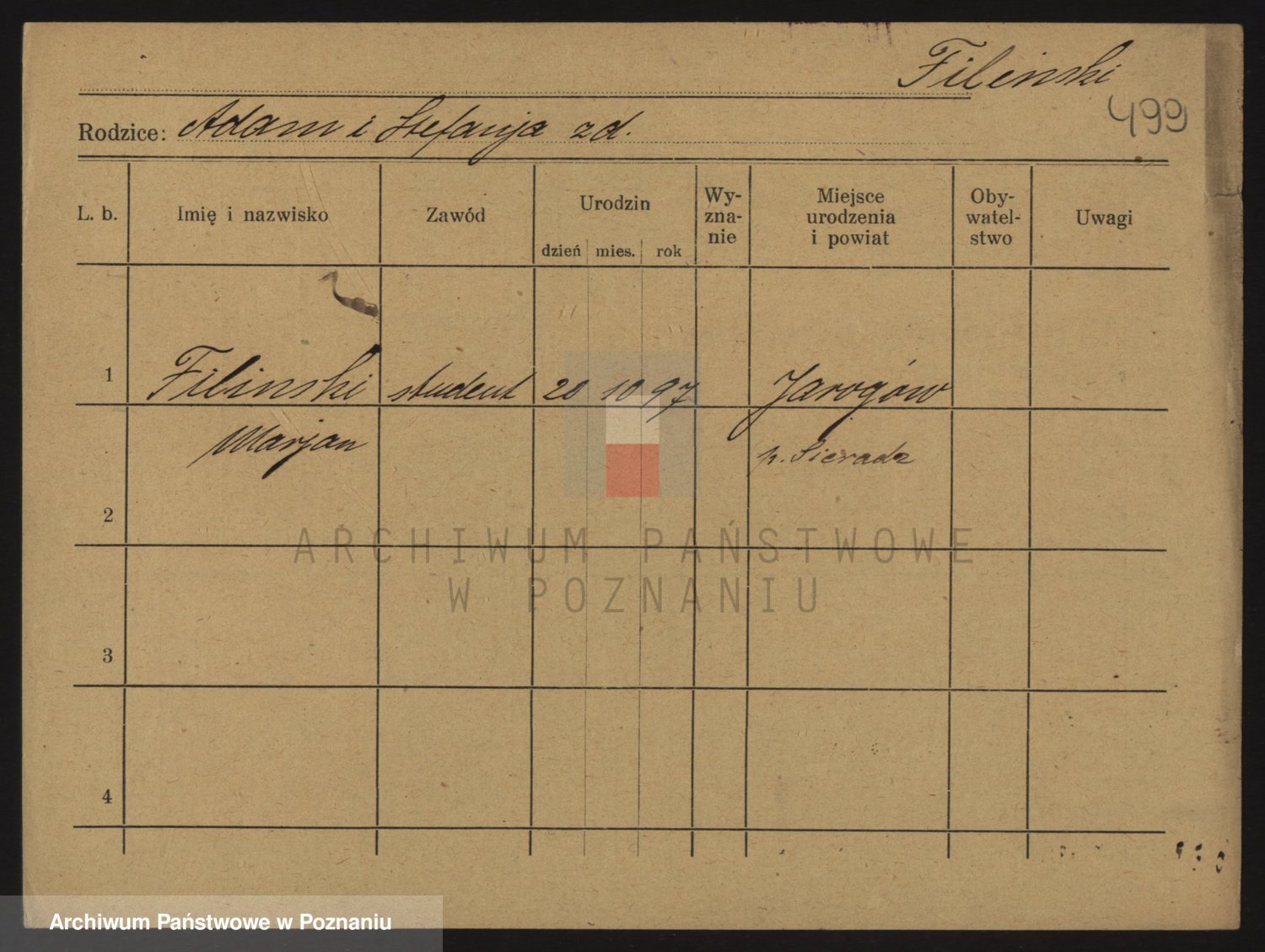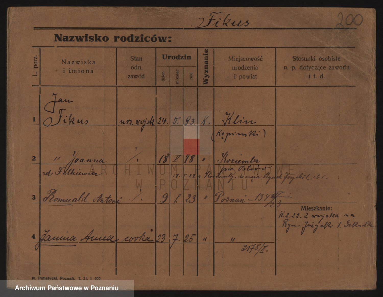 Podgląd karty osobowej dostępny jest po kliknięciu na nazwisko lub ikonkę karty. Można dokonywać powiększenia (ikony na górze) lub przechodzić między kolejnymi skanami (strzałki po bokach).
