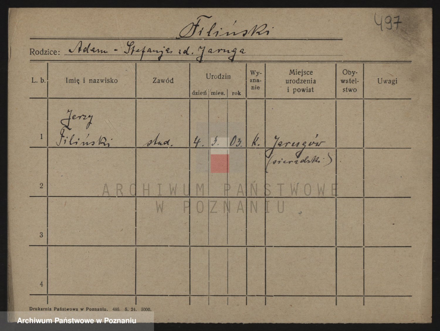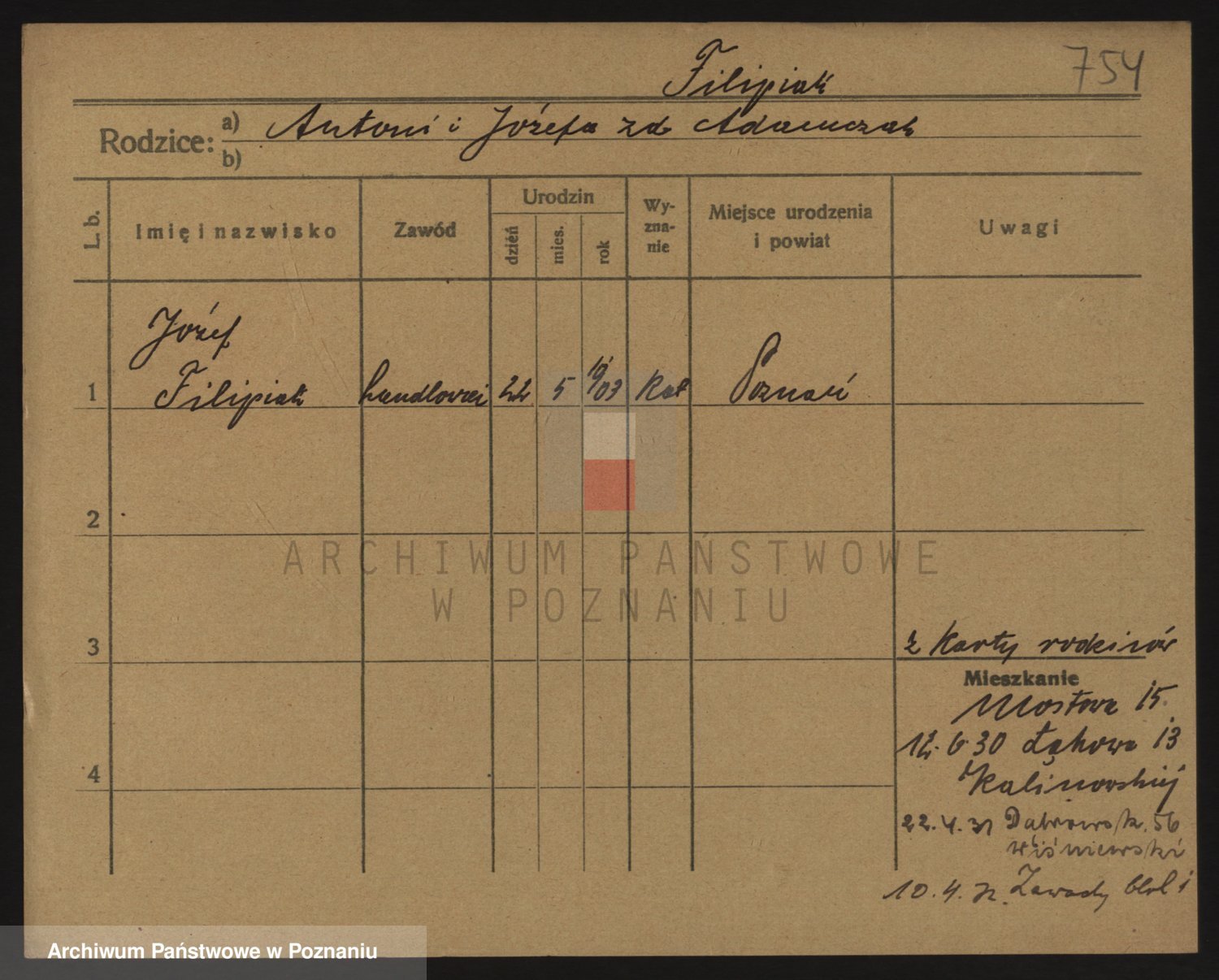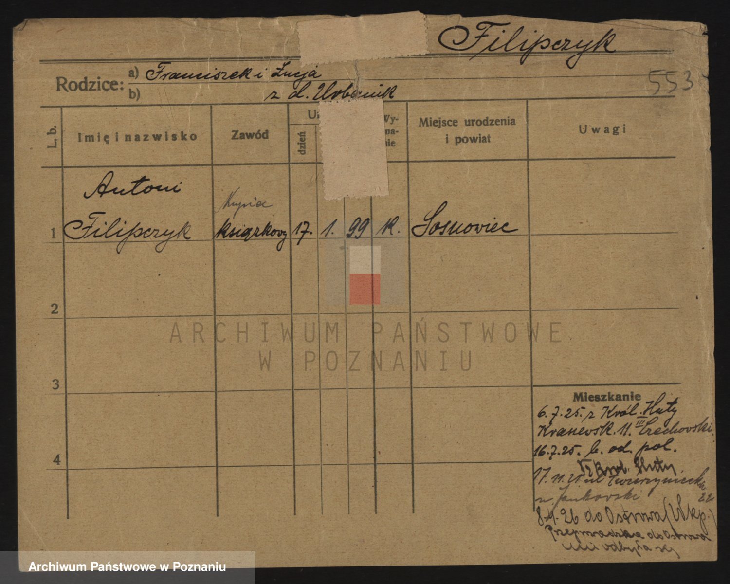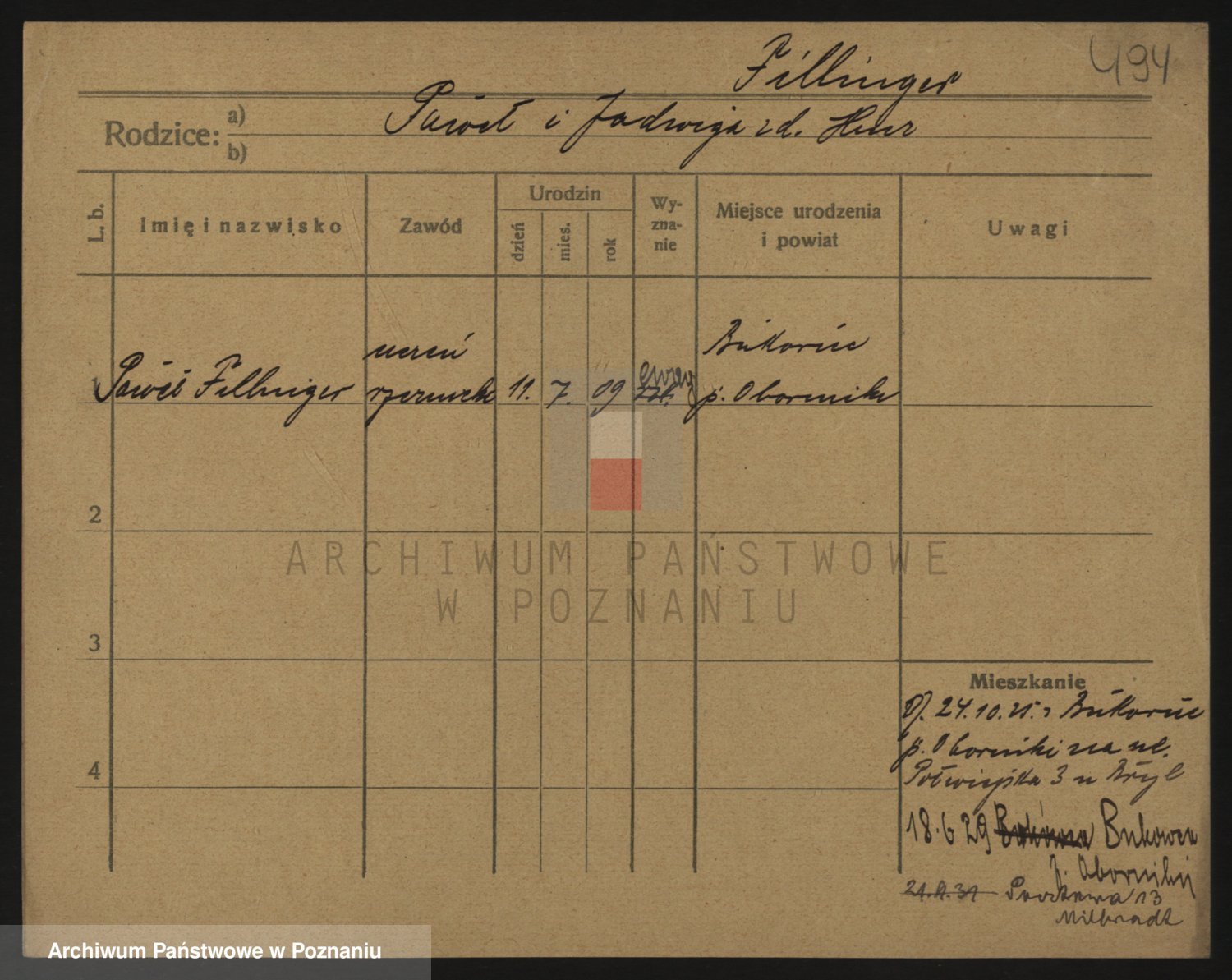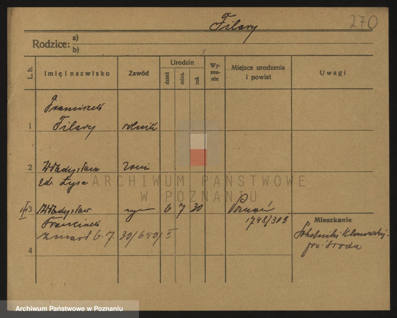Podgląd karty osobowej dostępny jest po kliknięciu na nazwisko lub ikonkę karty. Można dokonywać powiększenia (ikony na górze) lub przechodzić między kolejnymi skanami (strzałki po bokach).
