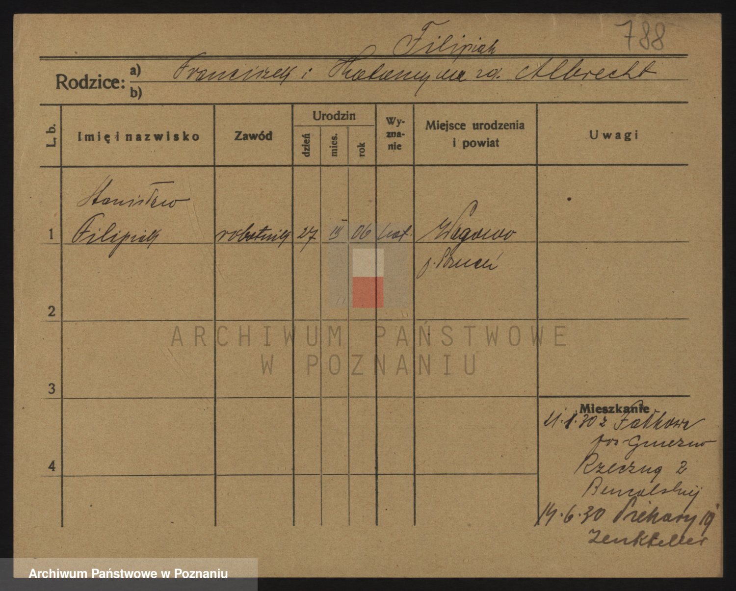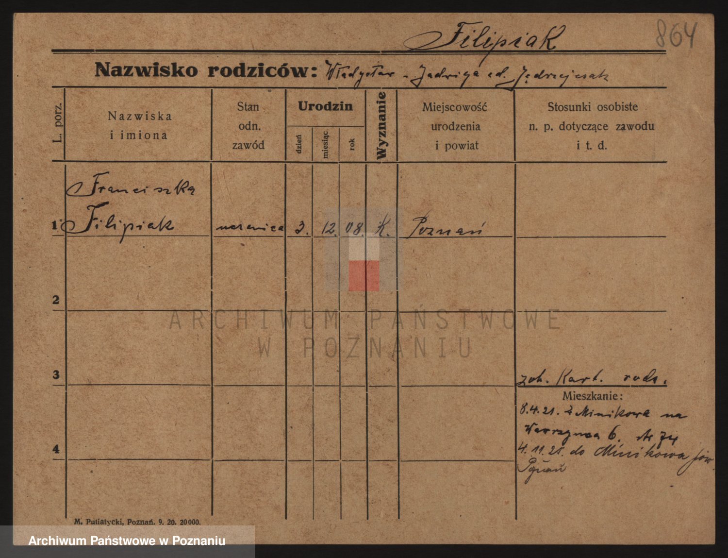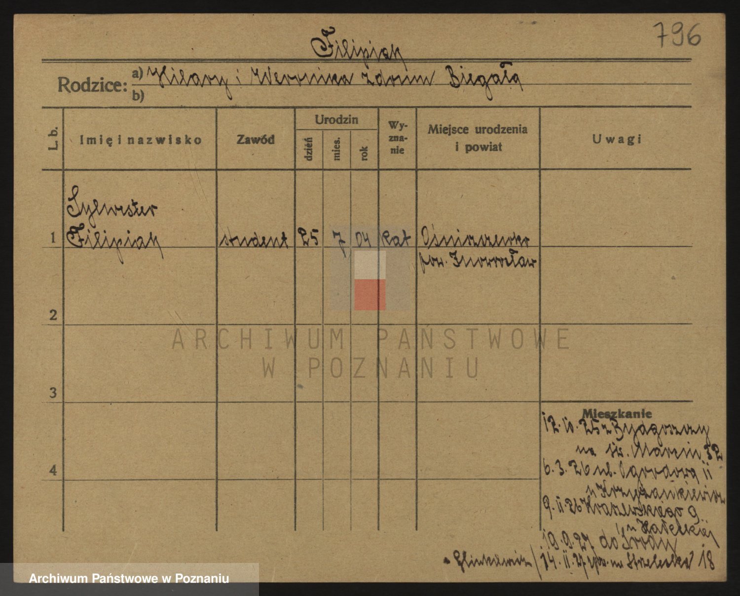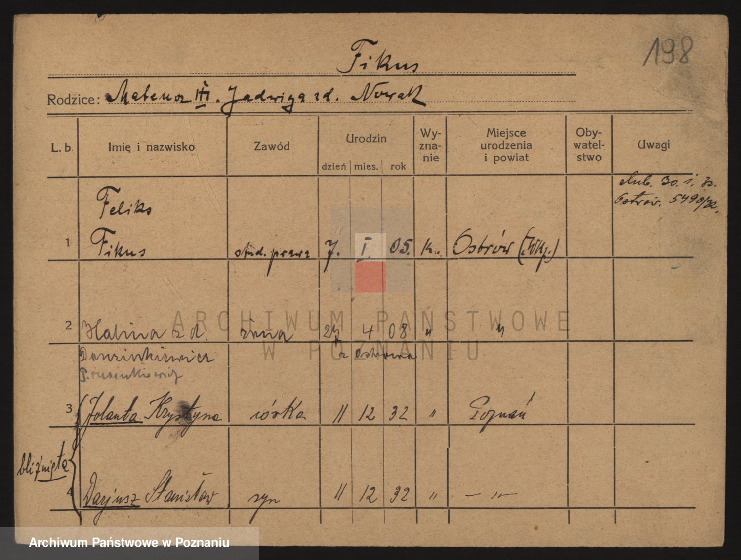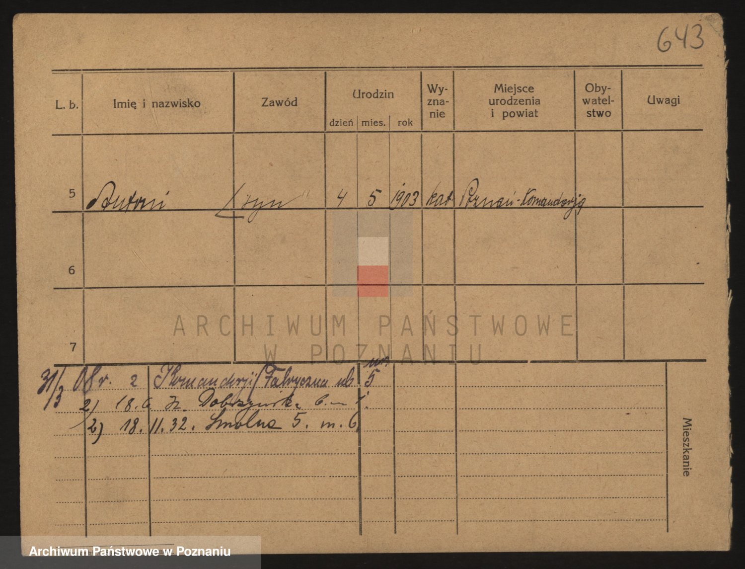 Podgląd karty osobowej dostępny jest po kliknięciu na nazwisko lub ikonkę karty. Można dokonywać powiększenia (ikony na górze) lub przechodzić między kolejnymi skanami (strzałki po bokach).
