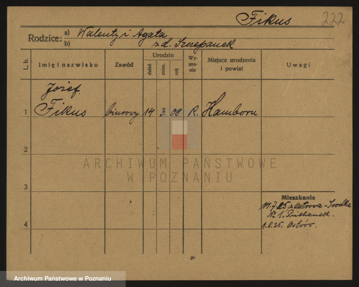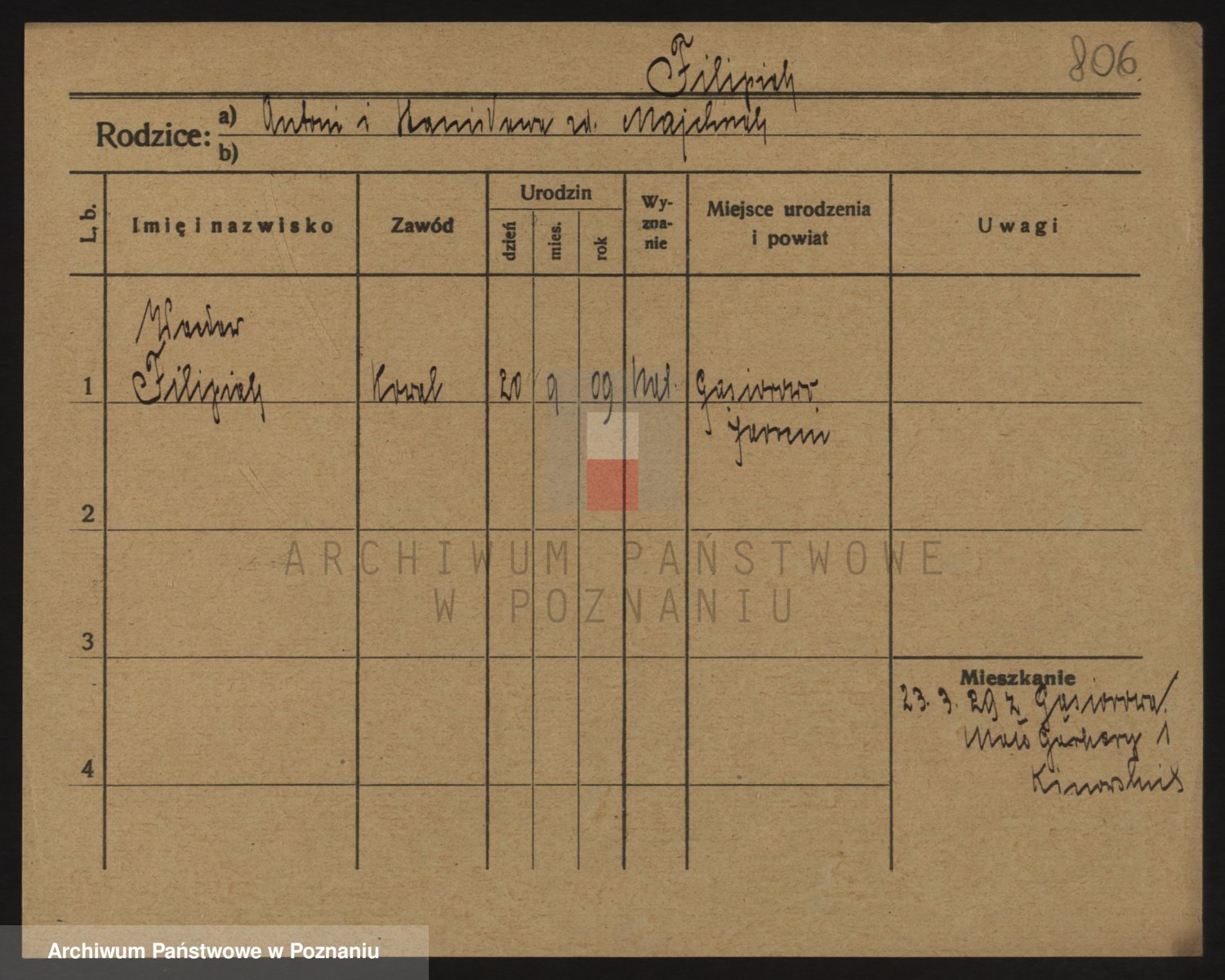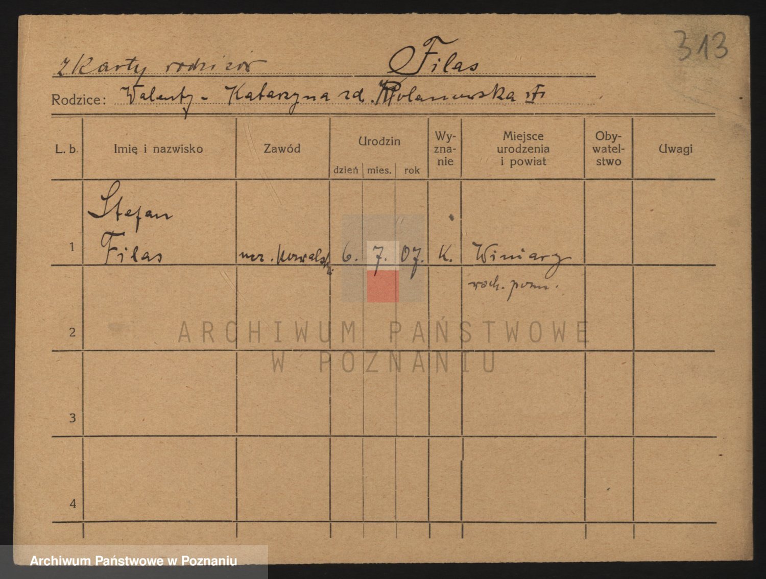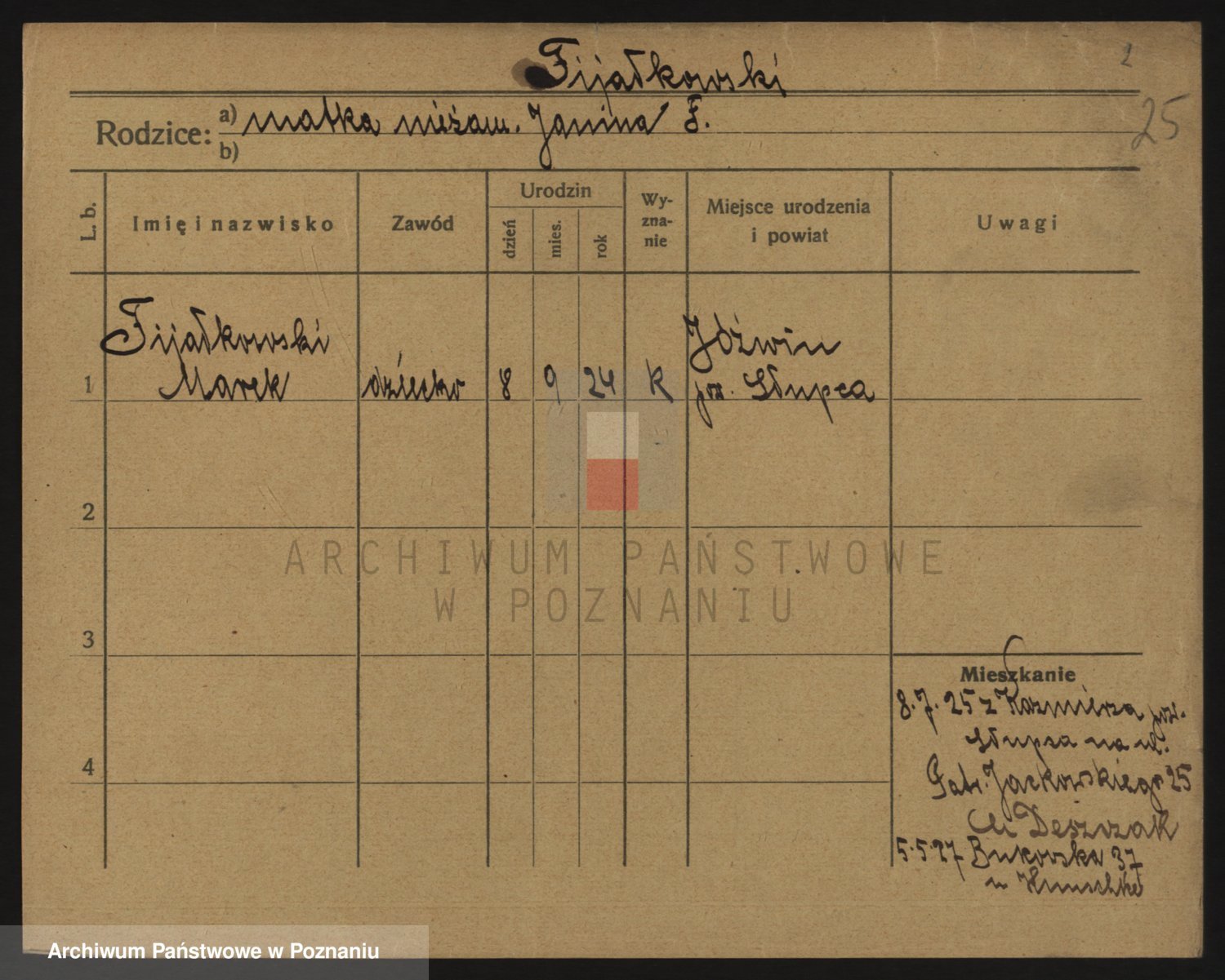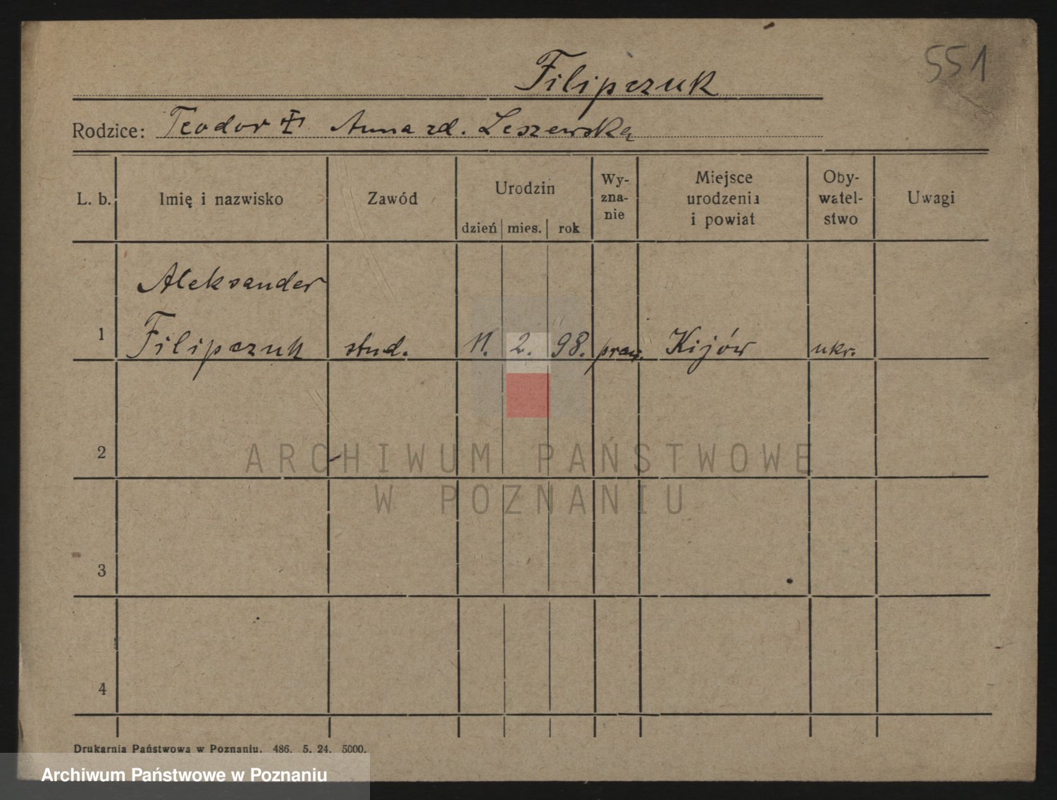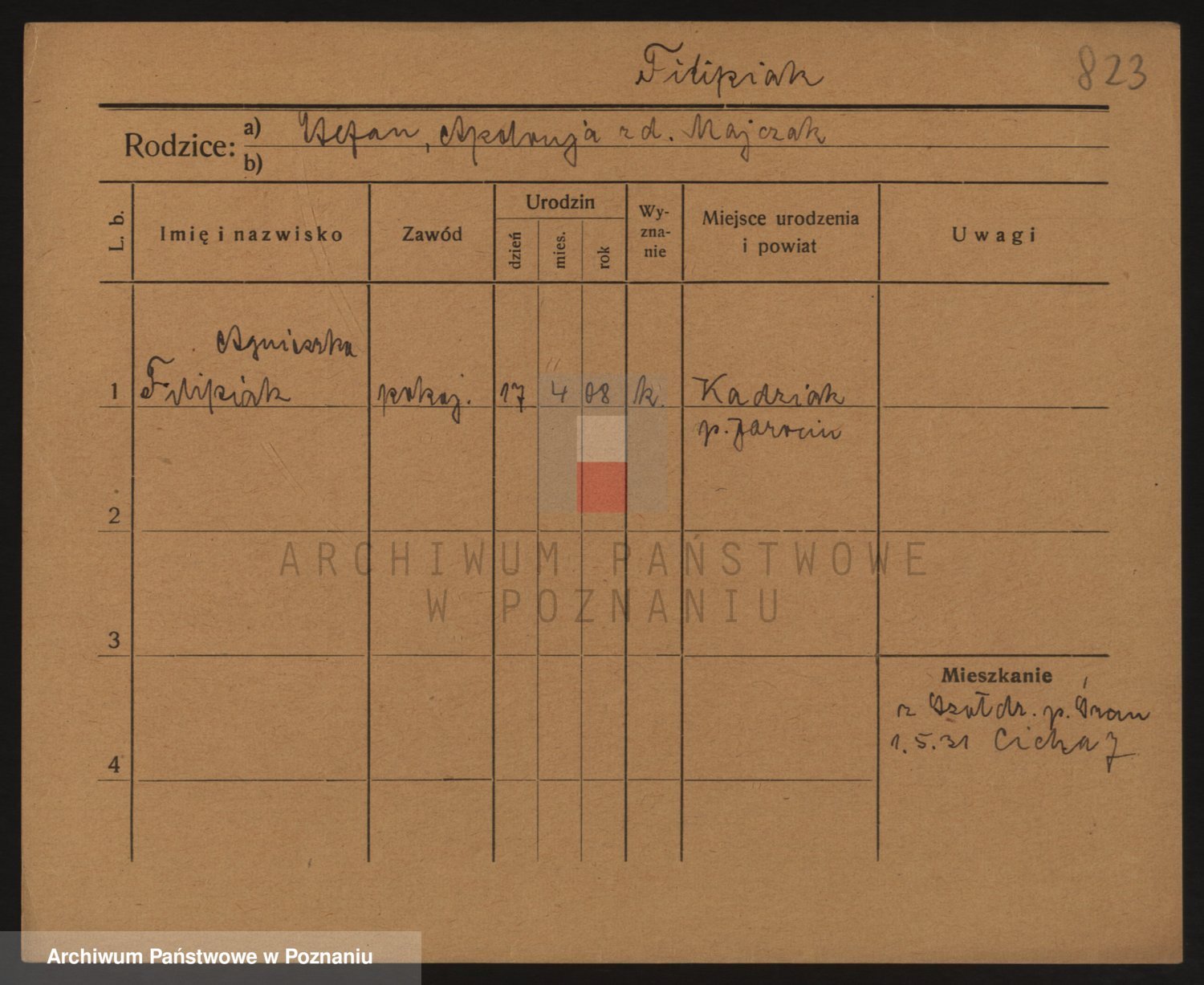 Podgląd karty osobowej dostępny jest po kliknięciu na nazwisko lub ikonkę karty. Można dokonywać powiększenia (ikony na górze) lub przechodzić między kolejnymi skanami (strzałki po bokach).
