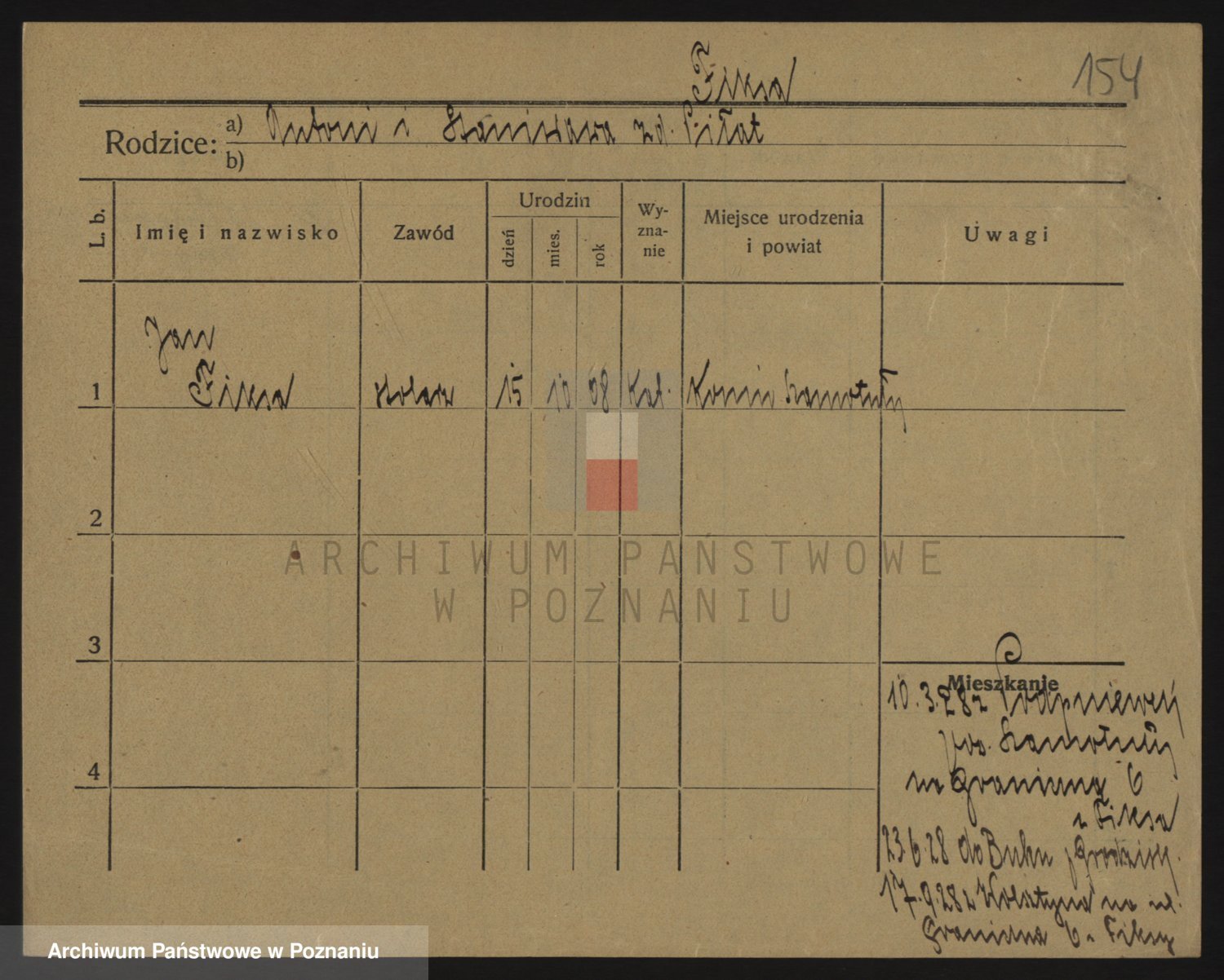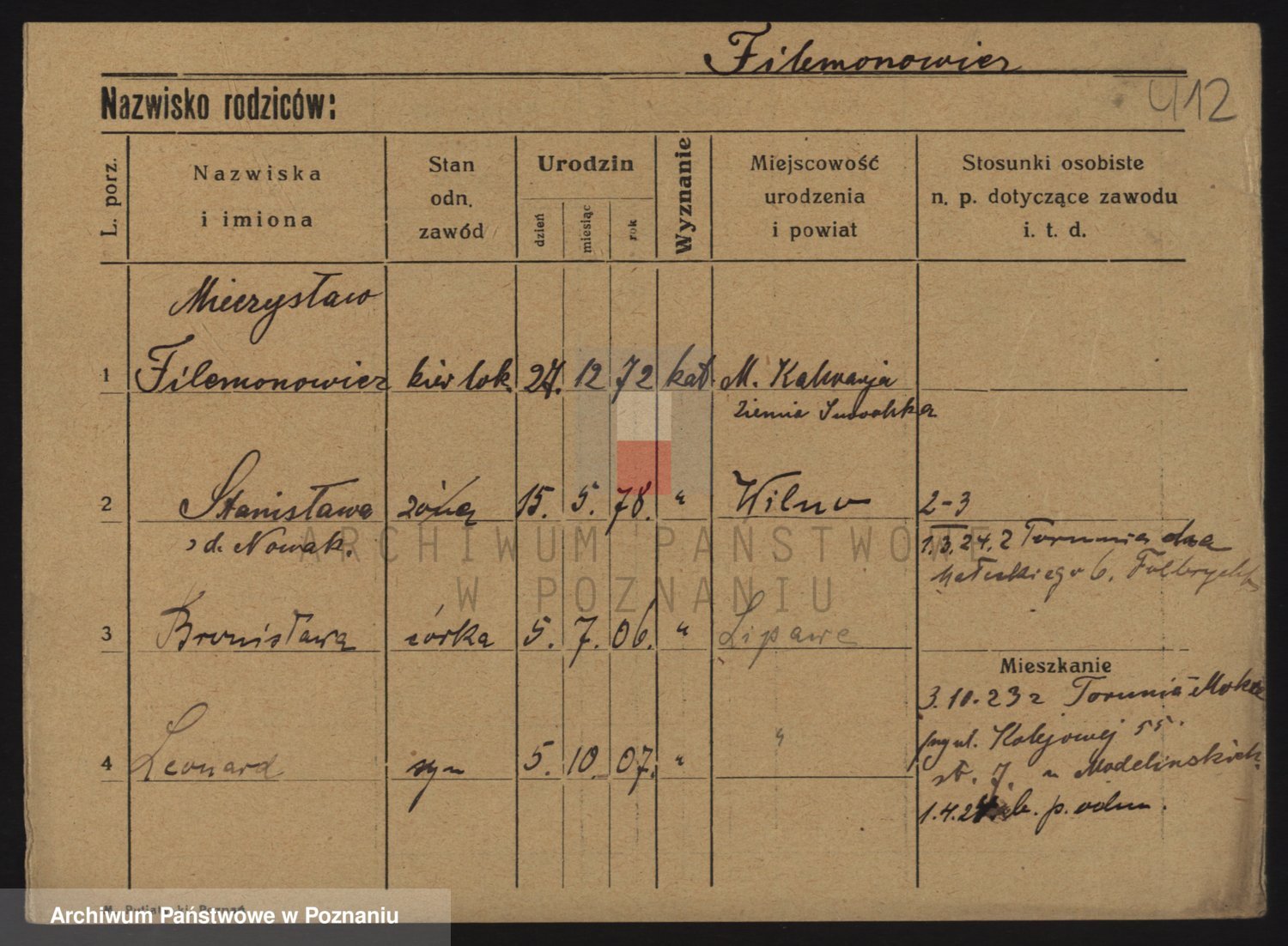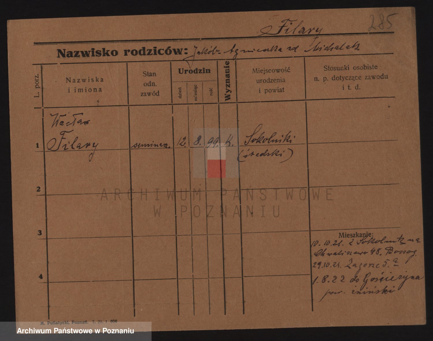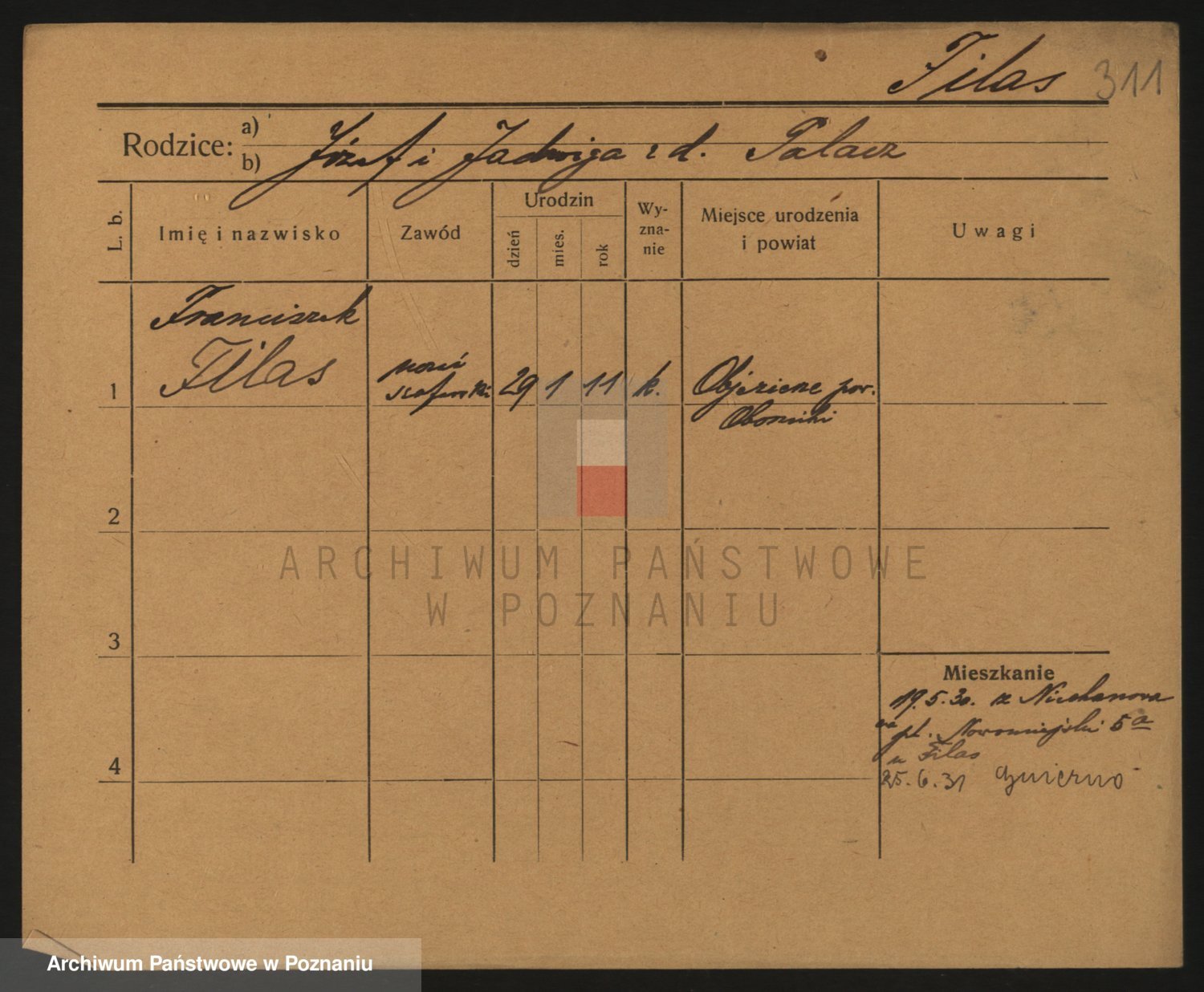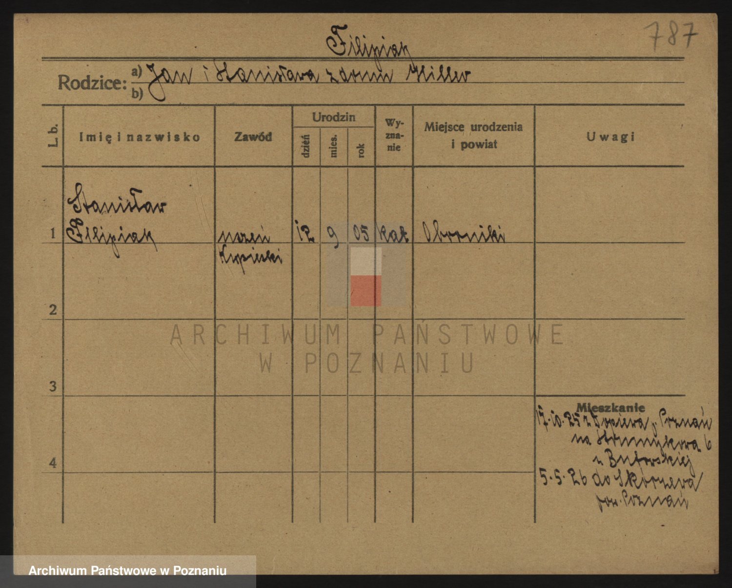 Podgląd karty osobowej dostępny jest po kliknięciu na nazwisko lub ikonkę karty. Można dokonywać powiększenia (ikony na górze) lub przechodzić między kolejnymi skanami (strzałki po bokach).