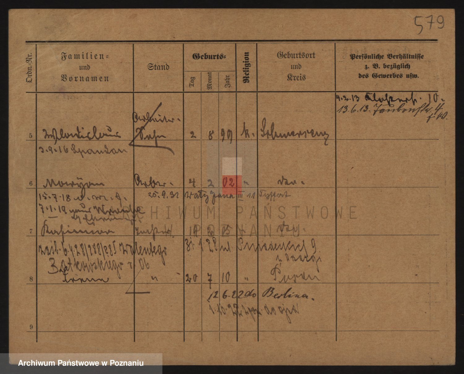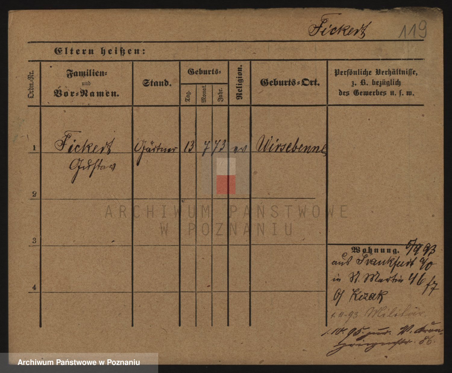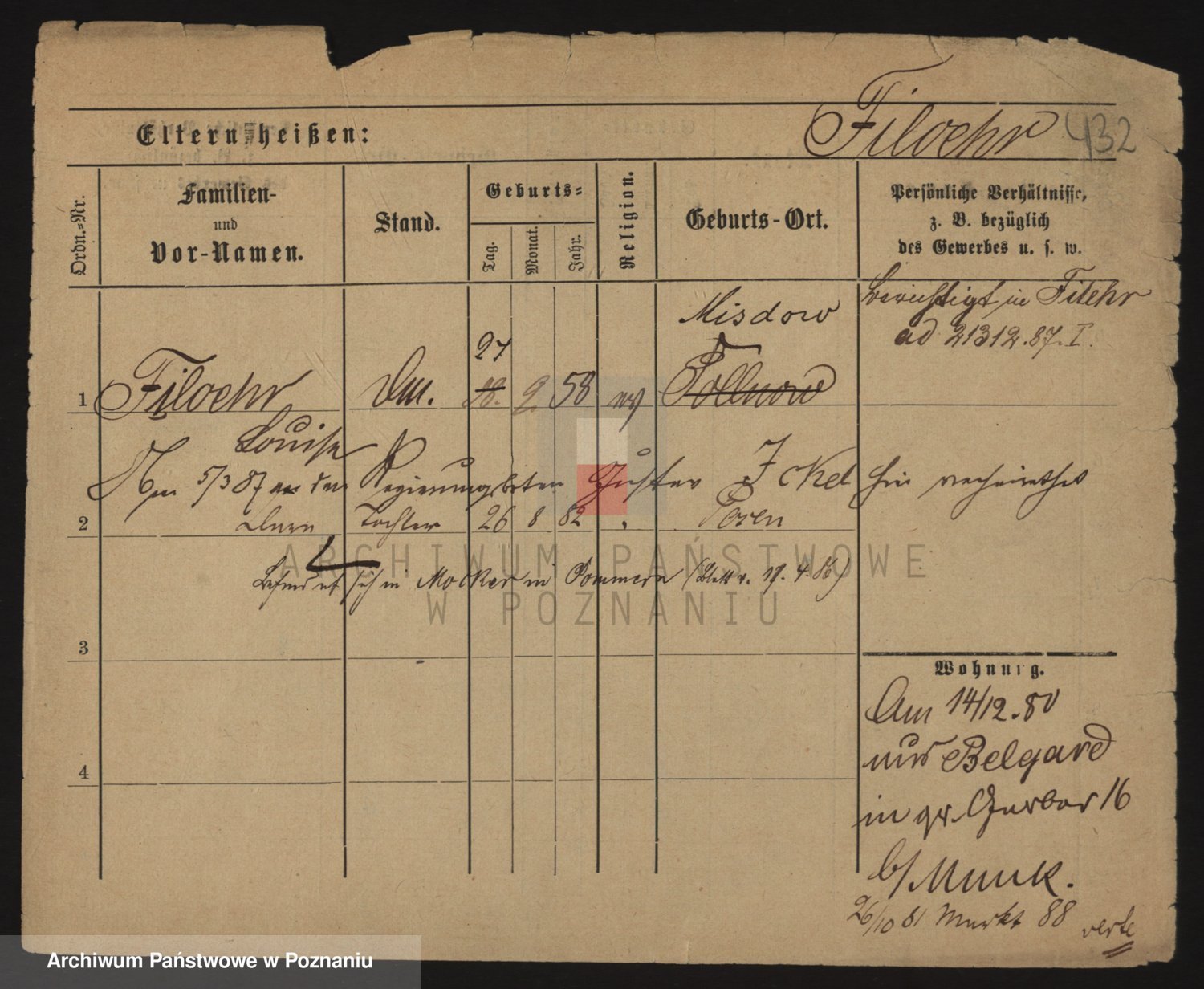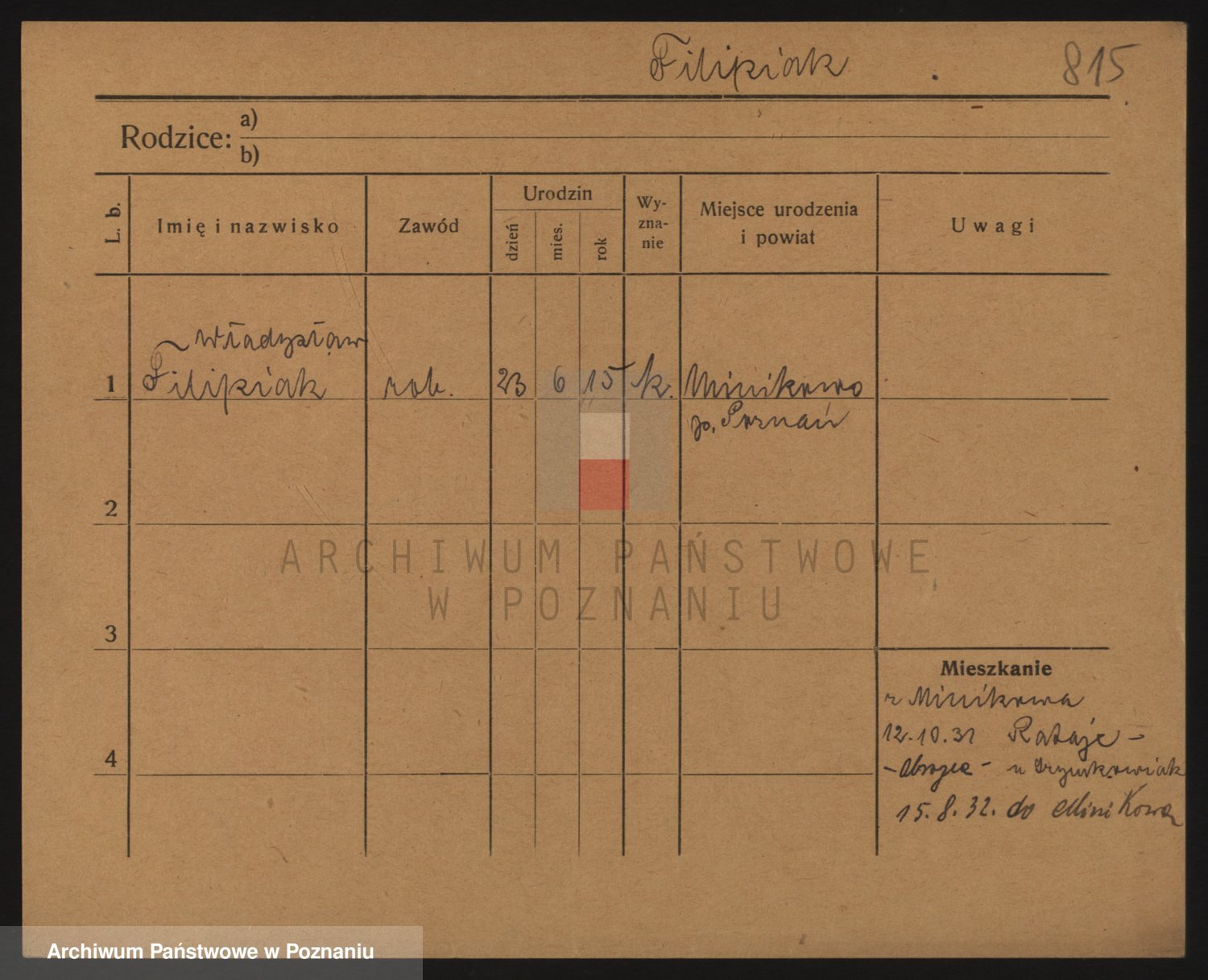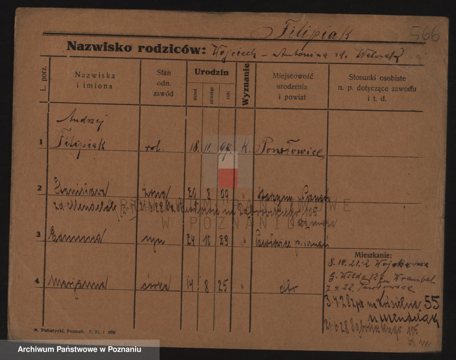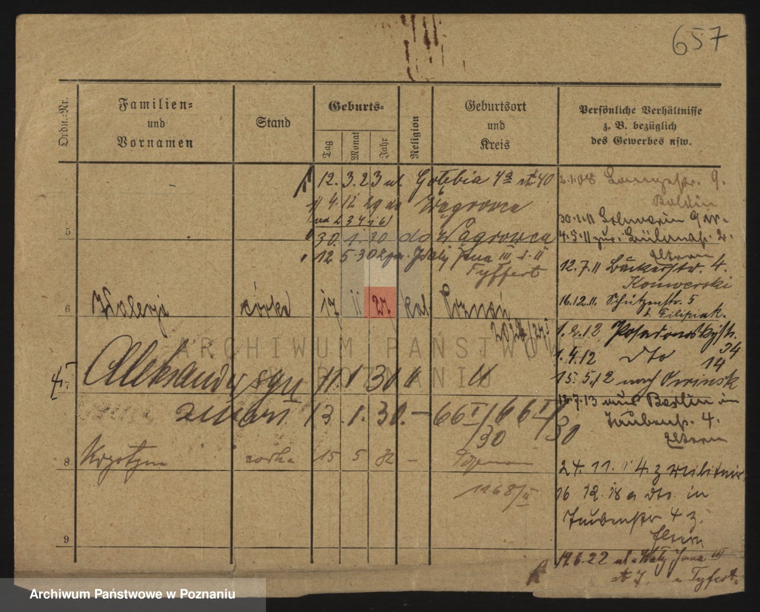 Podgląd karty osobowej dostępny jest po kliknięciu na nazwisko lub ikonkę karty. Można dokonywać powiększenia (ikony na górze) lub przechodzić między kolejnymi skanami (strzałki po bokach).