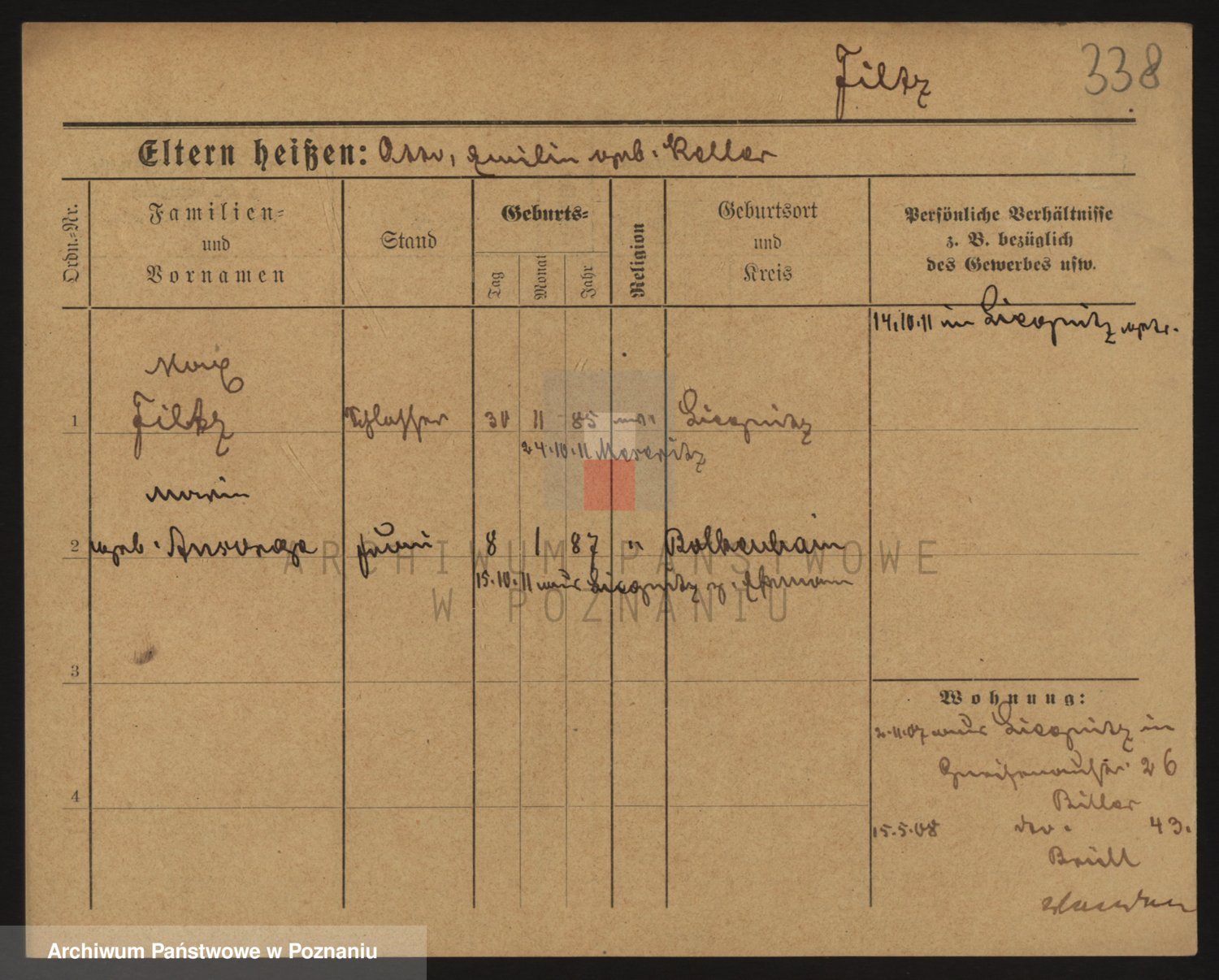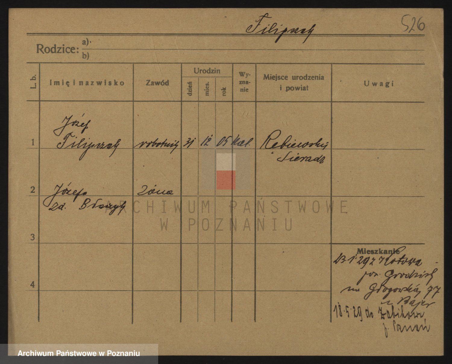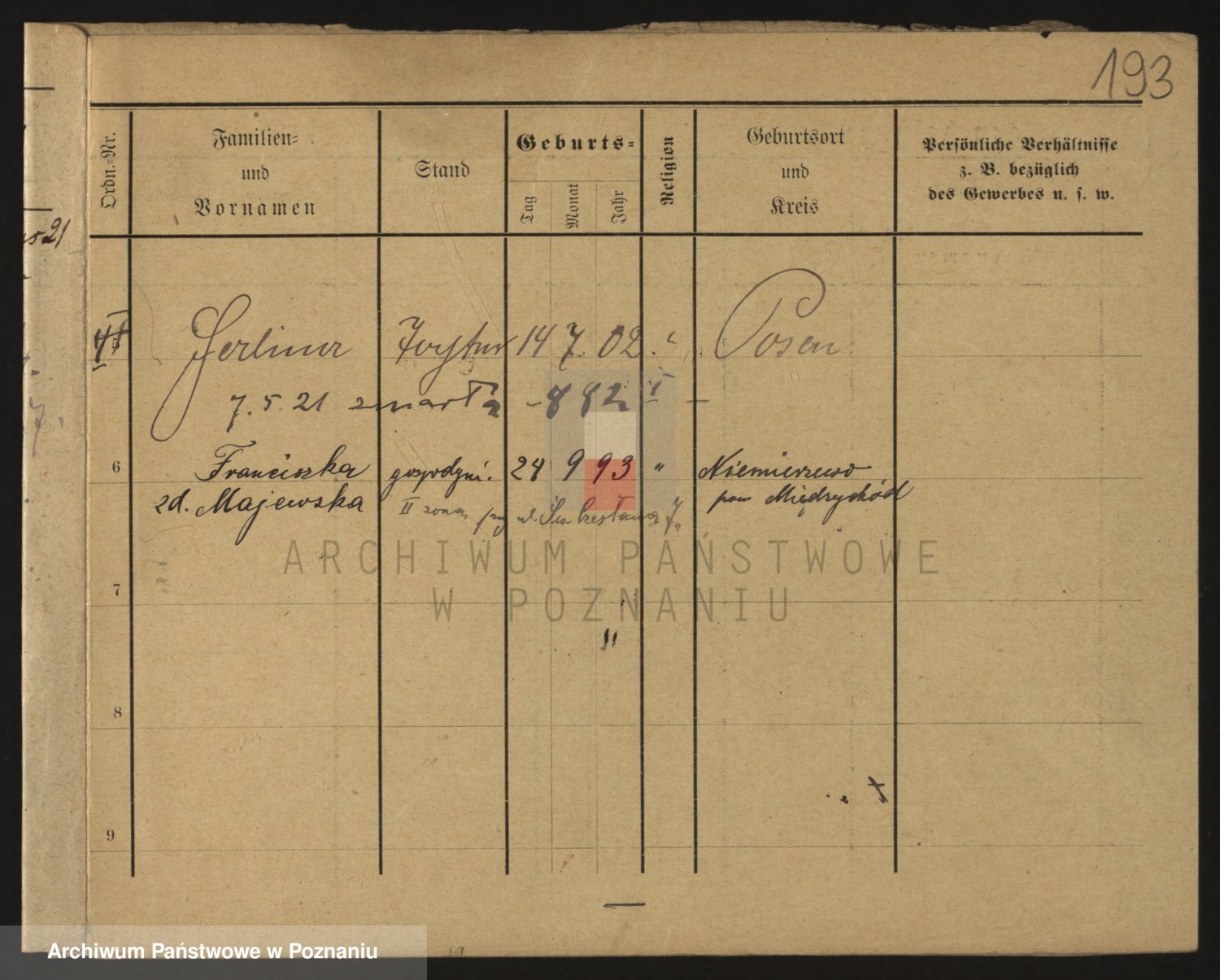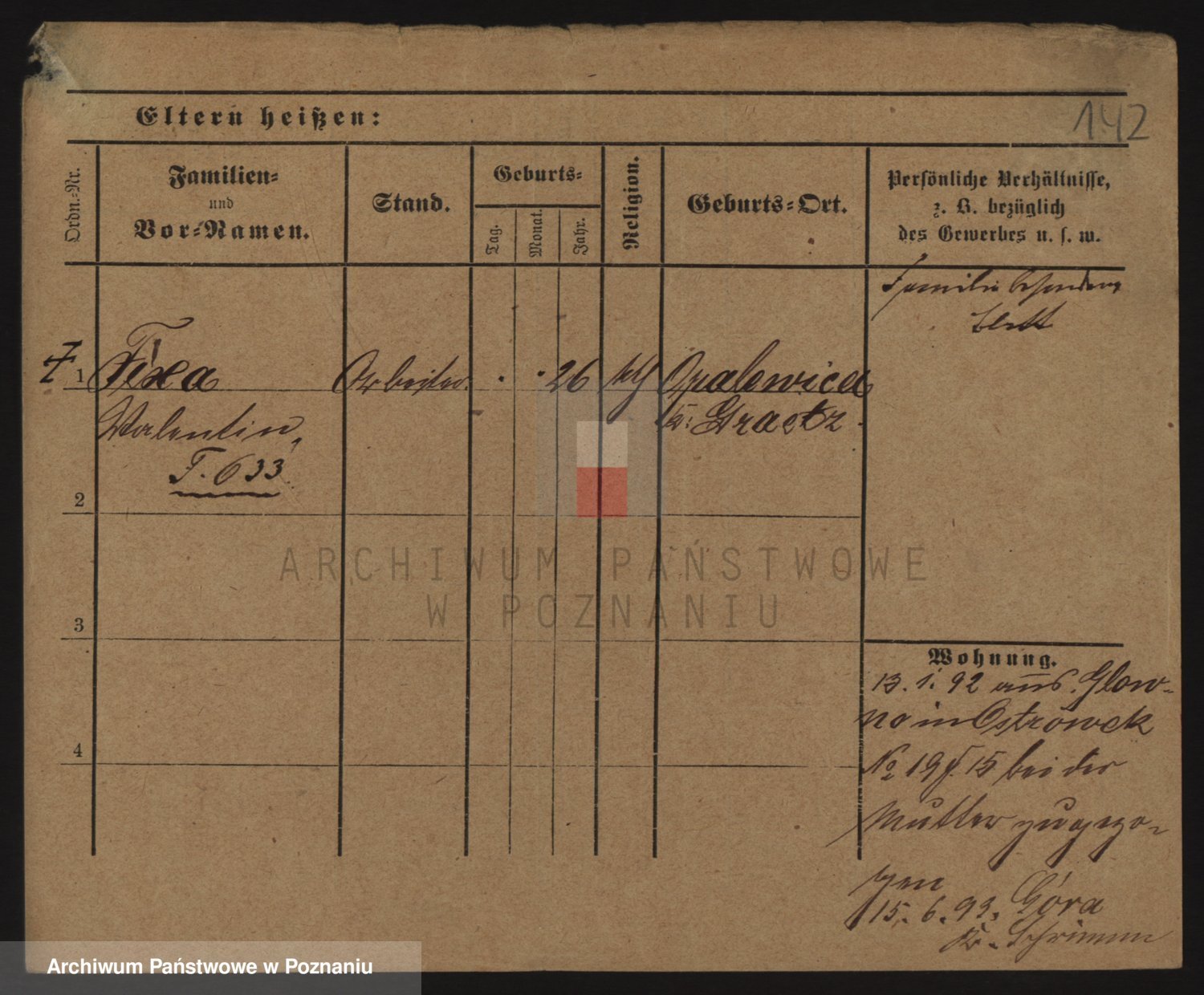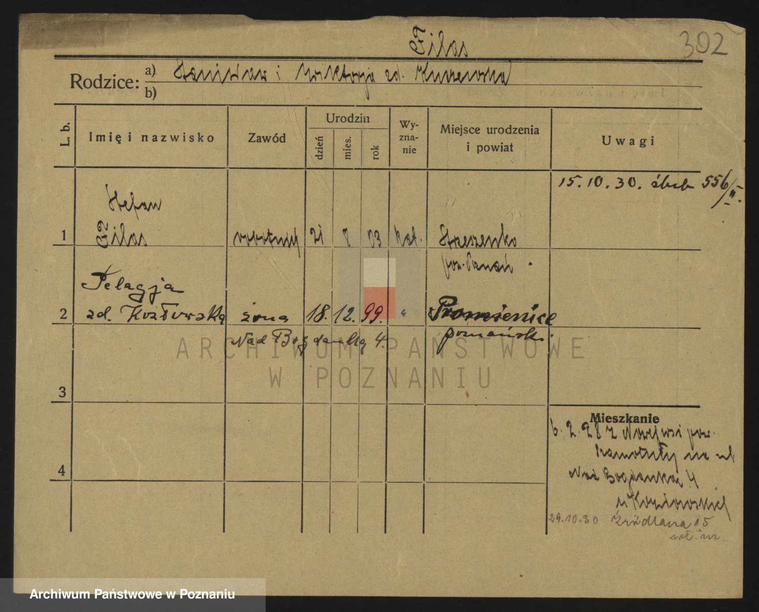 Podgląd karty osobowej dostępny jest po kliknięciu na nazwisko lub ikonkę karty. Można dokonywać powiększenia (ikony na górze) lub przechodzić między kolejnymi skanami (strzałki po bokach).