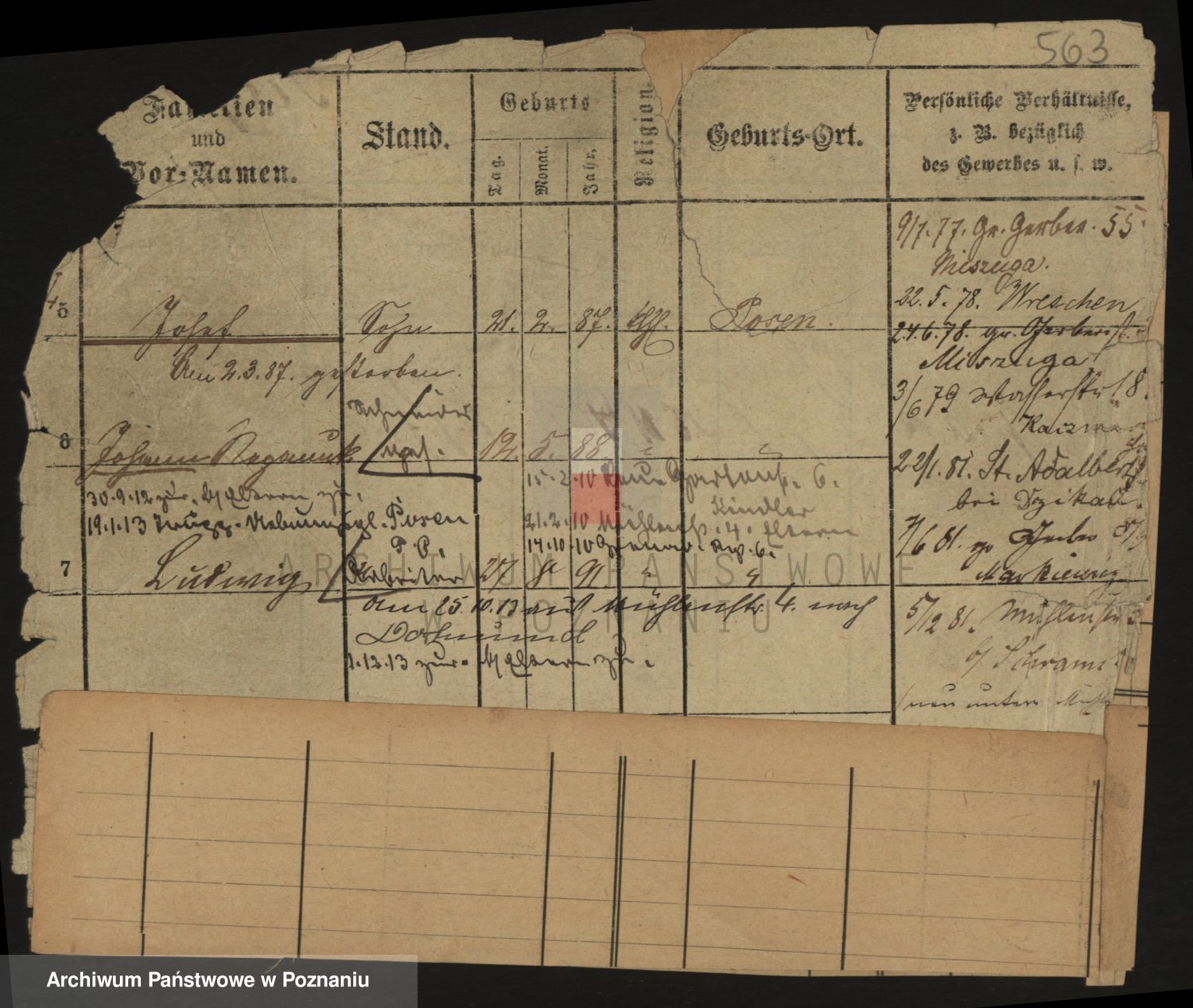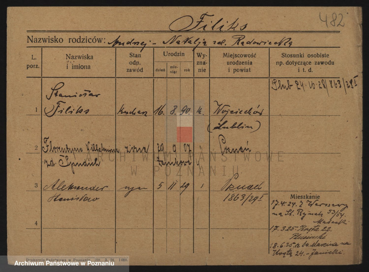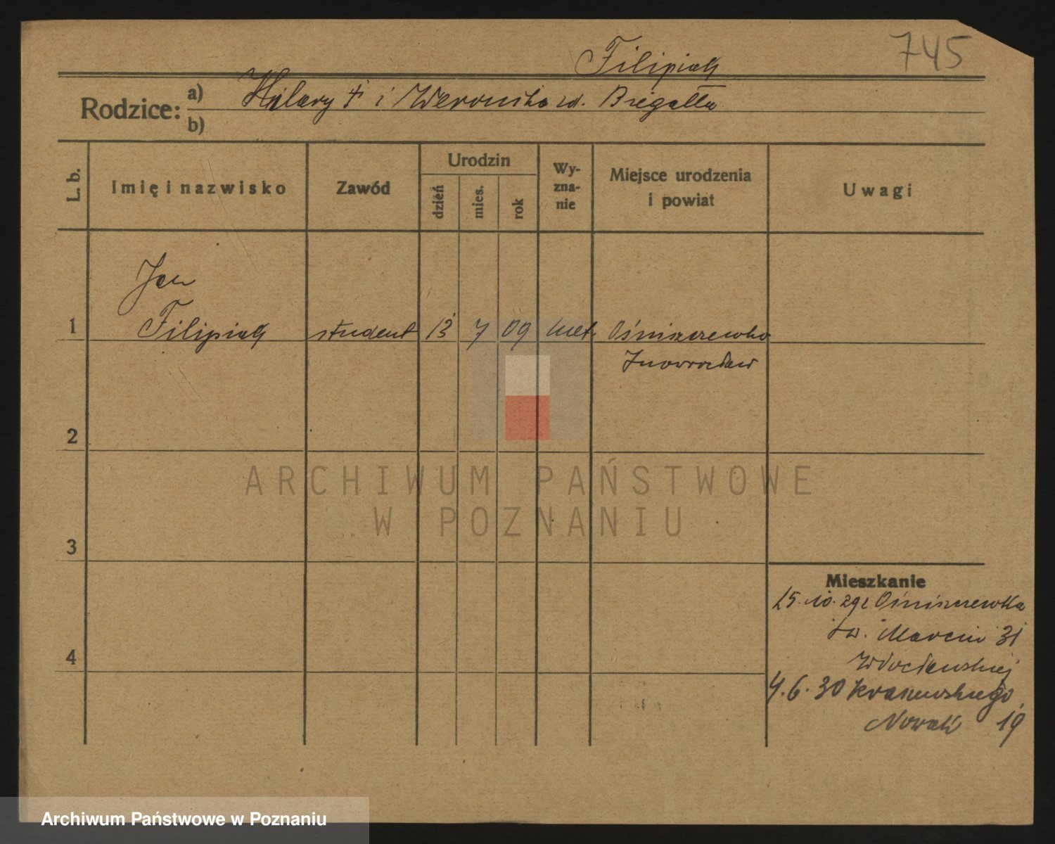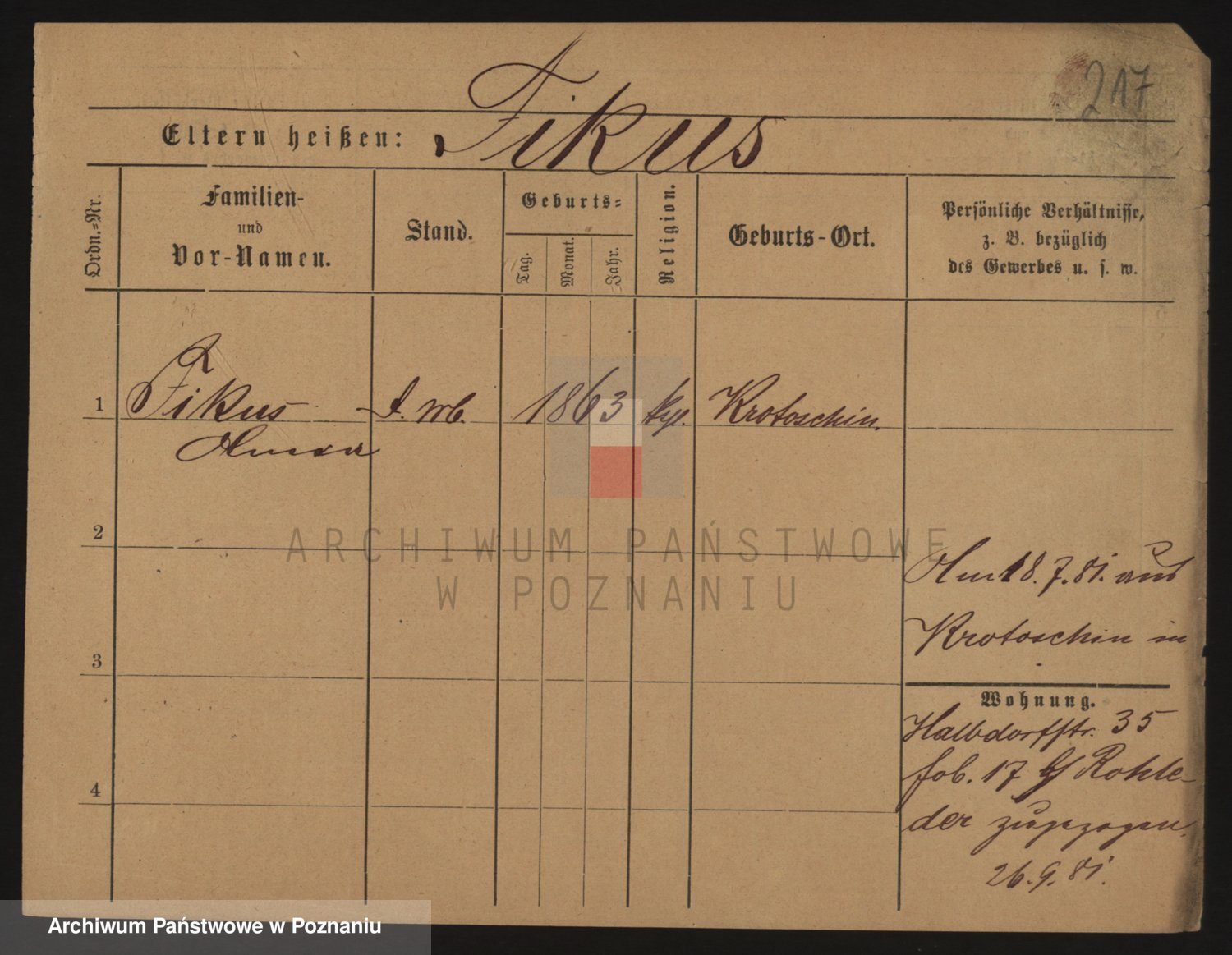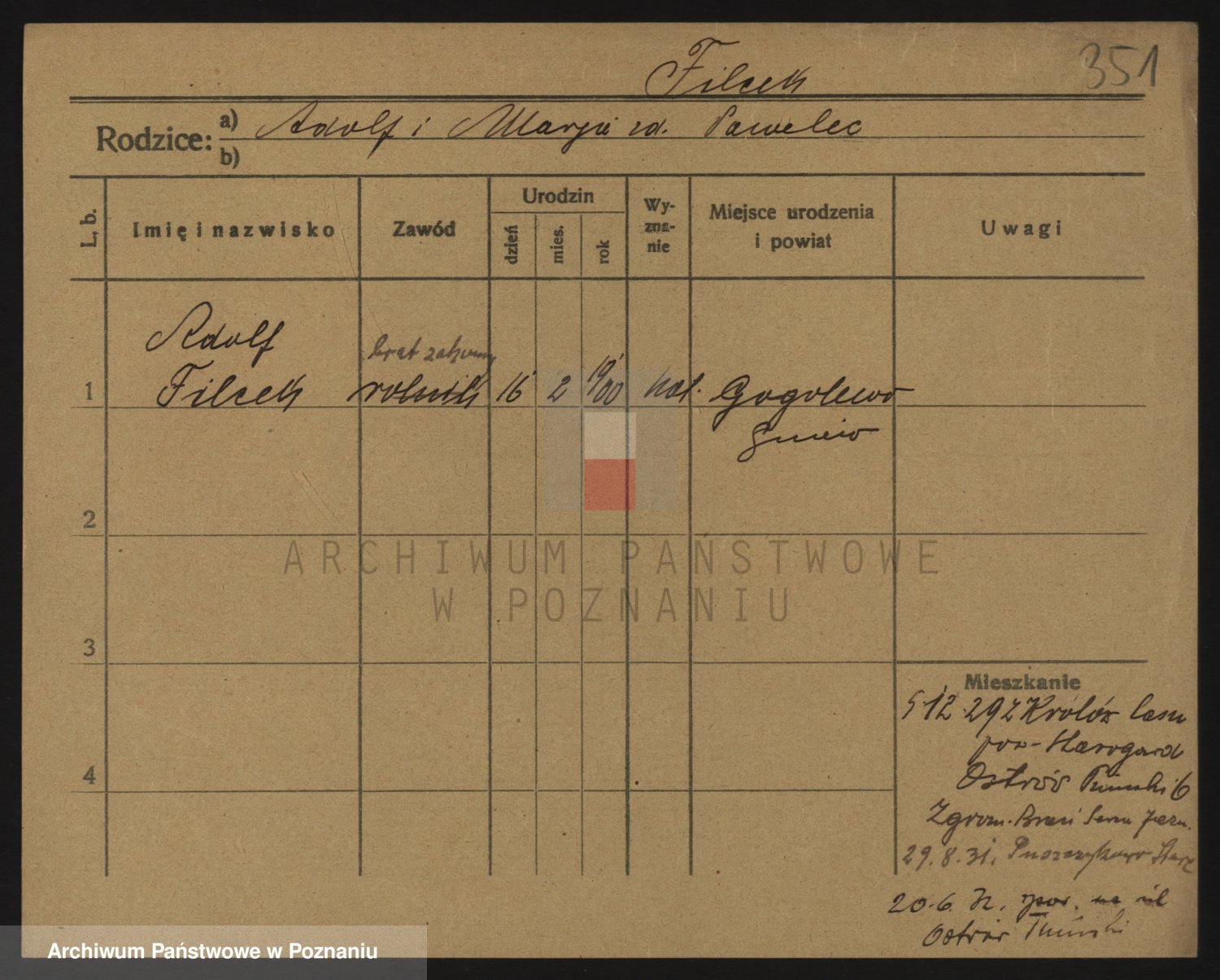 Podgląd karty osobowej dostępny jest po kliknięciu na nazwisko lub ikonkę karty. Można dokonywać powiększenia (ikony na górze) lub przechodzić między kolejnymi skanami (strzałki po bokach).
