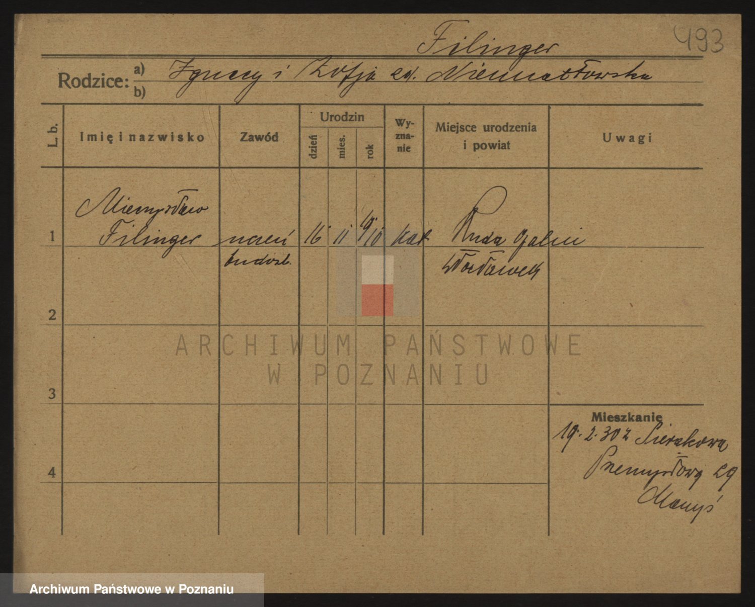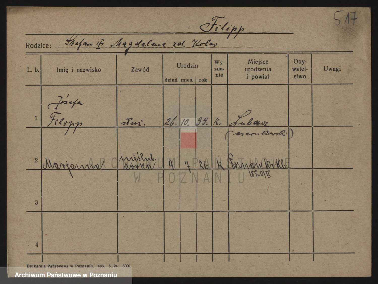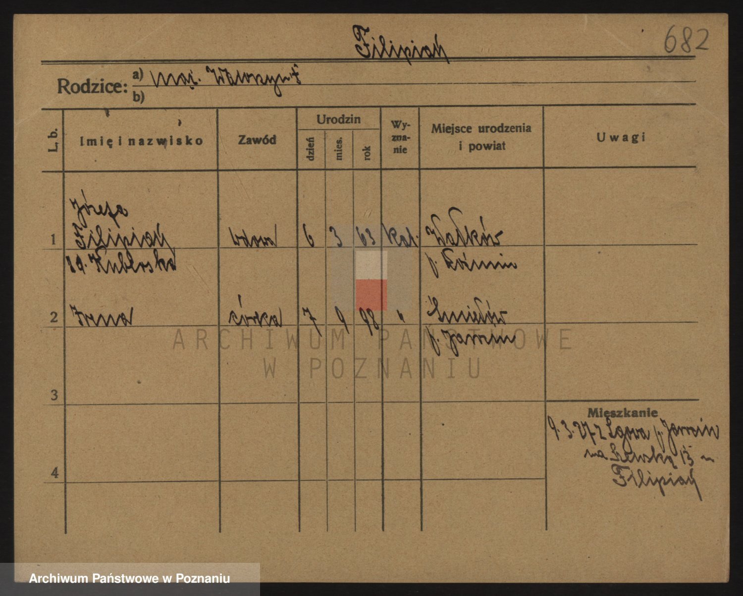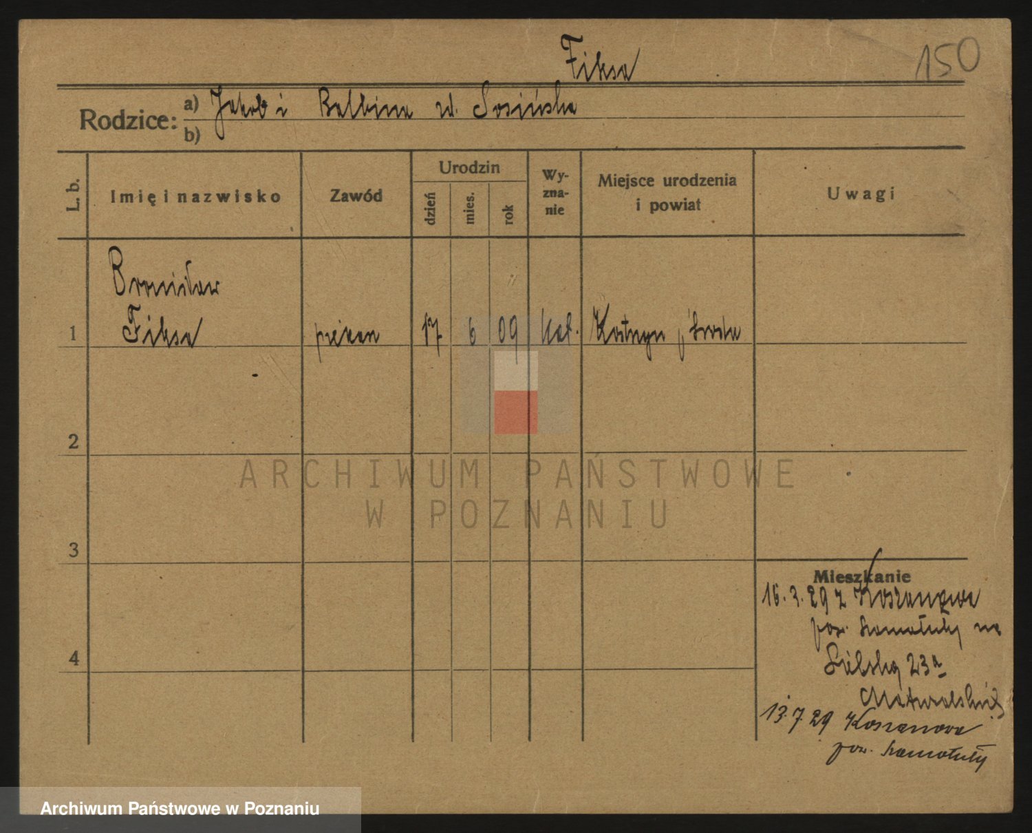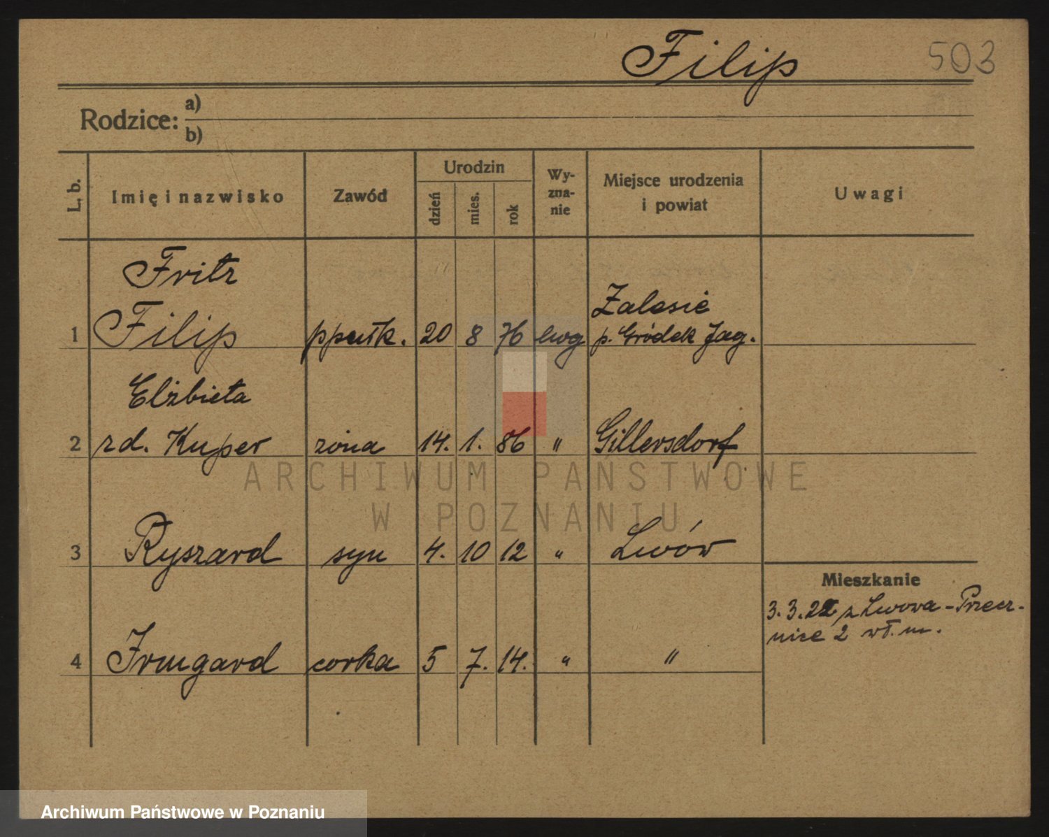 Podgląd karty osobowej dostępny jest po kliknięciu na nazwisko lub ikonkę karty. Można dokonywać powiększenia (ikony na górze) lub przechodzić między kolejnymi skanami (strzałki po bokach).