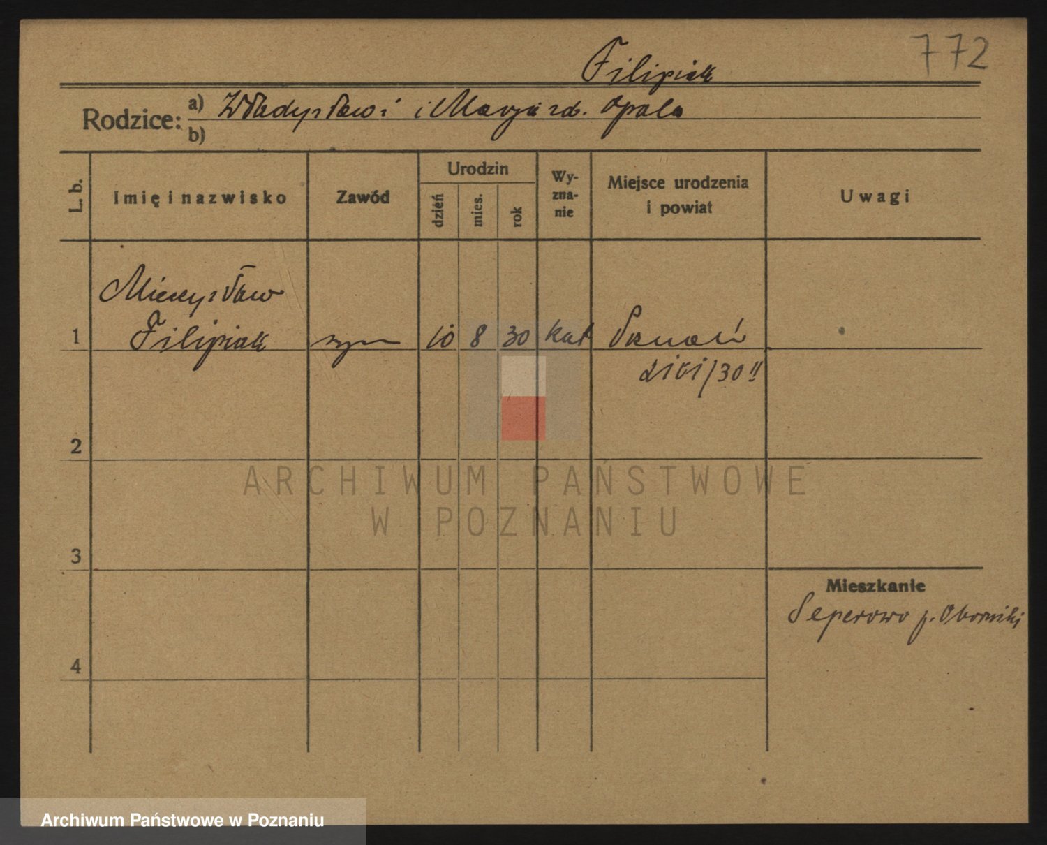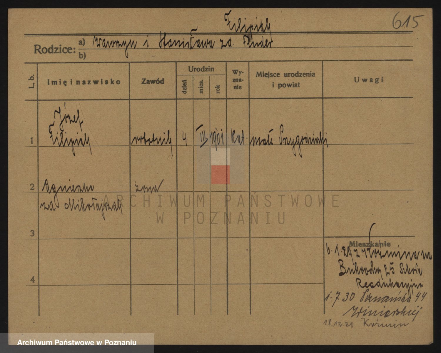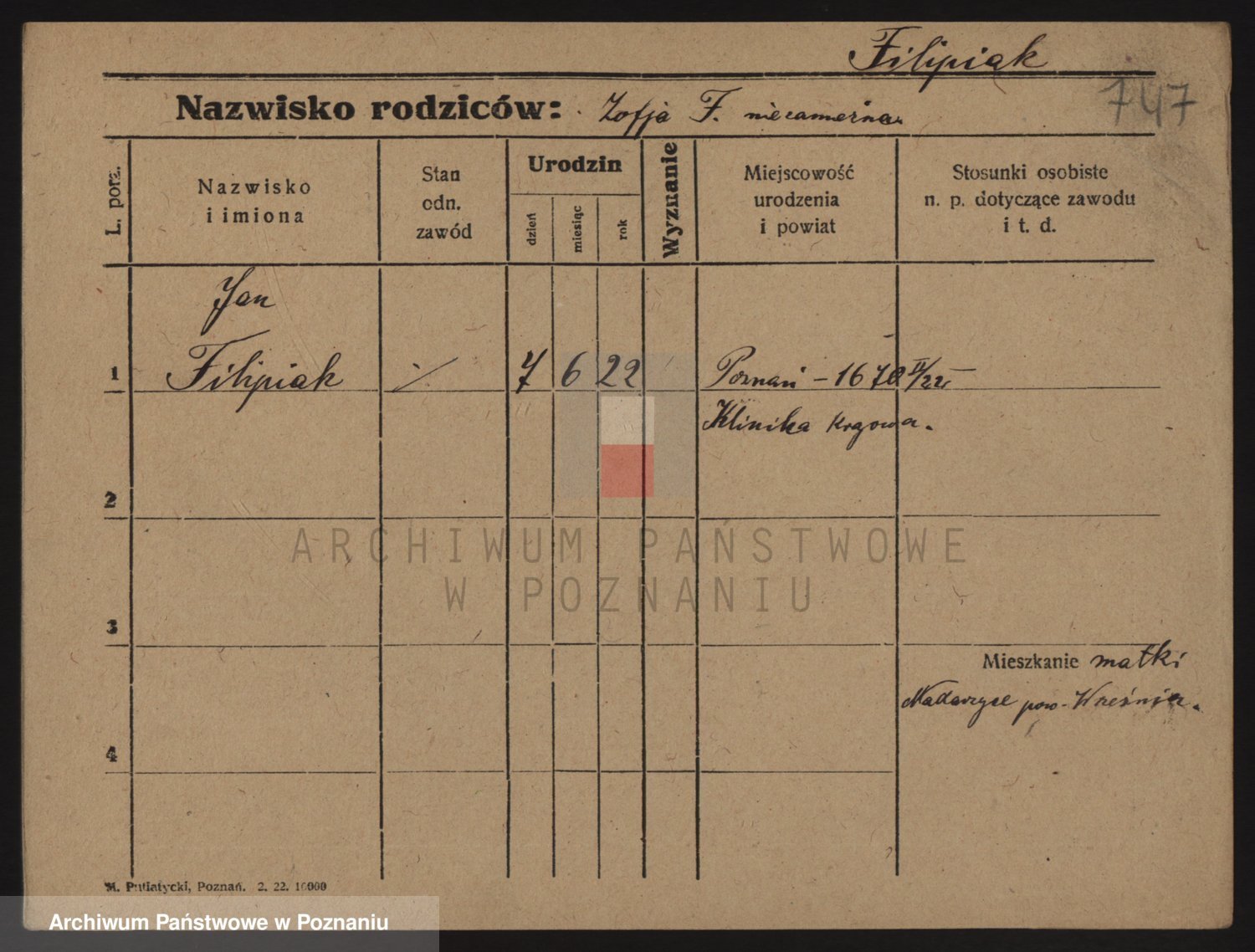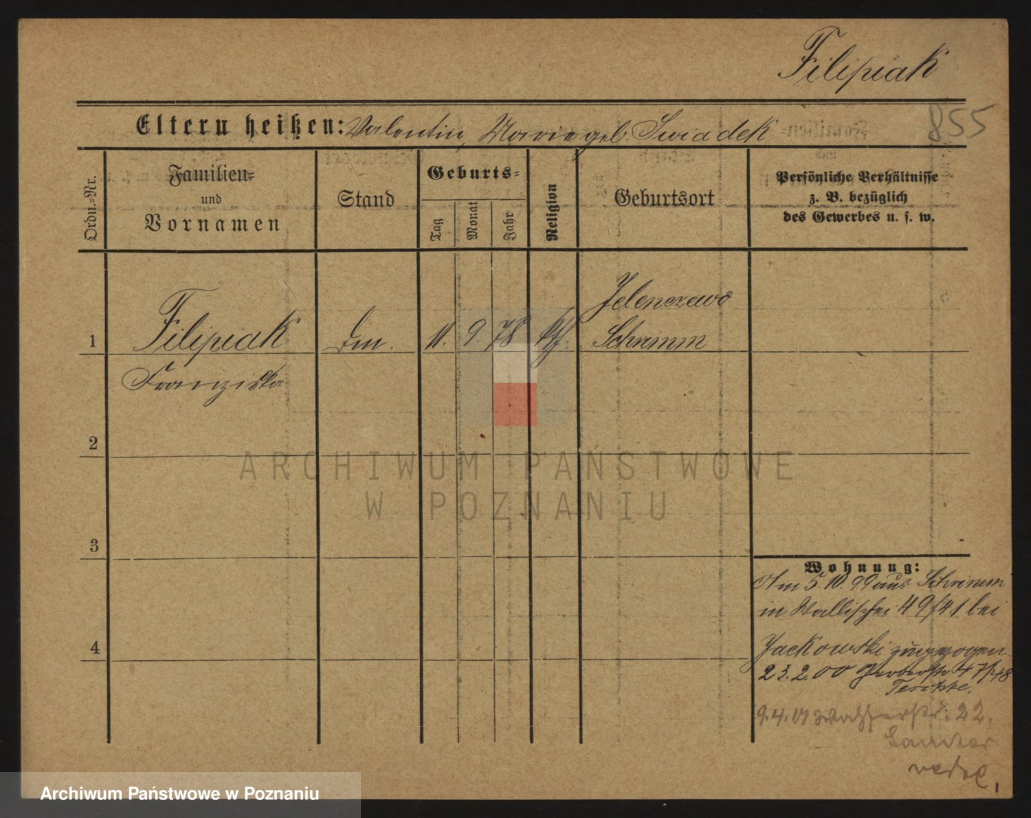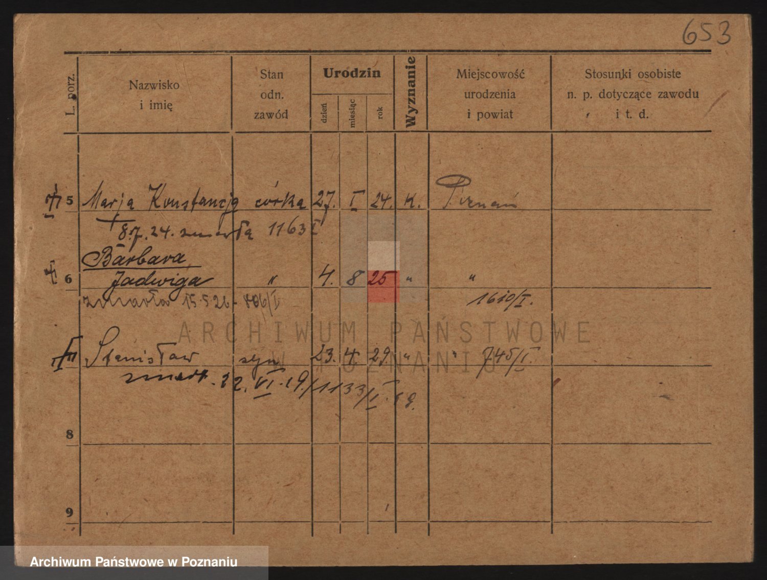 Podgląd karty osobowej dostępny jest po kliknięciu na nazwisko lub ikonkę karty. Można dokonywać powiększenia (ikony na górze) lub przechodzić między kolejnymi skanami (strzałki po bokach).