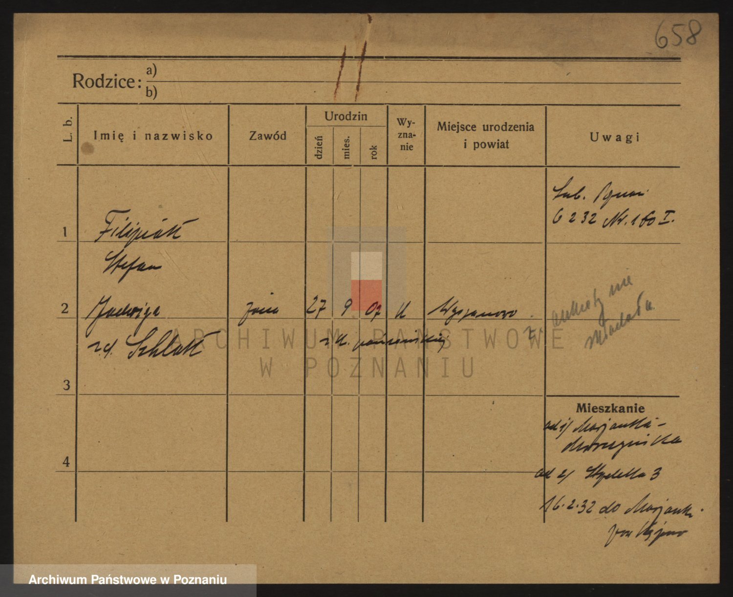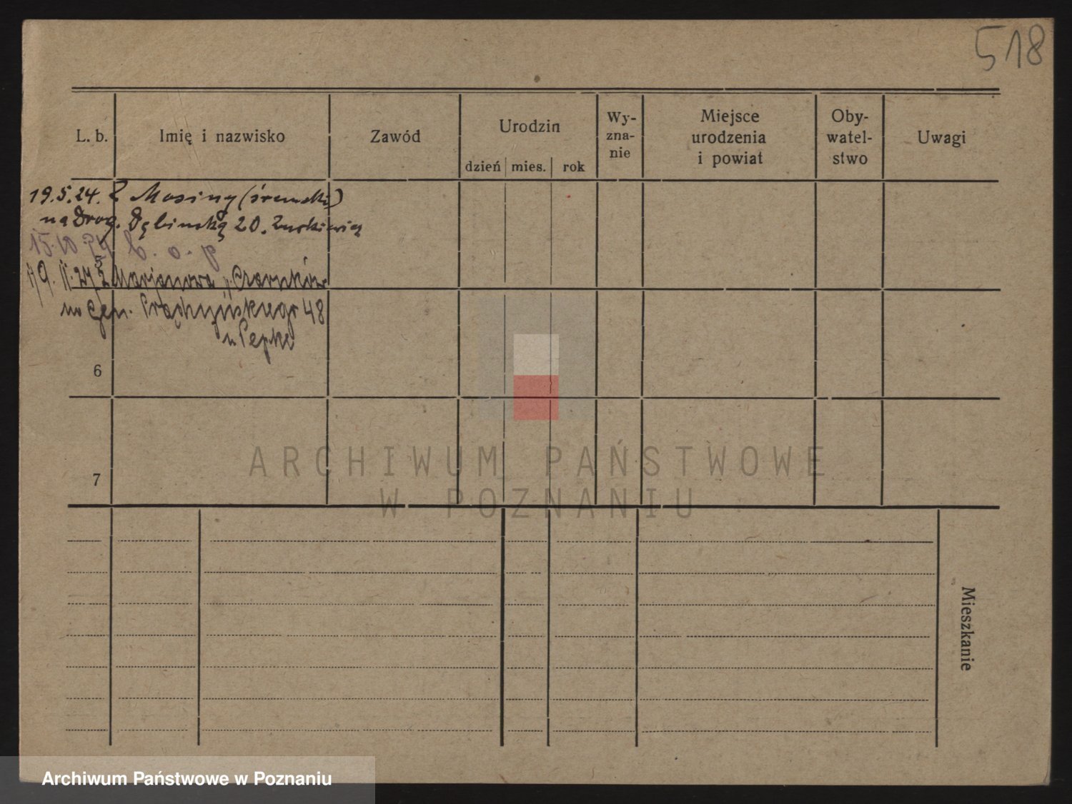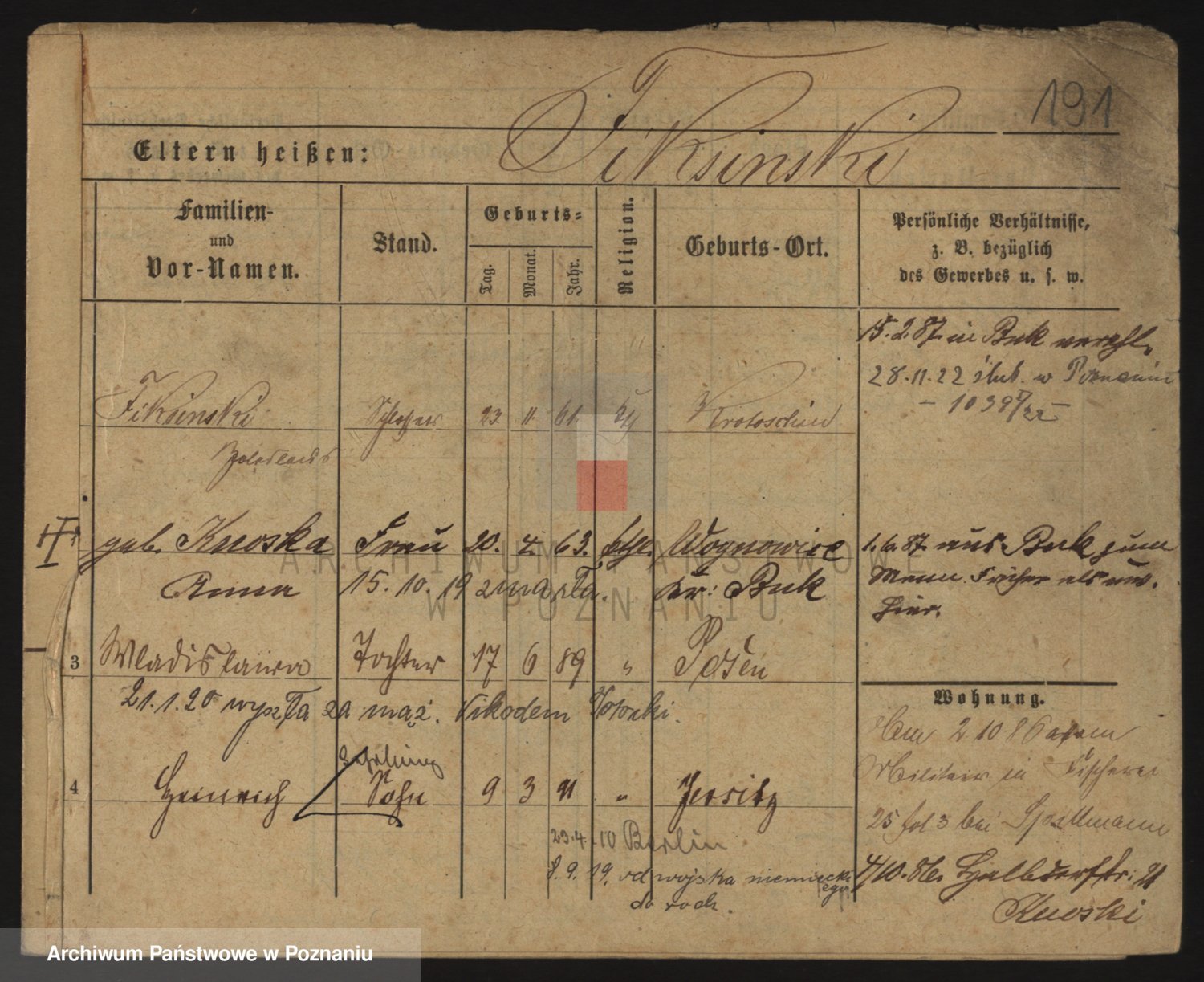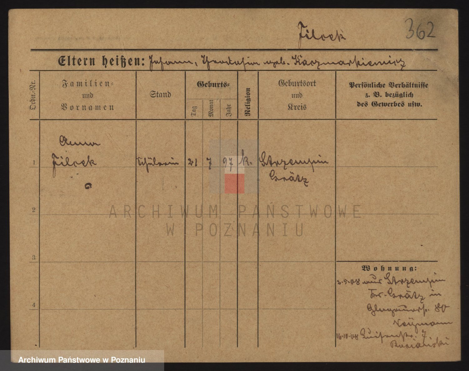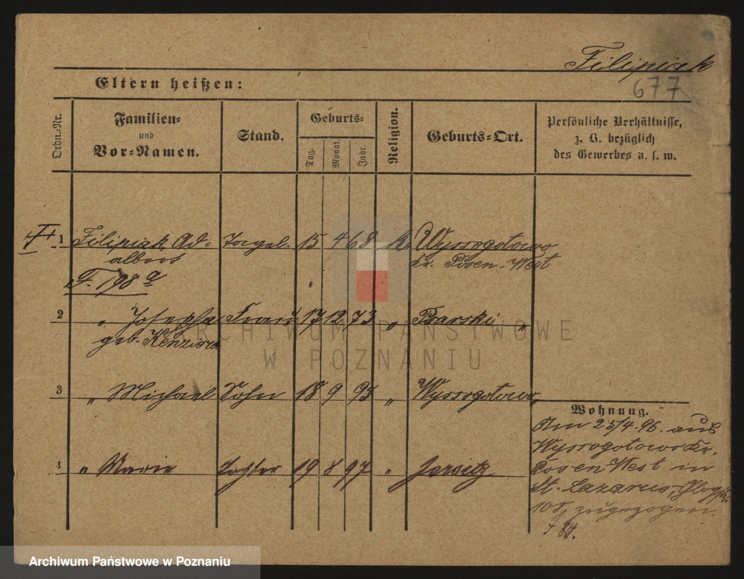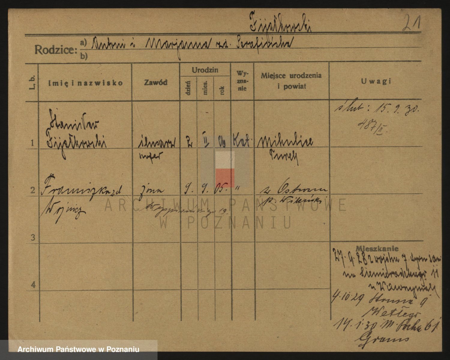 Podgląd karty osobowej dostępny jest po kliknięciu na nazwisko lub ikonkę karty. Można dokonywać powiększenia (ikony na górze) lub przechodzić między kolejnymi skanami (strzałki po bokach).
