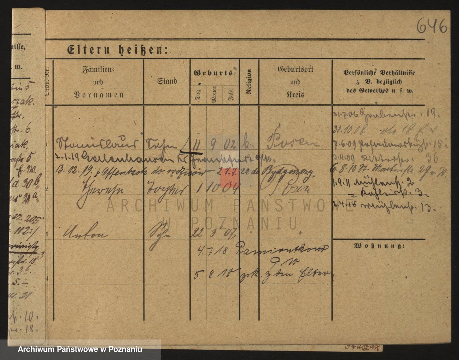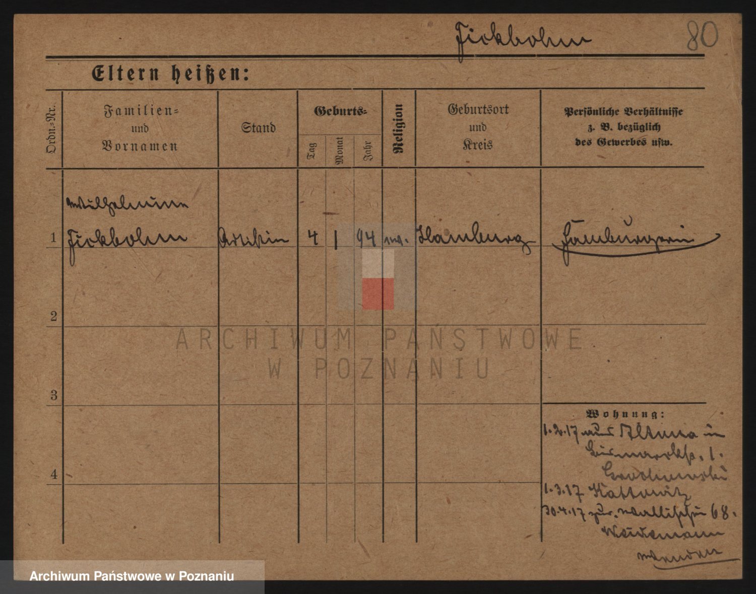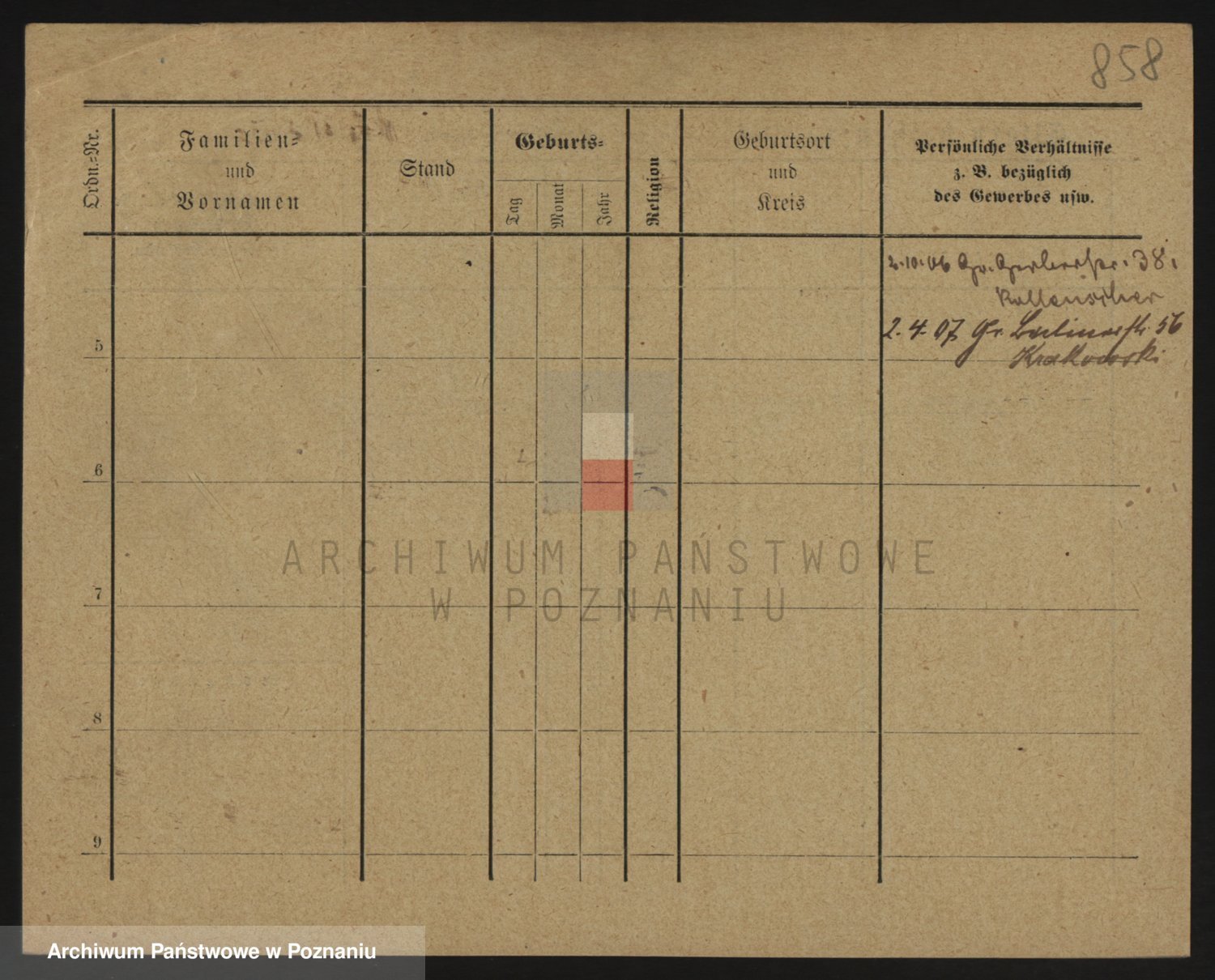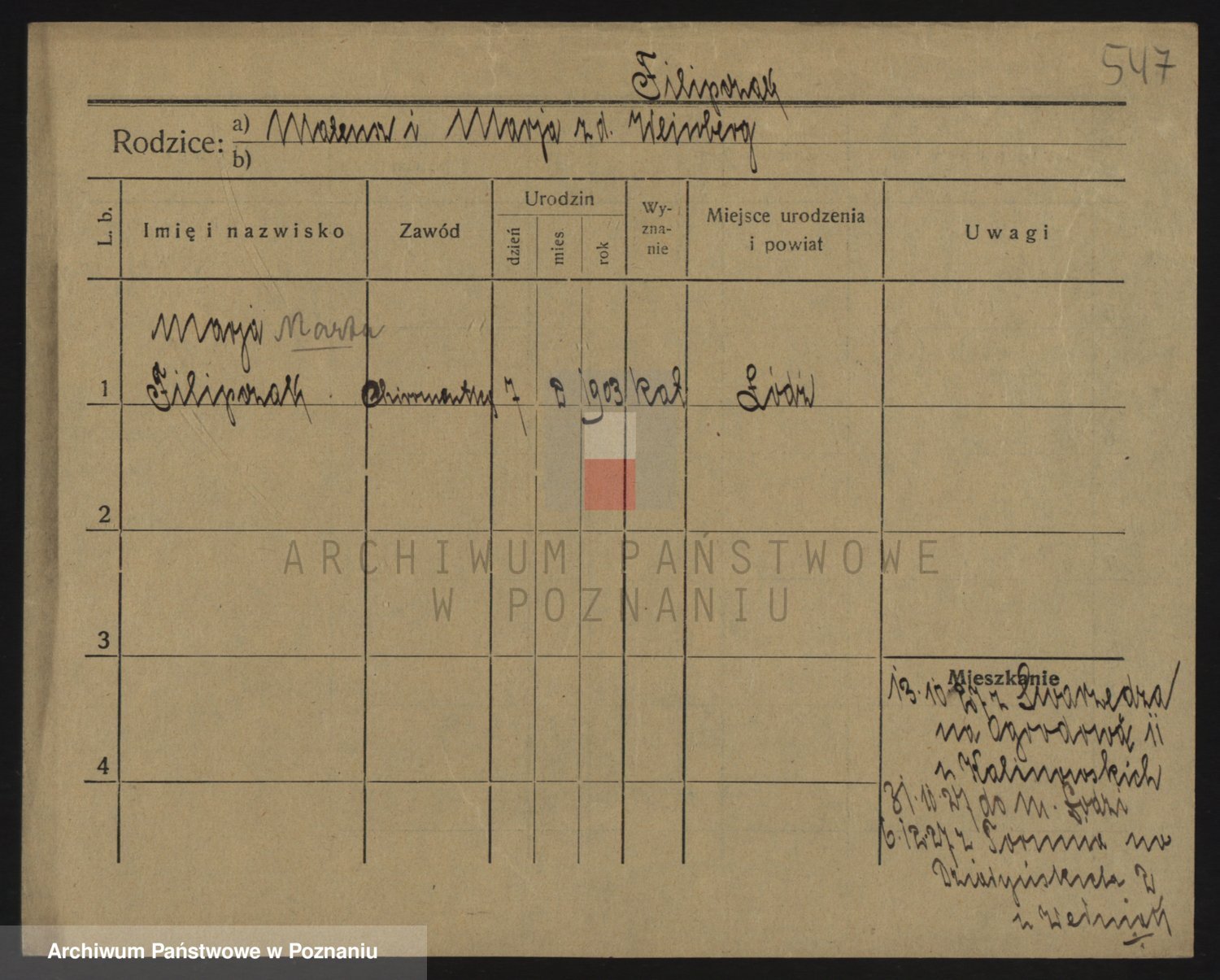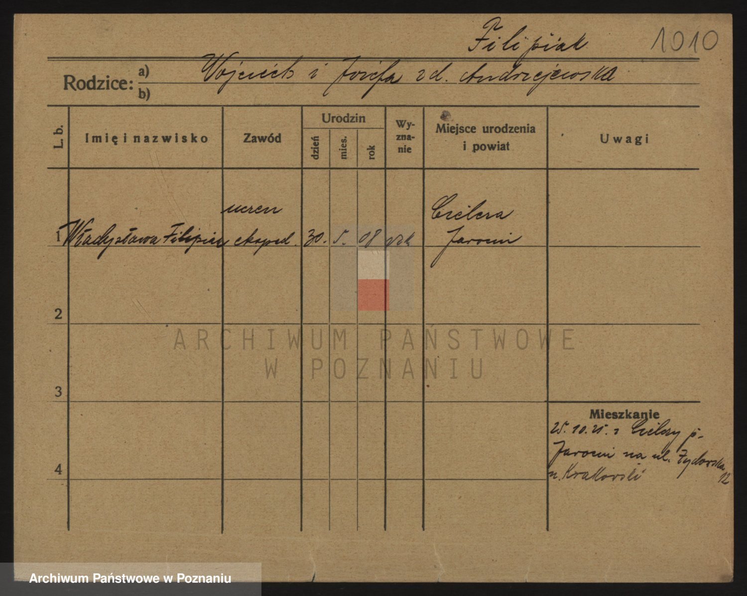 Podgląd karty osobowej dostępny jest po kliknięciu na nazwisko lub ikonkę karty. Można dokonywać powiększenia (ikony na górze) lub przechodzić między kolejnymi skanami (strzałki po bokach).