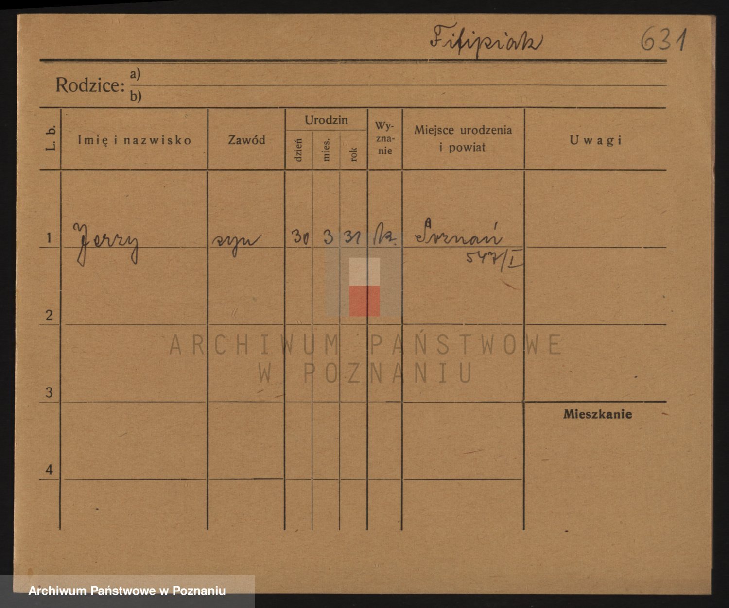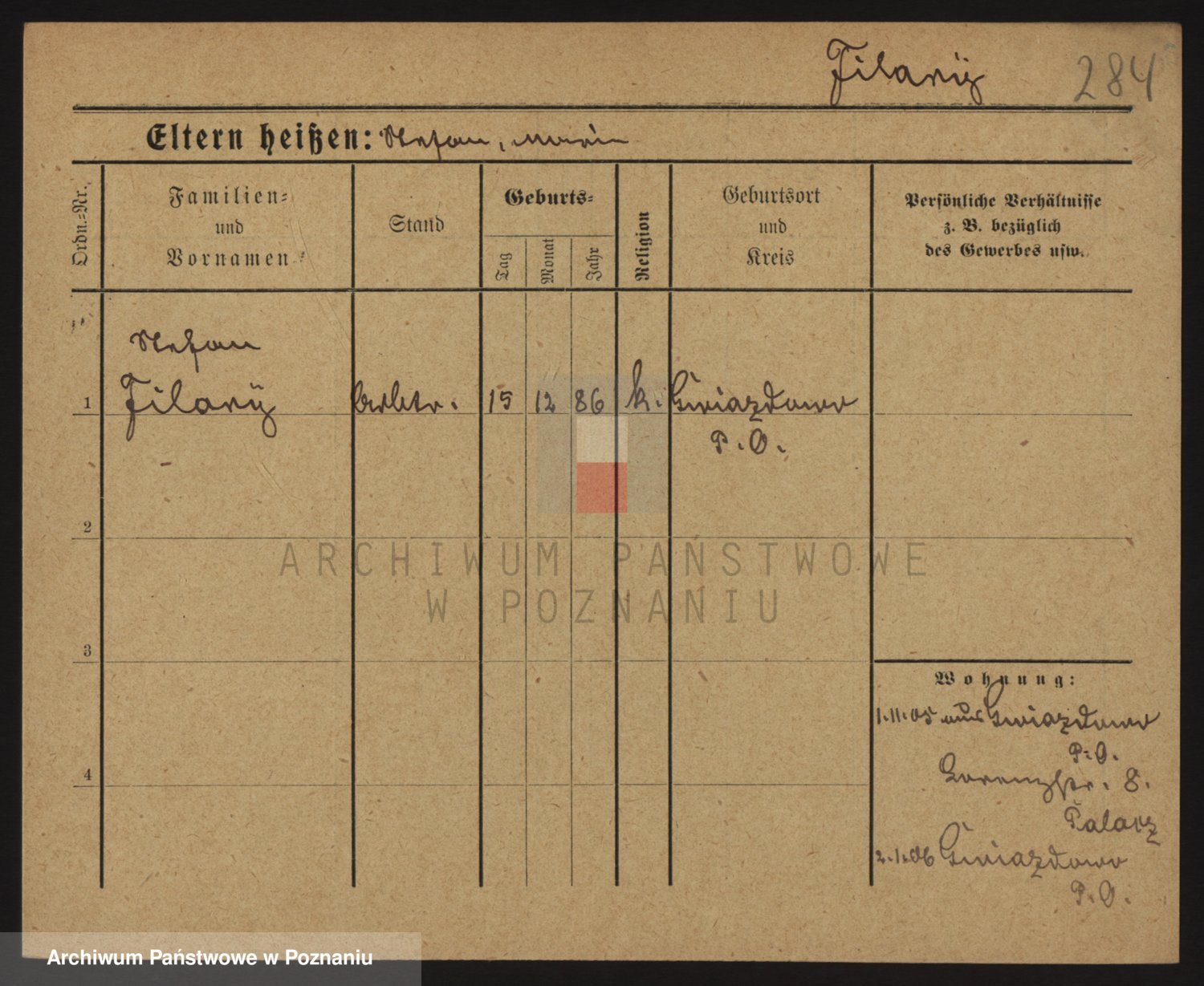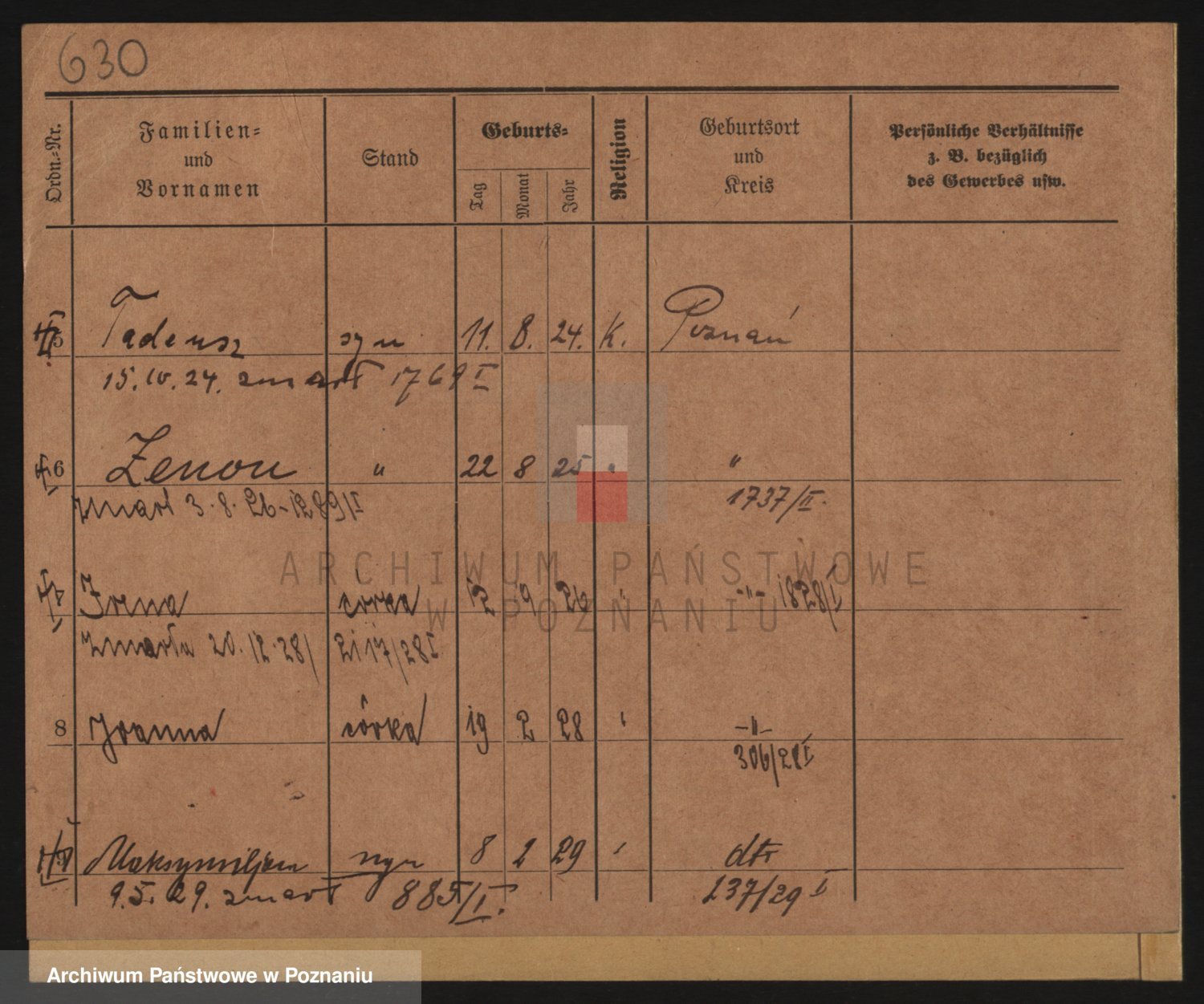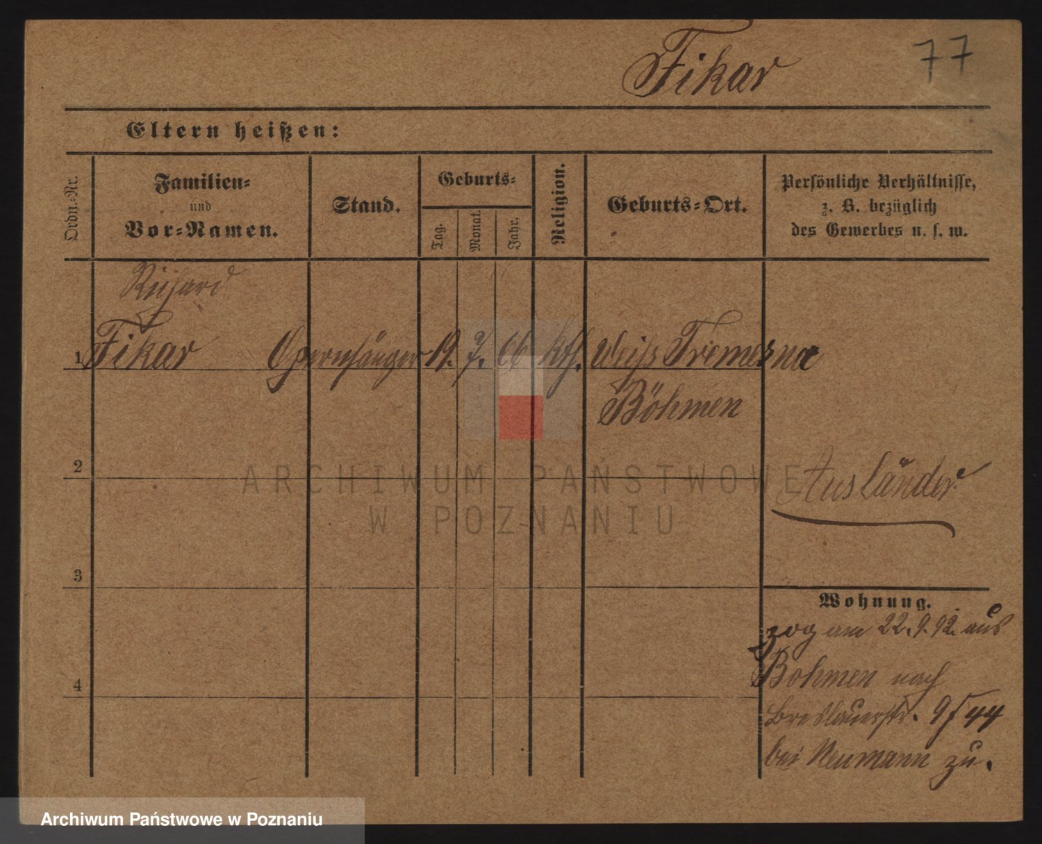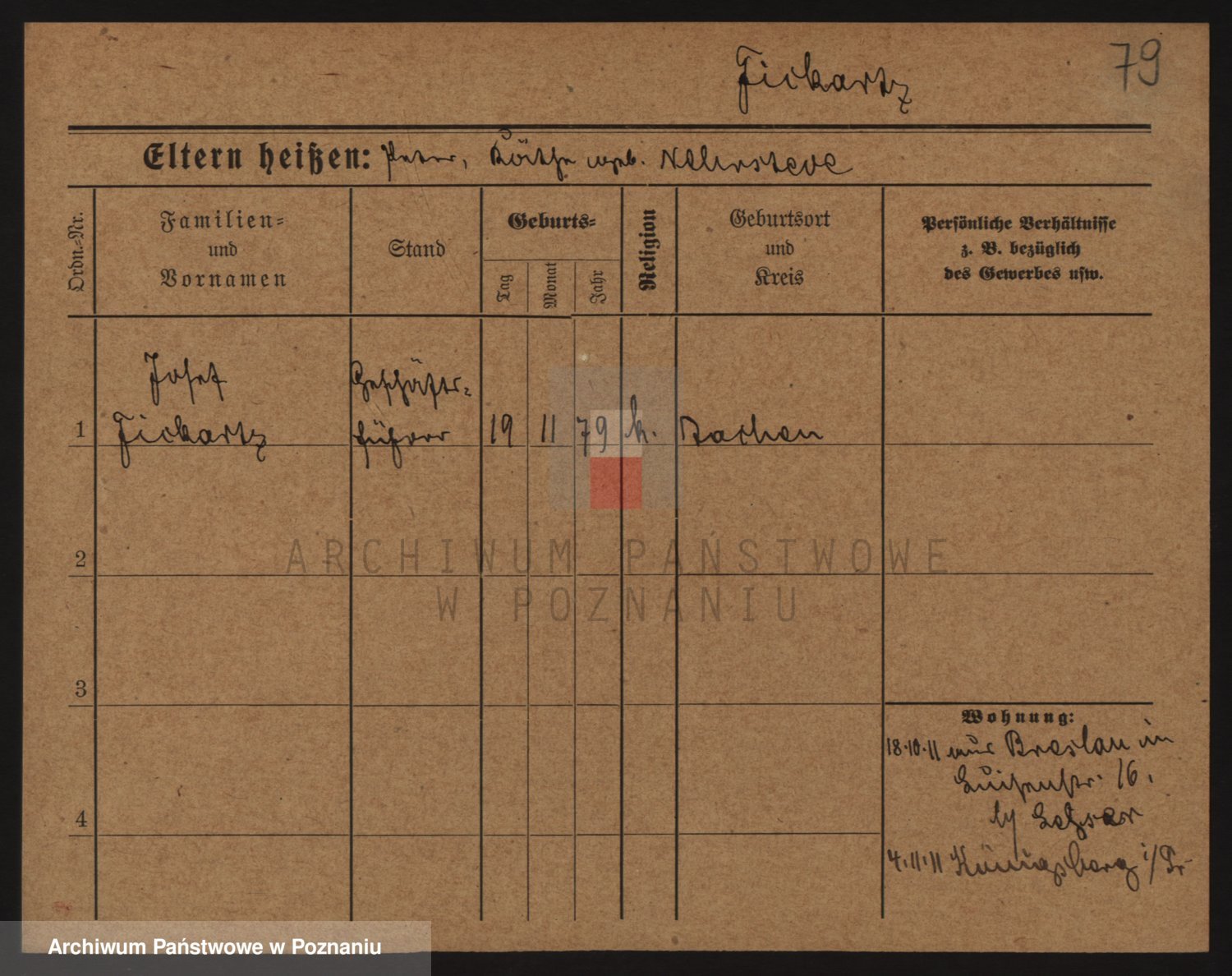 Podgląd karty osobowej dostępny jest po kliknięciu na nazwisko lub ikonkę karty. Można dokonywać powiększenia (ikony na górze) lub przechodzić między kolejnymi skanami (strzałki po bokach).