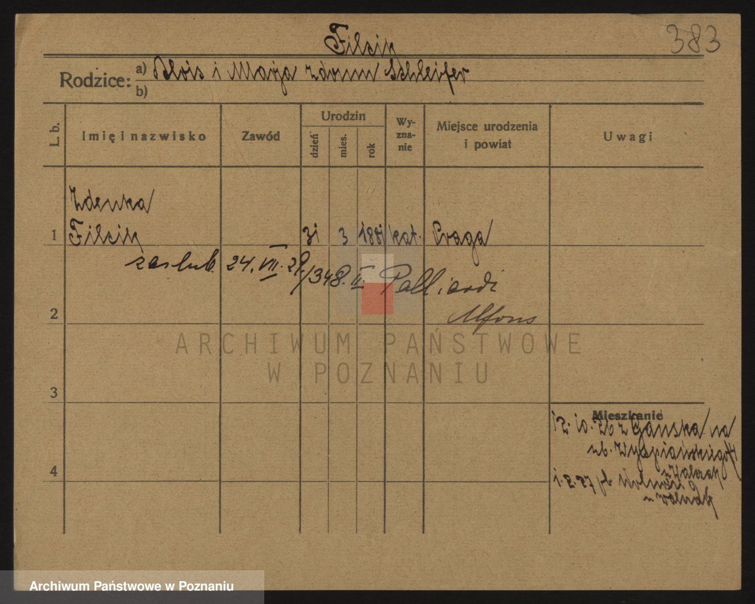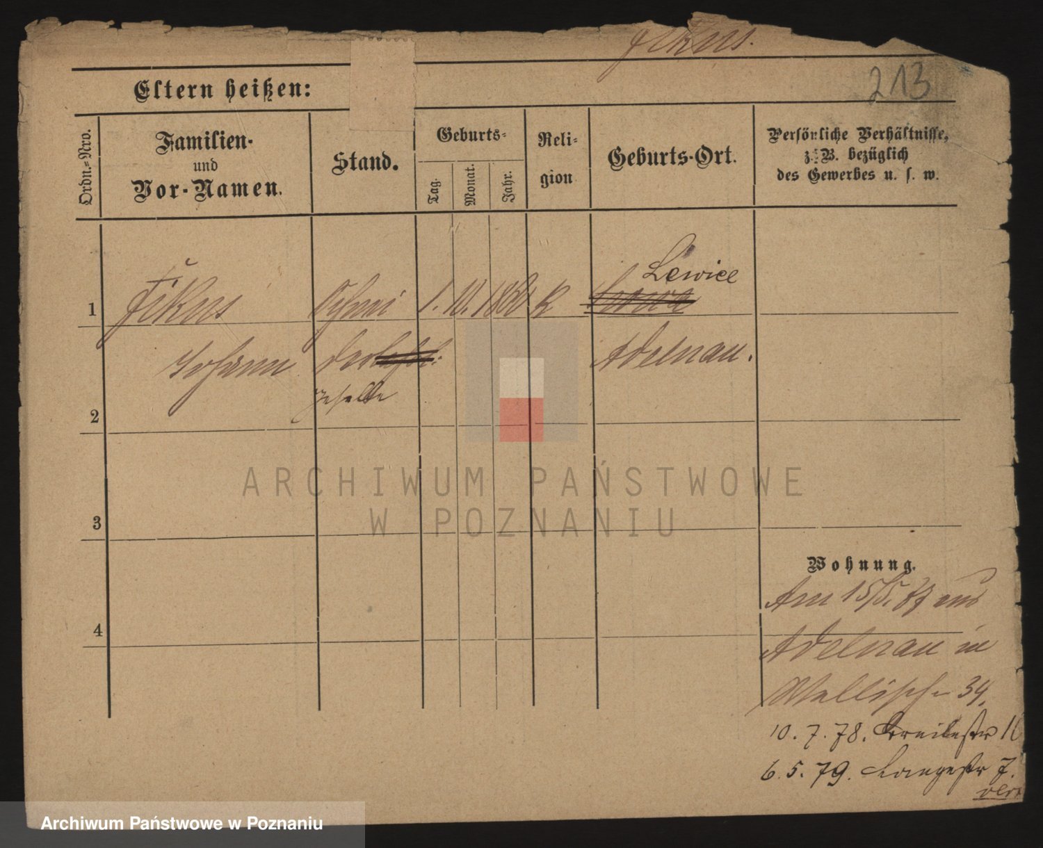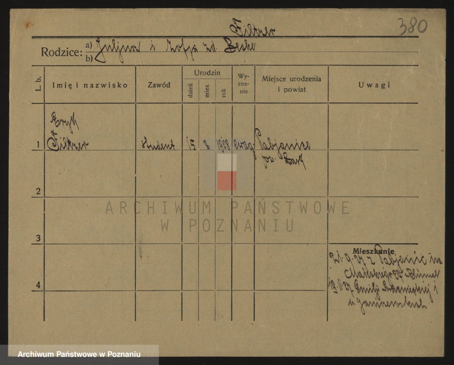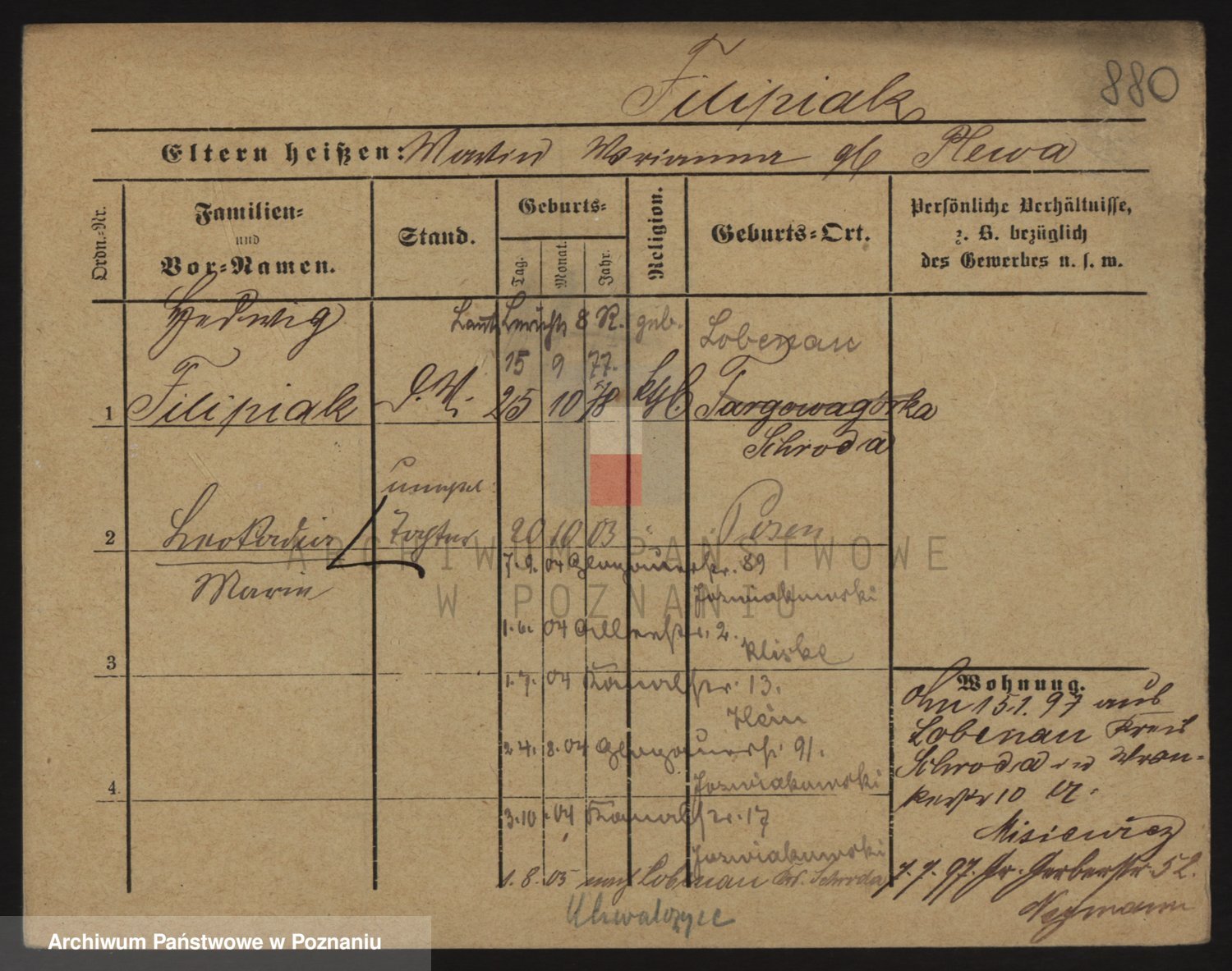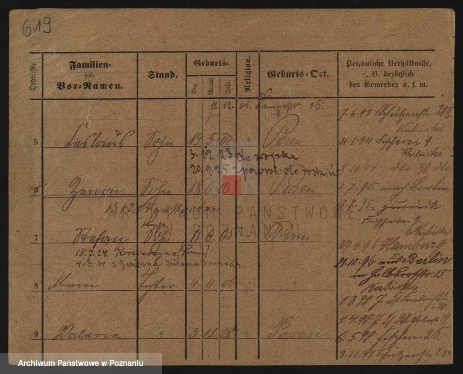 Podgląd karty osobowej dostępny jest po kliknięciu na nazwisko lub ikonkę karty. Można dokonywać powiększenia (ikony na górze) lub przechodzić między kolejnymi skanami (strzałki po bokach).