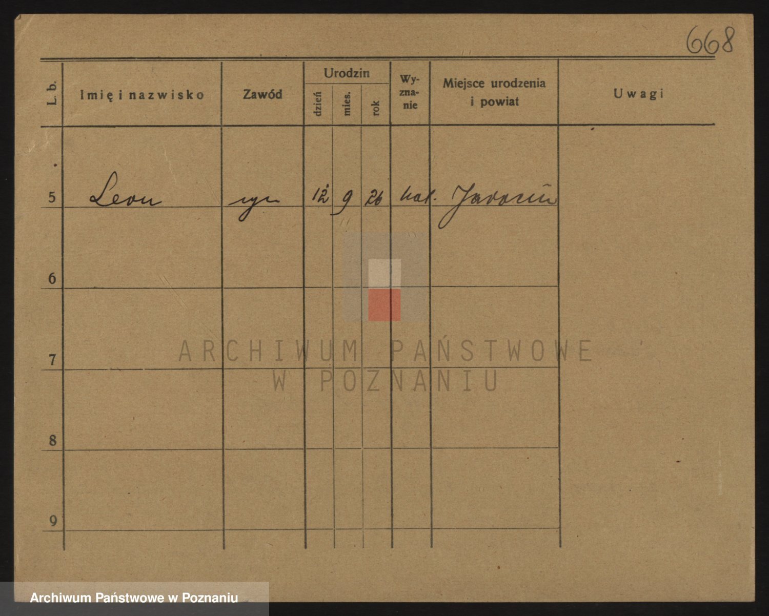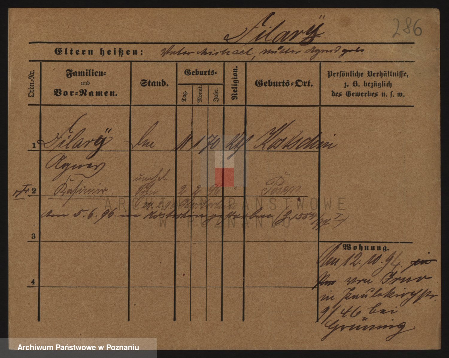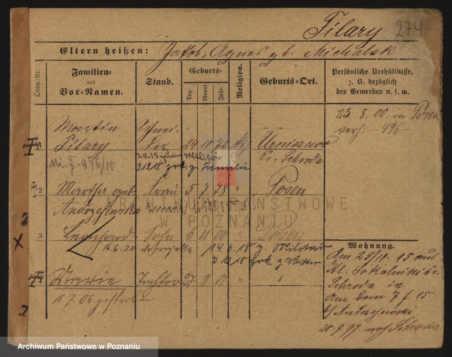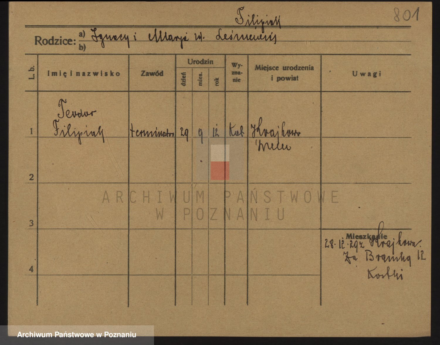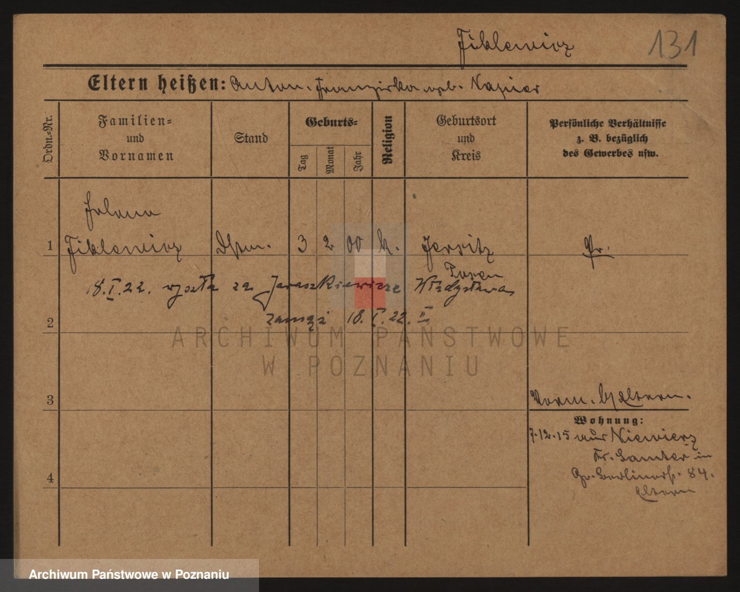 Podgląd karty osobowej dostępny jest po kliknięciu na nazwisko lub ikonkę karty. Można dokonywać powiększenia (ikony na górze) lub przechodzić między kolejnymi skanami (strzałki po bokach).