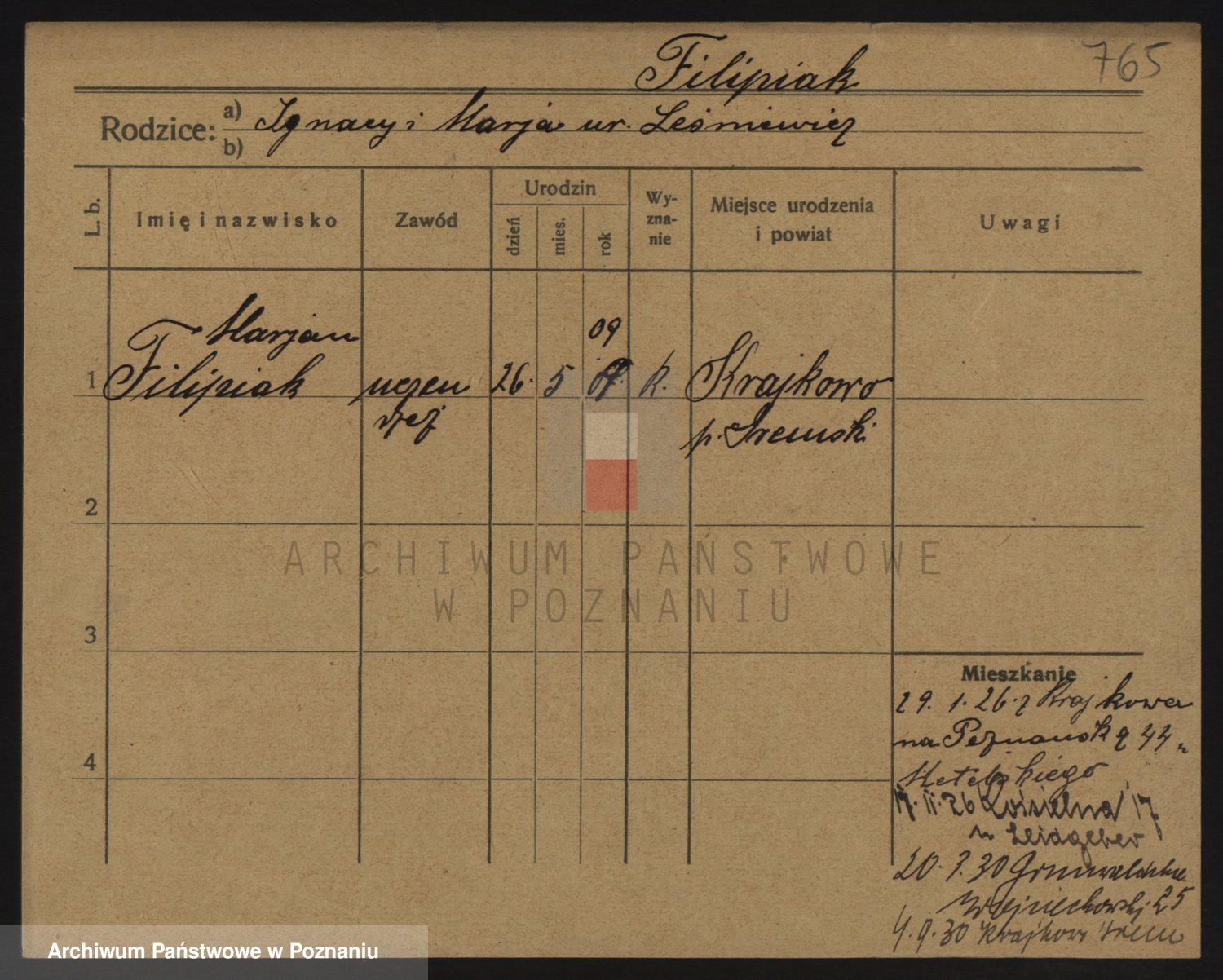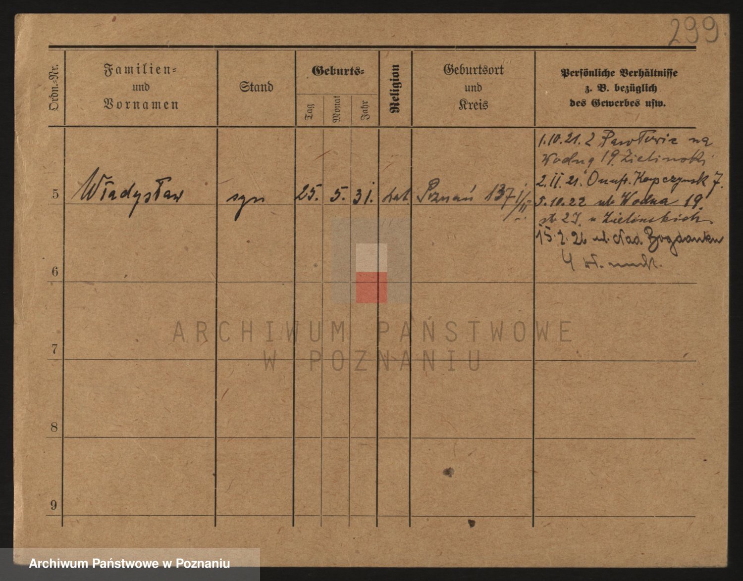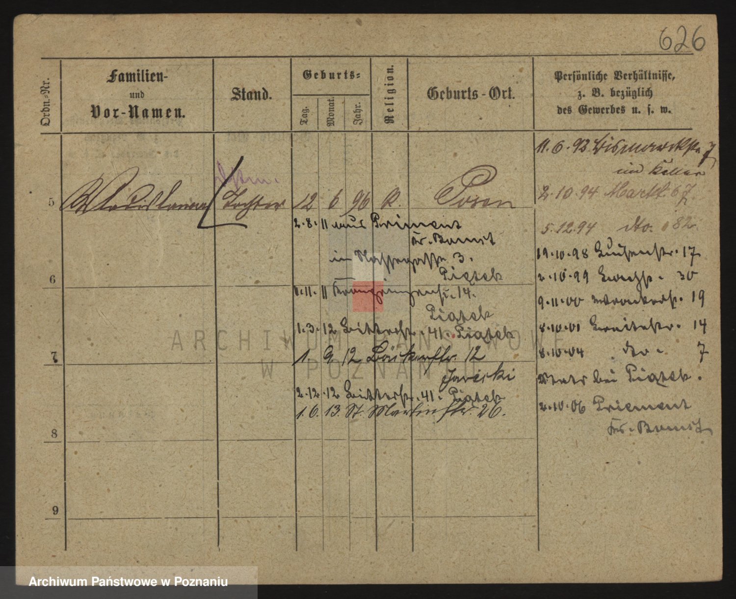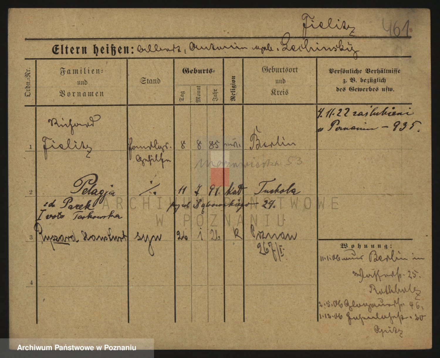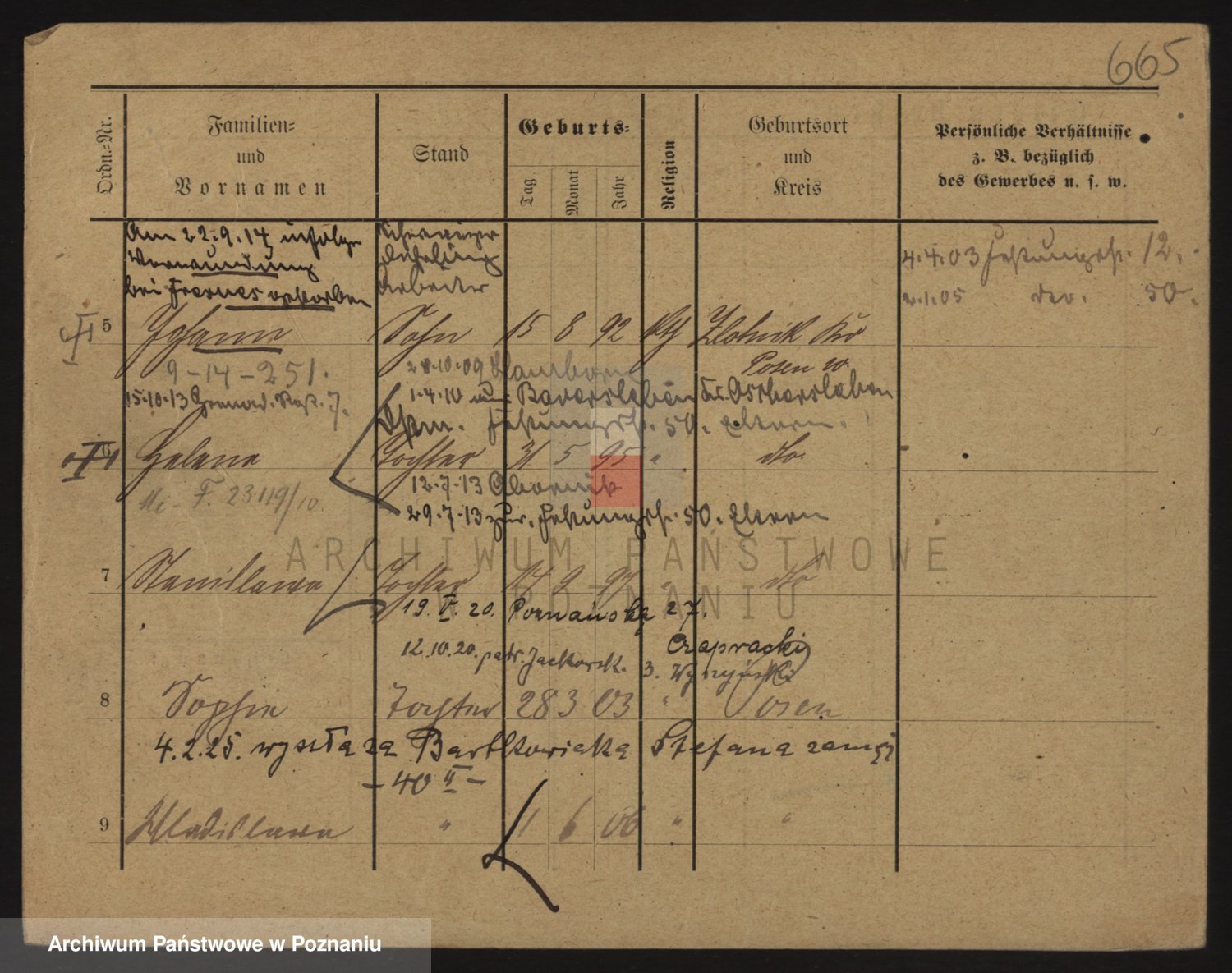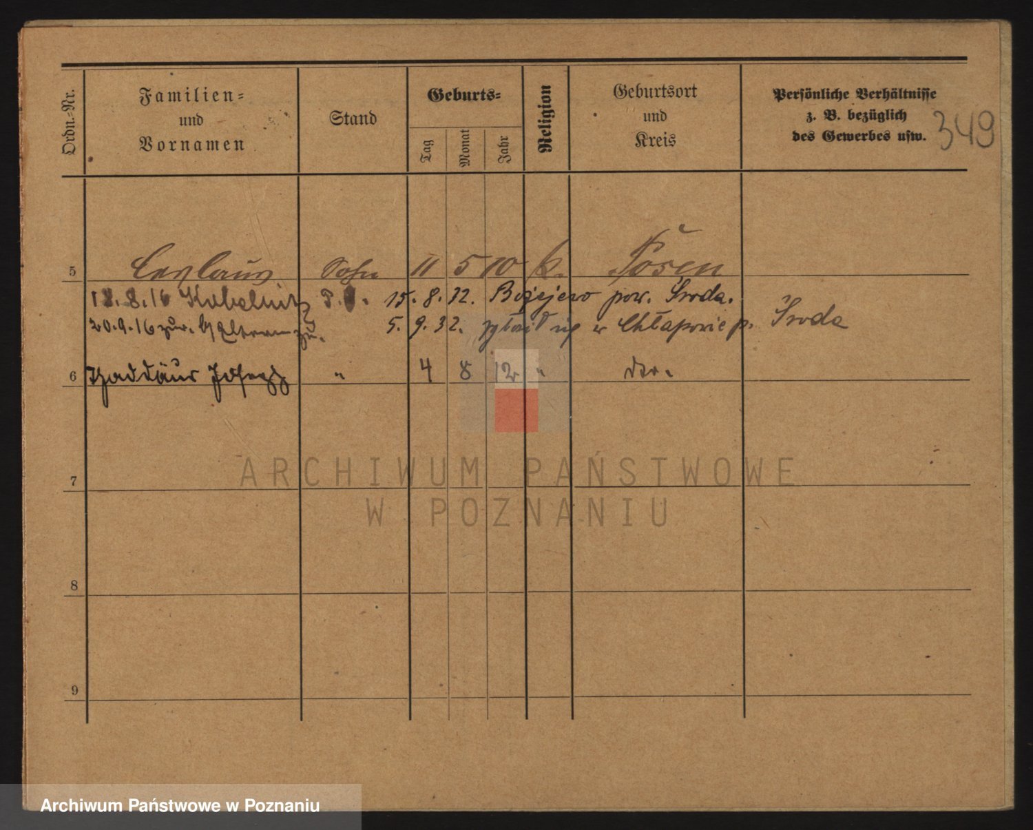 Podgląd karty osobowej dostępny jest po kliknięciu na nazwisko lub ikonkę karty. Można dokonywać powiększenia (ikony na górze) lub przechodzić między kolejnymi skanami (strzałki po bokach).