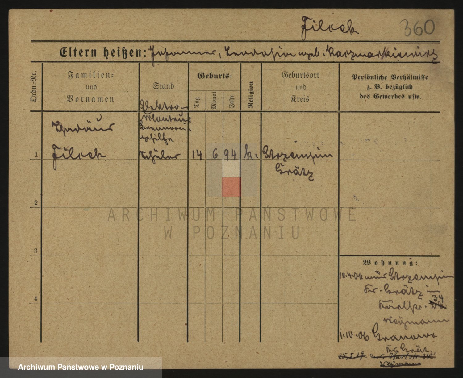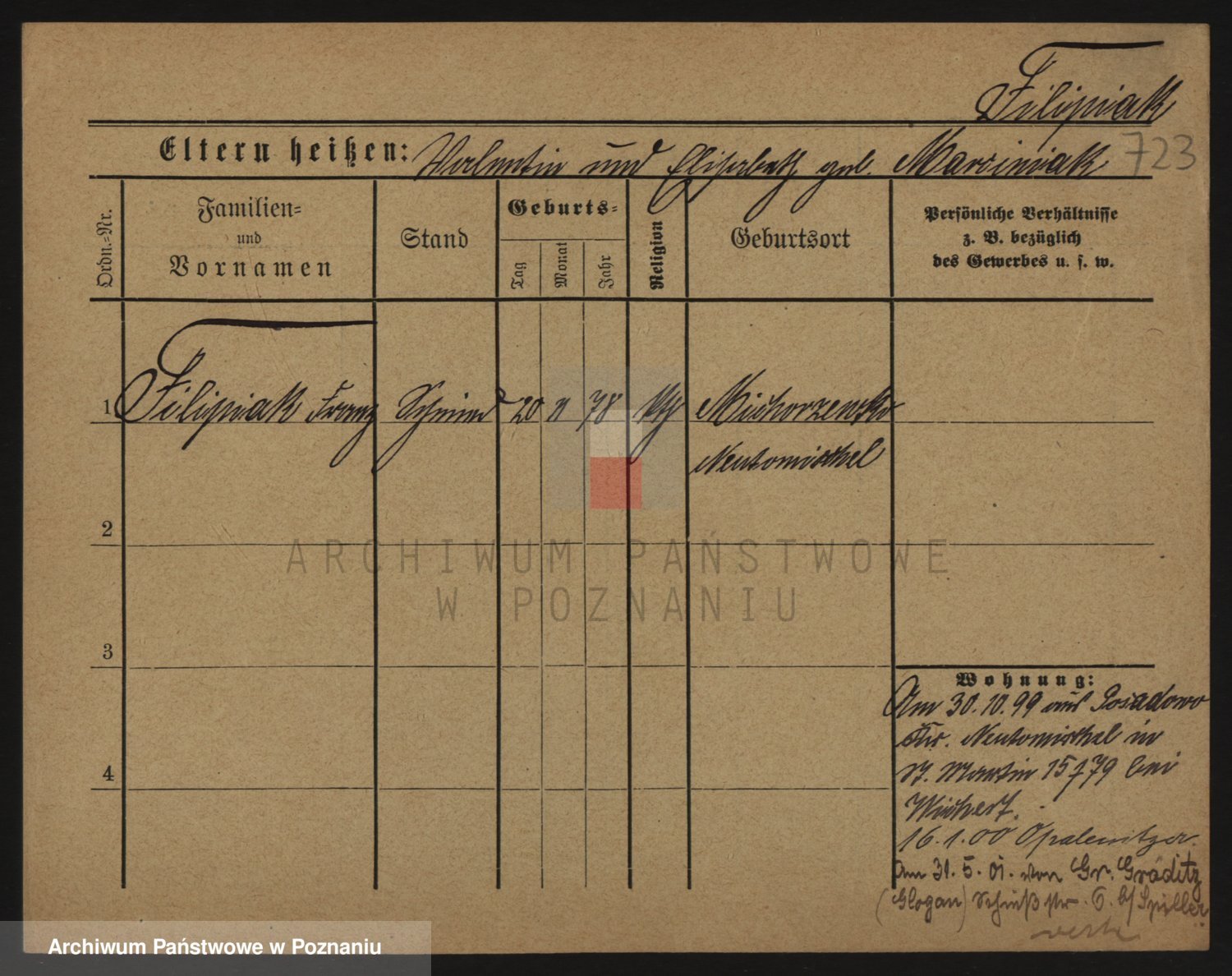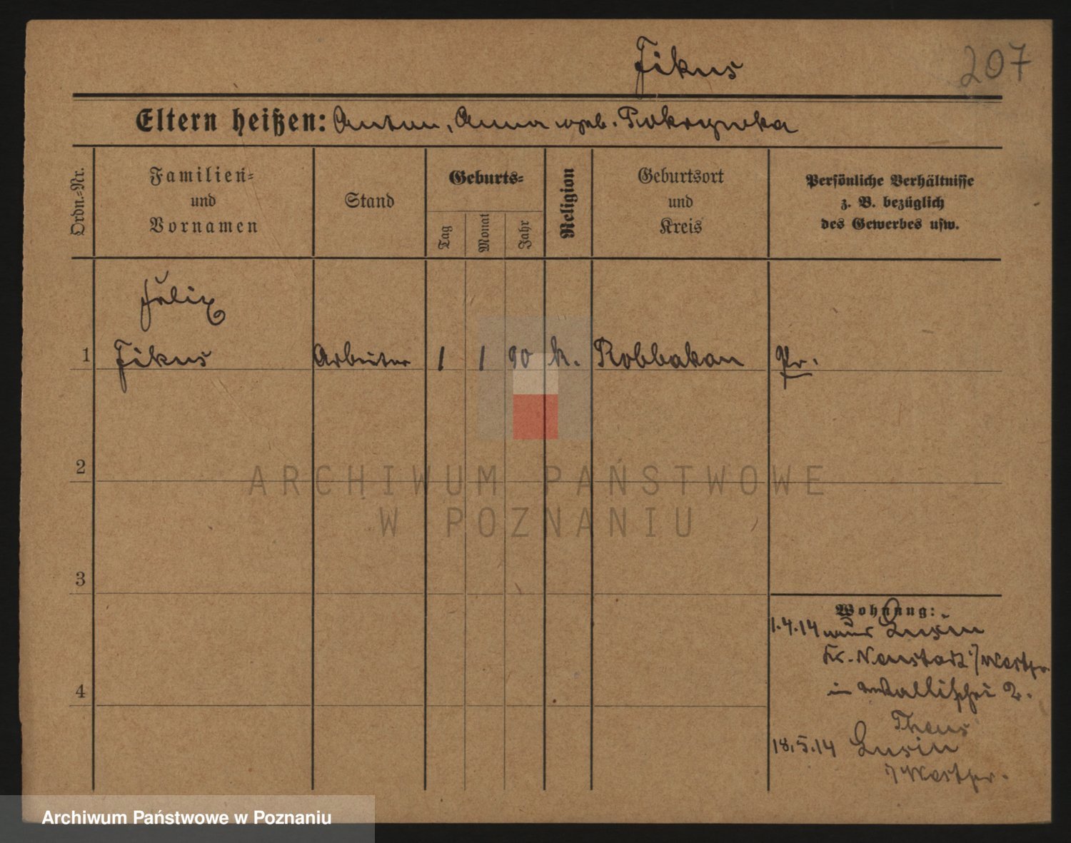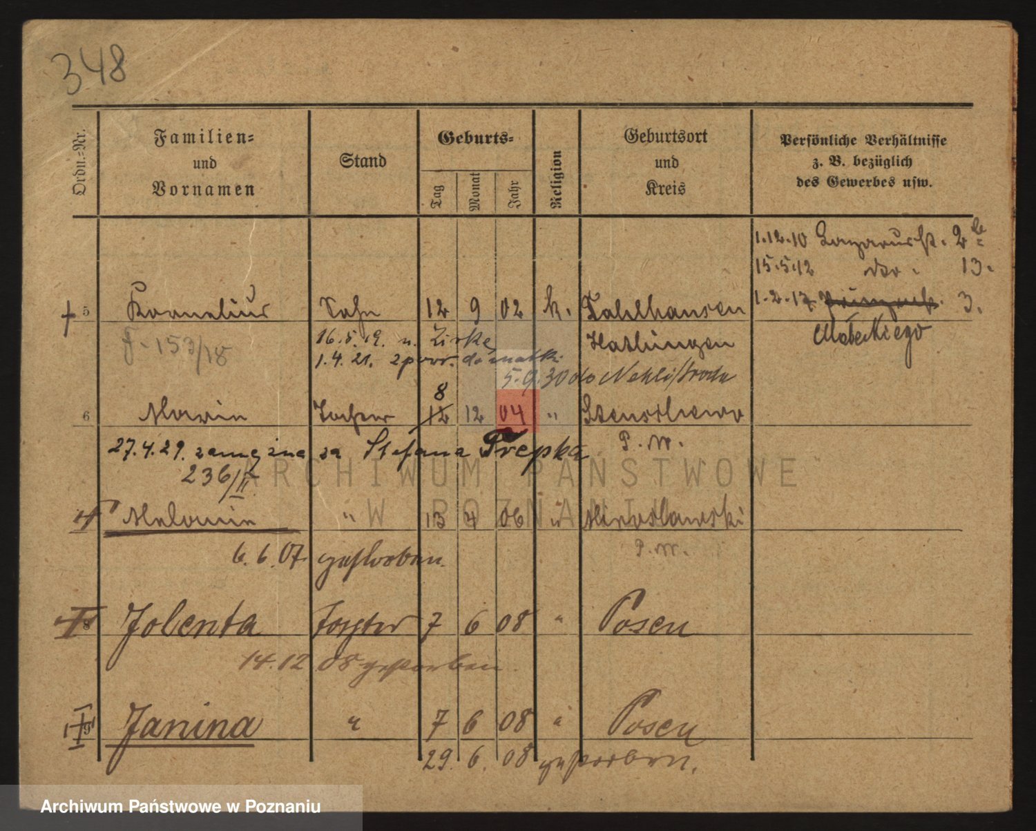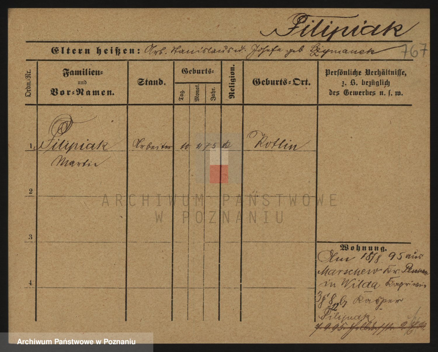 Podgląd karty osobowej dostępny jest po kliknięciu na nazwisko lub ikonkę karty. Można dokonywać powiększenia (ikony na górze) lub przechodzić między kolejnymi skanami (strzałki po bokach).