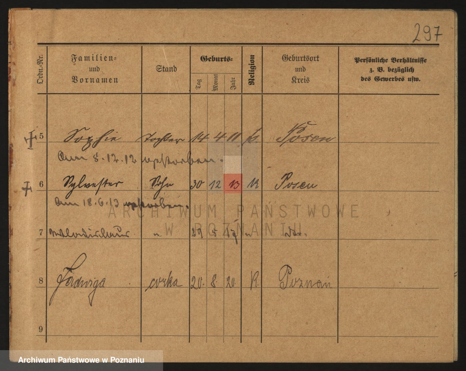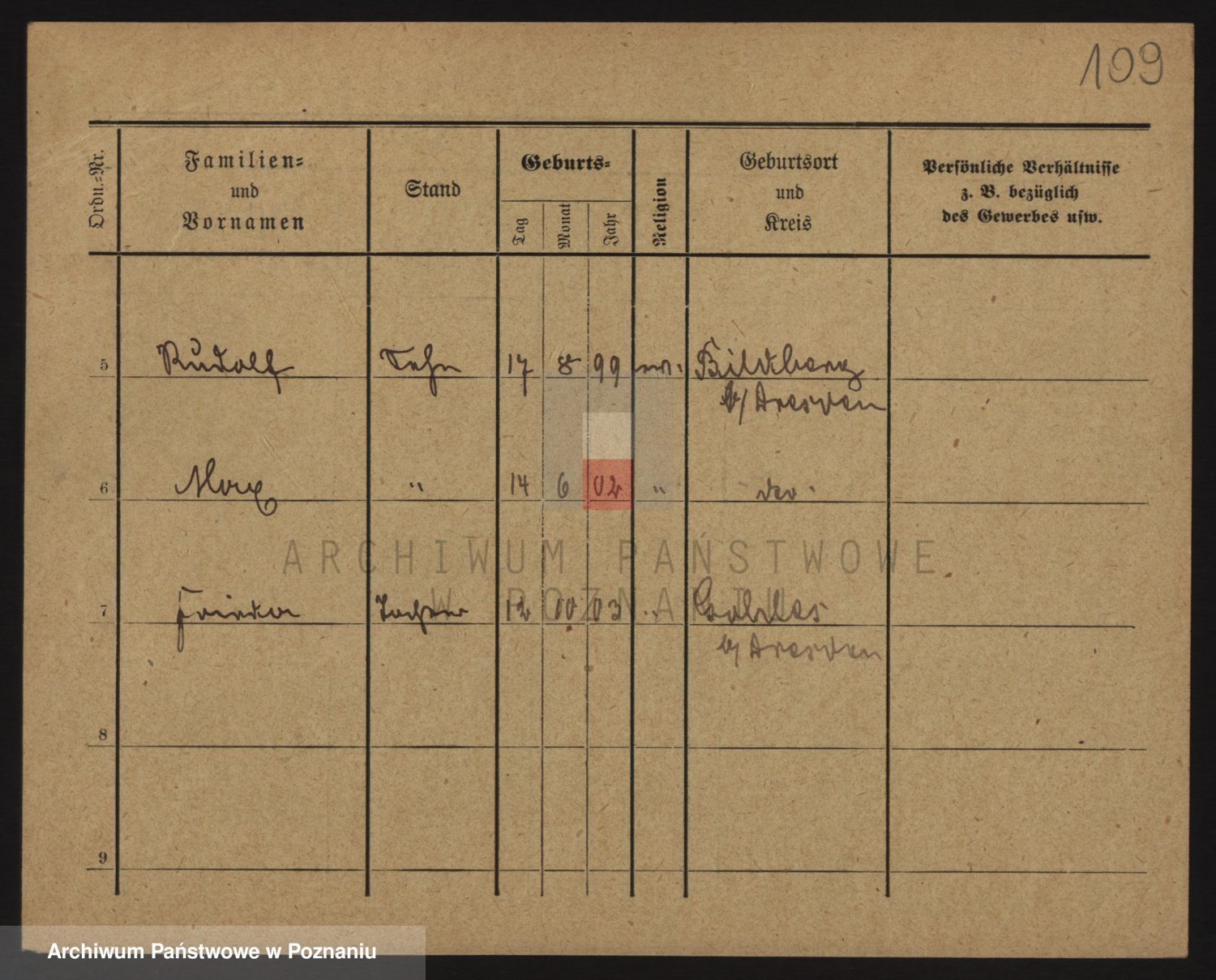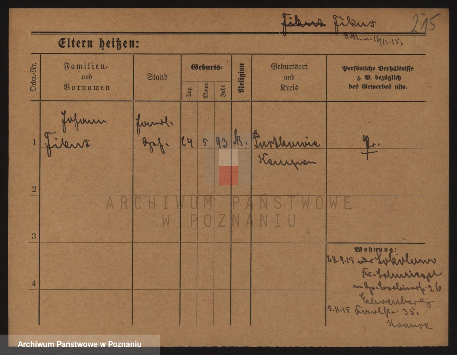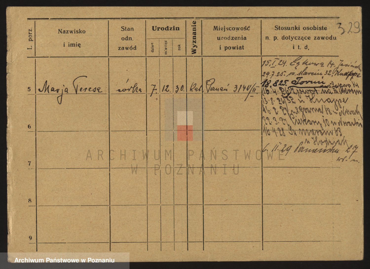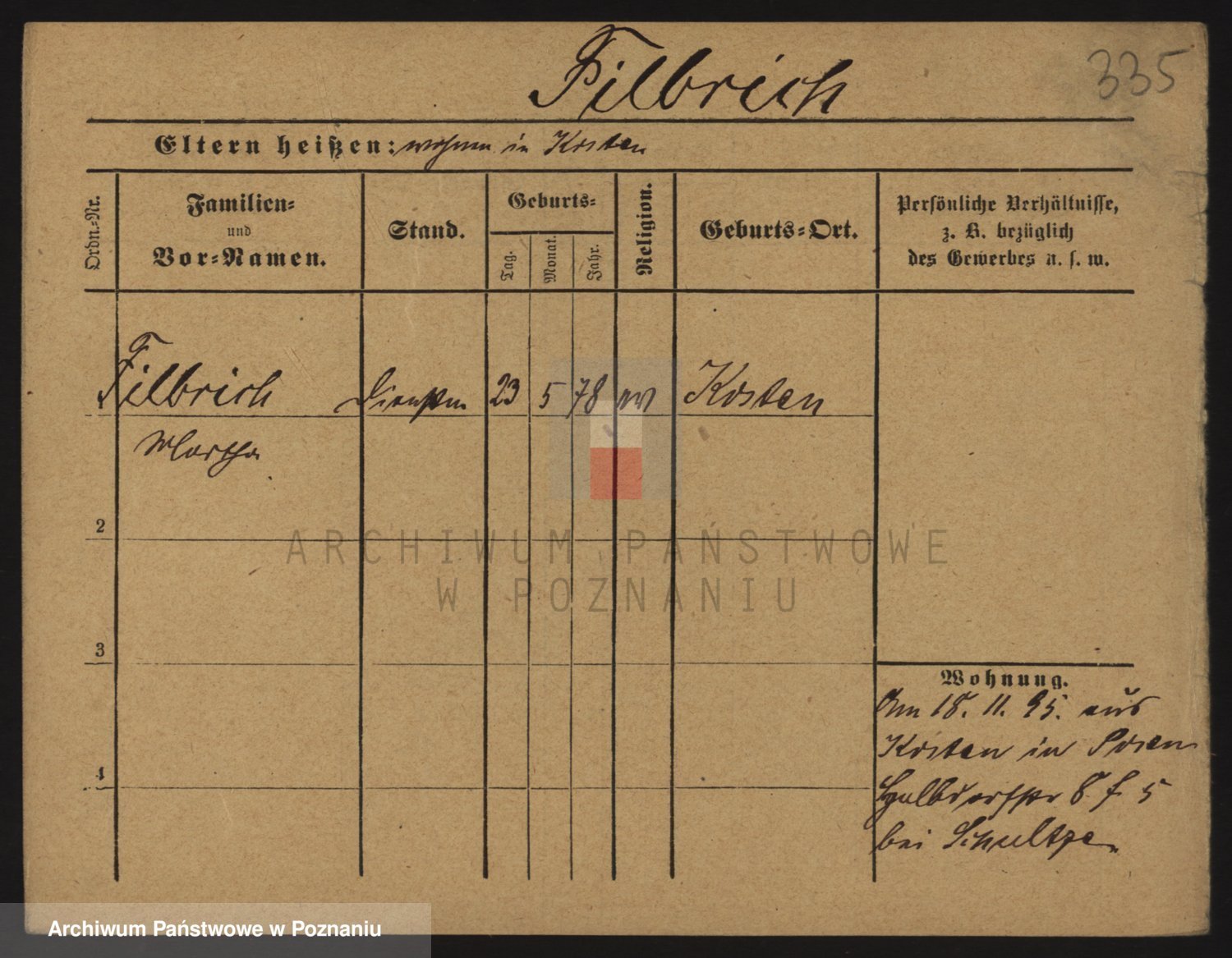 Podgląd karty osobowej dostępny jest po kliknięciu na nazwisko lub ikonkę karty. Można dokonywać powiększenia (ikony na górze) lub przechodzić między kolejnymi skanami (strzałki po bokach).