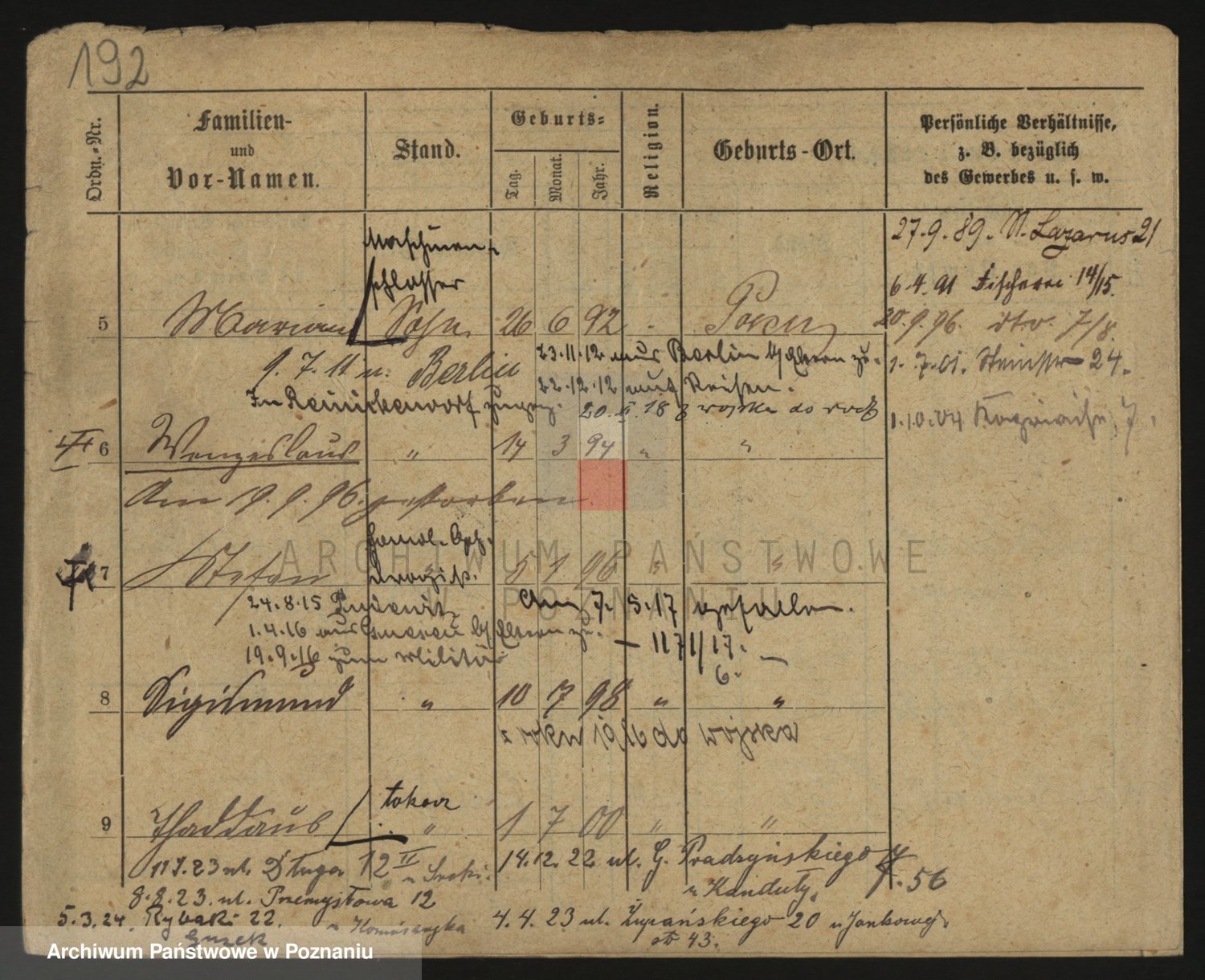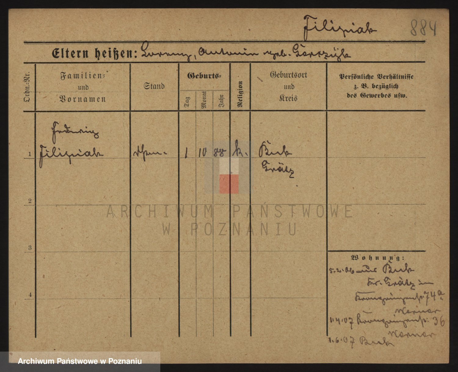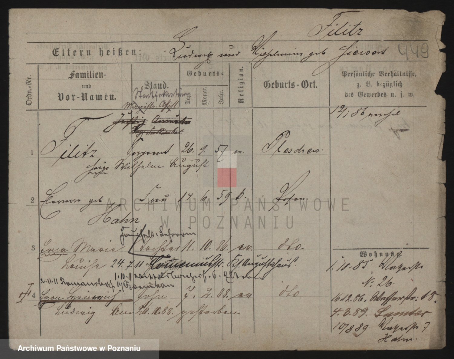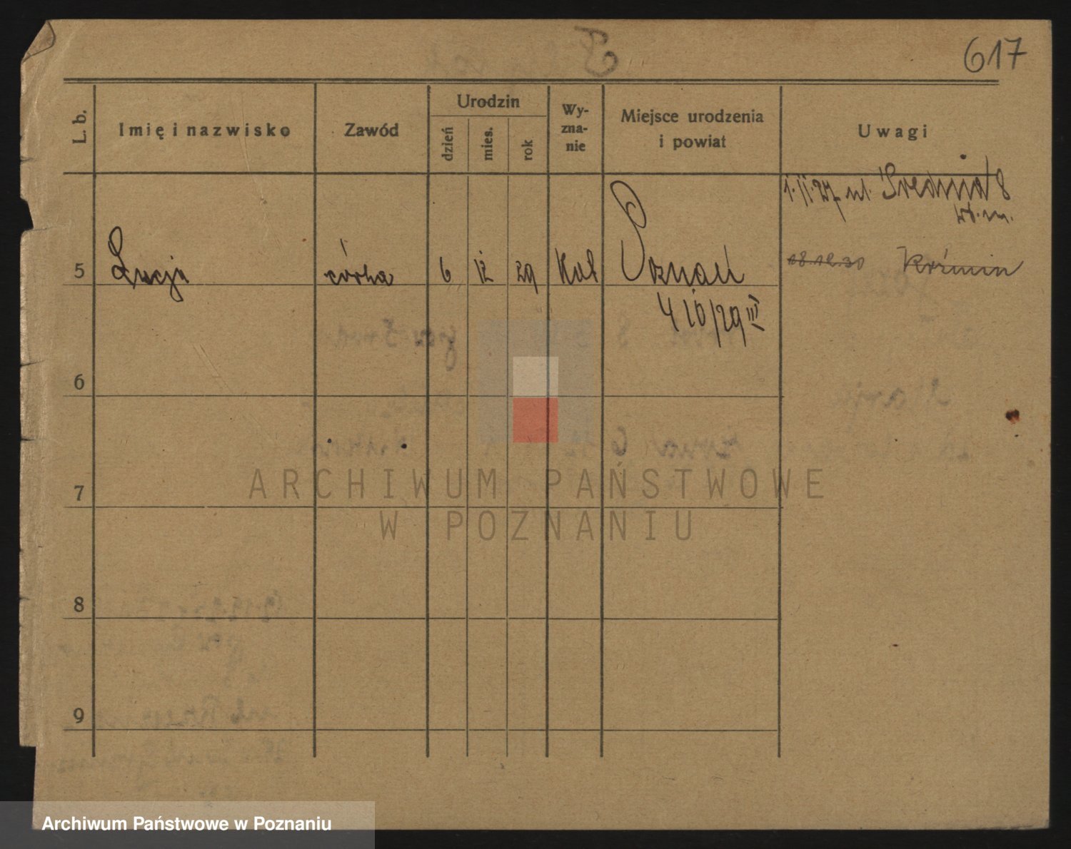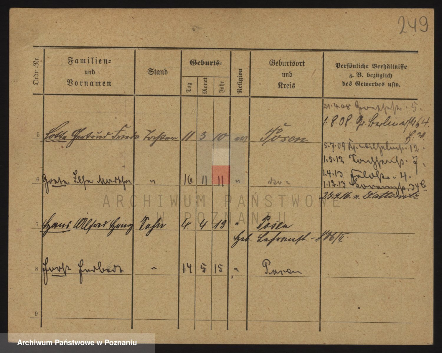 Podgląd karty osobowej dostępny jest po kliknięciu na nazwisko lub ikonkę karty. Można dokonywać powiększenia (ikony na górze) lub przechodzić między kolejnymi skanami (strzałki po bokach).