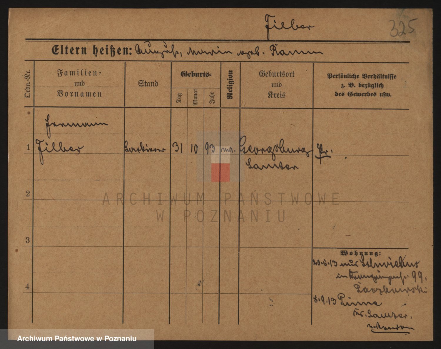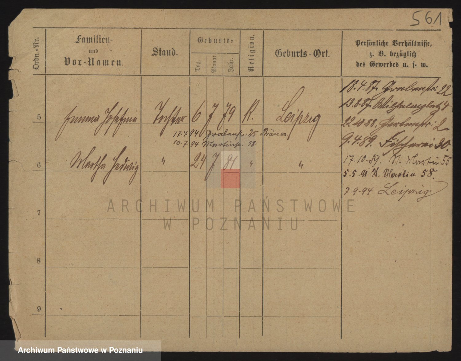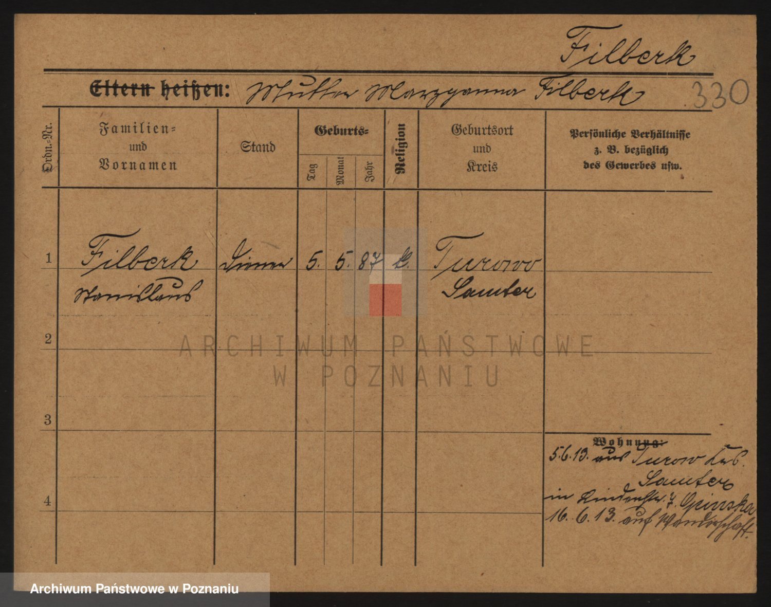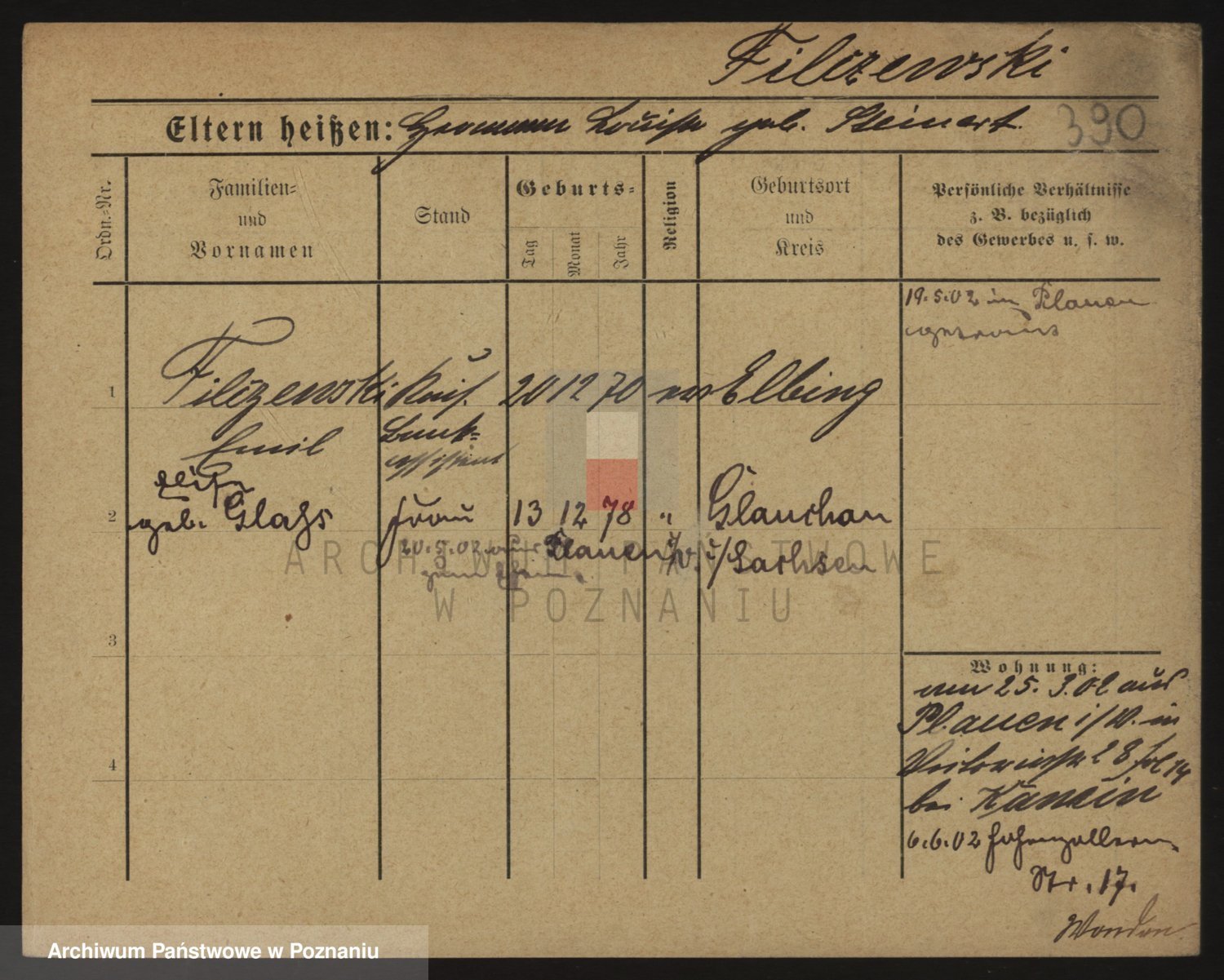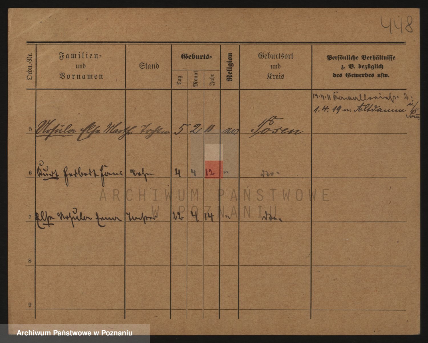Podgląd karty osobowej dostępny jest po kliknięciu na nazwisko lub ikonkę karty. Można dokonywać powiększenia (ikony na górze) lub przechodzić między kolejnymi skanami (strzałki po bokach).