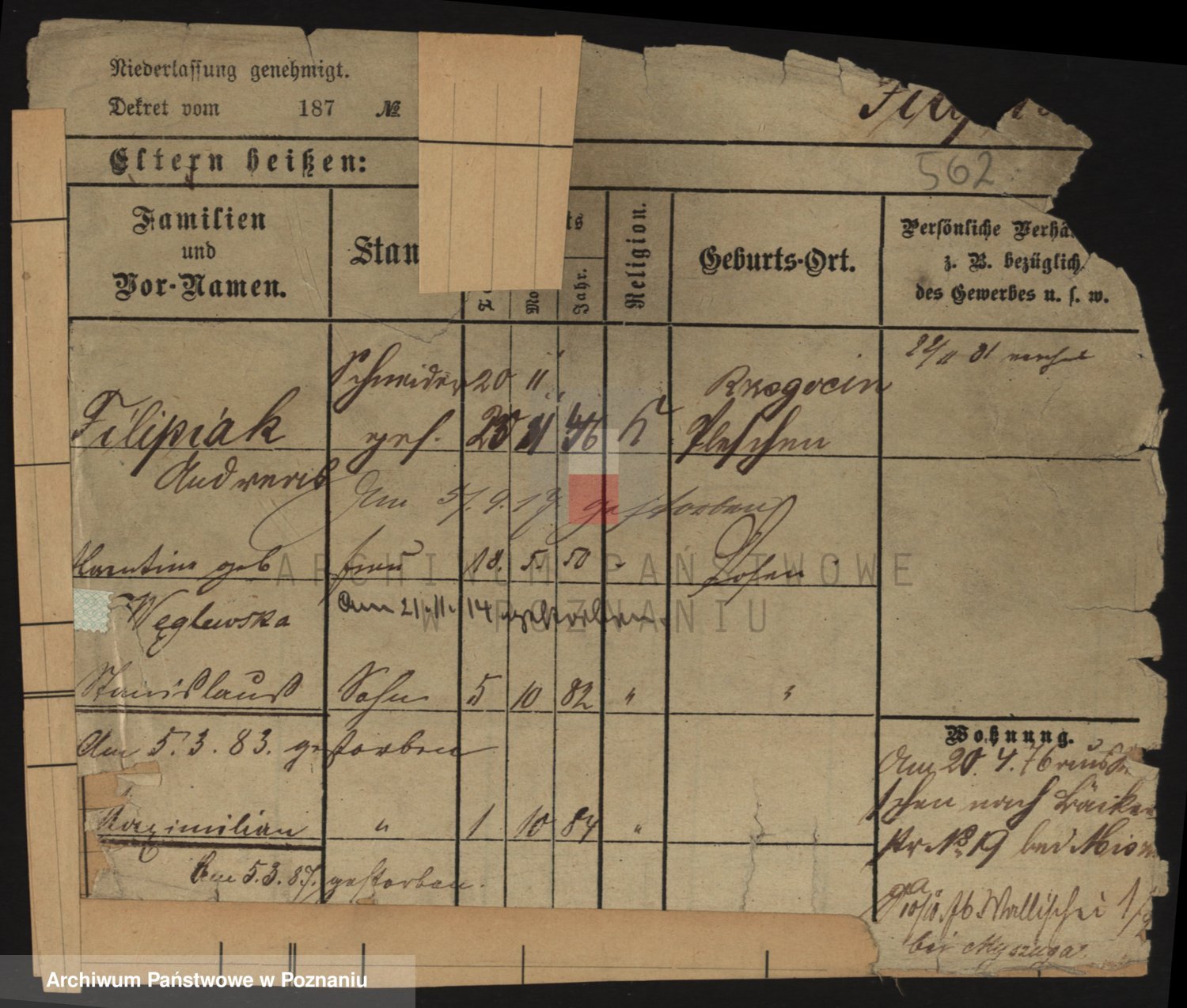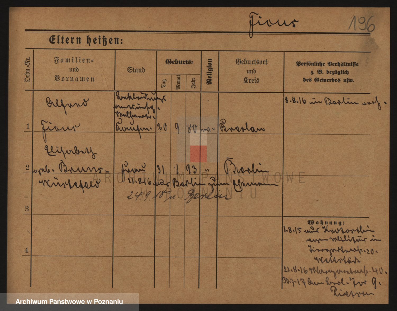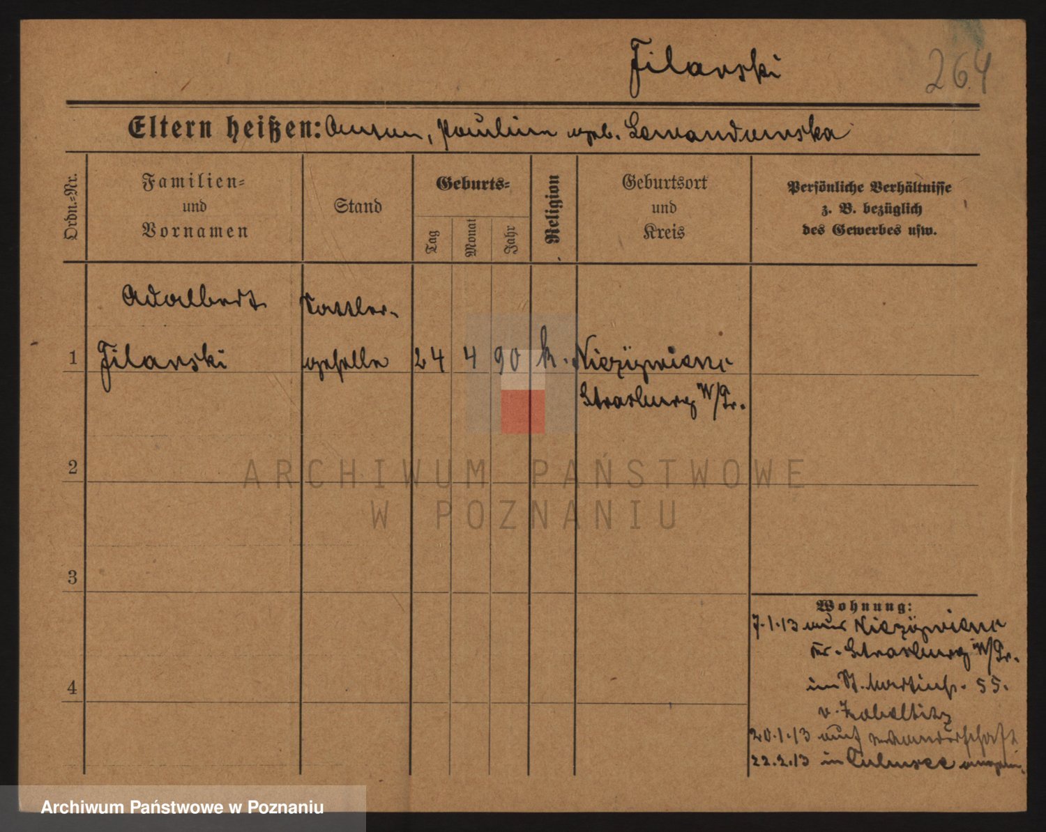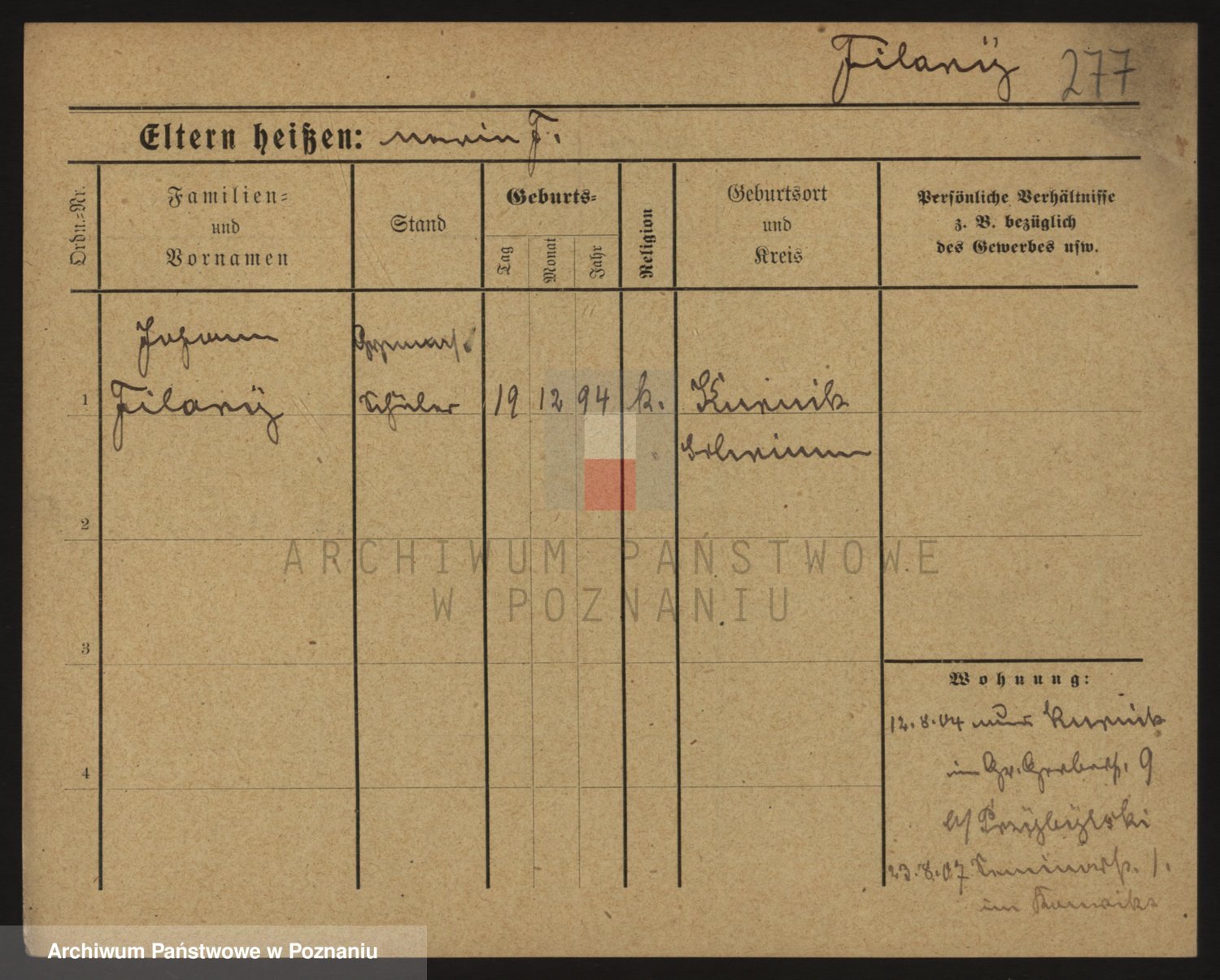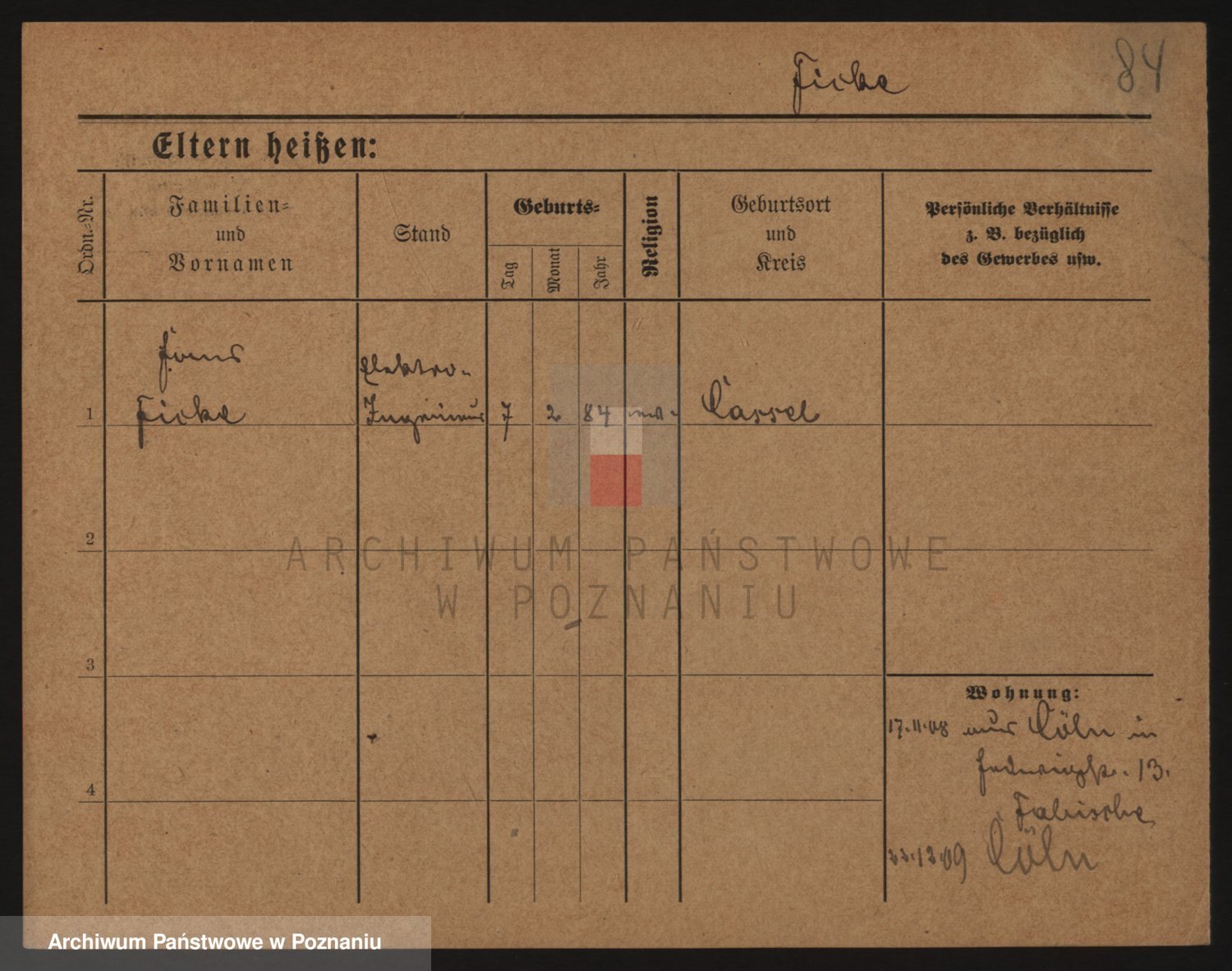 Podgląd karty osobowej dostępny jest po kliknięciu na nazwisko lub ikonkę karty. Można dokonywać powiększenia (ikony na górze) lub przechodzić między kolejnymi skanami (strzałki po bokach).
