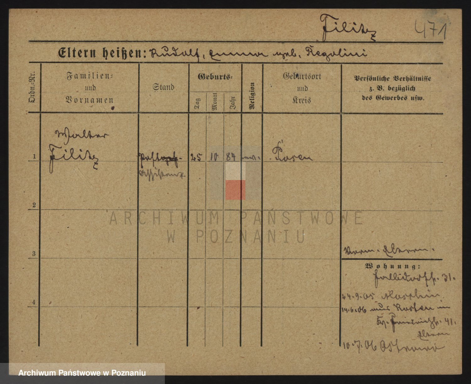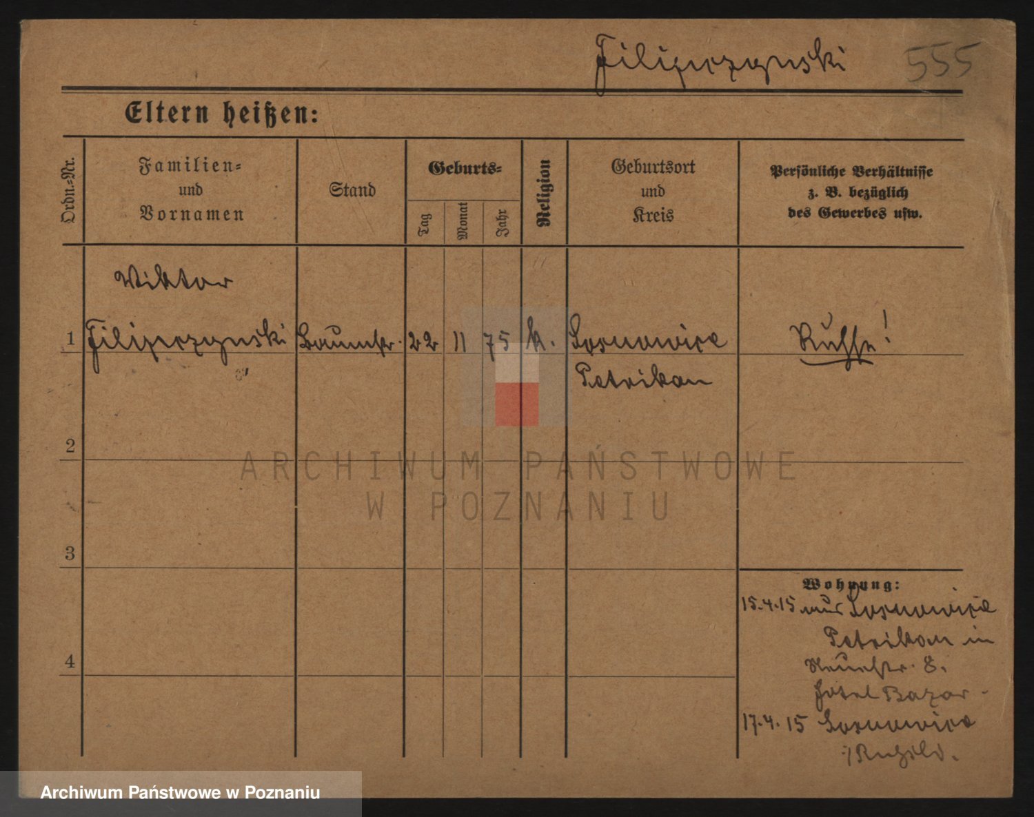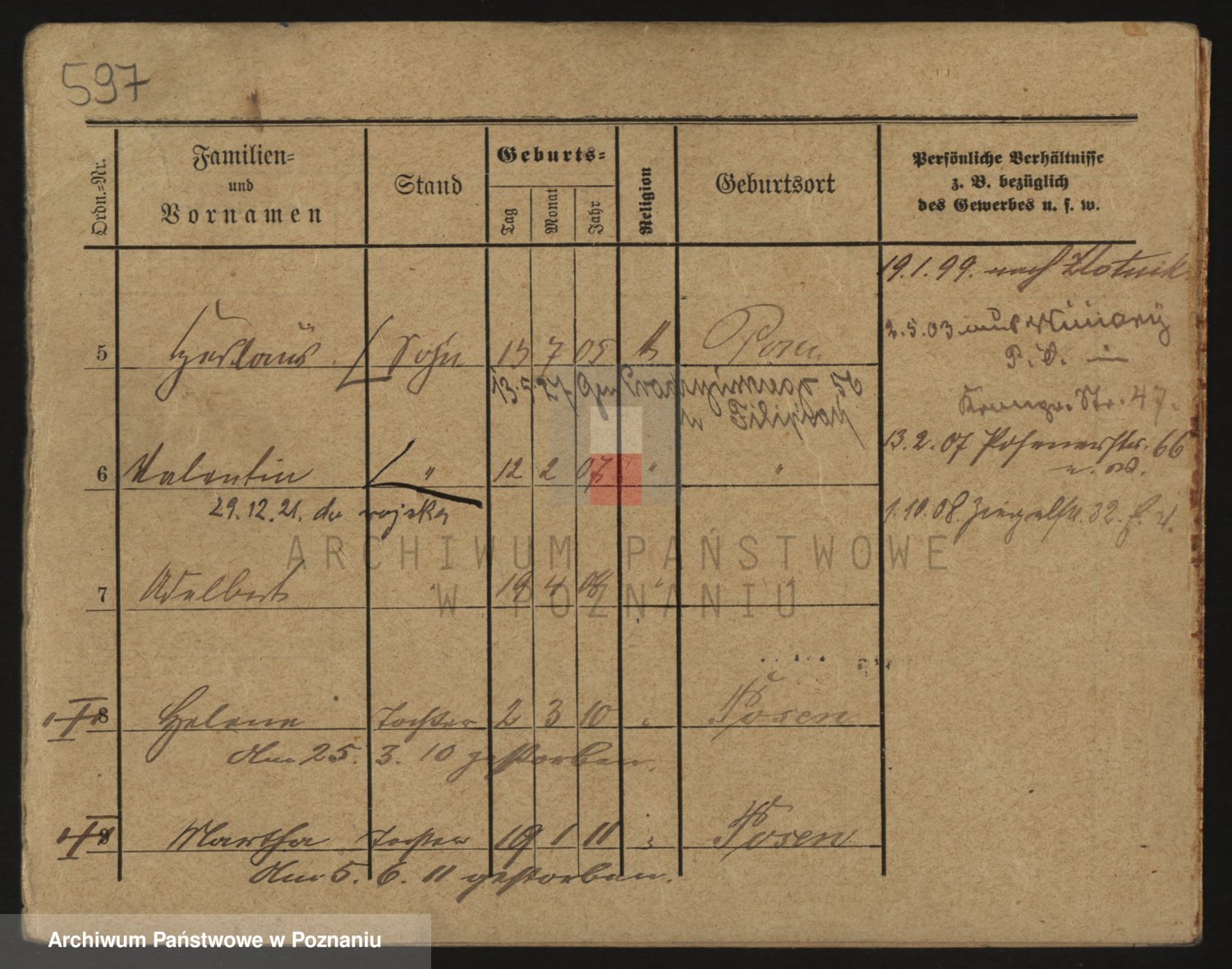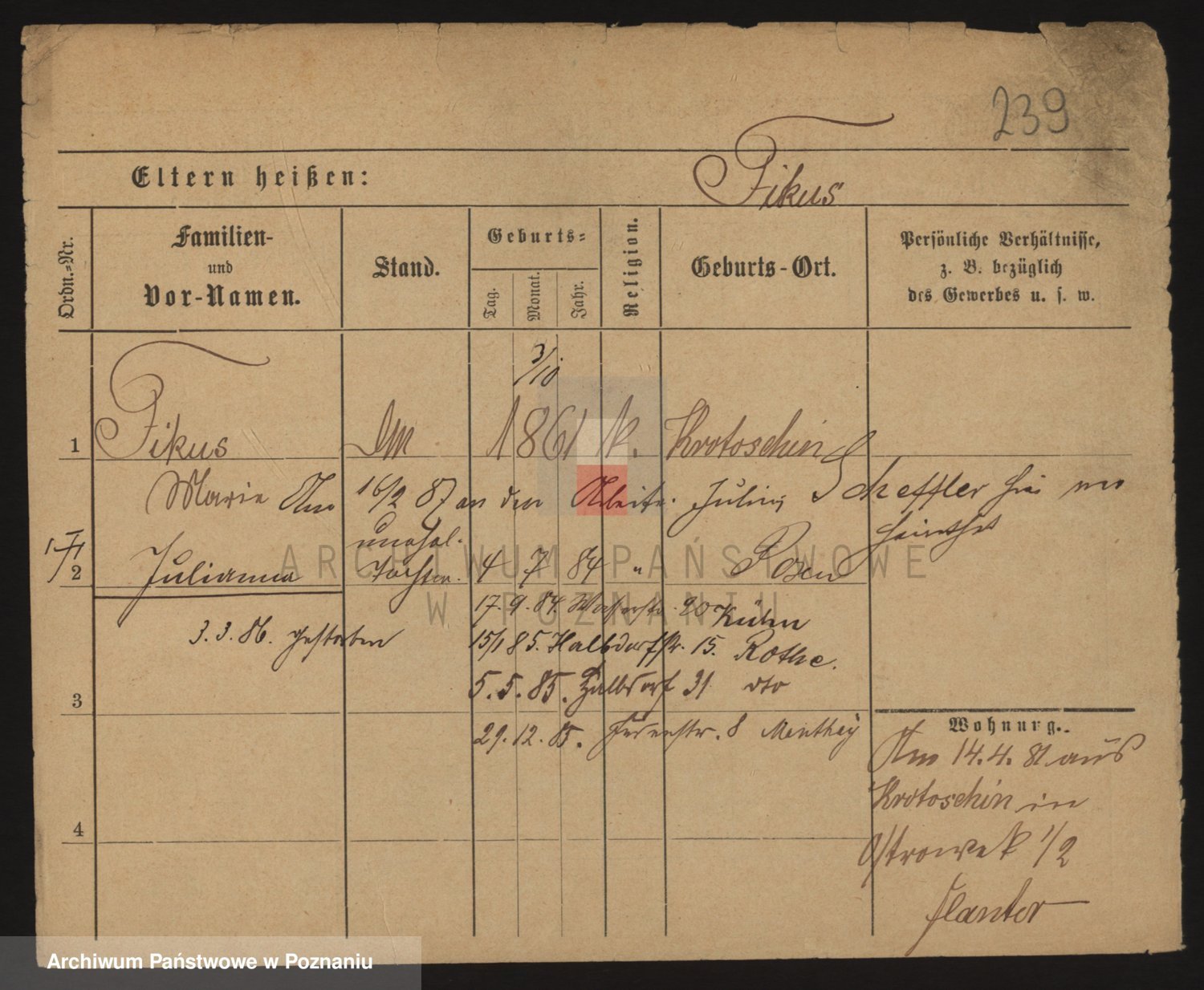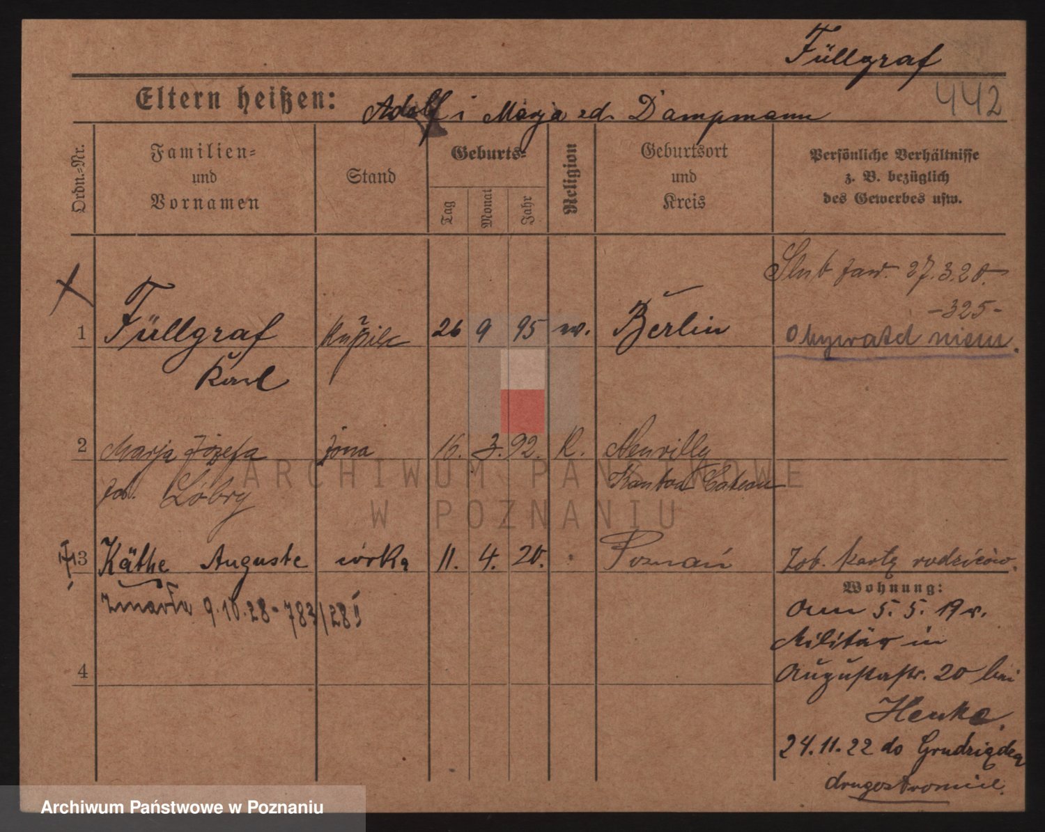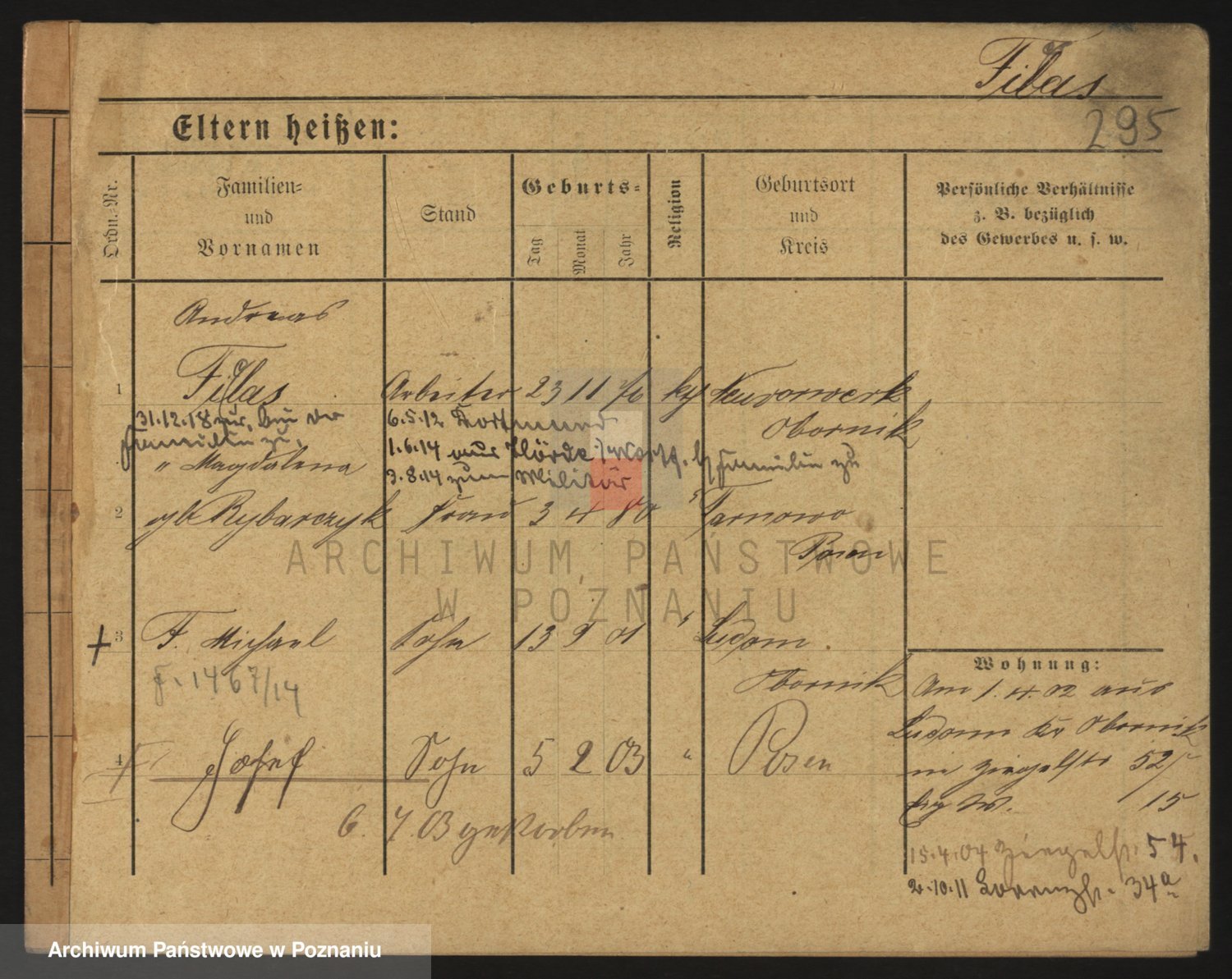Podgląd karty osobowej dostępny jest po kliknięciu na nazwisko lub ikonkę karty. Można dokonywać powiększenia (ikony na górze) lub przechodzić między kolejnymi skanami (strzałki po bokach).
