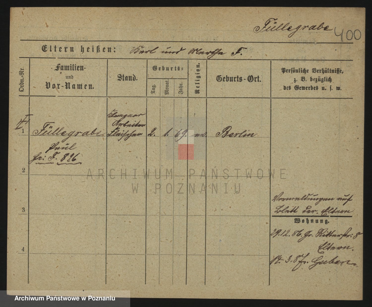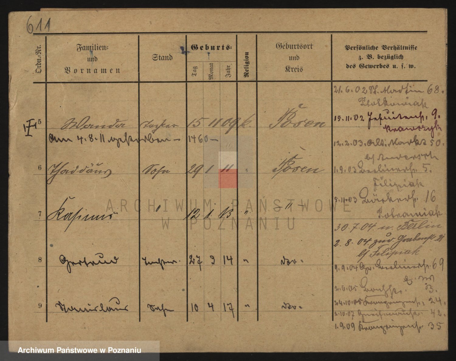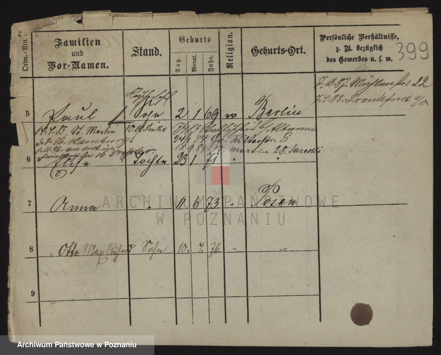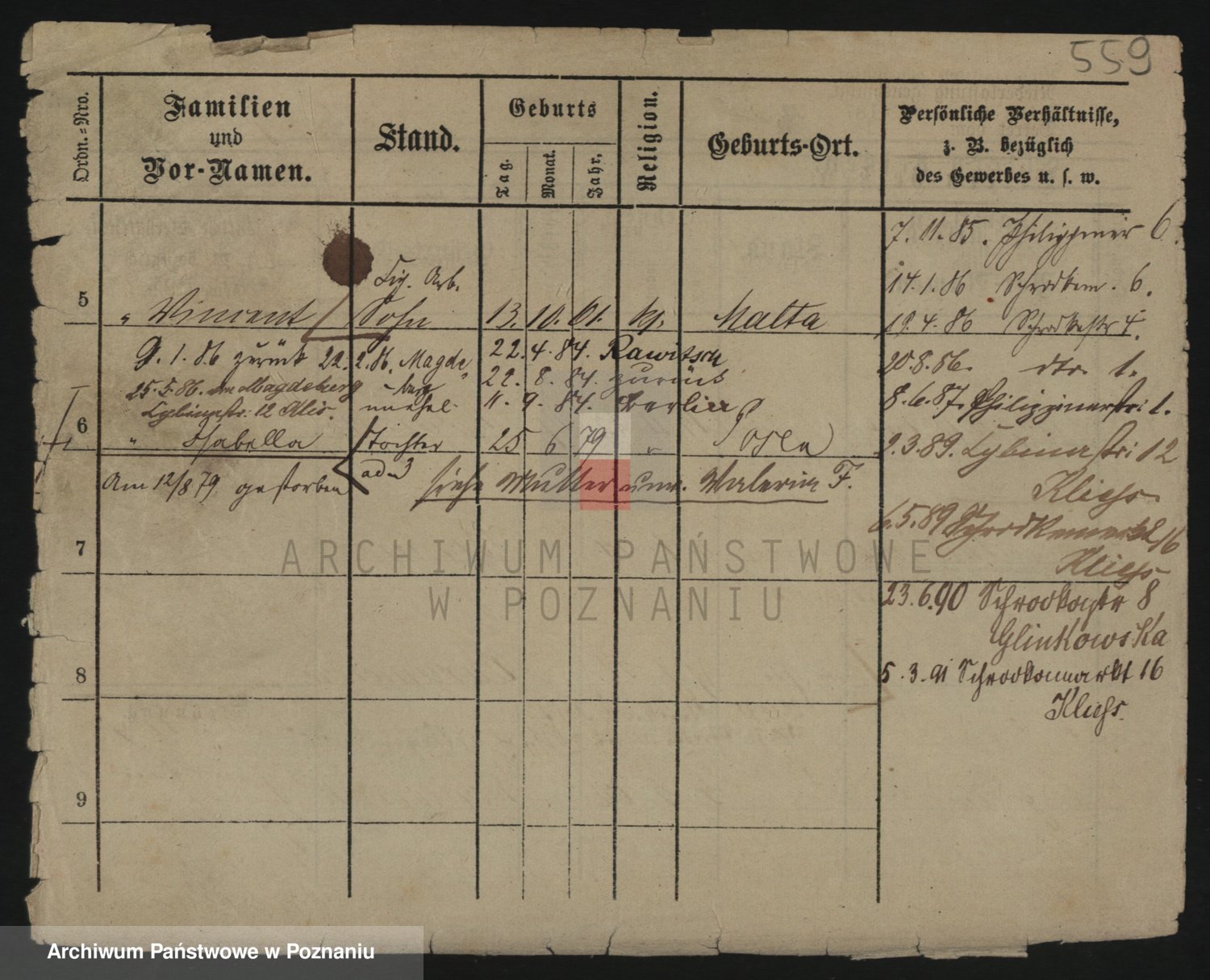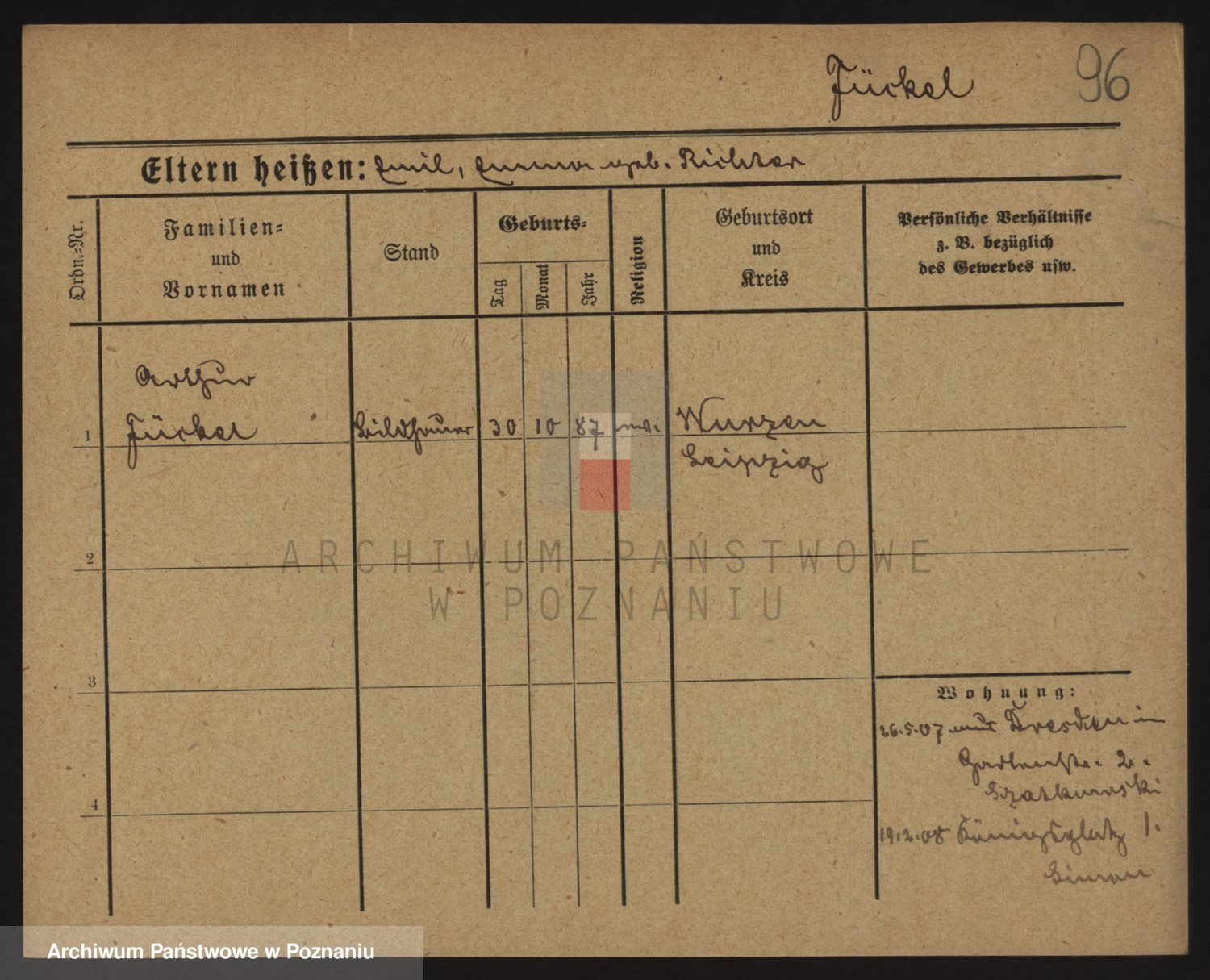 Podgląd karty osobowej dostępny jest po kliknięciu na nazwisko lub ikonkę karty. Można dokonywać powiększenia (ikony na górze) lub przechodzić między kolejnymi skanami (strzałki po bokach).