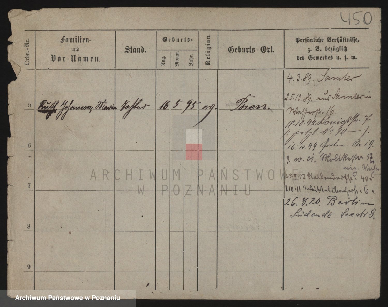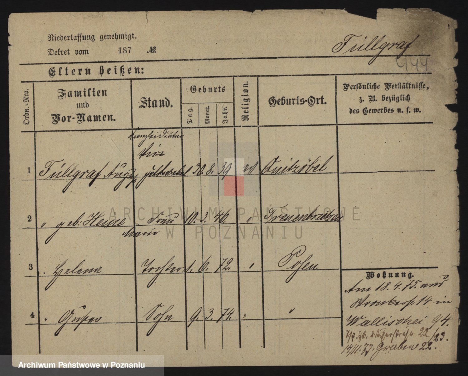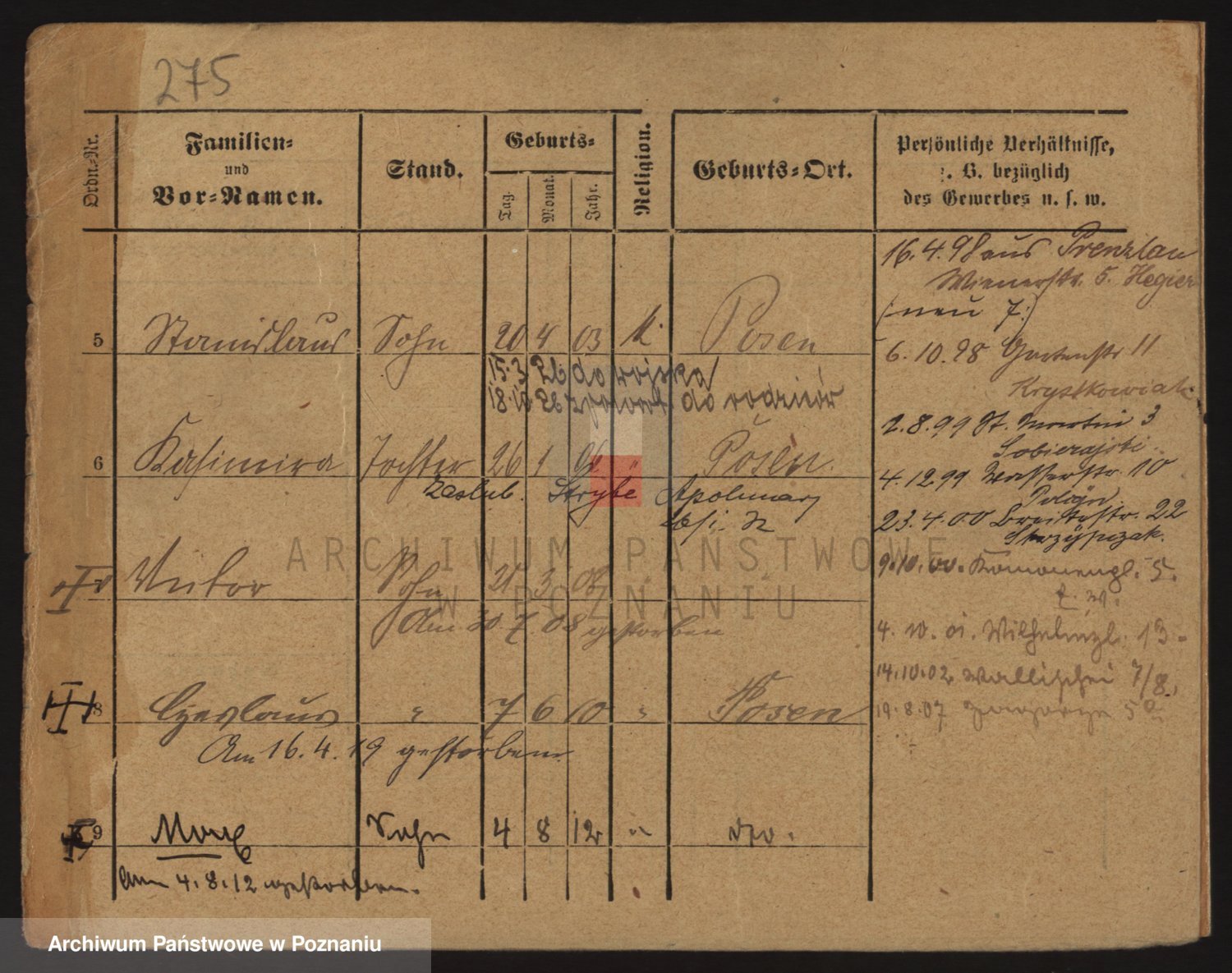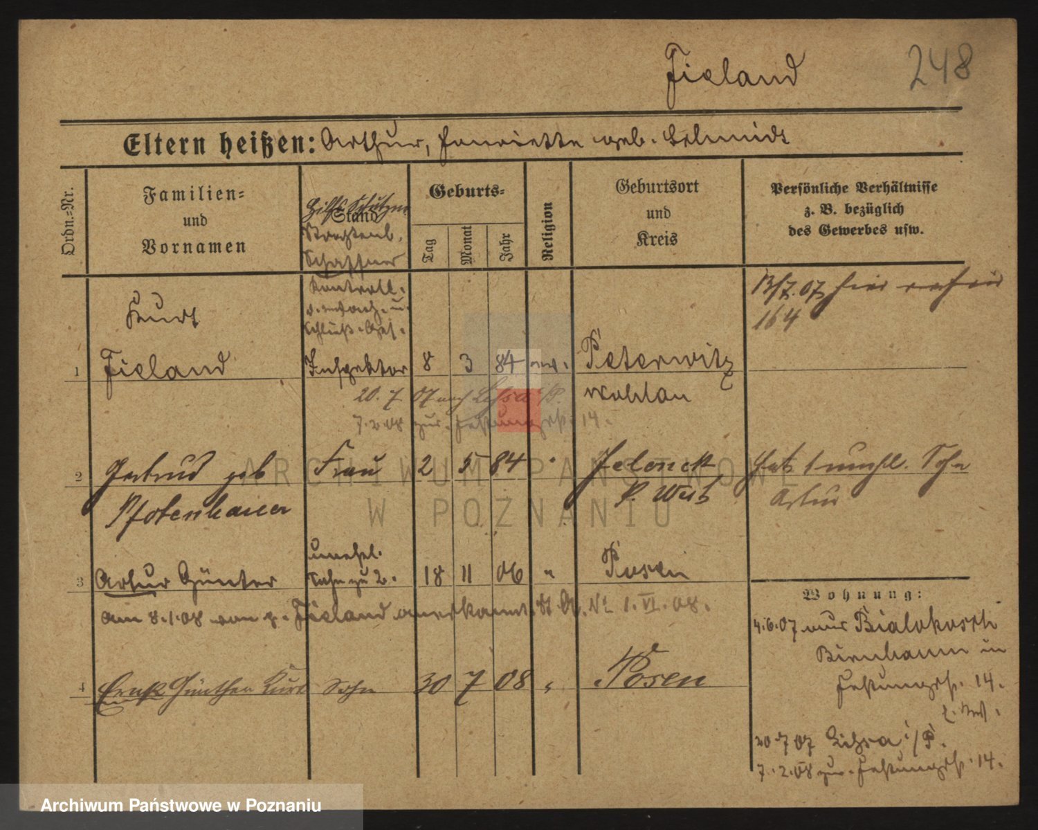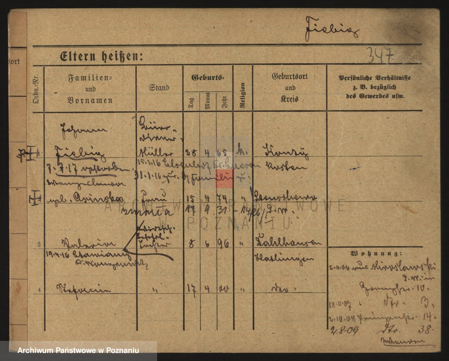 Podgląd karty osobowej dostępny jest po kliknięciu na nazwisko lub ikonkę karty. Można dokonywać powiększenia (ikony na górze) lub przechodzić między kolejnymi skanami (strzałki po bokach).