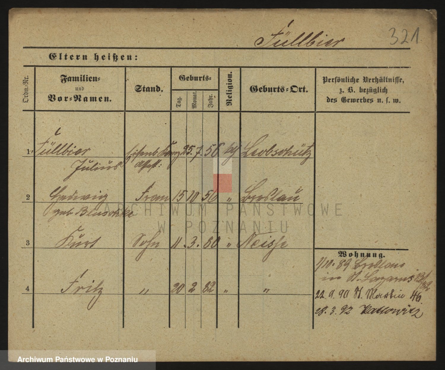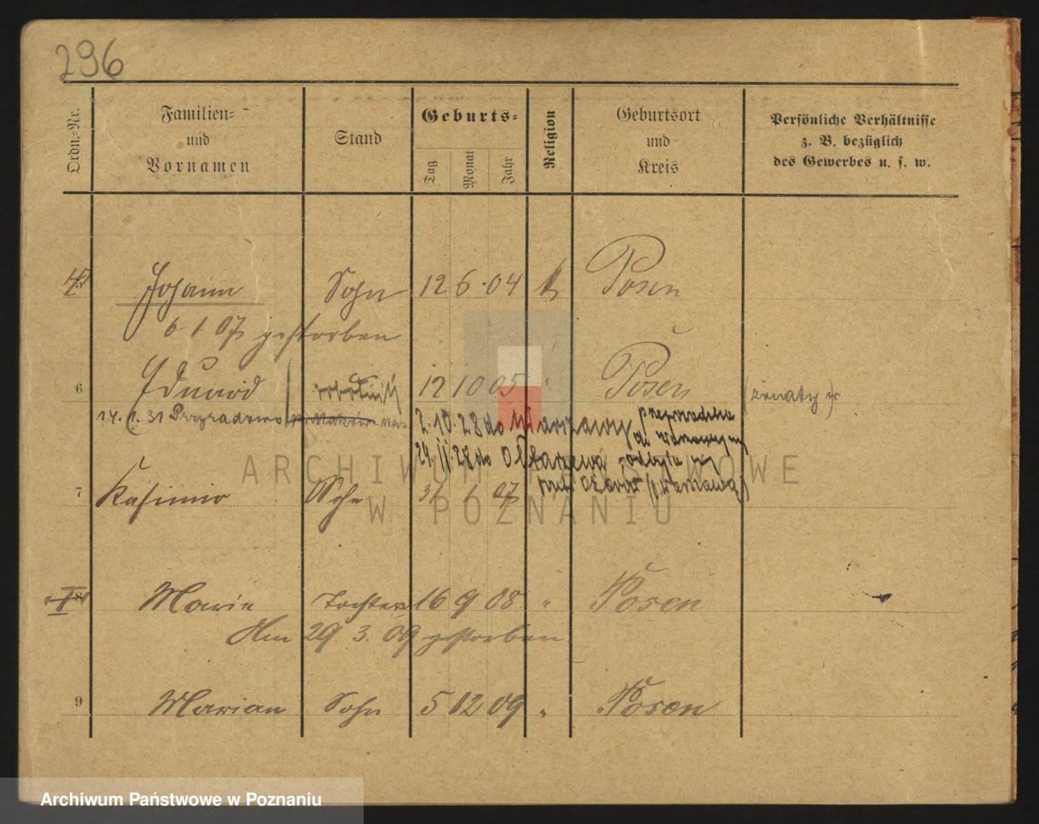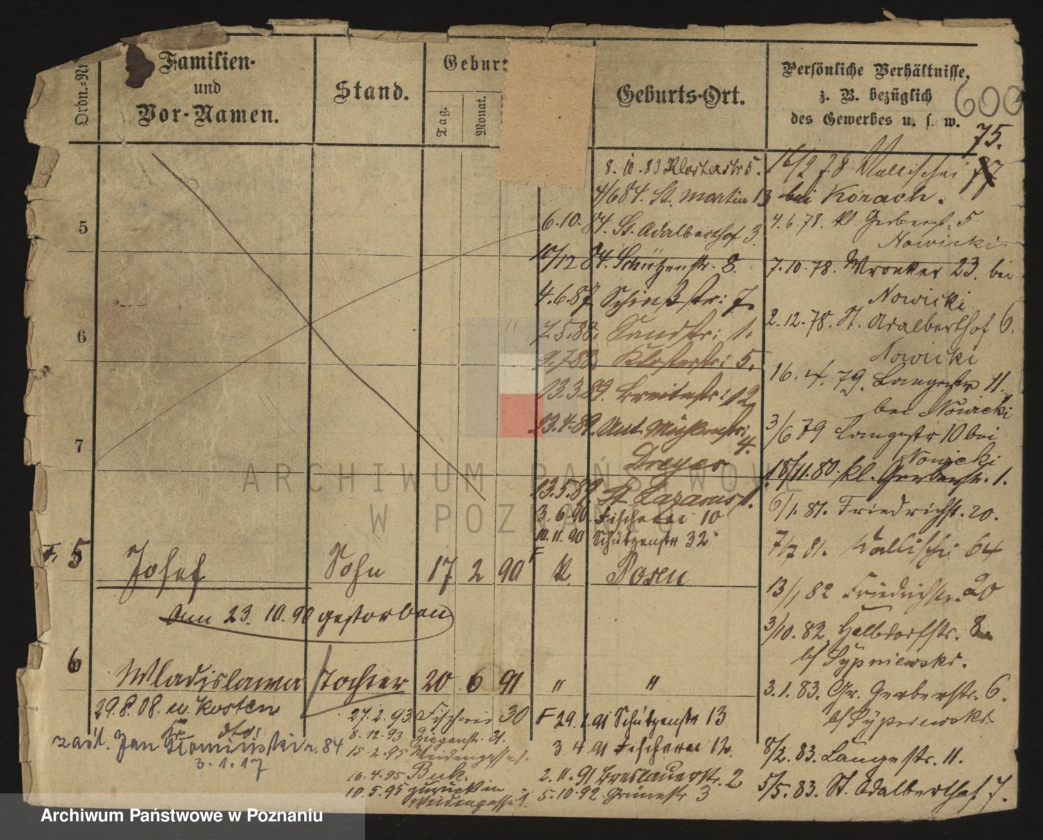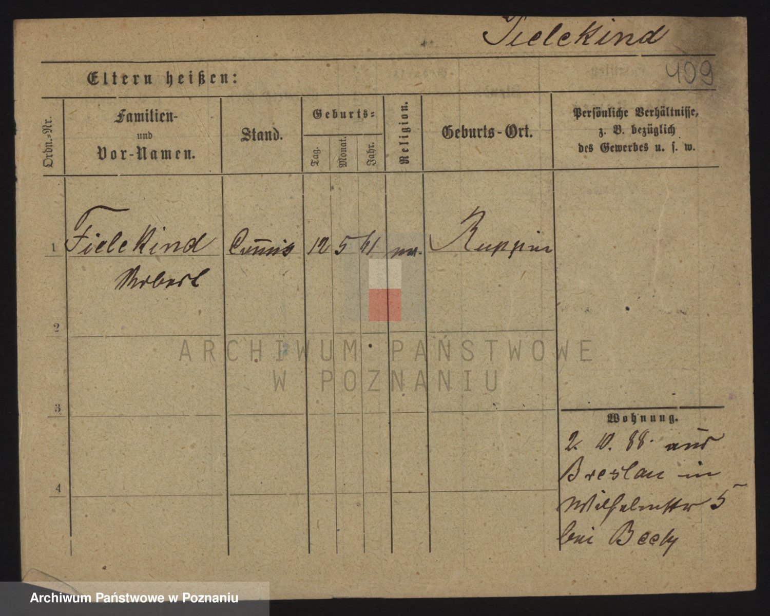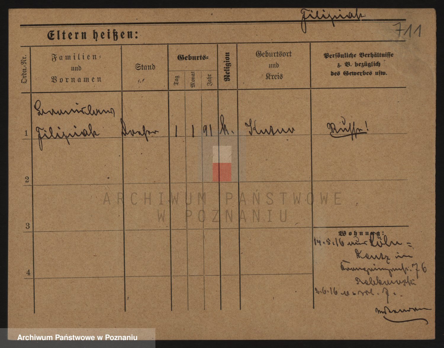 Podgląd karty osobowej dostępny jest po kliknięciu na nazwisko lub ikonkę karty. Można dokonywać powiększenia (ikony na górze) lub przechodzić między kolejnymi skanami (strzałki po bokach).