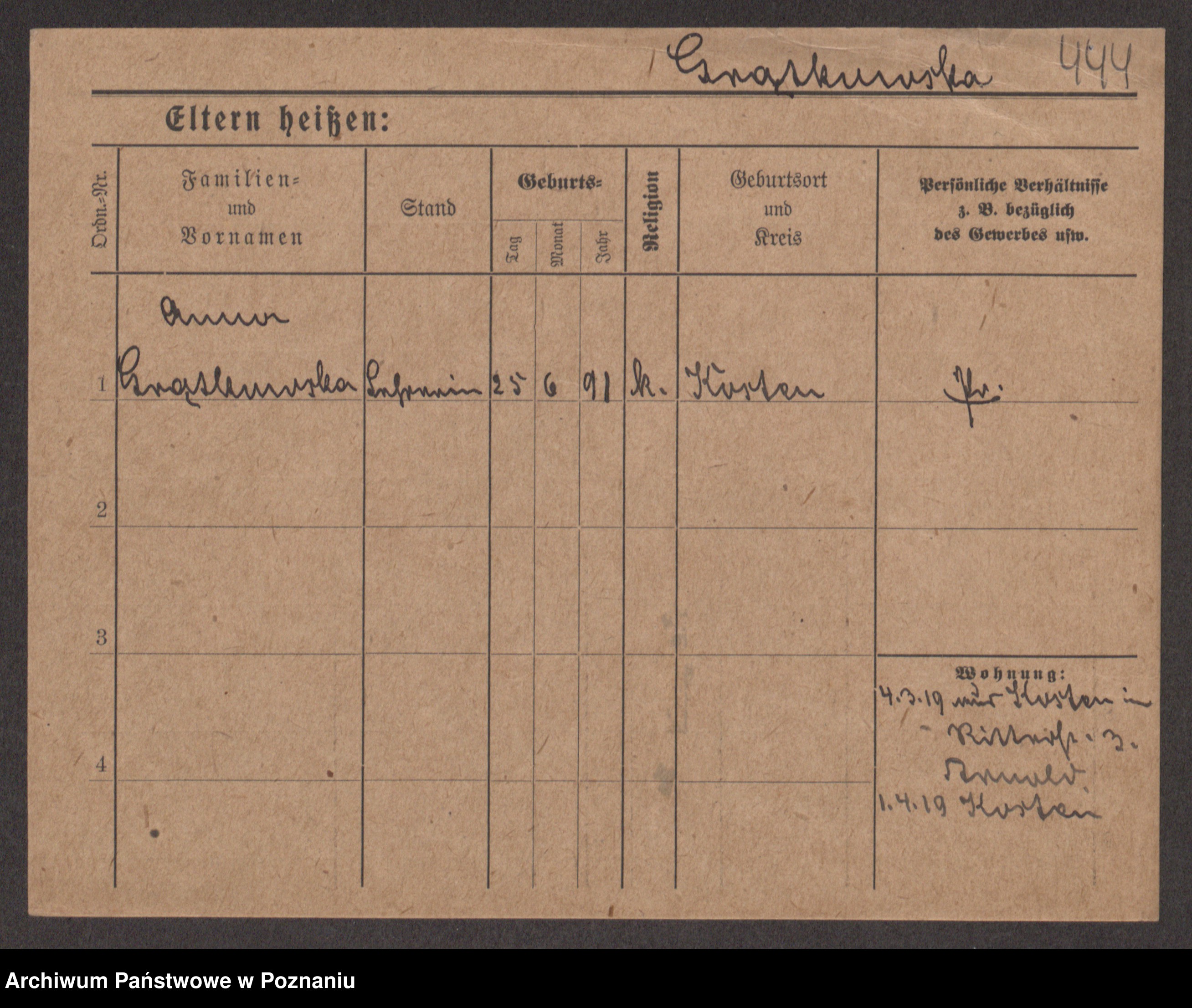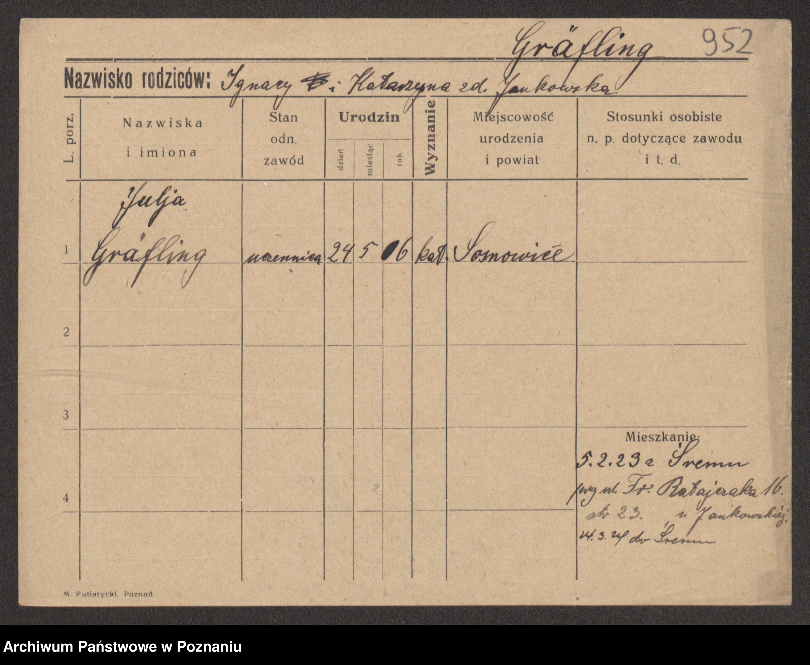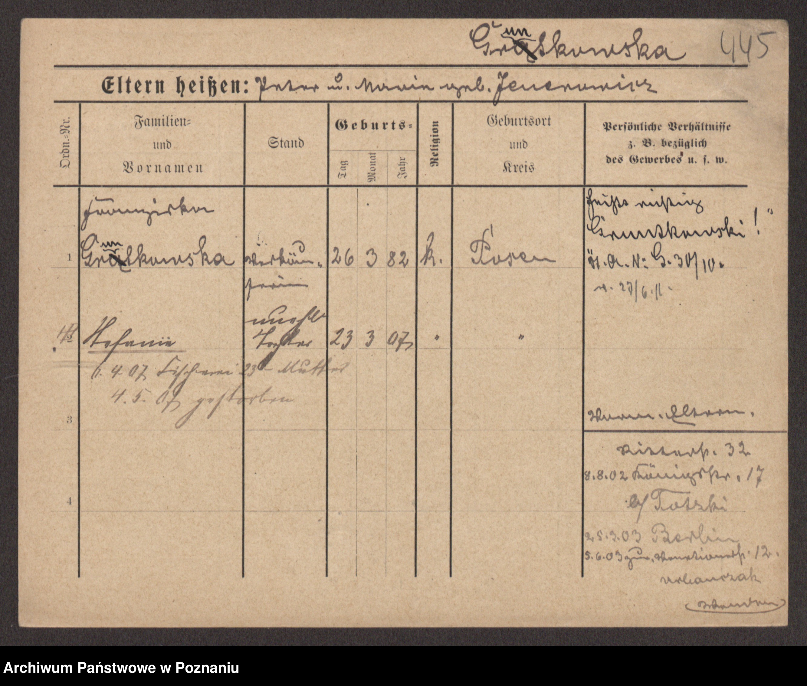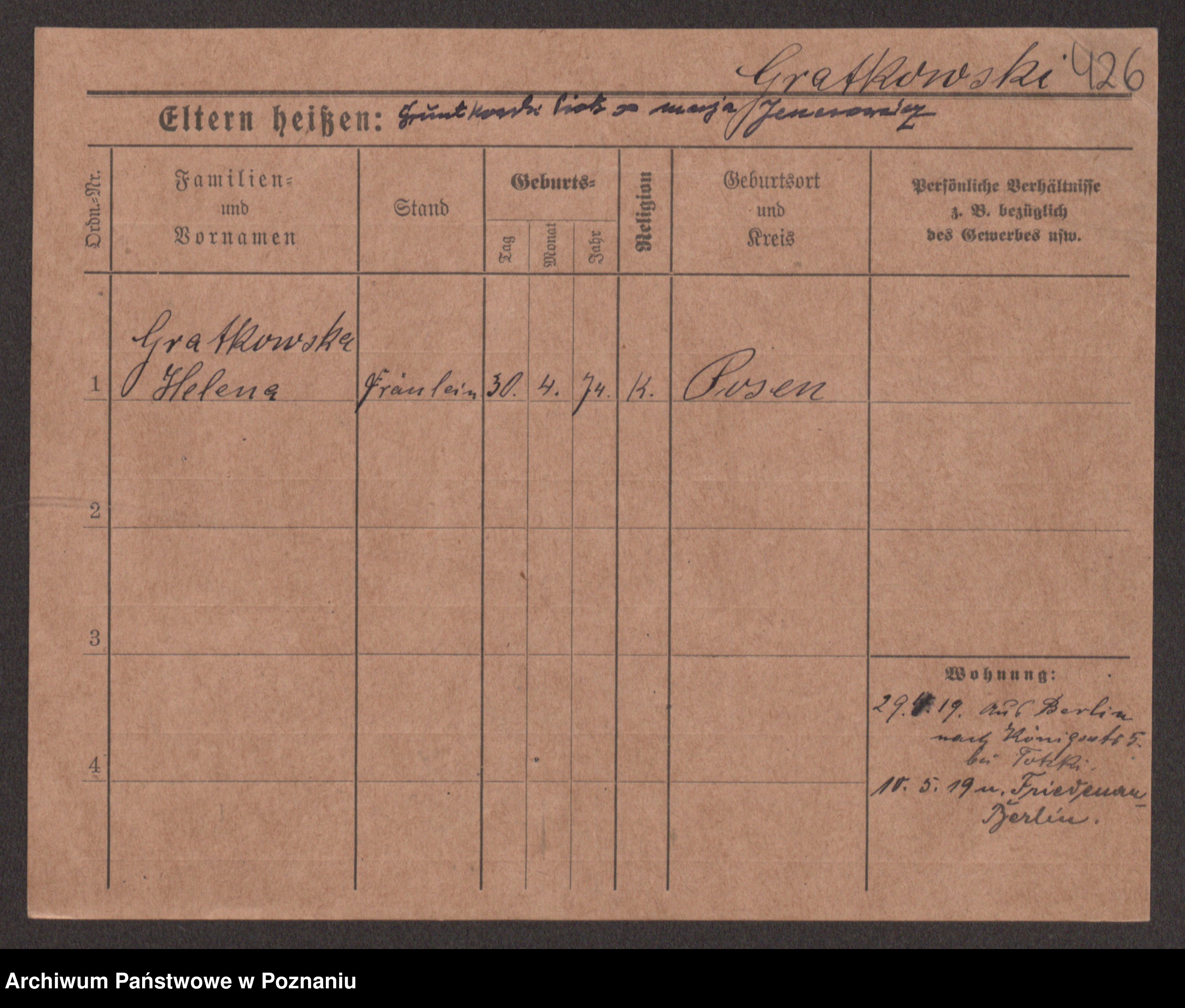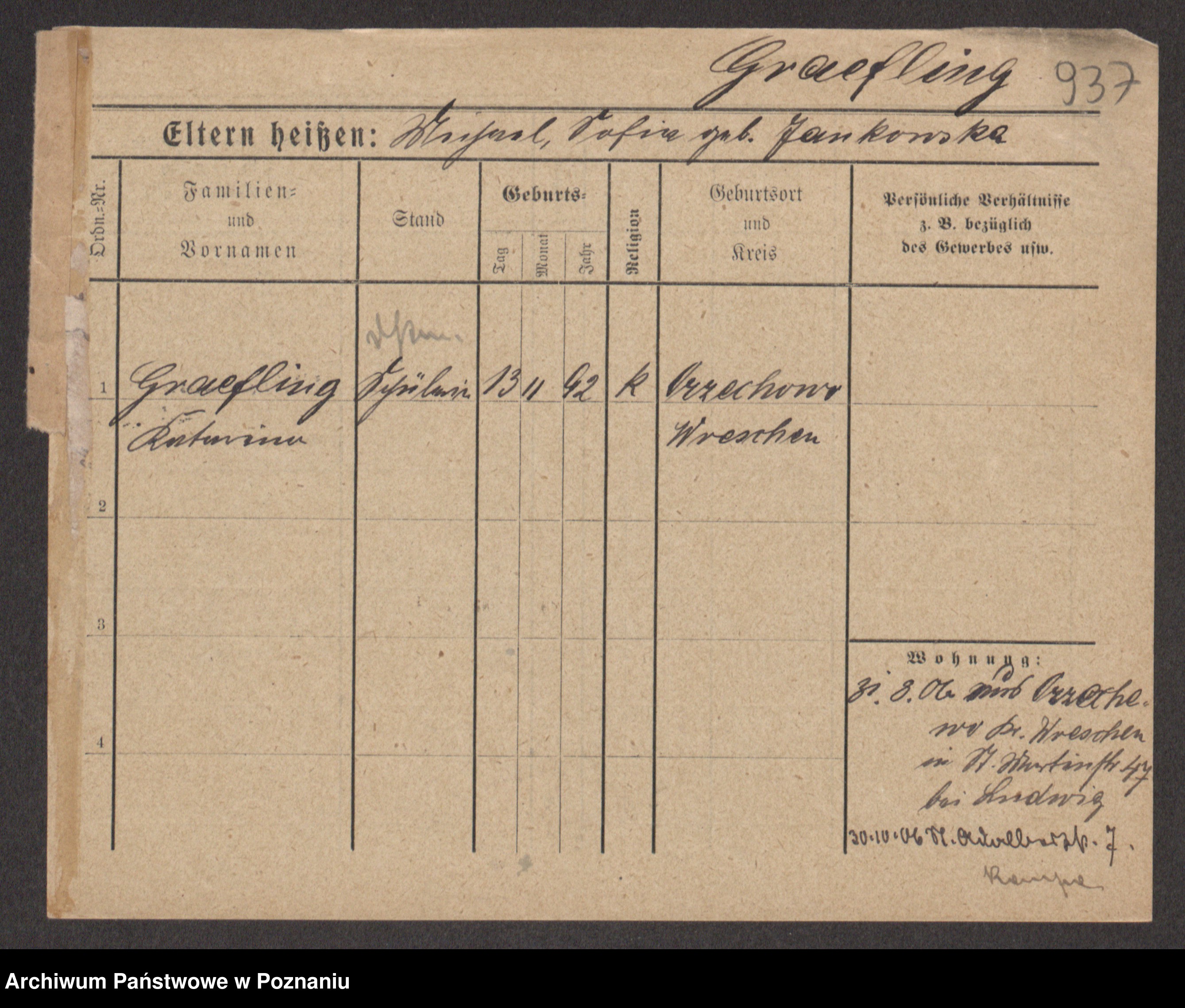 Graefling z d. Stanislawska 1. voto Grzeskowiak, Marianna