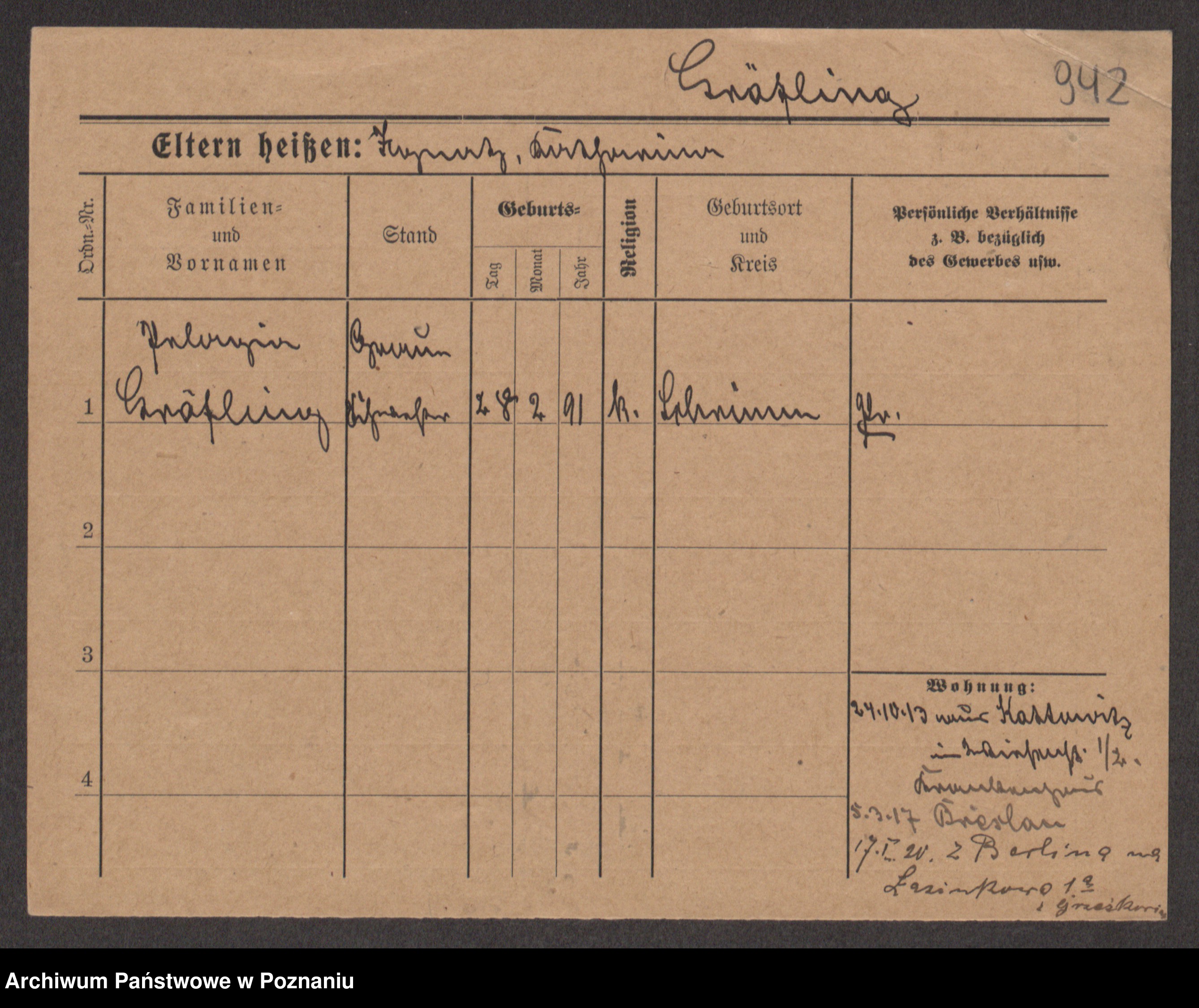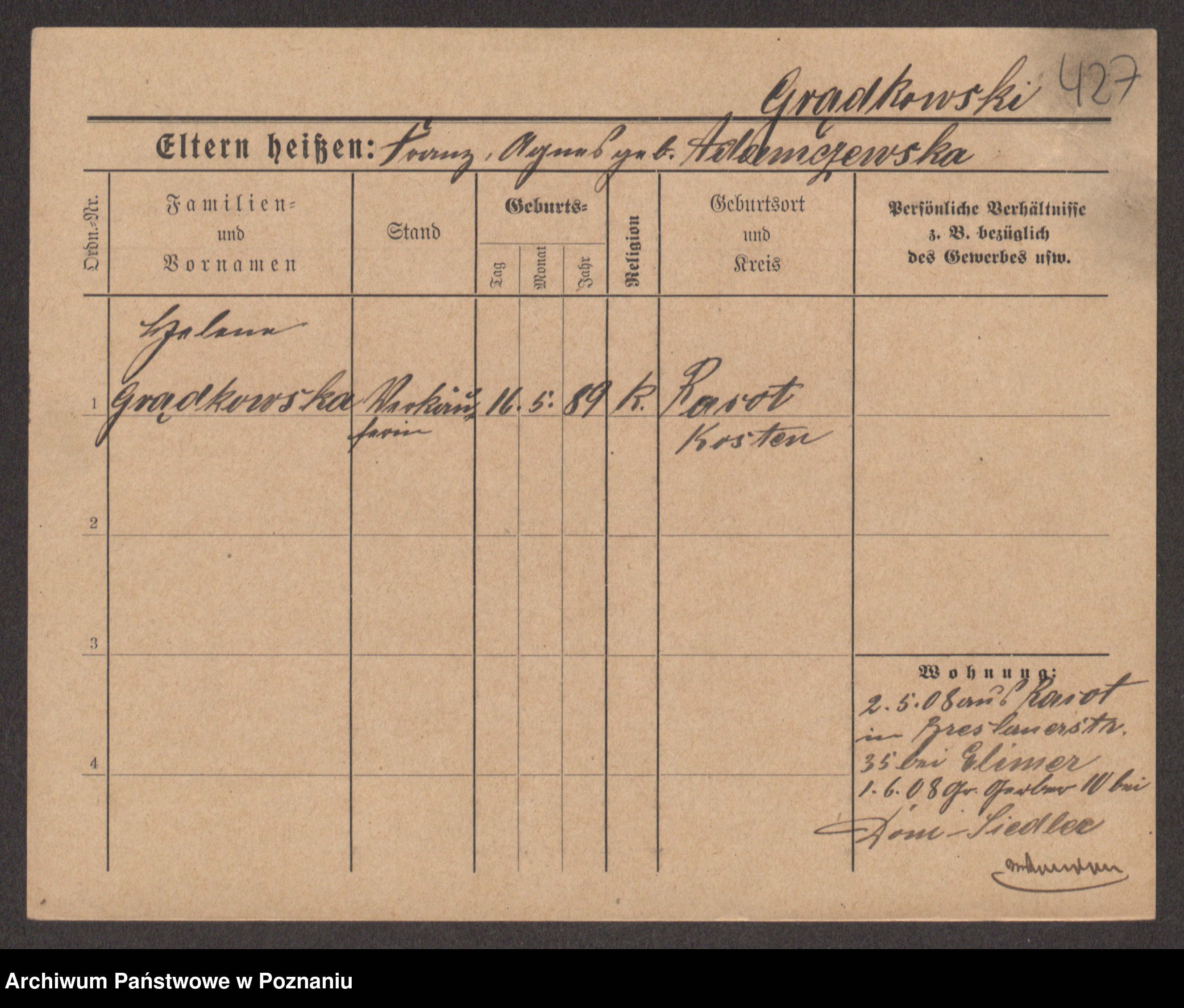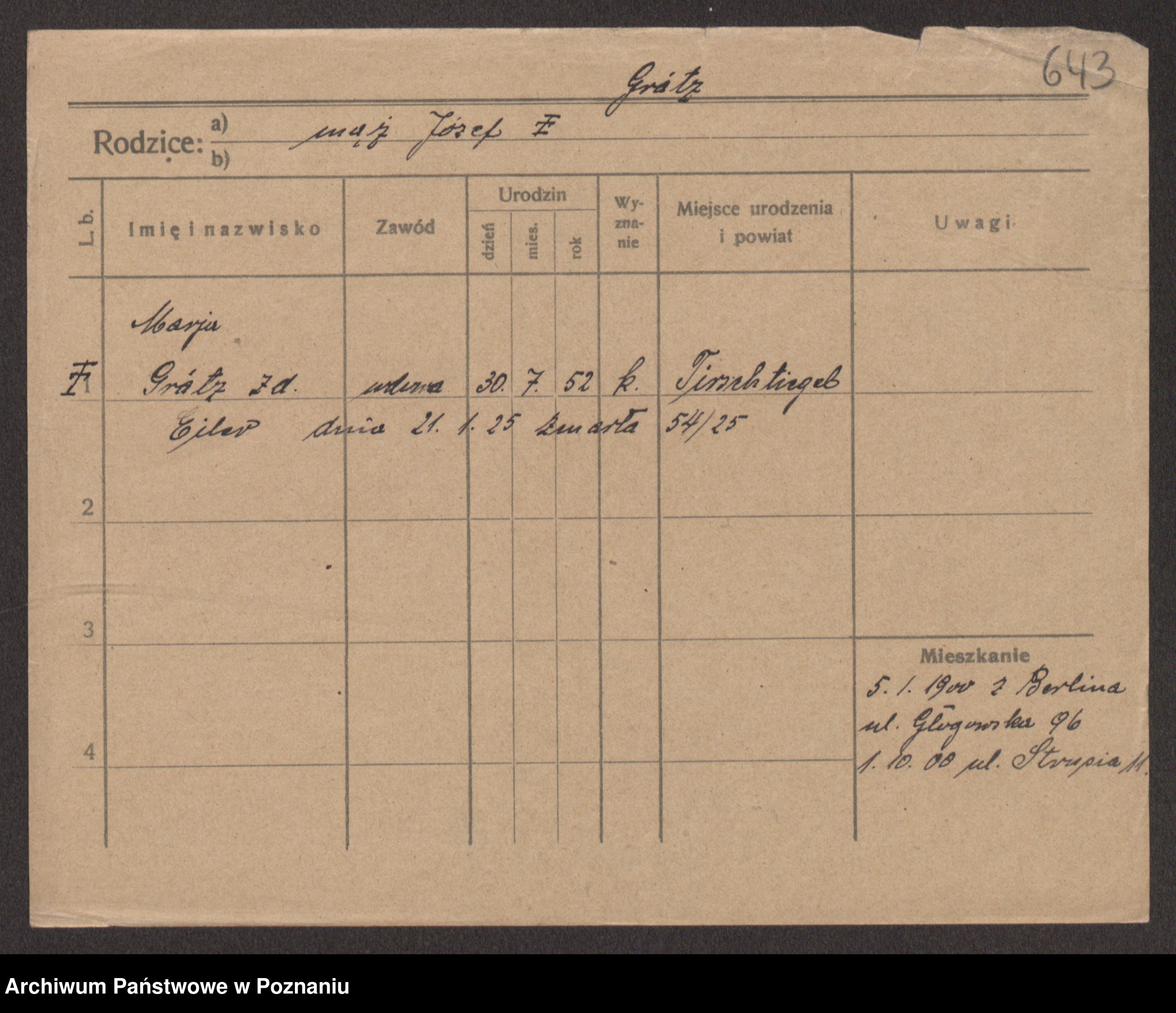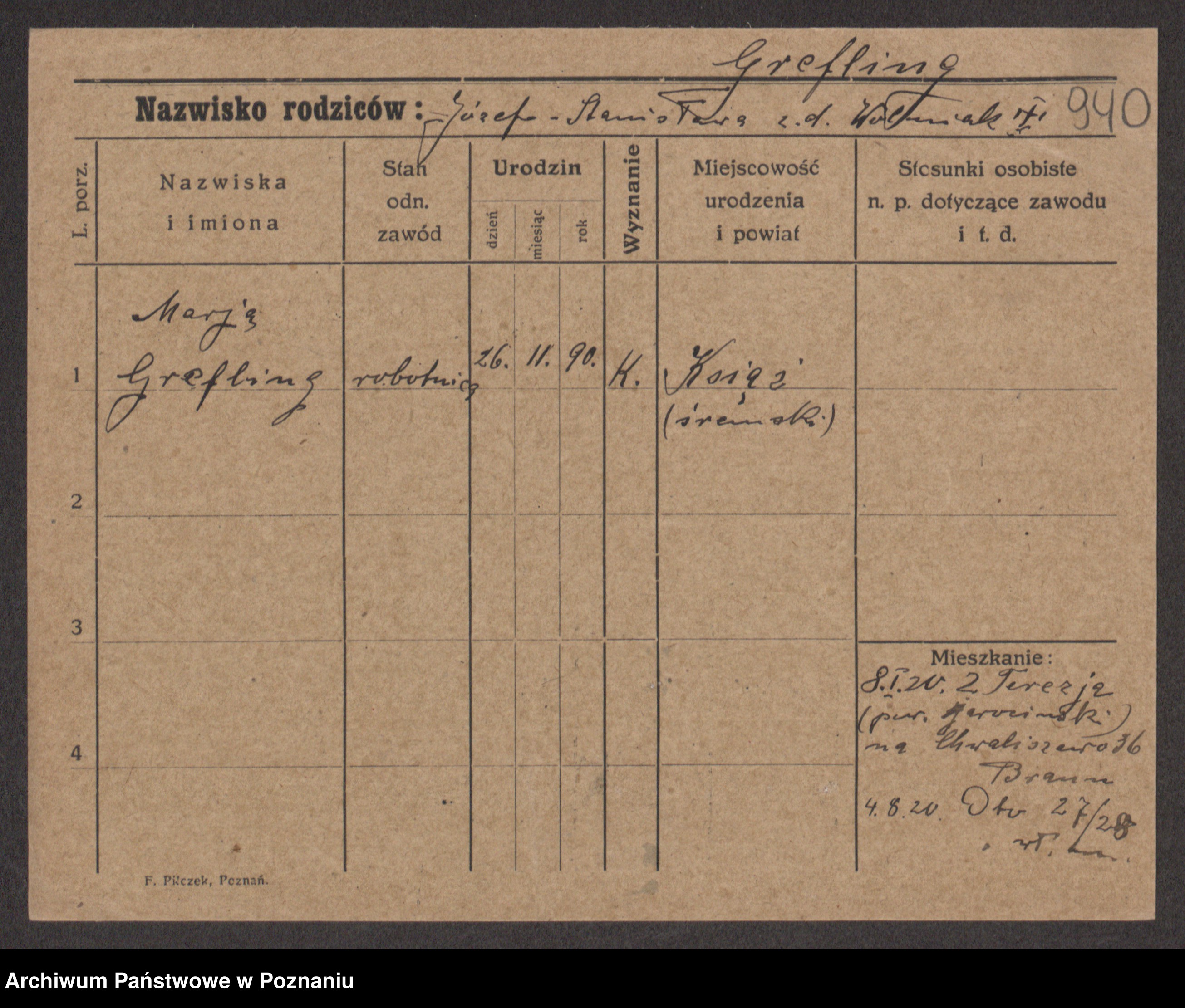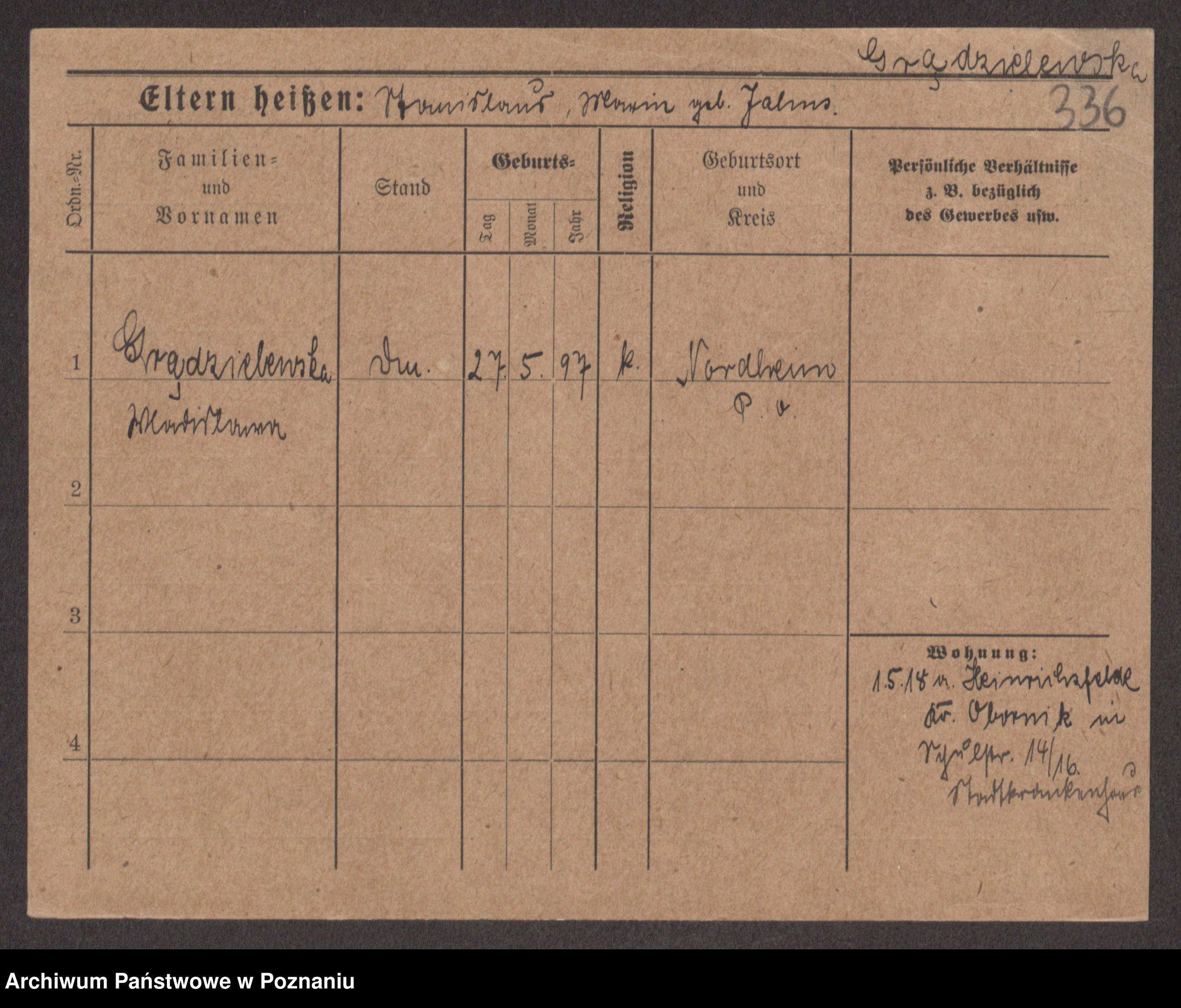 Graefling z d. Stanislawska 1. voto Grzeskowiak, Marianna