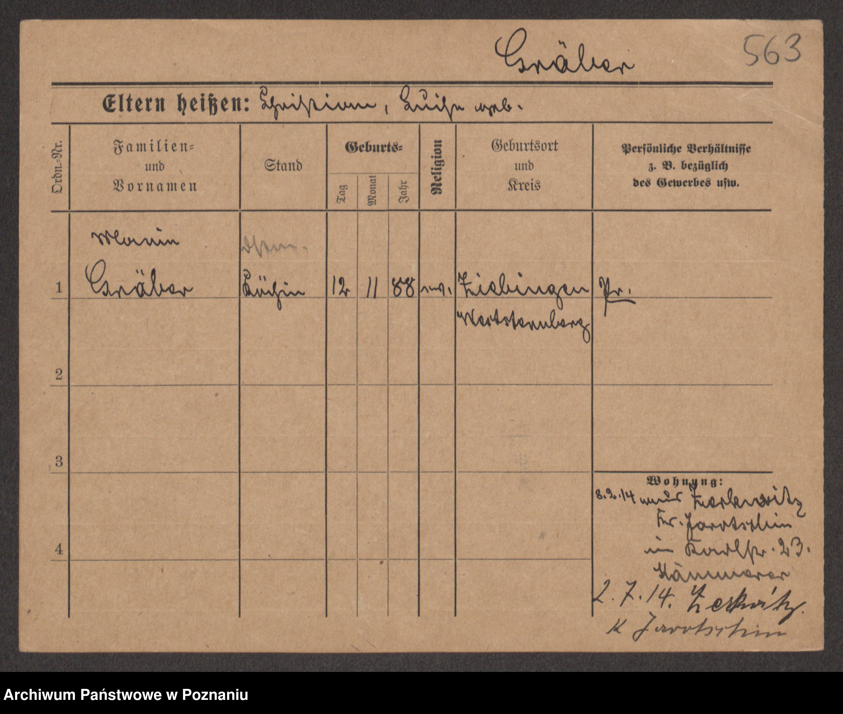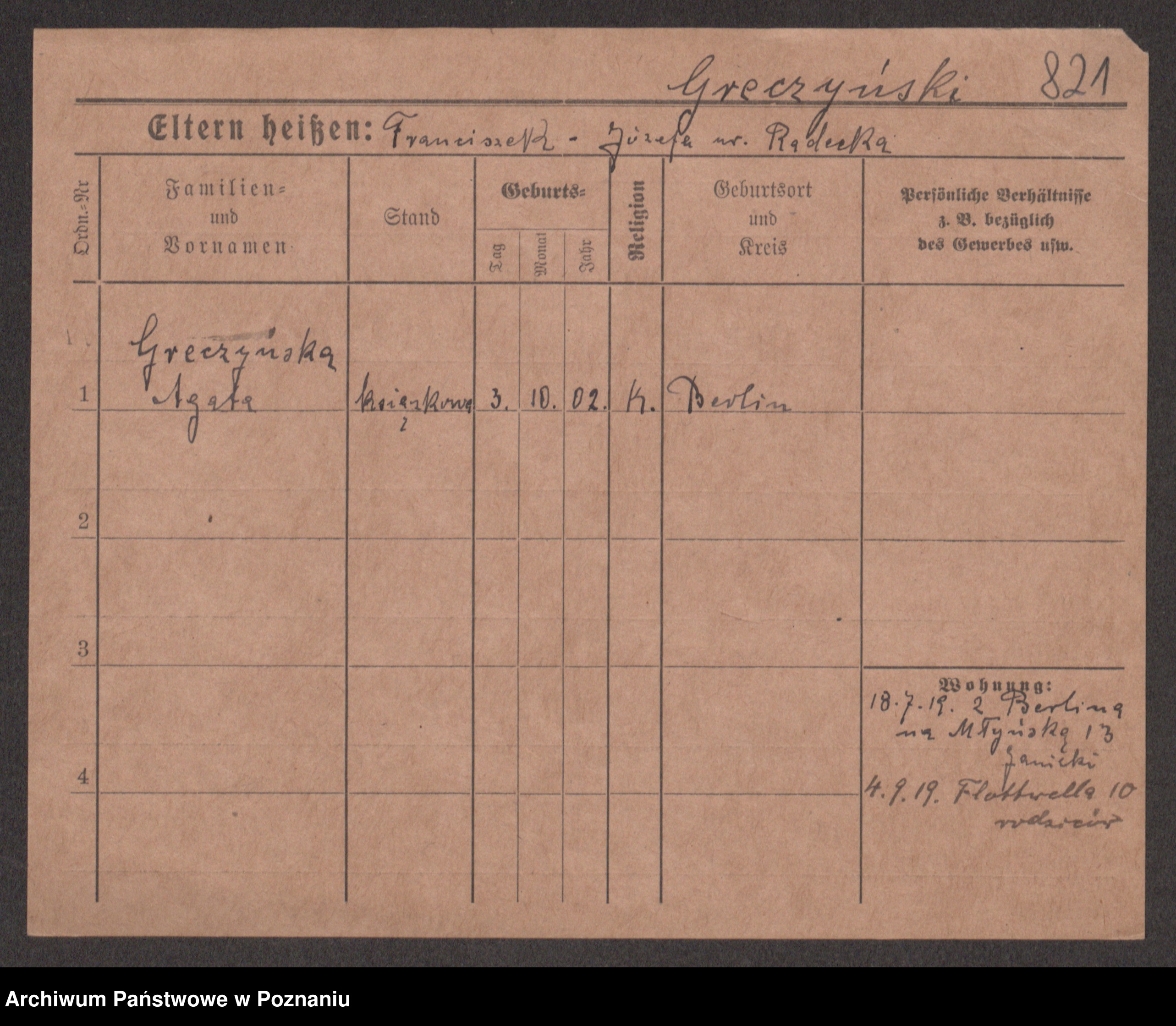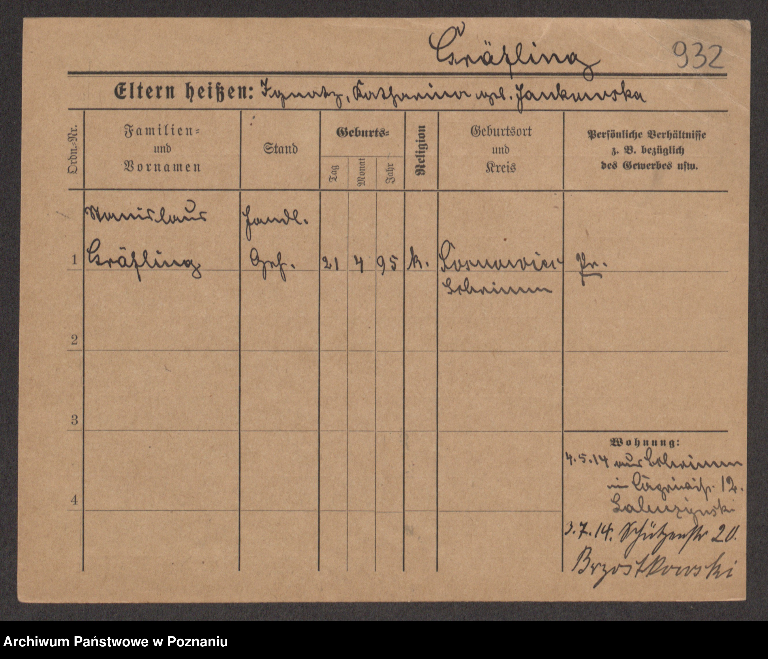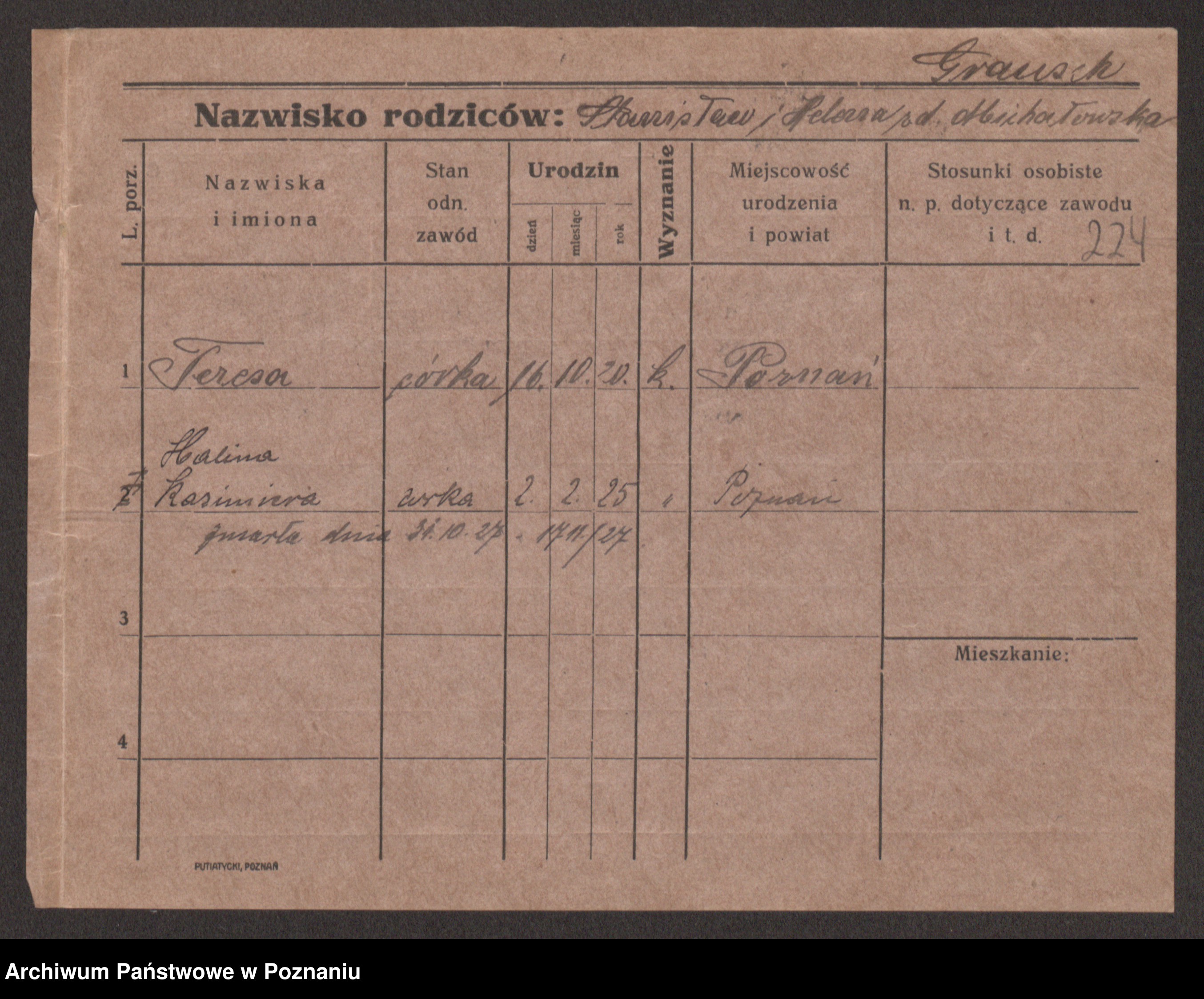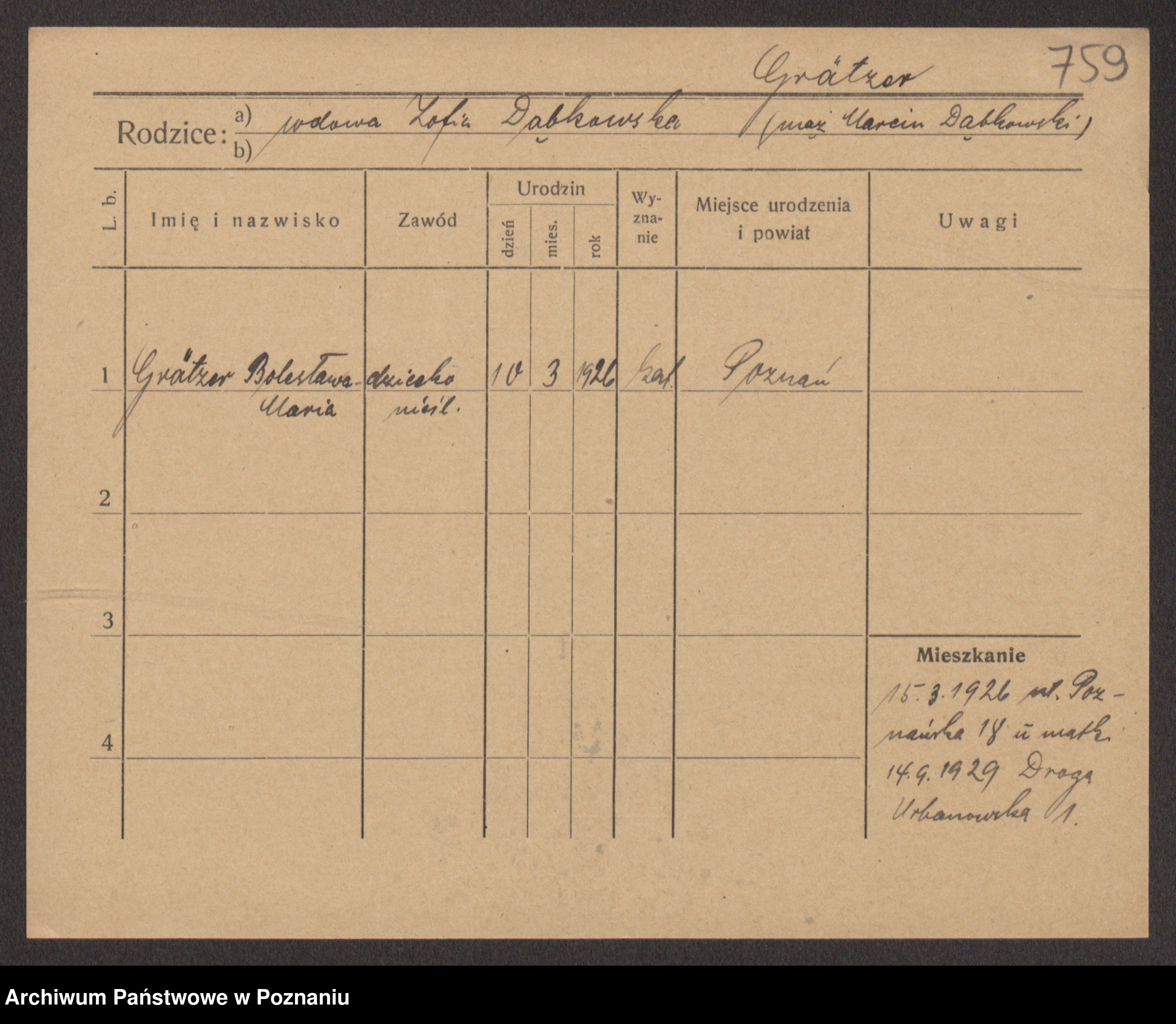 Graefling z d. Stanislawska 1. voto Grzeskowiak, Marianna