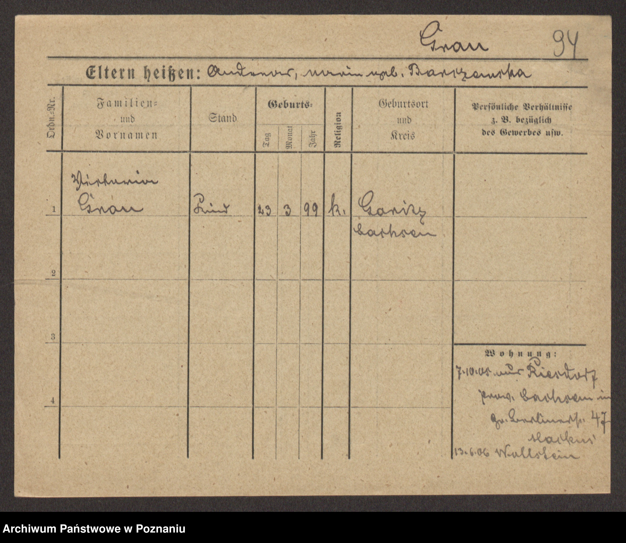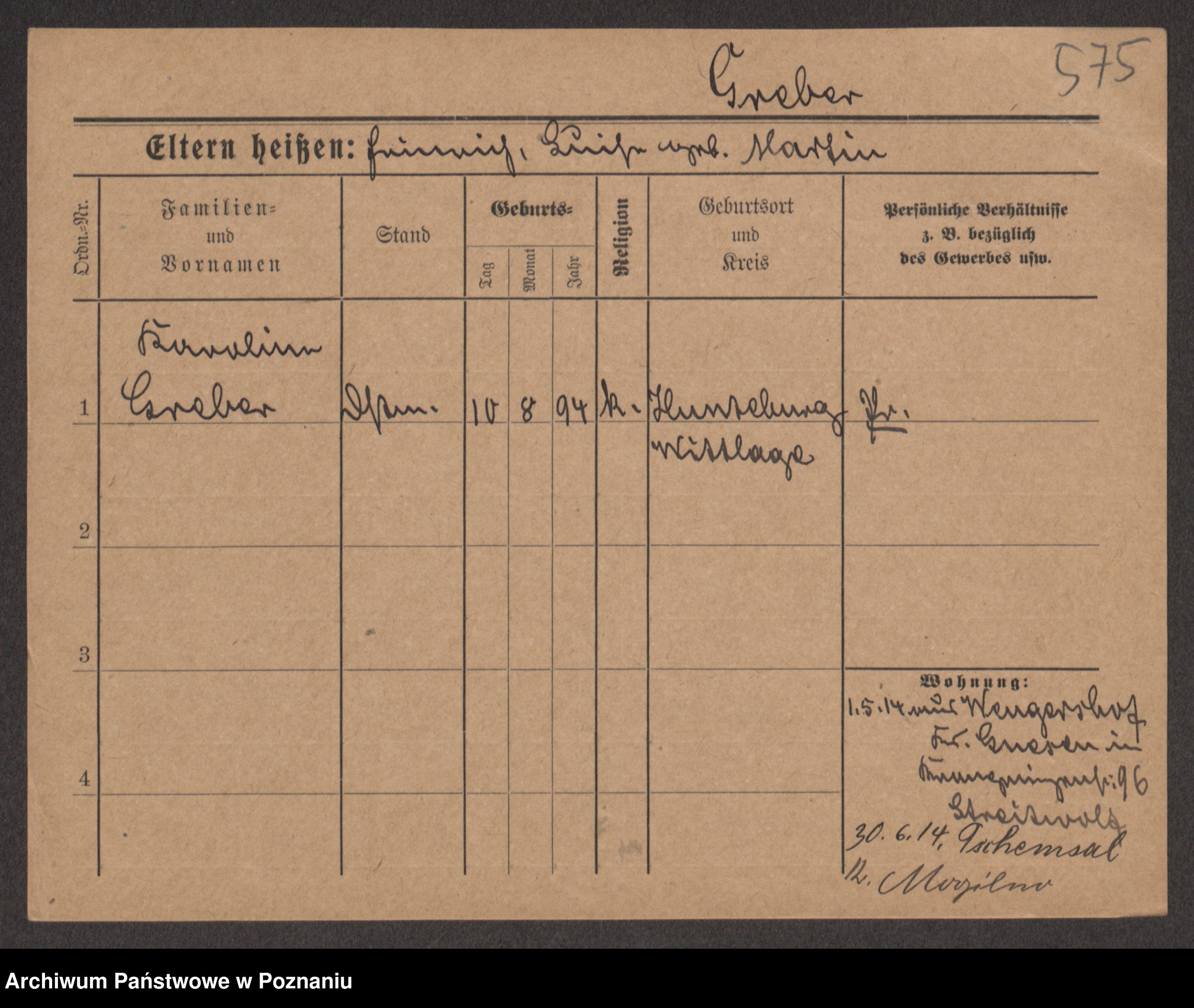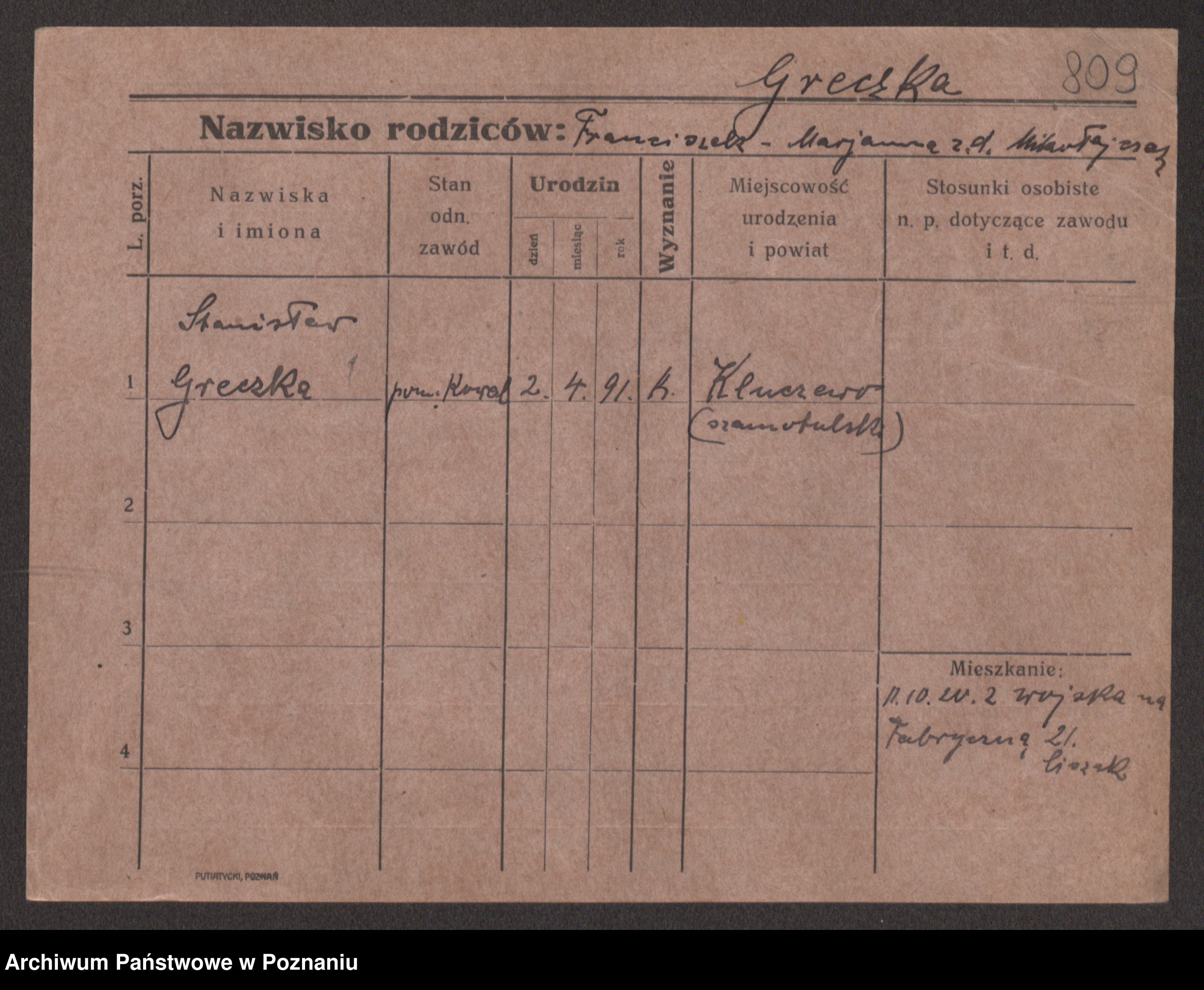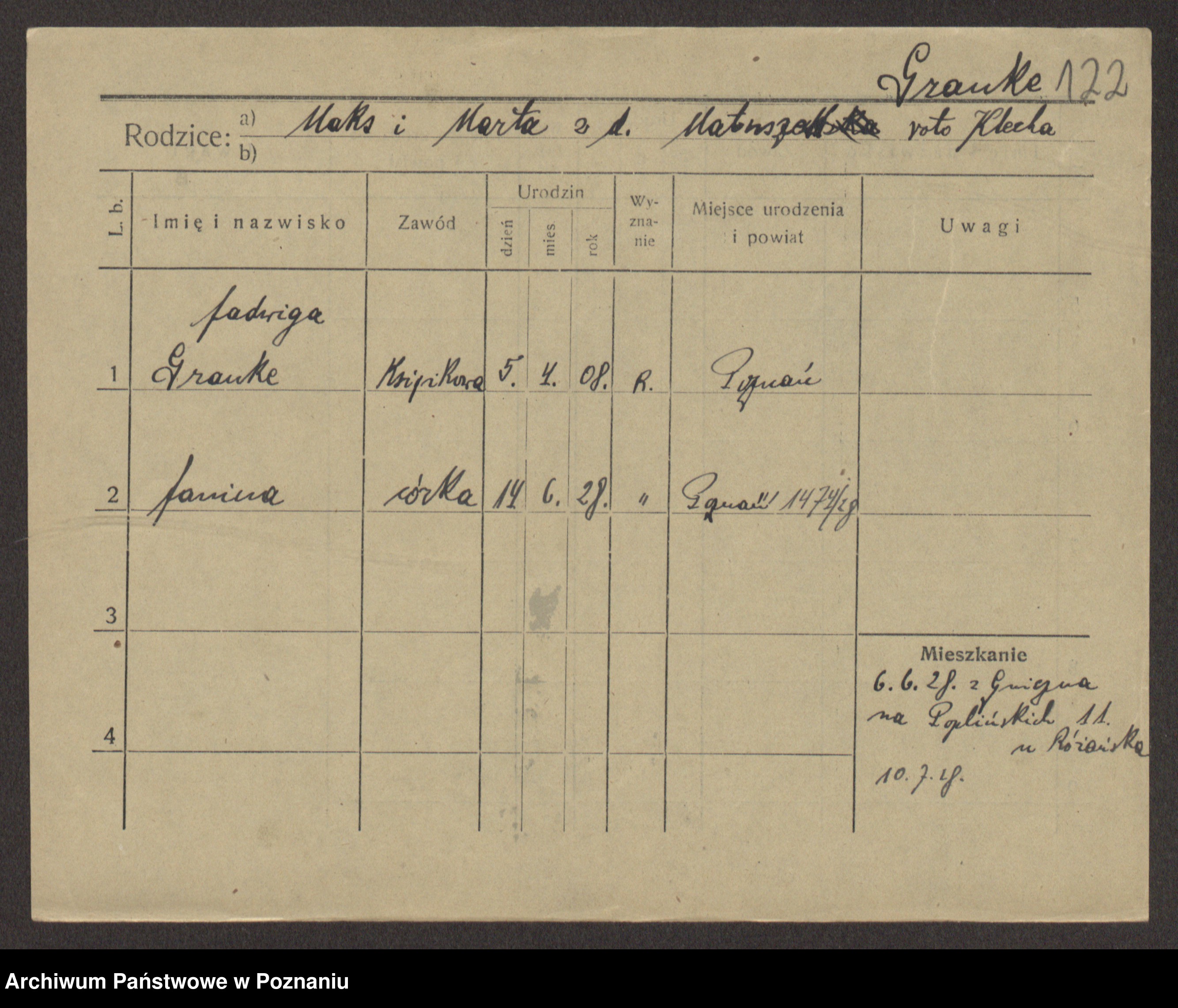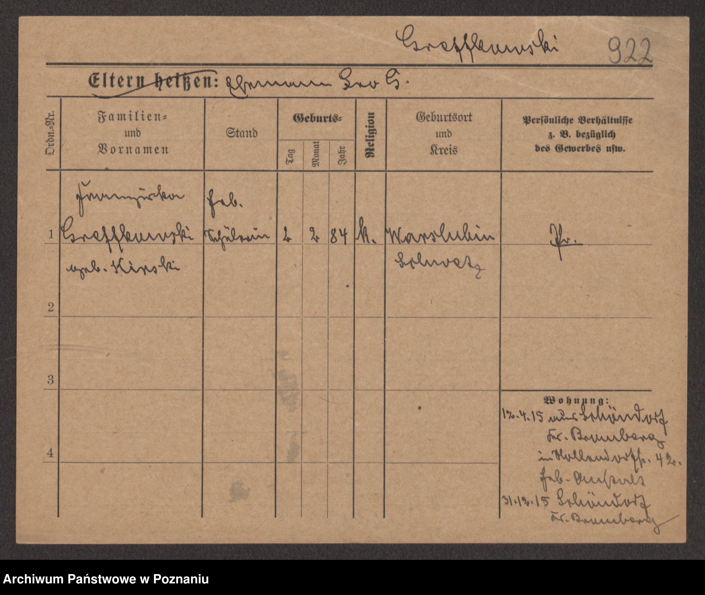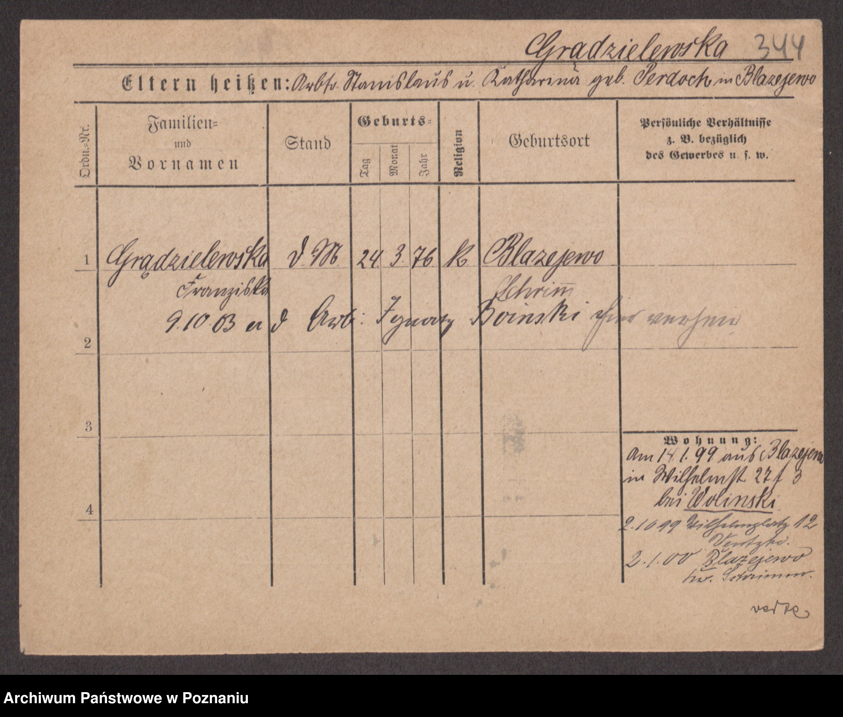 Graefling z d. Stanislawska 1. voto Grzeskowiak, Marianna